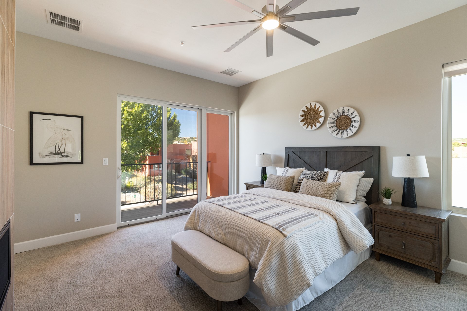 End-unit luxury, Santa Fe character, and modern comfort all come together beautifully. This light-filled, end-unit home mirrors the popular offers the added privacy, windows, and openness that make it truly special. Step inside to an inviting blend of clean modern design and warm Southwest charm.The heart of the home is an elegant, open-concept kitchen featuring upgraded appliances, sleek cabinetry, and solid-surface countertops that flow seamlessly into a bright living area--perfect for entertaining or quiet evenings in. Large windows flood the space with natural light, leading to a private patio that invites morning coffee or sunset wine.The spacious primary suite provides a tranquil retreat with a spa-inspired bath and generous closet space. Energy-efficient construction, an attached garage, and low-maintenance living ensure everyday ease.Nestled in one of Santa Fe's most desirable locations, residents enjoy proximity to downtown dining, galleries, and cultural landmarks, as well as easy access to scenic walking trails and open spaces.Discover the thoughtful design and comfort that define Abrazo Homes--where every detail is crafted for modern living with timeless appeal. Don't miss your chance to own one of the community's most coveted end units!