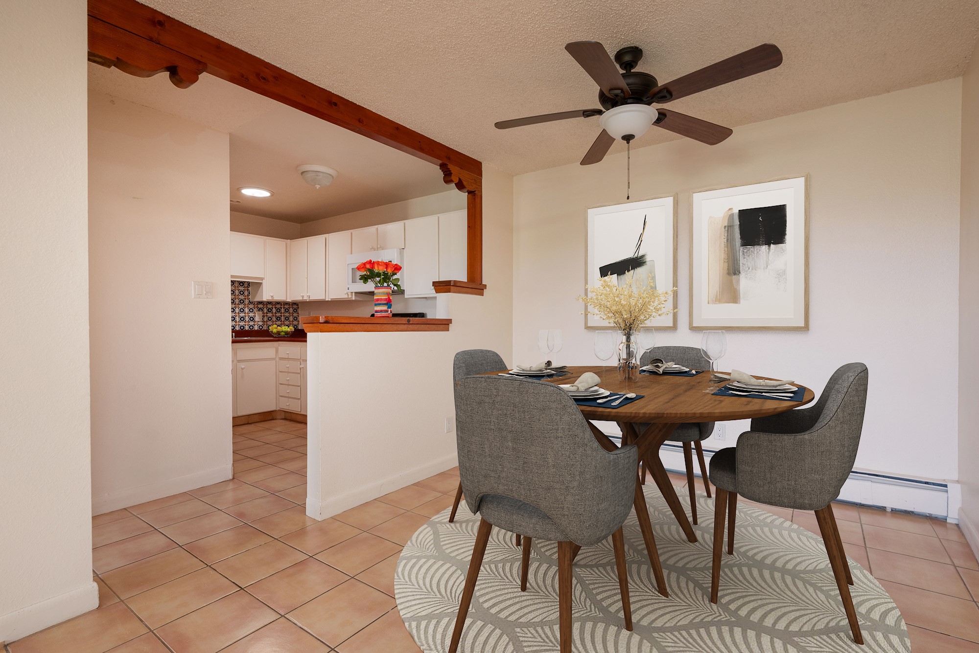 Where else can you find two bedrooms with access to a pool, sauna, and gym at this affordable price on the East side of St. Francis? Coming home begins at the beautiful garden path from the parking lot to the breezeway. This cute unit is a second-floor walk-up with a tree-shaded deck overlooking the arroyo and a cozy fireplace for winter vibes. Los Arroyos is a wonderful community with beautiful grounds surrounded by million-dollar homes. Amenities include hot water baseboard heat, water, indoor pool, sauna, gym, lawn, BBQ area, tennis court, basketball hoops, walking trails and community room and more included in a reasonable condo association fee. This is also a rare complex that doesn't limit your number of small pets to two - a big win if your fur family is larger. If you've given up finding a sweet, affordable place in Santa Fe, come see this lovely home and community and put yourself at ease.