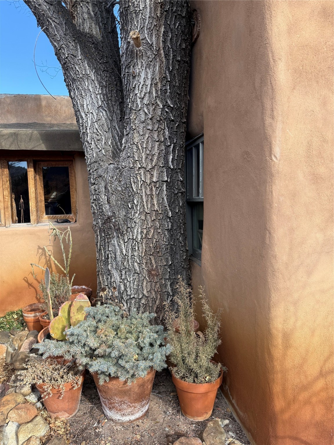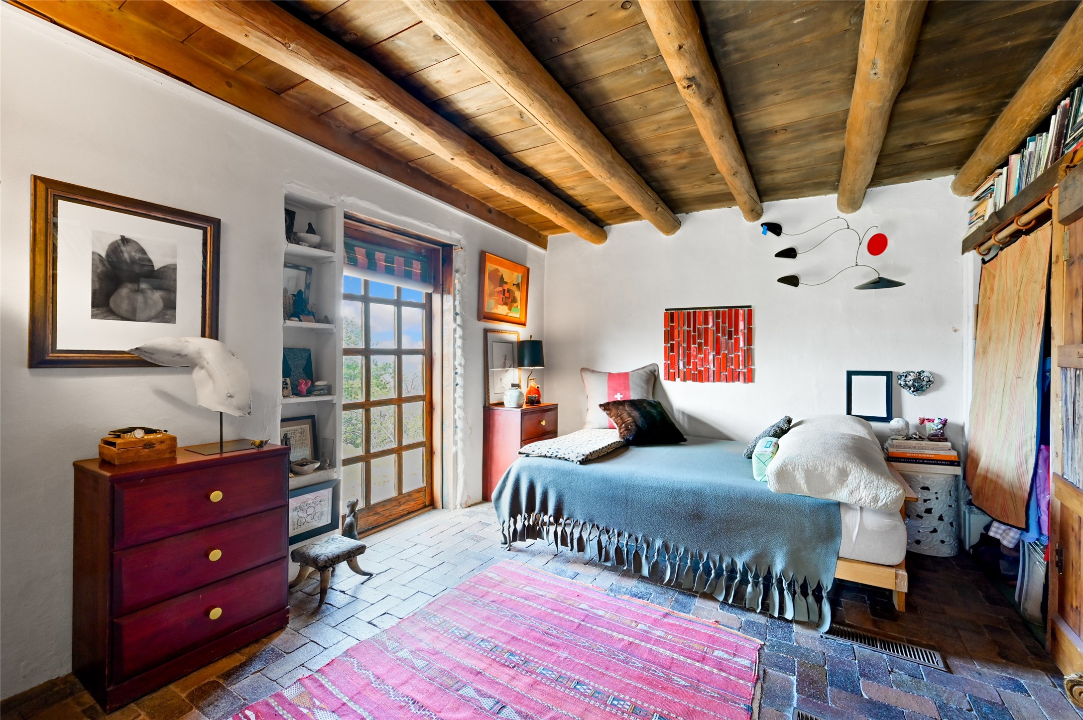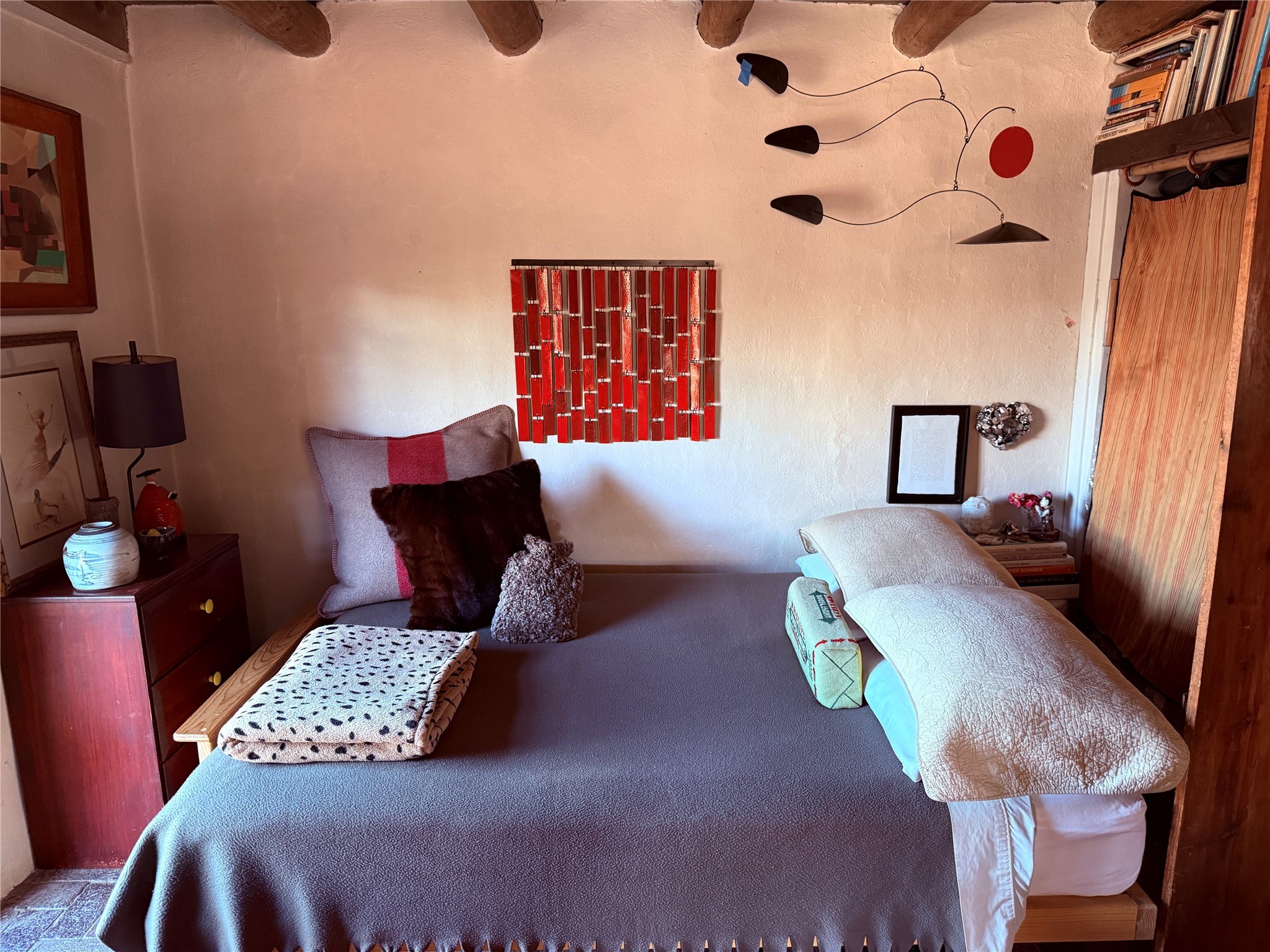 A rare opportunity in the heart of Santa Fe's historic East Side: two quintessential Santa Fe homes originally built in the early 1900's, set on a treed .94 acre lot, surrounded on three sides by multimillion-dollar properties. Added onto over the years, these adobe structures offer an exceptional buy-in opportunity for those with a creative eye. The structures retain many of the handcrafted details that define old world Santa Fe charm: --vigas, nichos, wide wood plank floors, soft, sculpted adobe walls and doorways--and are both ideal for restoration and expansion.The 1,138-sq-ft main house features a 1-bed/1-bath layout, plus a warmly lit studio that could be a comfortable second bedroom or joined for an enlarged primary bedroom. The 488-sq-ft casita offers its own kitchen/living/dining entry and separate living/sleeping area, with views from the lovely shaded portal.Quiet, authentic, and full of possibility, this is a unique chance to shape something extraordinary in one of the city's most cherished settings.