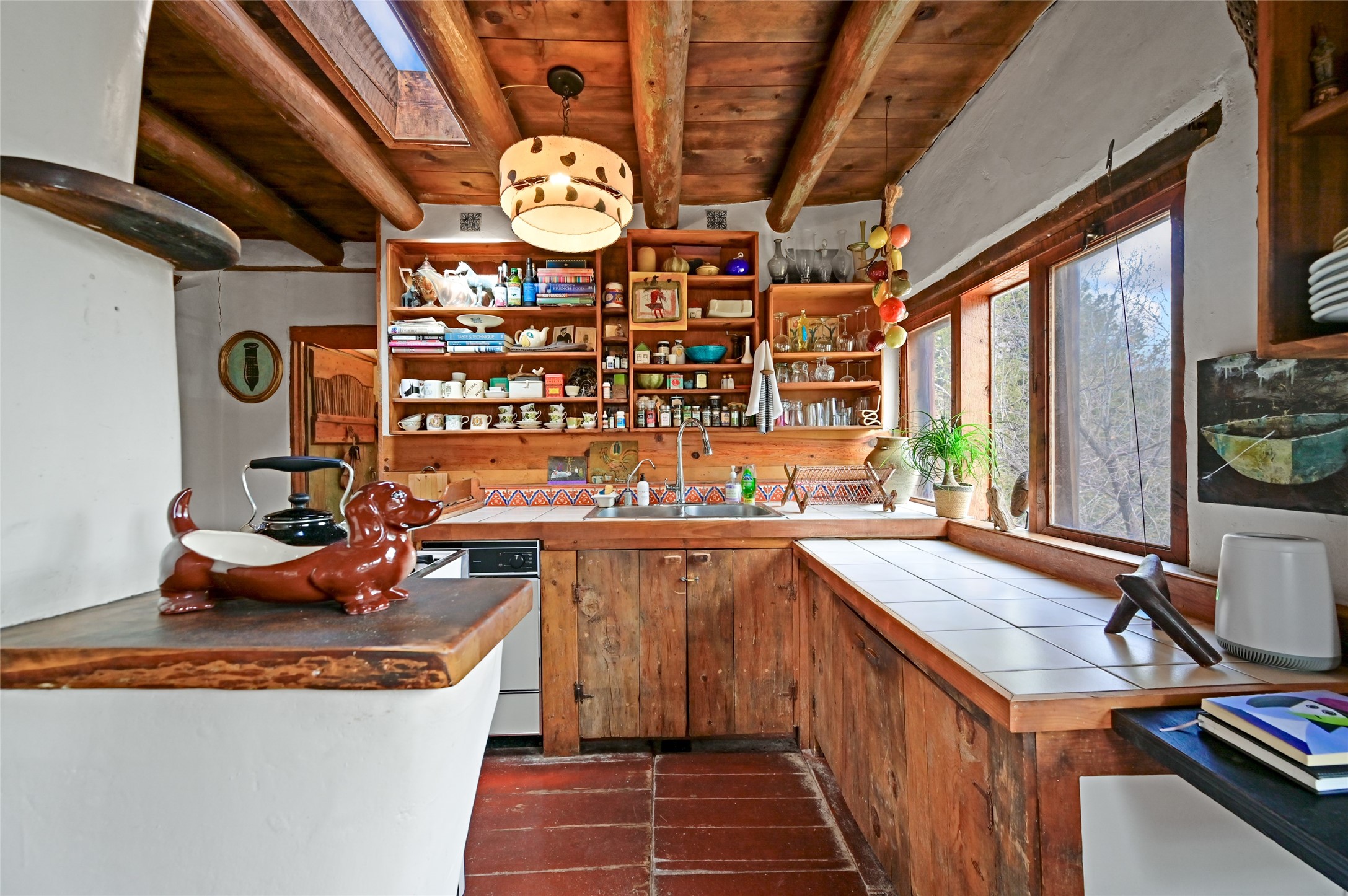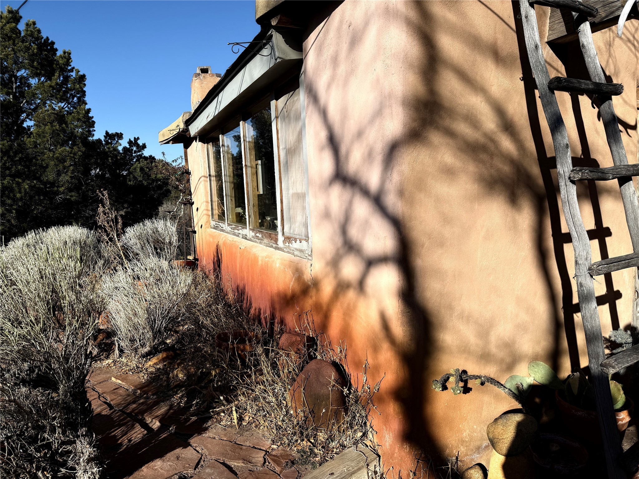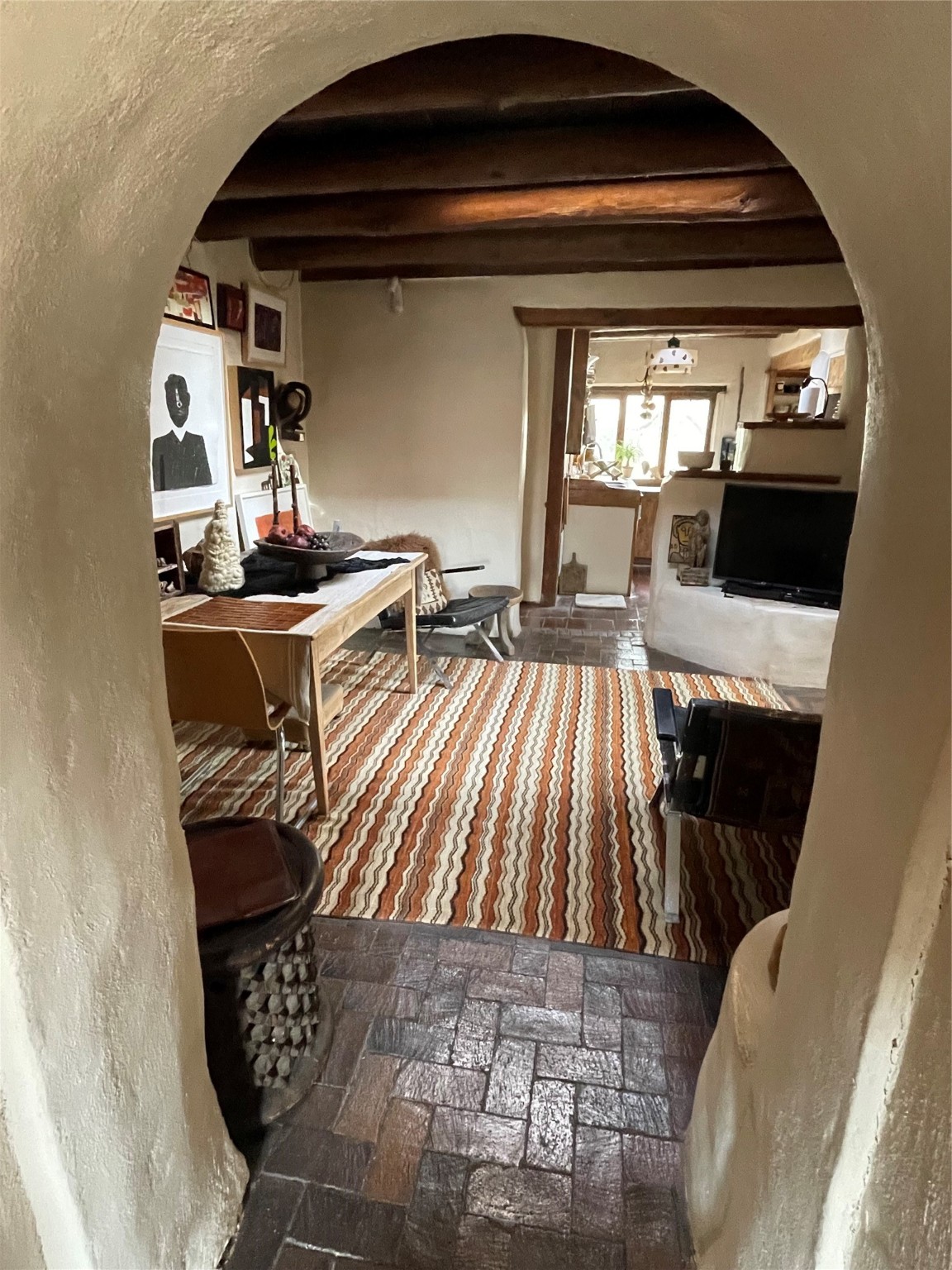 A rare opportunity in the heart of Santa Fe's historic East Side: two quintessential Santa Fe homes originally built in the early 1900's, set on a treed .94 acre lot, surrounded on three sides by multimillion-dollar properties. Added onto over the years, these adobe structures offer an exceptional buy-in opportunity for those with a creative eye. The structures retain many of the handcrafted details that define old world Santa Fe charm: --vigas, nichos, wide wood plank floors, soft, sculpted adobe walls and doorways--and are both ideal for restoration and expansion.The 1,138-sq-ft main house features a 1-bed/1-bath layout, plus a warmly lit studio that could be a comfortable second bedroom or joined for an enlarged primary bedroom. The 488-sq-ft casita offers its own kitchen/living/dining entry and separate living/sleeping area, with views from the lovely shaded portal.Quiet, authentic, and full of possibility, this is a unique chance to shape something extraordinary in one of the city's most cherished settings.