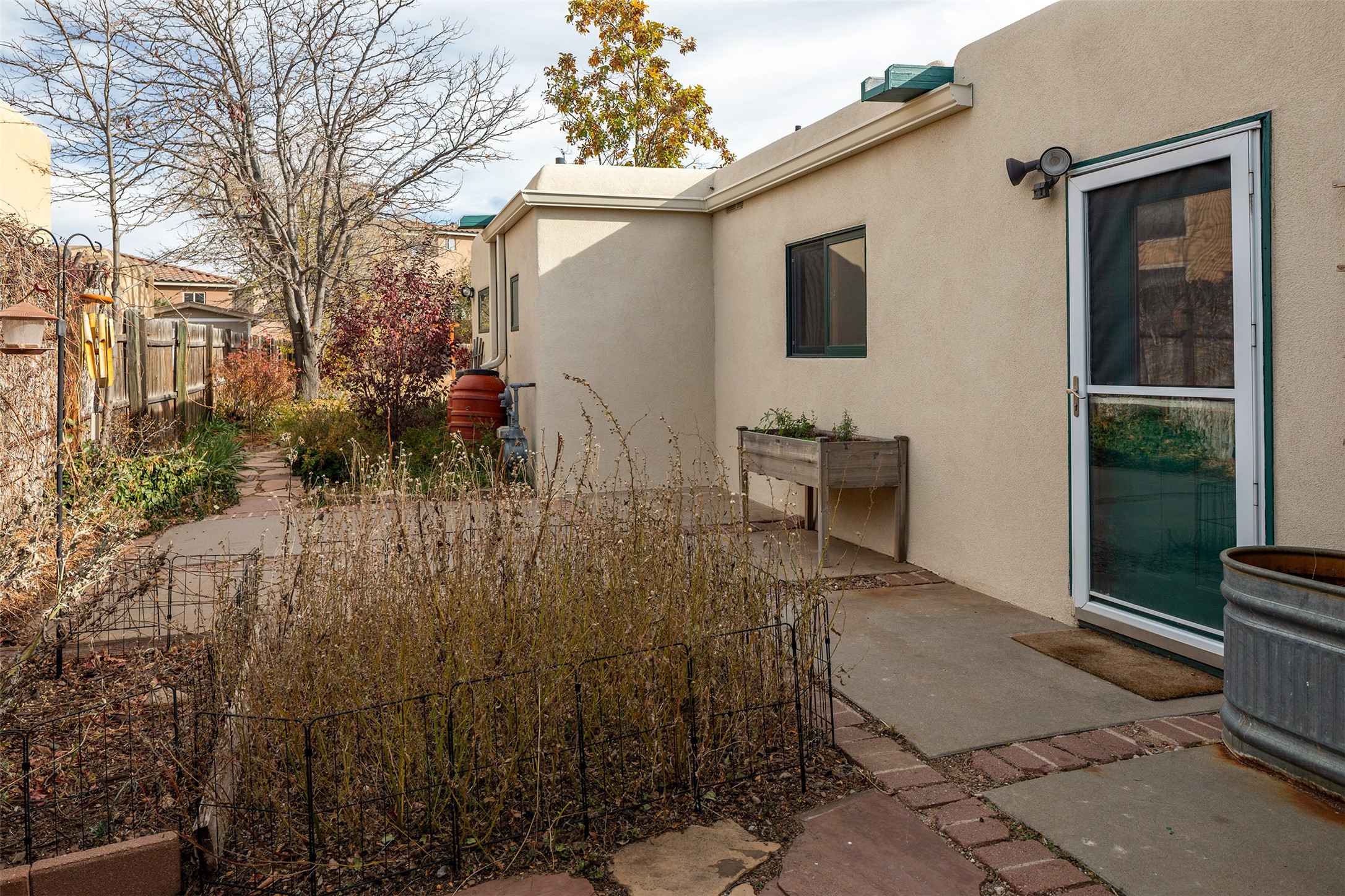 This charming 3 bedroom, 2 bath home in Las Acequias sits on a generous .23-acre lot and is truly move-in ready. Thoughtfully updated and filled with natural light, it offers both comfort and efficiency in a convenient southside location.Inside, the home enjoys beautiful light throughout the day--morning sun in the bedrooms and warm afternoon light in the living room. The bright galley kitchen opens to a private patio, perfect for enjoying your morning coffee. The spacious primary suite includes access to the backyard, a walk-in closet, and an updated full bath with newer fixtures. A tankless water heater and a Trane forced-air heating system add comfort and long-term value.Energy efficiency is a standout here. The owned solar panel system keeps electric bills extremely low. New gutters and rain barrels redirect water away from the home, protect the updated stucco, and provide a useful supply for the garden.The outdoor areas are a true highlight. The fenced front yard features native plants, herbs, flowers, and a mature apple tree. The oversized backyard--one of the largest in the neighborhood--offers endless possibilities. Enjoy two raised garden beds, additional plantings including wisteria, and ample room for entertaining, play, or future projects.Additional features include two full bathrooms with bathtubs, excellent storage throughout, a radon detection system, new bathroom vanities, and a one-car attached garage.This home offers space, efficiency, and an exceptional outdoor lifestyle--all in a well-maintained, move-in ready package.