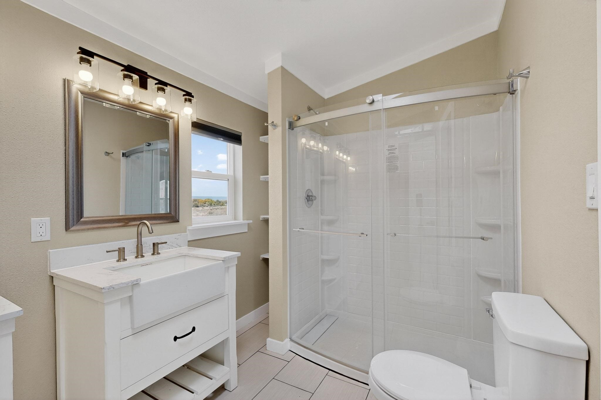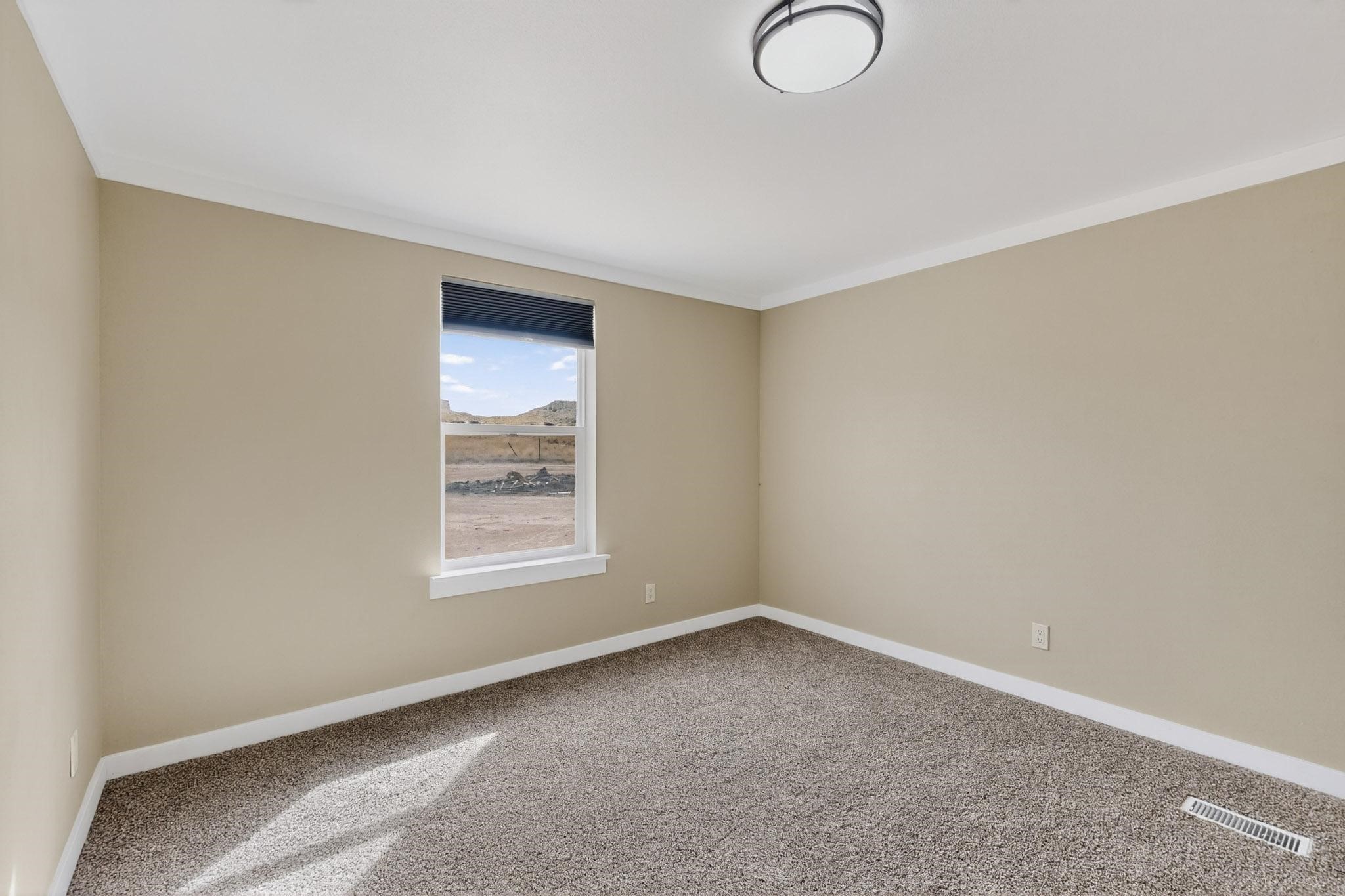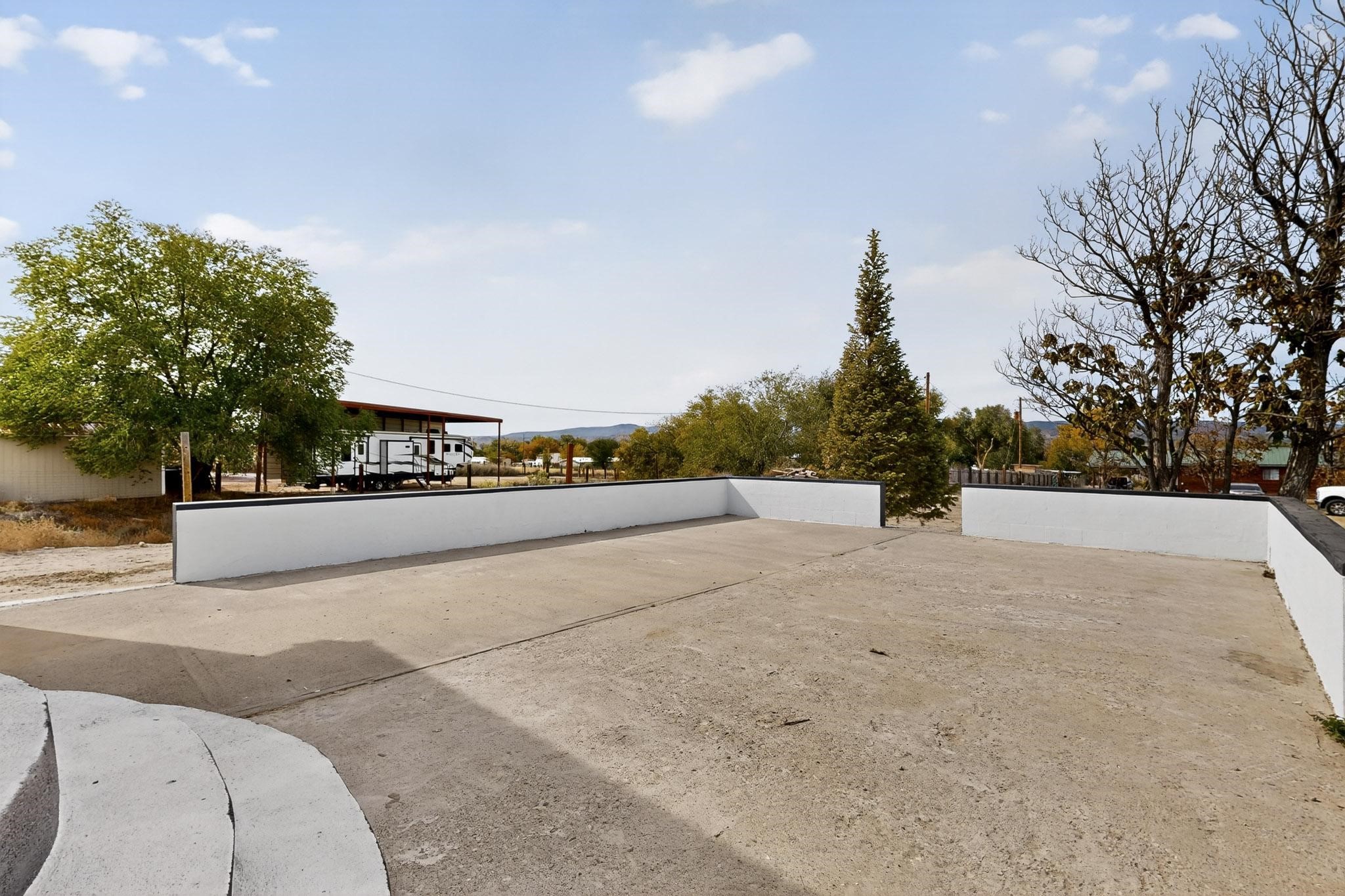 This beautifully remodeled 3-bedroom, 2 bath home offers modern comfort in a peaceful rural setting with spectacular views of the Jemez Mnts. Revel in the natural light that comes in through the 3 skylights. Enjoy a bonus room perfect for a home office or hobby space. Recent upgrades include new windows, new blinds, new roof, new tile flooring with plush carpet in the bedrooms, new lighting, and a new furnace and refrigerated air unit and new hot water heater. The kitchen has been thoughtfully redesigned with custom cabinetry, granite countertops and a new stainless appliance package.Home sits on a permanent foundation, with a new septic system and well improvements completed for peace of mind. Home also has an over sized 2-car garage. Property borders BLM land, providing privacy, open space and unmatched beauty right outside your door. Move-in ready and beautifully finished!!