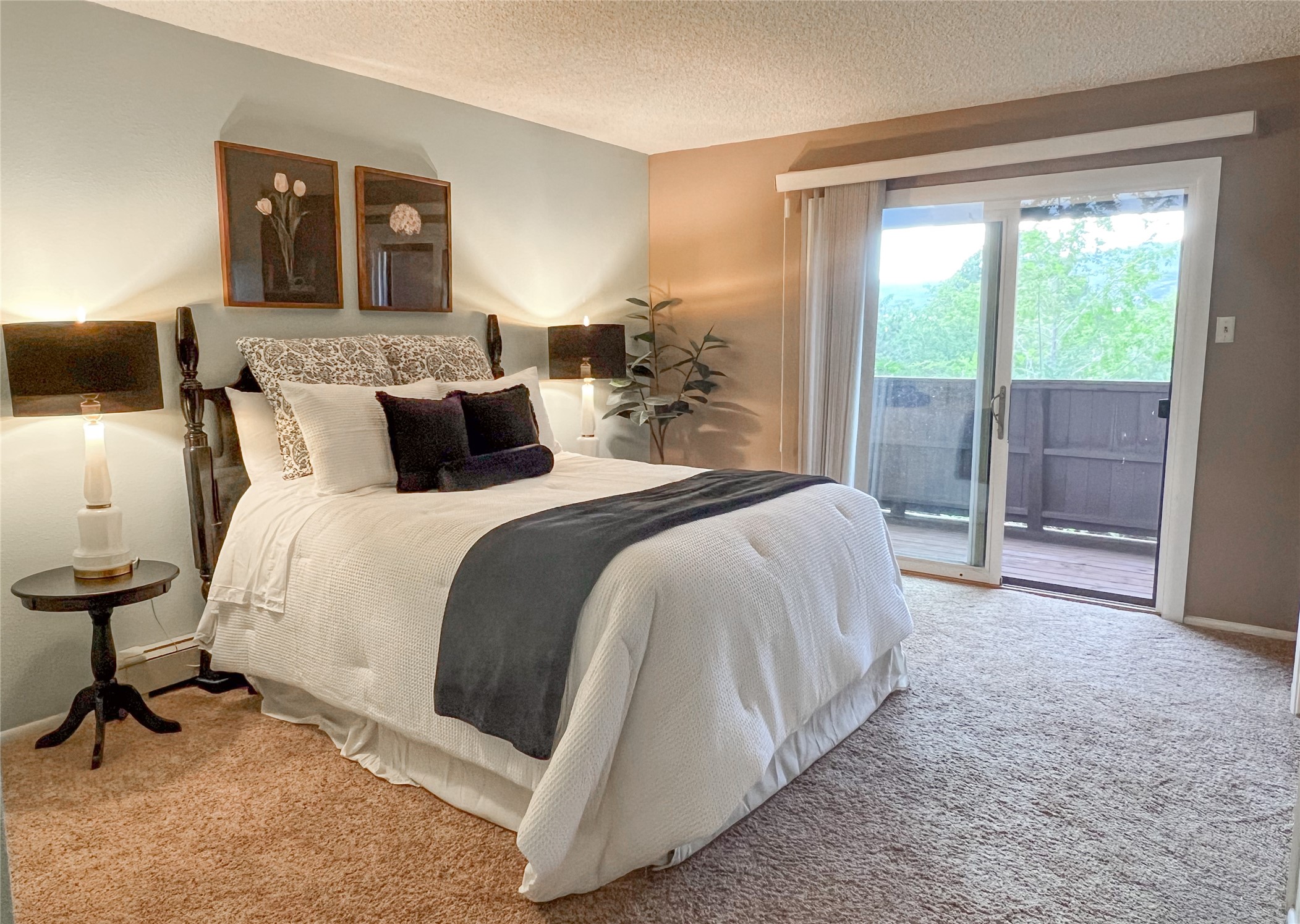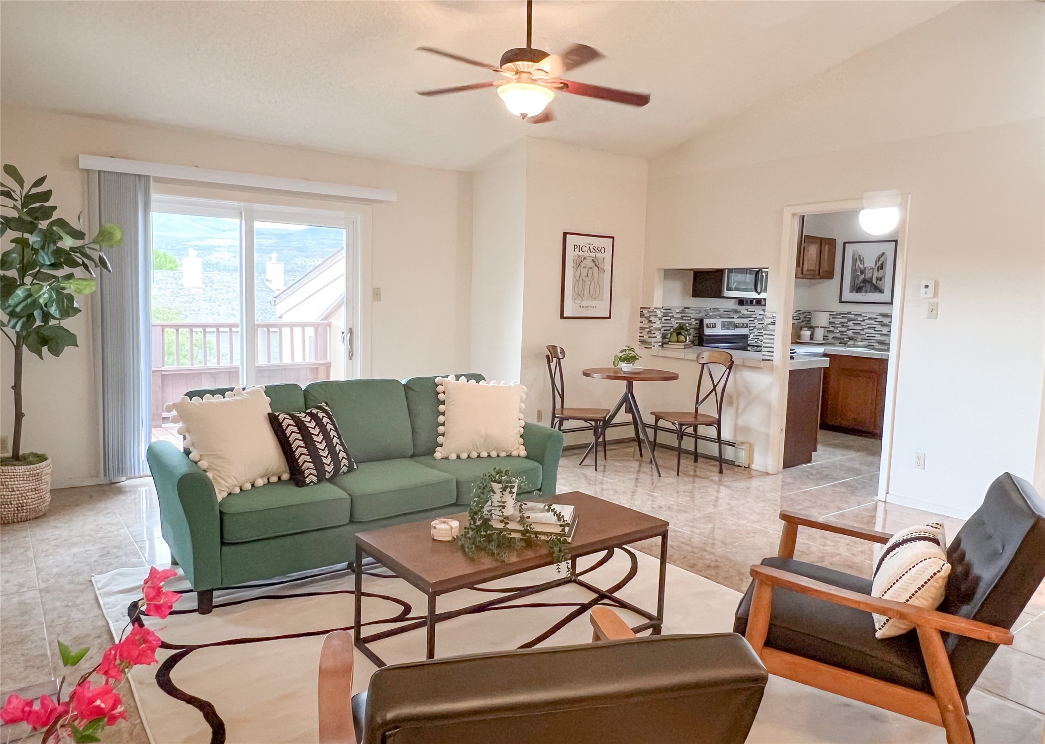Set in a prime Los Alamos location near Ashley Pond, this charming condo blends everyday ease with scenic beauty. The bright, open living room invites you to relax beneath abundant natural light and step out to a private deck overlooking Pajarito Mountain, ideal for sunrise coffee or evening sunsets. The kitchen offers generous cabinetry and a roomy pantry, thoughtfully arranged to make cooking and storage simple. The primary bedroom is a calm retreat with two large closets and an en suite bath featuring a newly refreshed shower surround. A second deck off this suite provides a peaceful spot to unwind outdoors. Additional features include a convenient laundry closet, a one-car garage, and an assigned parking space. The condo association handles exterior maintenance, roof care, insurance, and utilities, including water, sewer, and trash, so that you can enjoy a low-maintenance lifestyle. Whether you're seeking a full-time residence or a lock-and-leave home steps from downtown shops and restaurants, this condo offers a rare combination of comfort, convenience, and captivating mountain views. Schedule a private showing today!