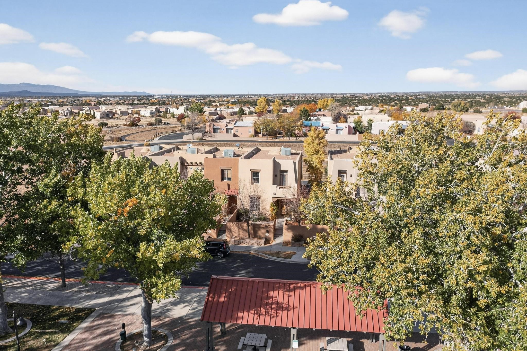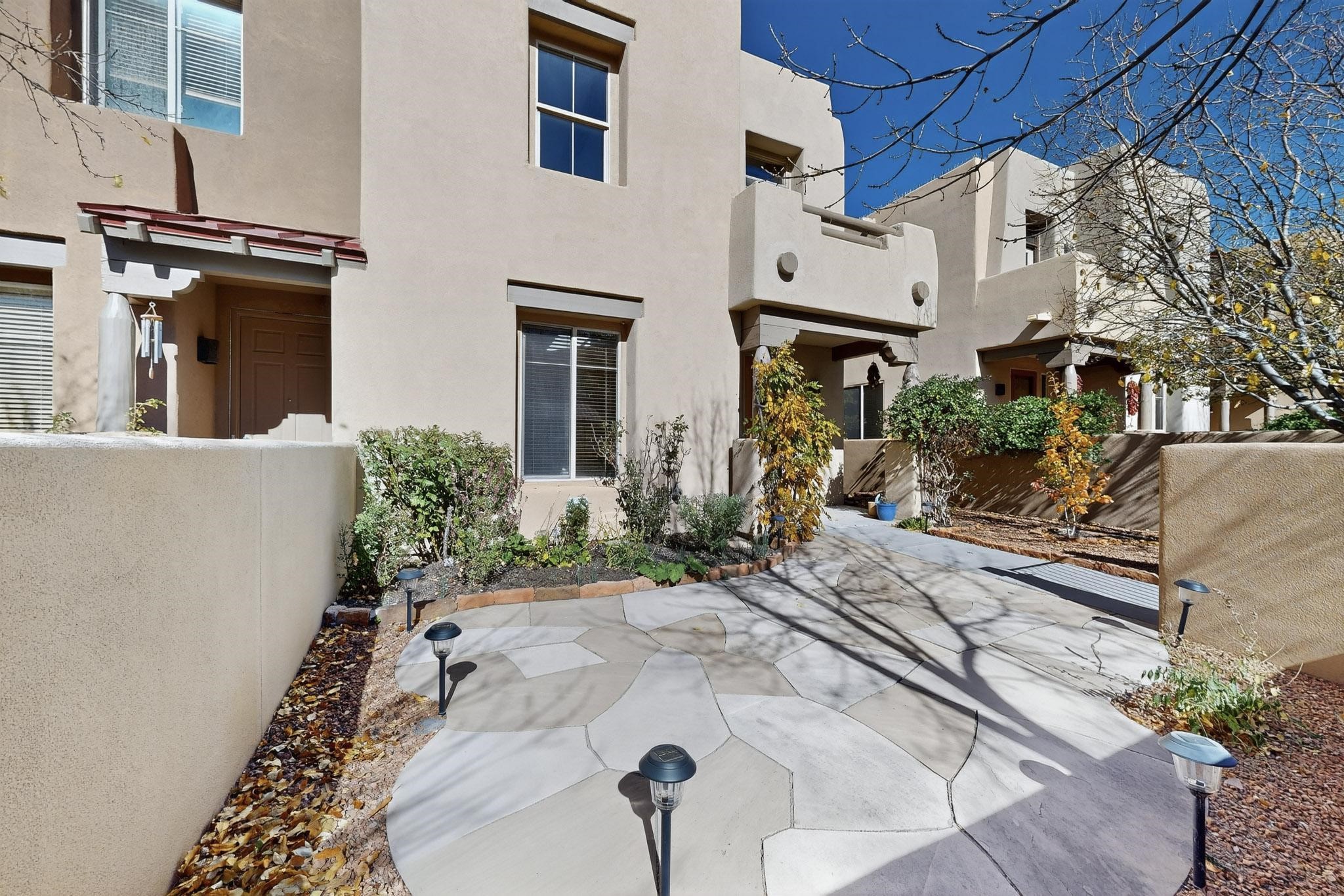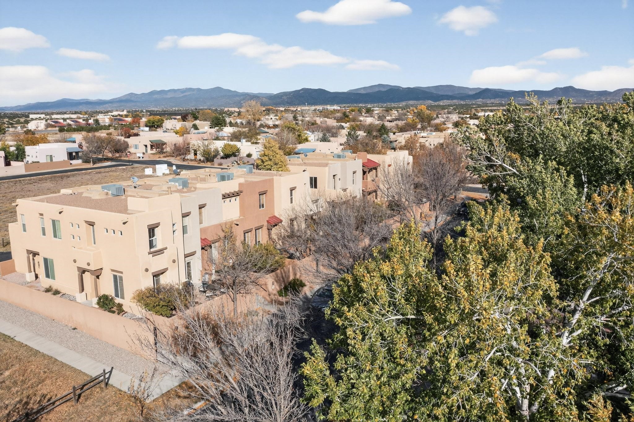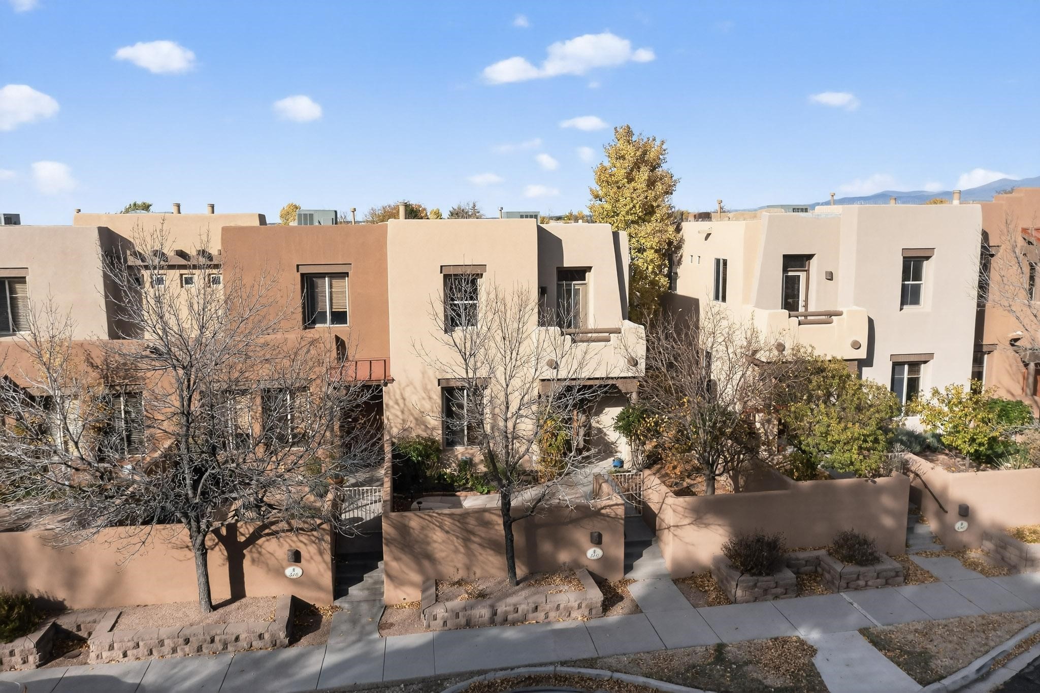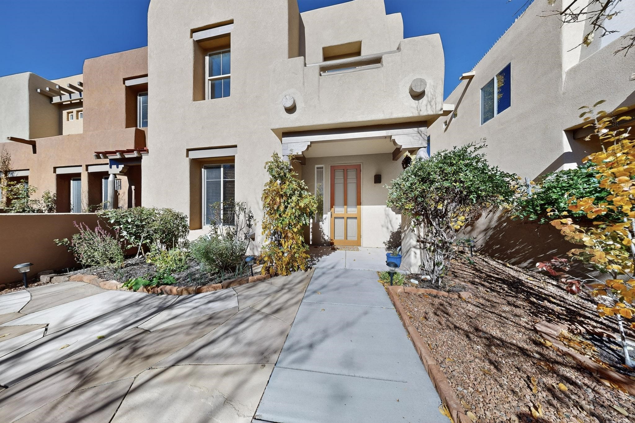 Have you been searching for your dream home in Rancho Viejo? You've come to the right place! This is an end unit home that has been meticulously cared for. The front and side yard have been nicely landscaped and there is a custom-made front entry screen door to welcome you inside. This the Nambe floorplan which boasts a soaring 19 ft. ceiling in the living room with viga accents, along with a diamond plaster kiva gas fireplace to complete the coziness of the home. Downstairs has tiled floors while the upstairs has a neutral color of carpet. There is a half bath downstairs, along with alaundry room with additional storage. The garage has more storage with built in shelving securely attached to the wall. Upstairs are the two bedrooms, two baths and loft area that can have a multitude of uses. The loft also has a door, with a magnetic screen, leading outside to a nice deck for you to enjoy the southern views and the park across the street. The primary bedroom also has a door, with a magnetic screen, leading to a larger deck and pergola for you to enjoy the northern views. The primary closet also has additional shelving. The HOA has recently had the roof replaced and ownerreplaced the water heater and PRV in 2025. With easy access into the subdivision, this home is close to restaurants, schools and a community park with connecting biking/walking trails.