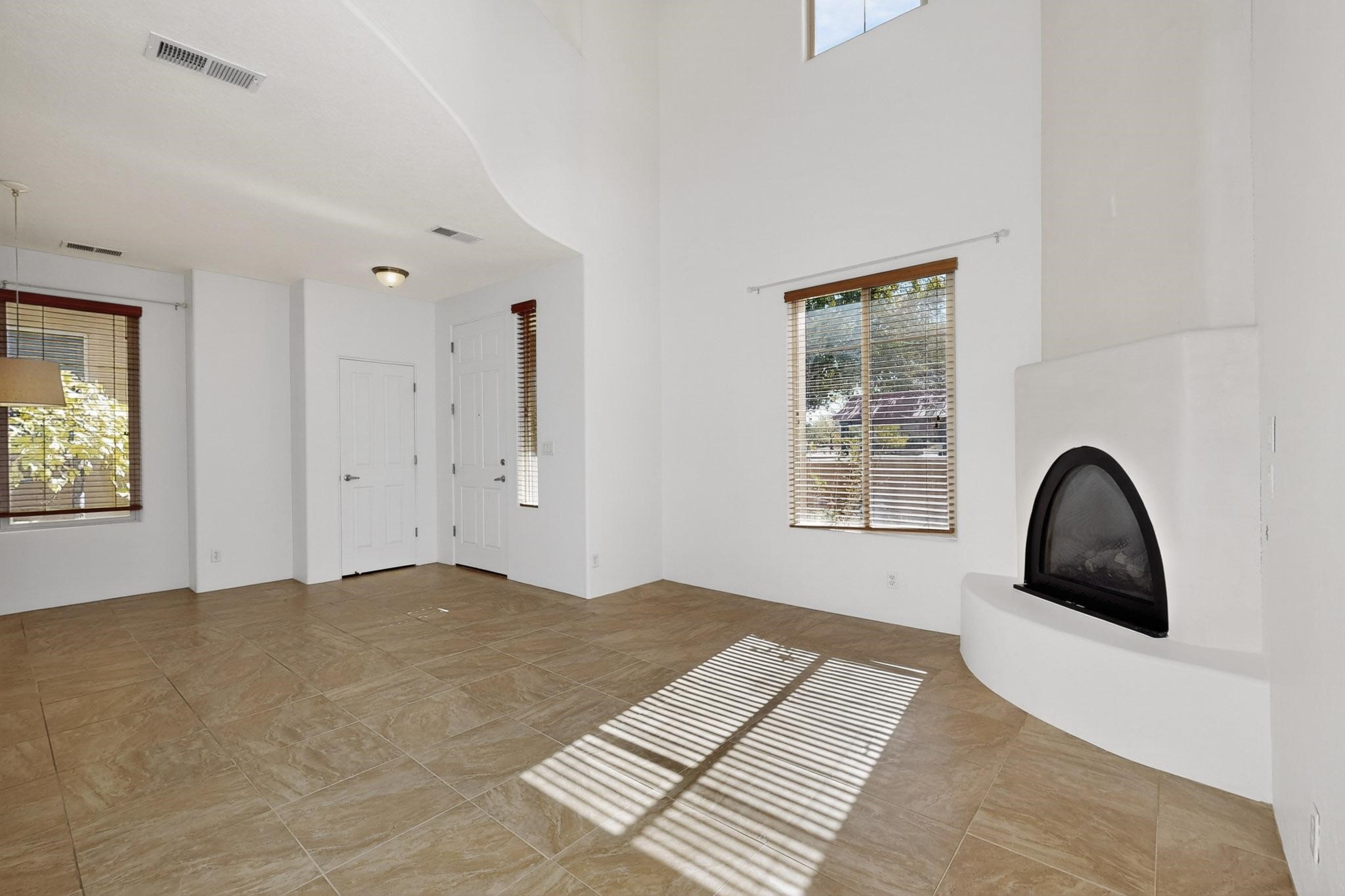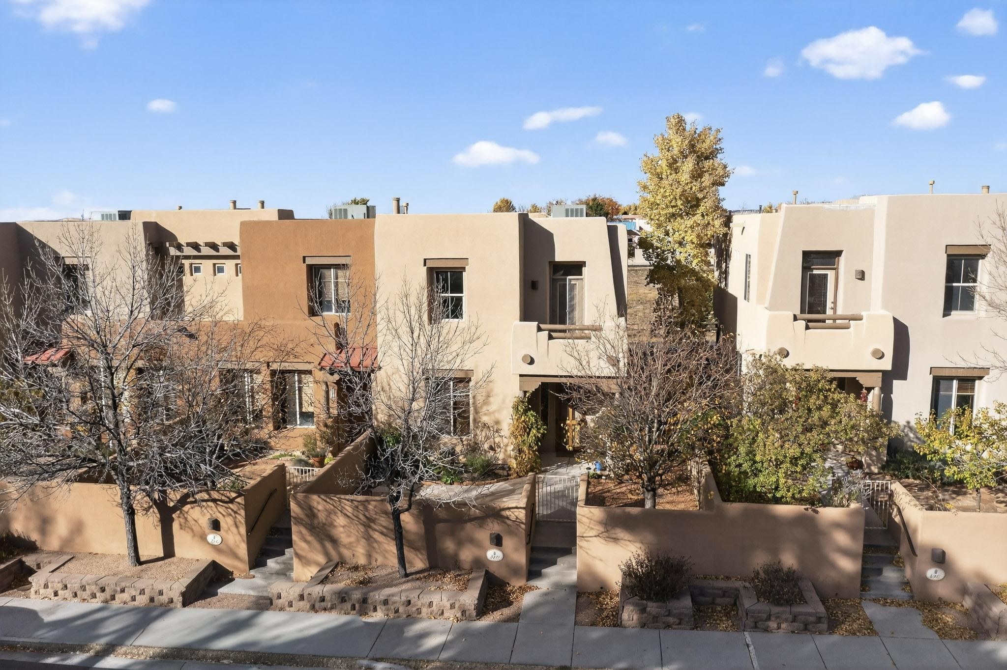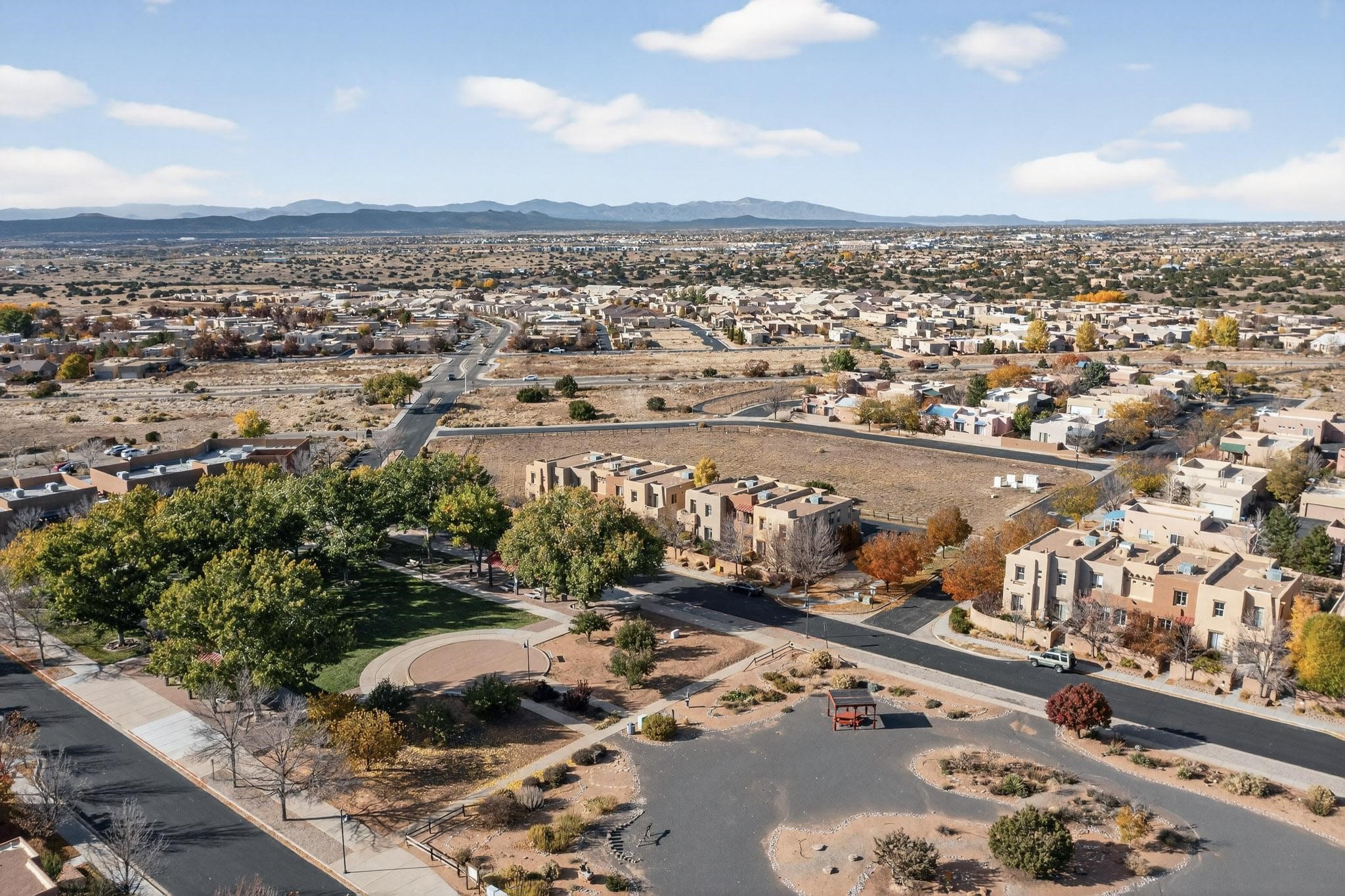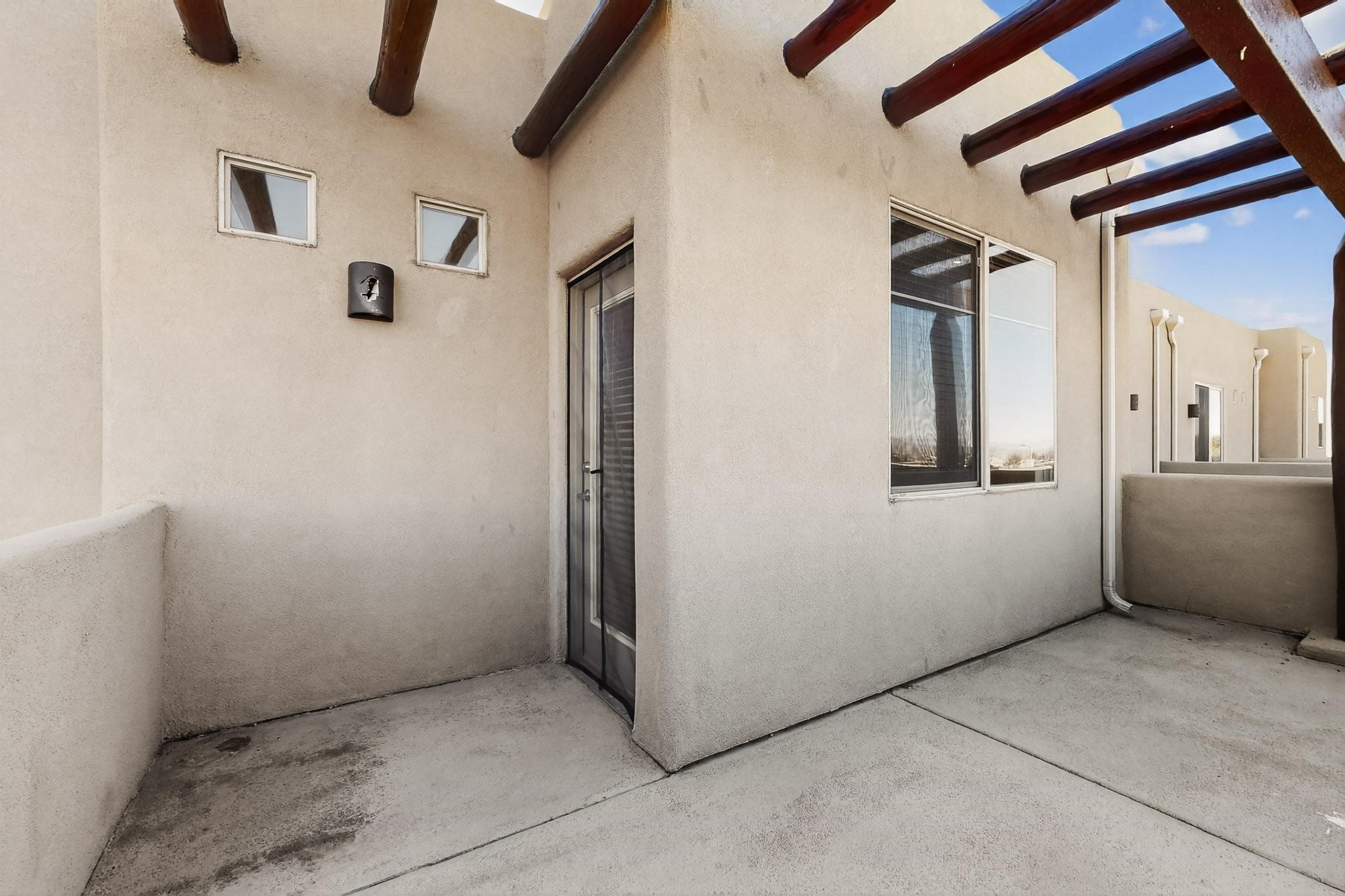 Have you been searching for your dream home in Rancho Viejo? You've come to the right place! This is an end unit home that has been meticulously cared for. The front and side yard have been nicely landscaped and there is a custom-made front entry screen door to welcome you inside. This the Nambe floorplan which boasts a soaring 19 ft. ceiling in the living room with viga accents, along with a diamond plaster kiva gas fireplace to complete the coziness of the home. Downstairs has tiled floors while the upstairs has a neutral color of carpet. There is a half bath downstairs, along with alaundry room with additional storage. The garage has more storage with built in shelving securely attached to the wall. Upstairs are the two bedrooms, two baths and loft area that can have a multitude of uses. The loft also has a door, with a magnetic screen, leading outside to a nice deck for you to enjoy the southern views and the park across the street. The primary bedroom also has a door, with a magnetic screen, leading to a larger deck and pergola for you to enjoy the northern views. The primary closet also has additional shelving. The HOA has recently had the roof replaced and ownerreplaced the water heater and PRV in 2025. With easy access into the subdivision, this home is close to restaurants, schools and a community park with connecting biking/walking trails.