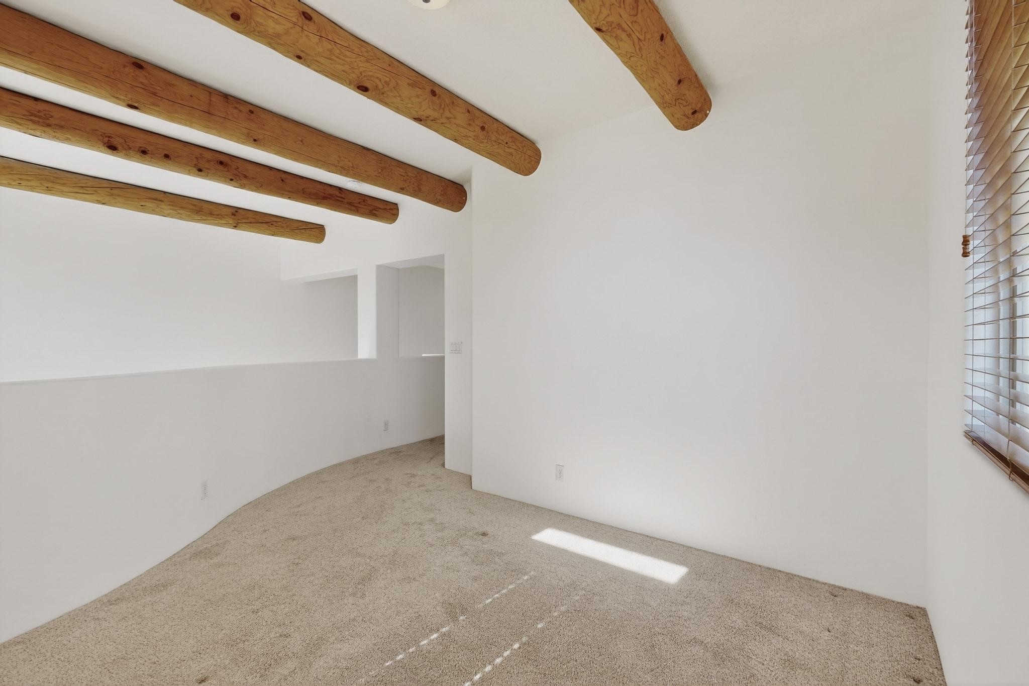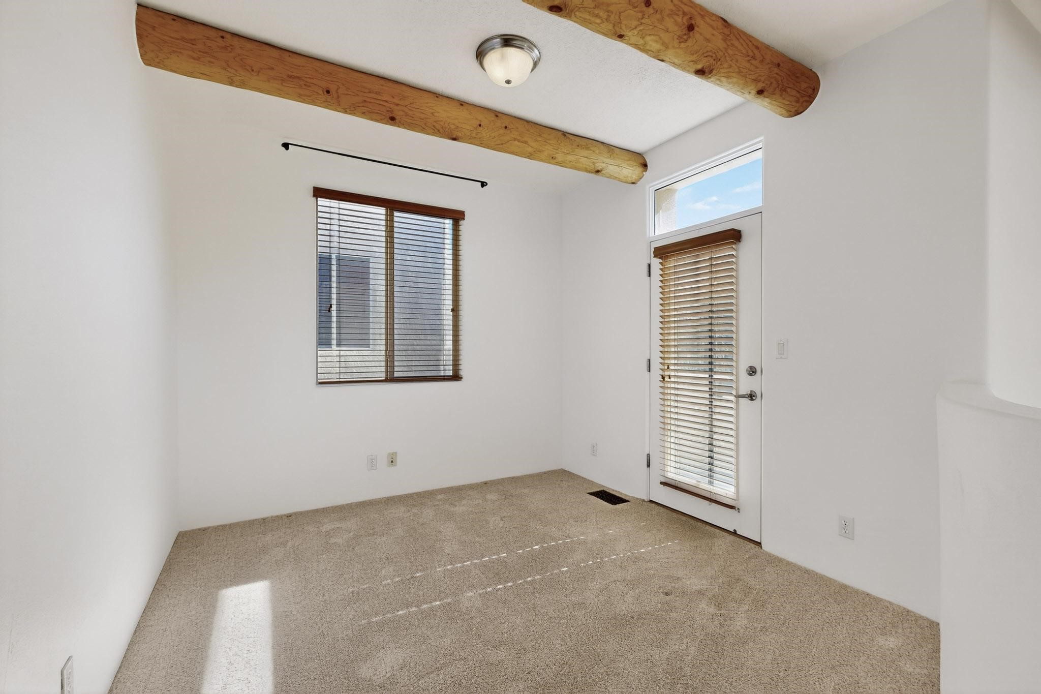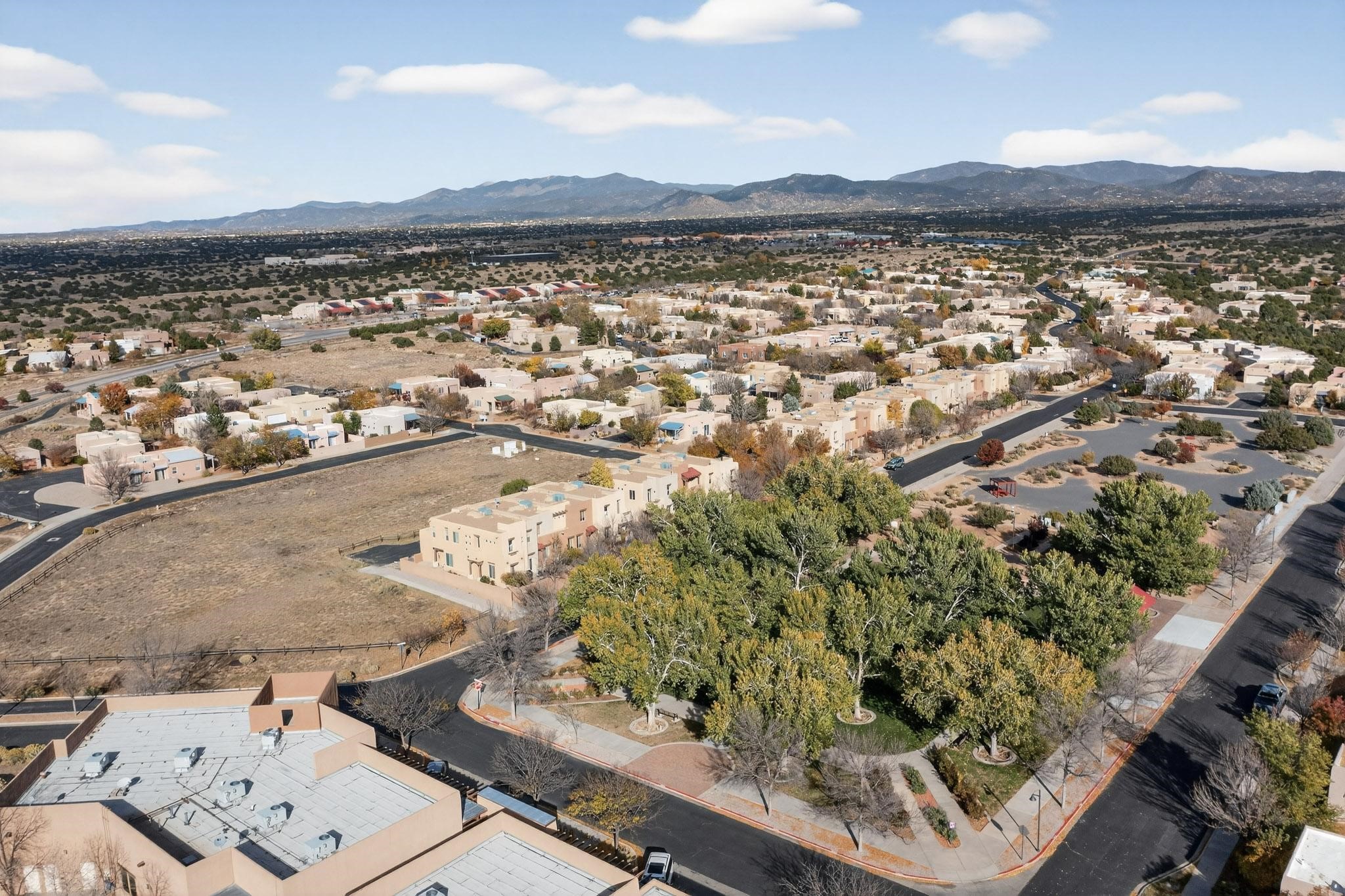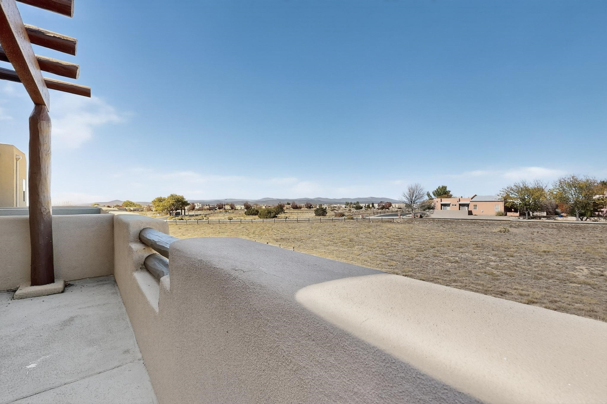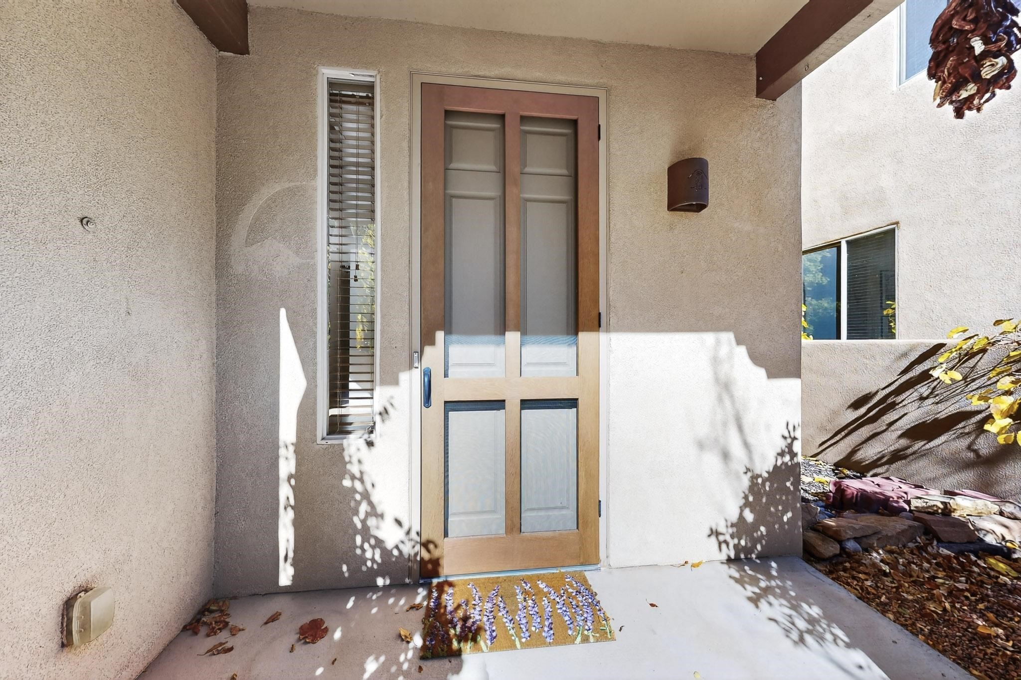 Have you been searching for your dream home in Rancho Viejo? You've come to the right place! This is an end unit home that has been meticulously cared for. The front and side yard have been nicely landscaped and there is a custom-made front entry screen door to welcome you inside. This the Nambe floorplan which boasts a soaring 19 ft. ceiling in the living room with viga accents, along with a diamond plaster kiva gas fireplace to complete the coziness of the home. Downstairs has tiled floors while the upstairs has a neutral color of carpet. There is a half bath downstairs, along with alaundry room with additional storage. The garage has more storage with built in shelving securely attached to the wall. Upstairs are the two bedrooms, two baths and loft area that can have a multitude of uses. The loft also has a door, with a magnetic screen, leading outside to a nice deck for you to enjoy the southern views and the park across the street. The primary bedroom also has a door, with a magnetic screen, leading to a larger deck and pergola for you to enjoy the northern views. The primary closet also has additional shelving. The HOA has recently had the roof replaced and ownerreplaced the water heater and PRV in 2025. With easy access into the subdivision, this home is close to restaurants, schools and a community park with connecting biking/walking trails.
