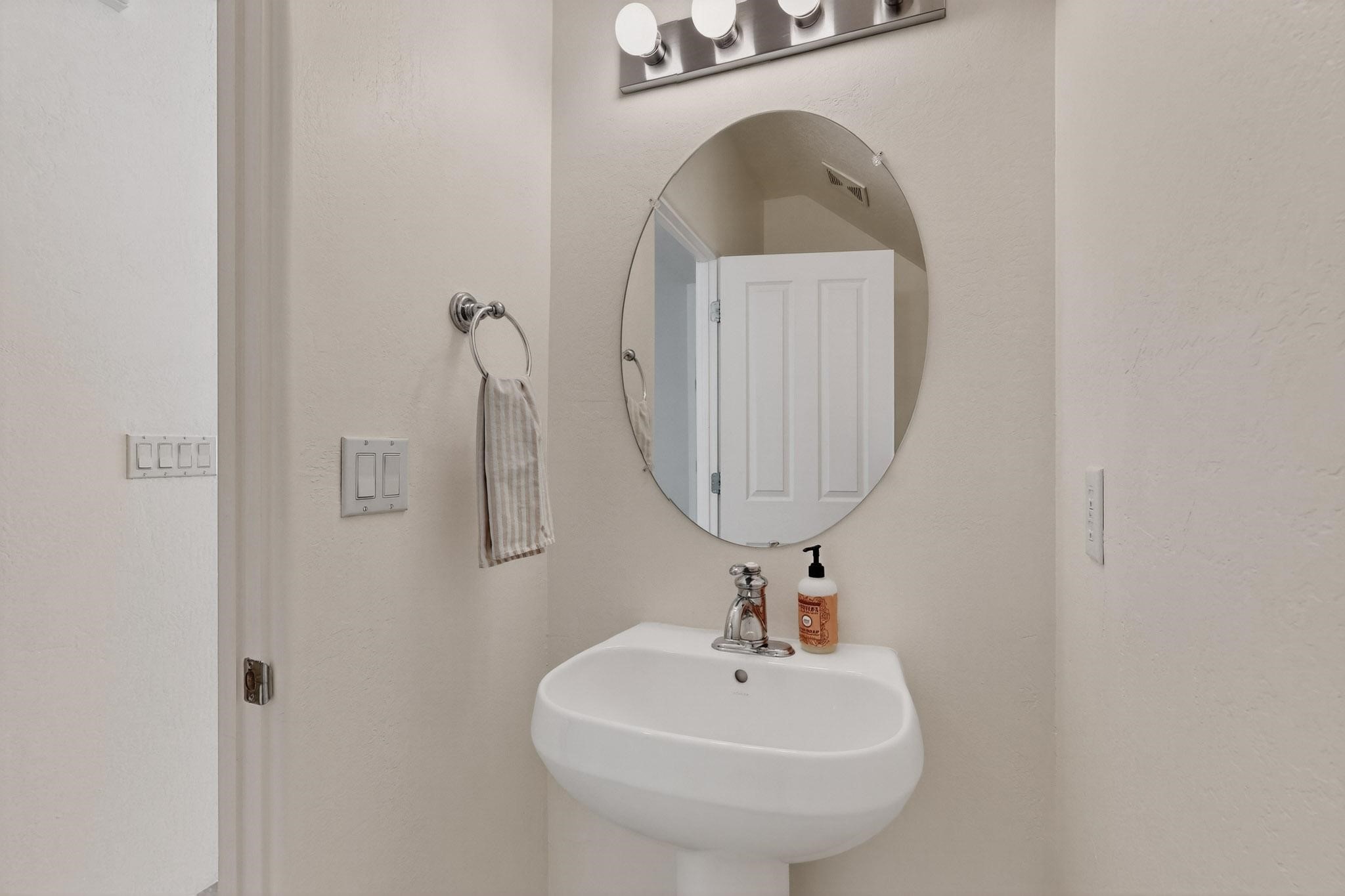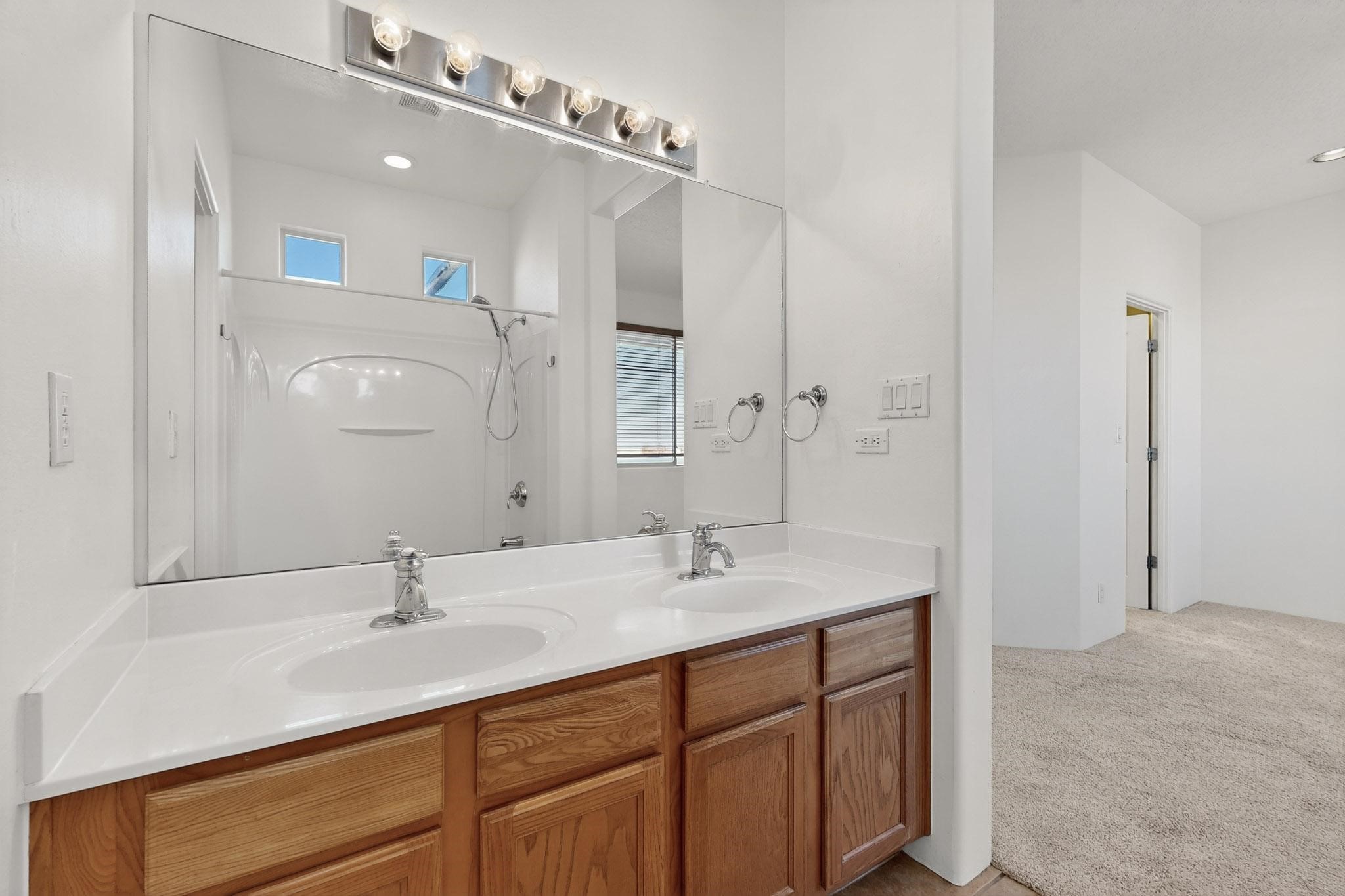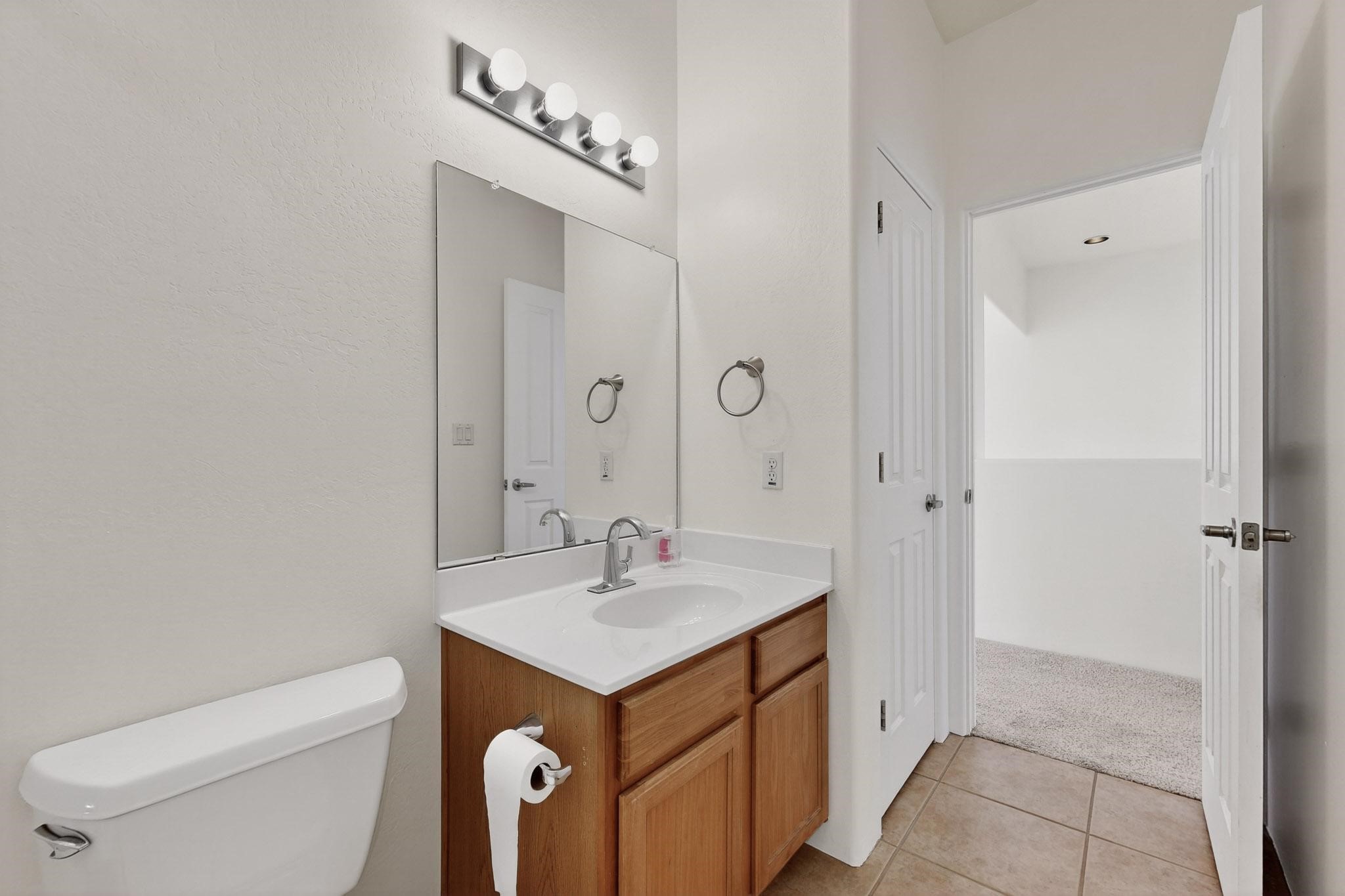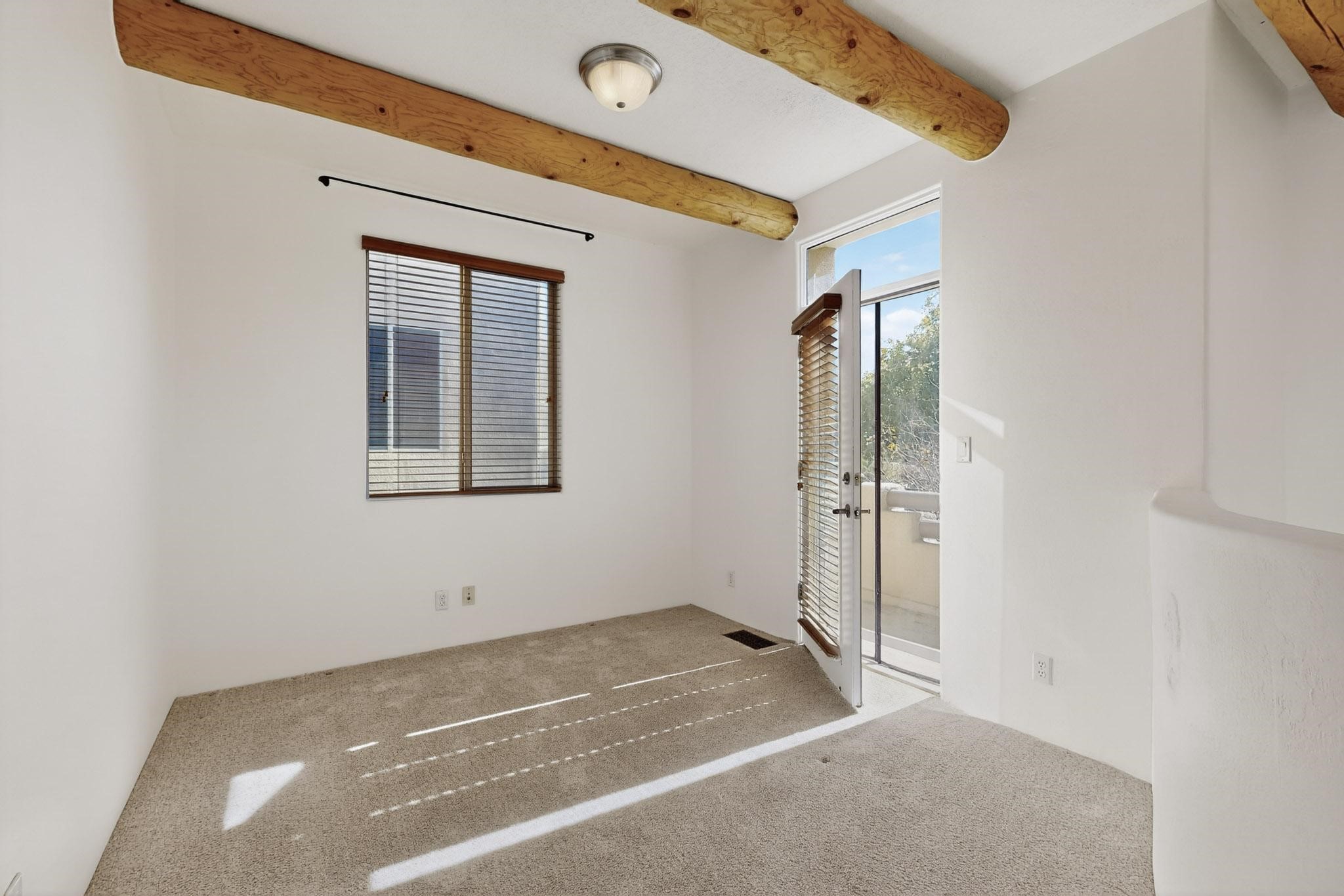Have you been searching for your dream home in Rancho Viejo? You've come to the right place! This is an end unit home that has been meticulously cared for. The front and side yard have been nicely landscaped and there is a custom-made front entry screen door to welcome you inside. This the Nambe floorplan which boasts a soaring 19 ft. ceiling in the living room with viga accents, along with a diamond plaster kiva gas fireplace to complete the coziness of the home. Downstairs has tiled floors while the upstairs has a neutral color of carpet. There is a half bath downstairs, along with alaundry room with additional storage. The garage has more storage with built in shelving securely attached to the wall. Upstairs are the two bedrooms, two baths and loft area that can have a multitude of uses. The loft also has a door, with a magnetic screen, leading outside to a nice deck for you to enjoy the southern views and the park across the street. The primary bedroom also has a door, with a magnetic screen, leading to a larger deck and pergola for you to enjoy the northern views. The primary closet also has additional shelving. The HOA has recently had the roof replaced and ownerreplaced the water heater and PRV in 2025. With easy access into the subdivision, this home is close to restaurants, schools and a community park with connecting biking/walking trails.
