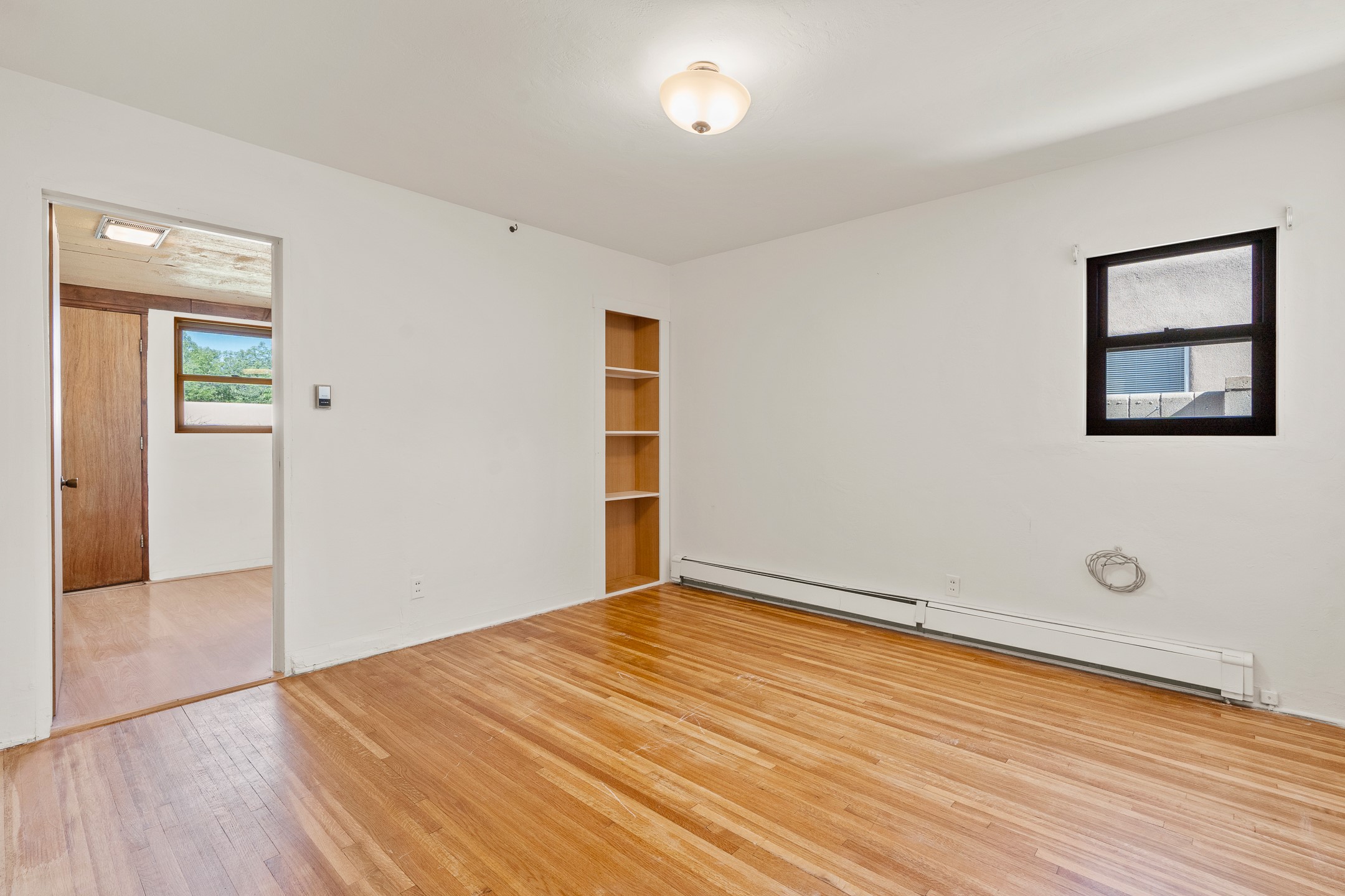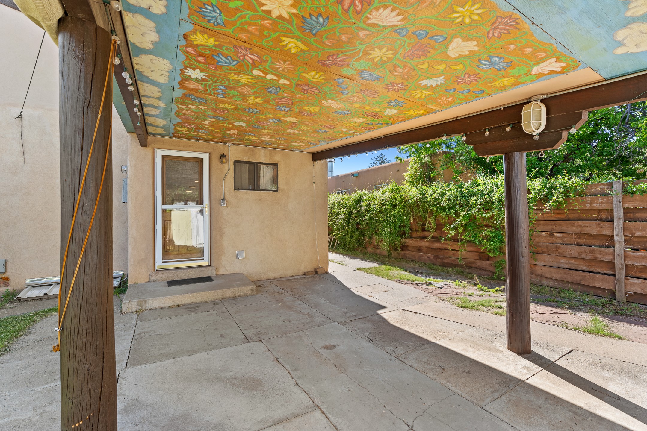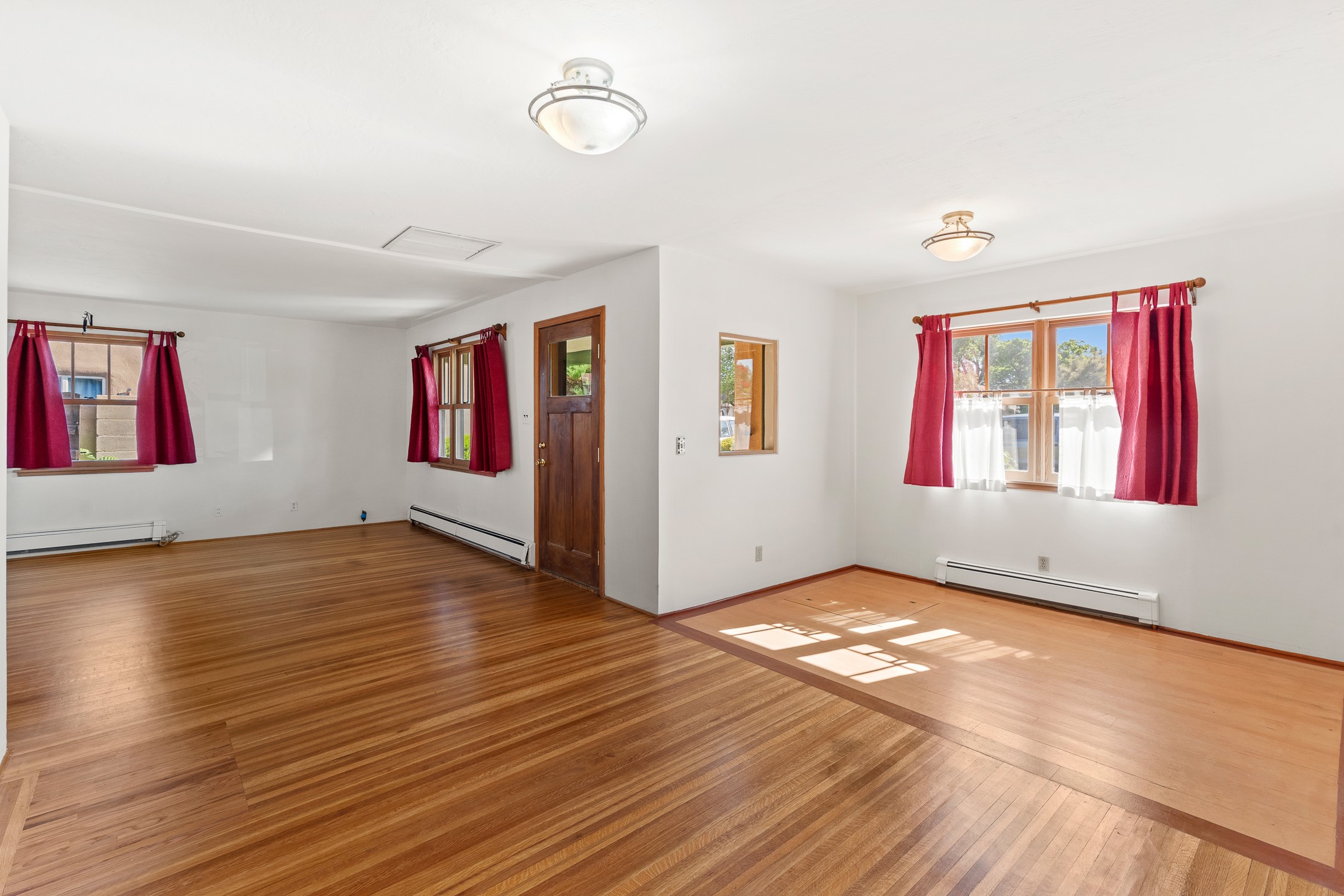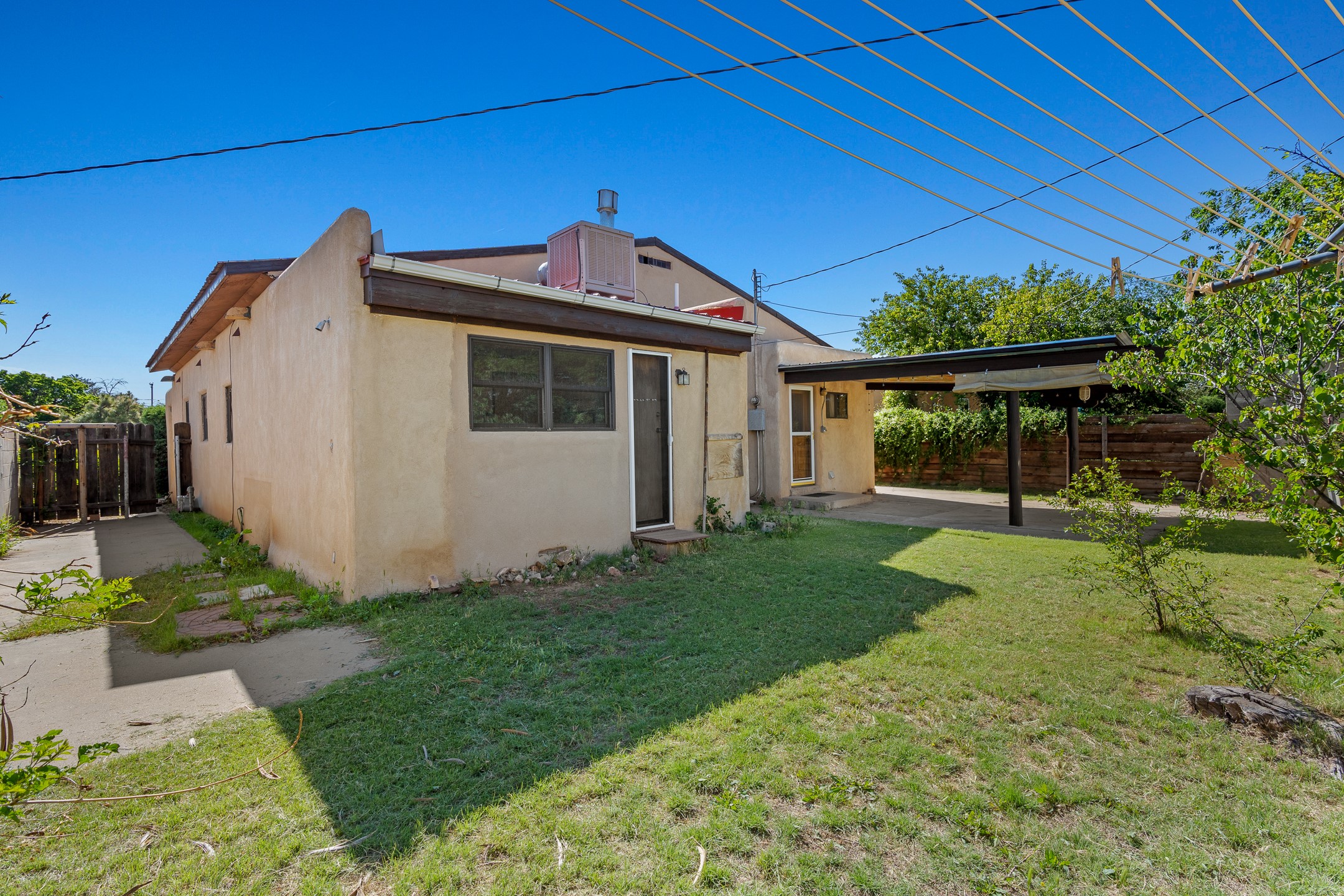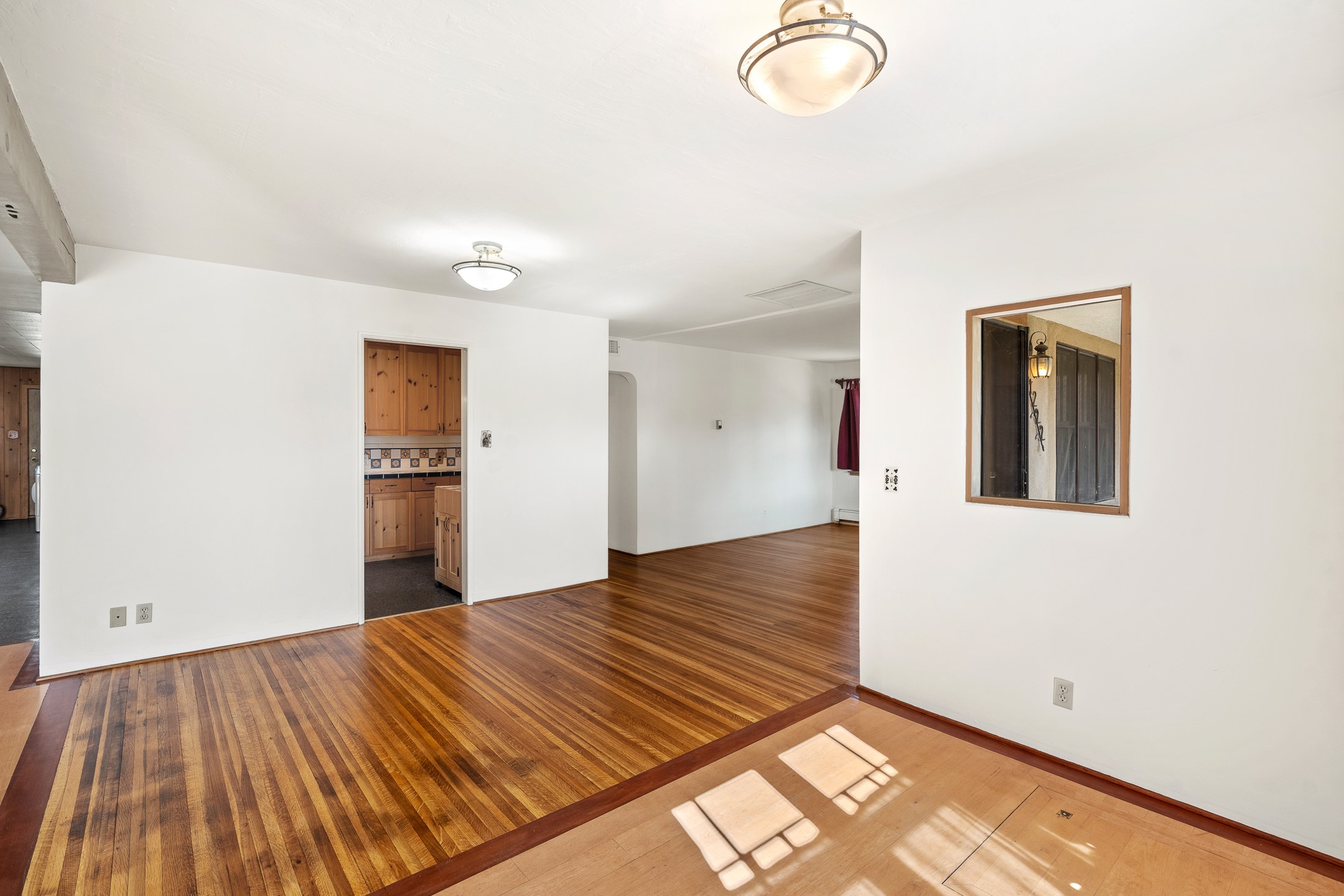 Charming and versatile single-level home nestled in the highly sought-after Casa Alegre neighborhood. Back on the market with significantly improved price. This property stands out as a unique opportunity, featuring multiple living areas and exceptional flexibility for the modern homeowner. This generous residence offers three bedrooms and two bathrooms, complemented by a massive 10.5 x 27 foot bonus room. The interior includes dedicated family, living, and dining rooms, all boasting beautiful hardwood flooring throughout the main living areas. he oversized bonus space features direct access, presenting enormous possibilities. It's perfectly suited for a private art studio, home occupancy business, large gym, or a dedicated multi-generational living suite. Santa Fe Lifestyle at Your Doorstep. Enjoy true convenience with easy access to local shopping and dining. Best of all, the home is ideally situated near the Santa Fe River Trail and the Acequia Trail, providing direct, car-free routes straight to the vibrant Railyard District and historic downtown. The property features a spacious, fenced backyard and a covered portal, creating an ideal setting for outdoor entertaining and relaxation. Enjoy year-round comfort with reliable hot water baseboard heating and evaporative cooling.This motivated seller opportunity won't last long--schedule your showing today!