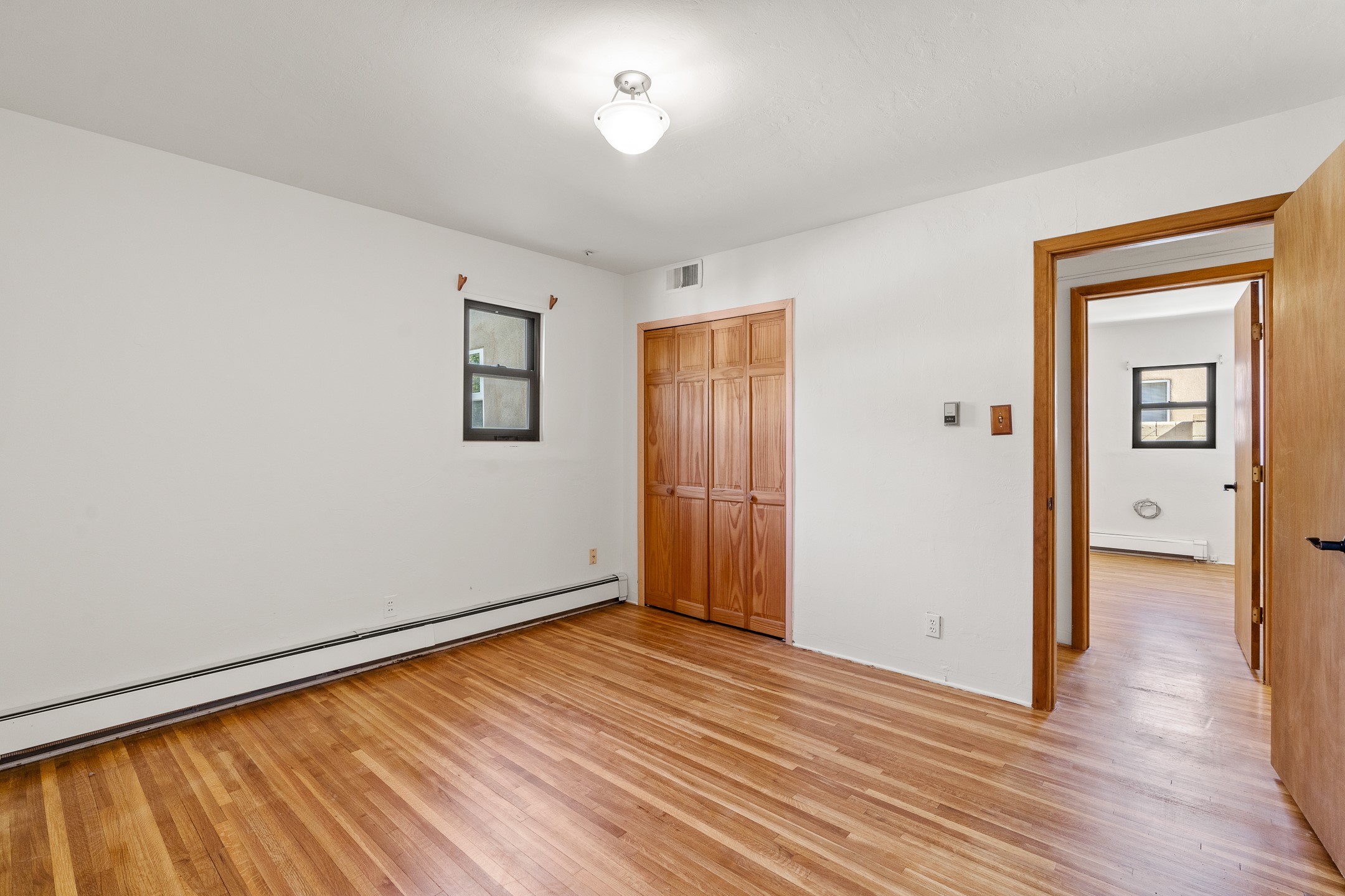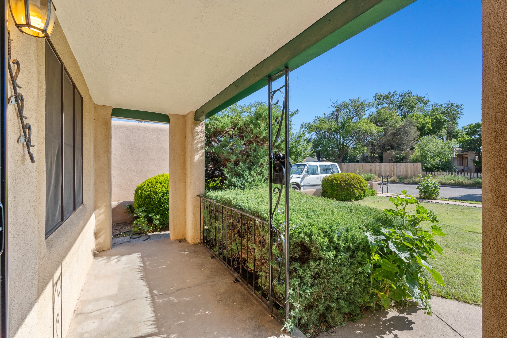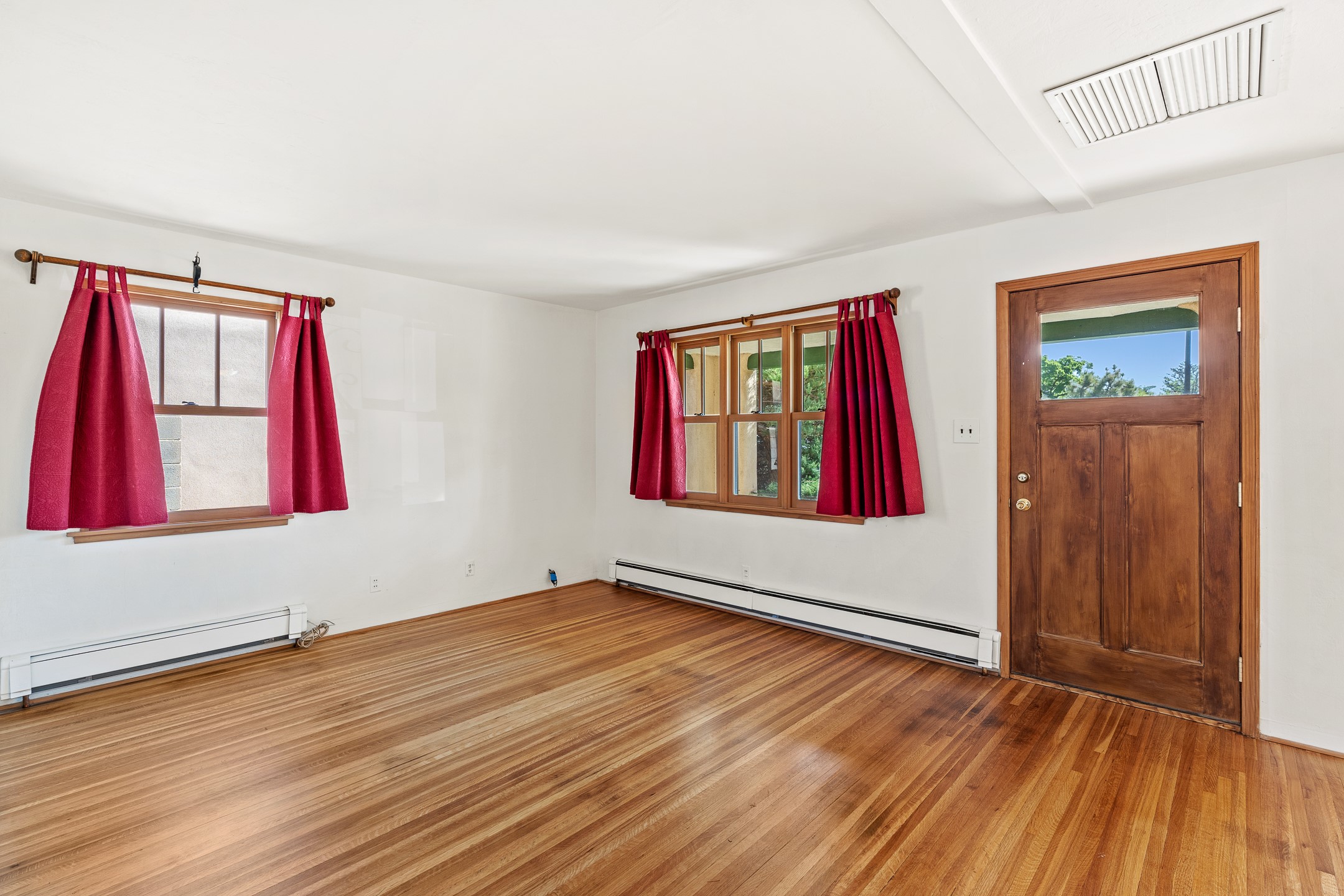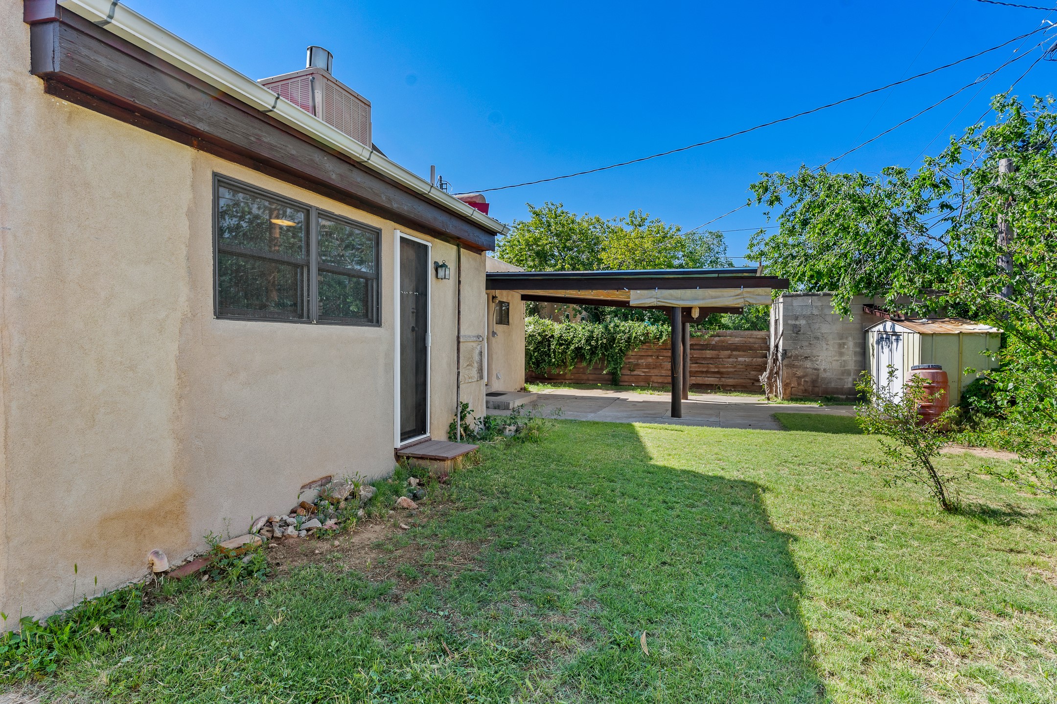 Charming and versatile single-level home nestled in the highly sought-after Casa Alegre neighborhood. Back on the market with significantly improved price. This property stands out as a unique opportunity, featuring multiple living areas and exceptional flexibility for the modern homeowner. This generous residence offers three bedrooms and two bathrooms, complemented by a massive 10.5 x 27 foot bonus room. The interior includes dedicated family, living, and dining rooms, all boasting beautiful hardwood flooring throughout the main living areas. he oversized bonus space features direct access, presenting enormous possibilities. It's perfectly suited for a private art studio, home occupancy business, large gym, or a dedicated multi-generational living suite. Santa Fe Lifestyle at Your Doorstep. Enjoy true convenience with easy access to local shopping and dining. Best of all, the home is ideally situated near the Santa Fe River Trail and the Acequia Trail, providing direct, car-free routes straight to the vibrant Railyard District and historic downtown. The property features a spacious, fenced backyard and a covered portal, creating an ideal setting for outdoor entertaining and relaxation. Enjoy year-round comfort with reliable hot water baseboard heating and evaporative cooling.This motivated seller opportunity won't last long--schedule your showing today!