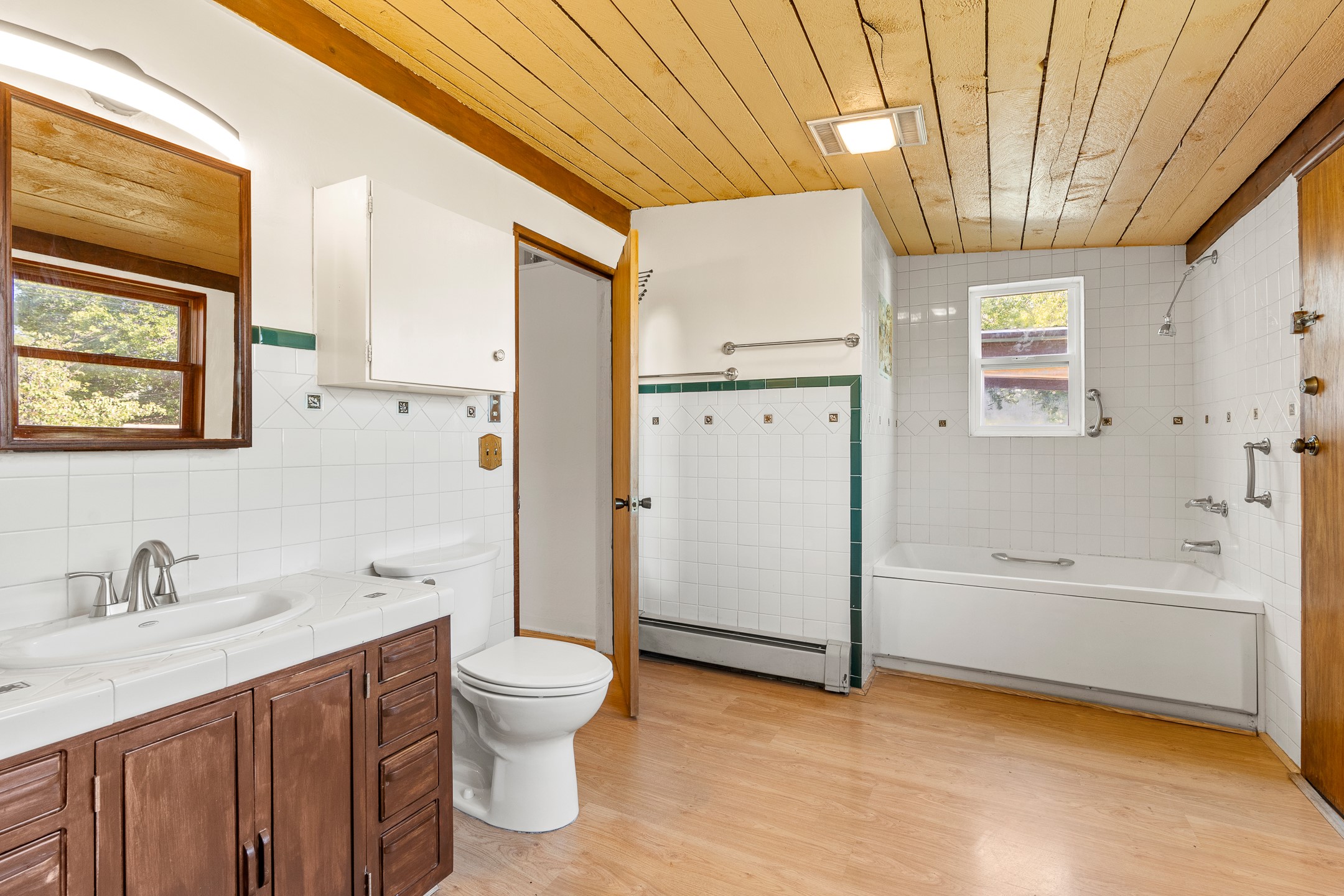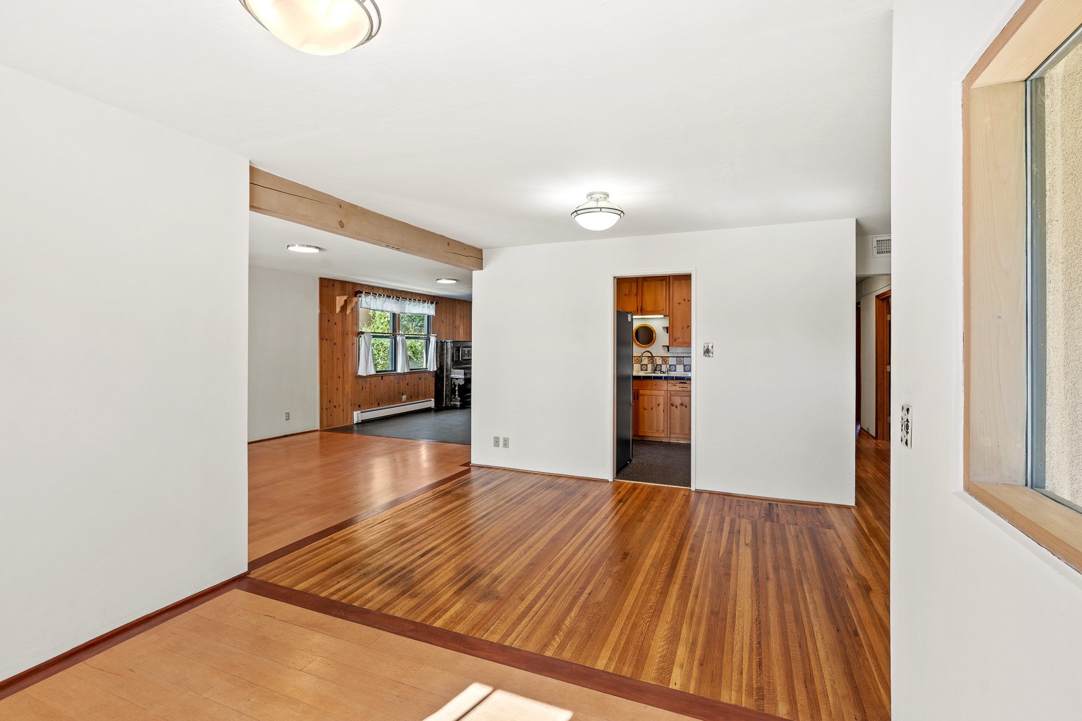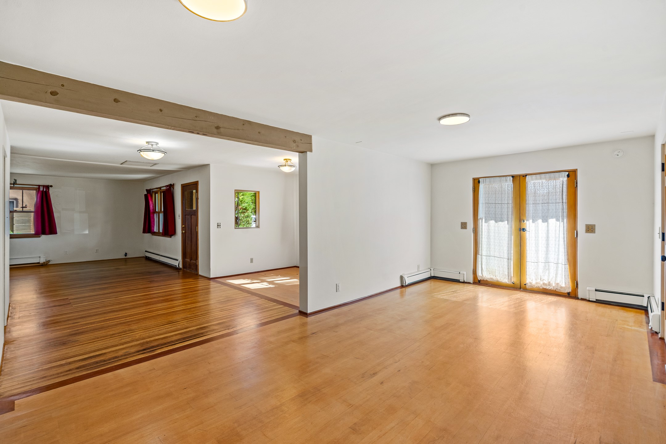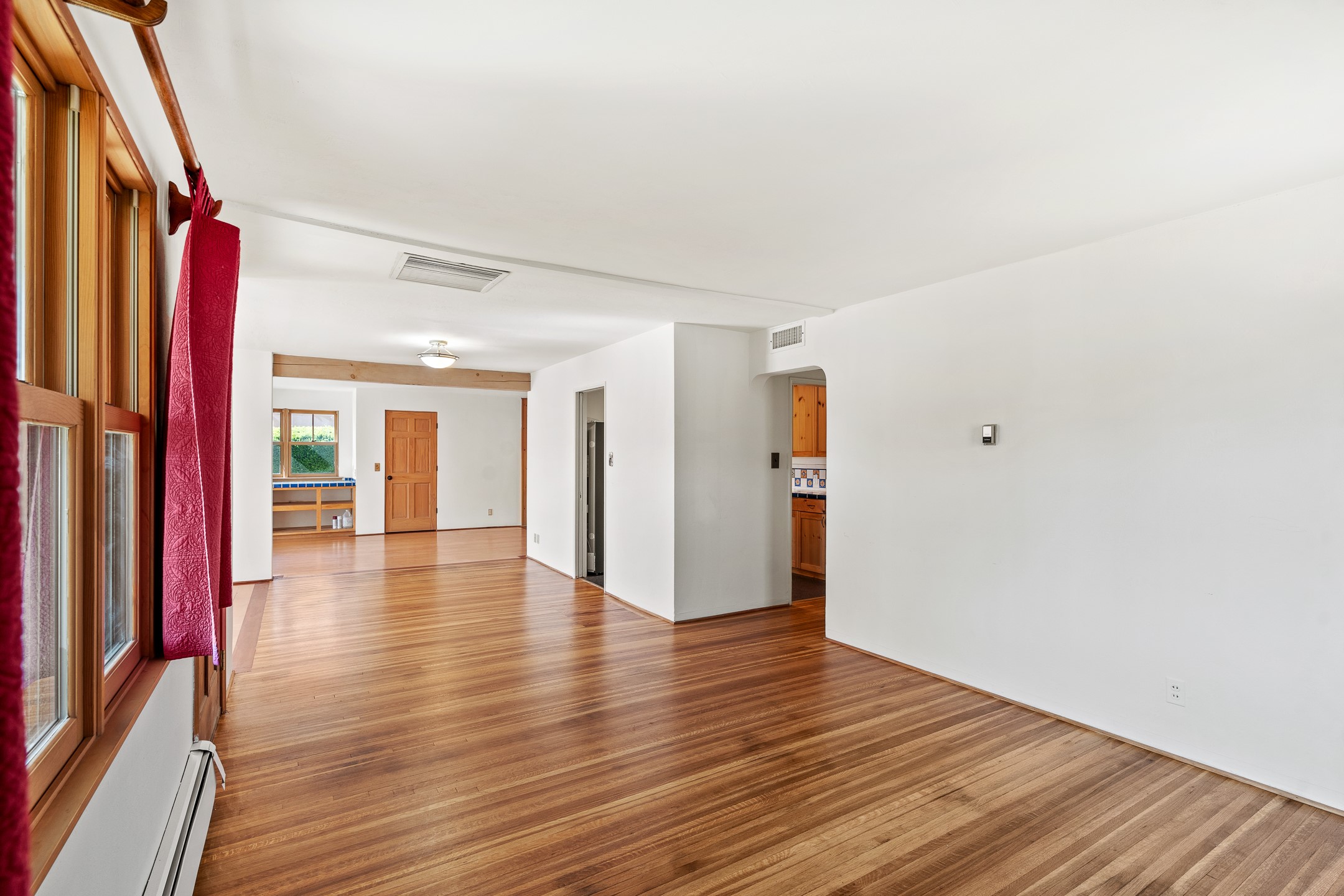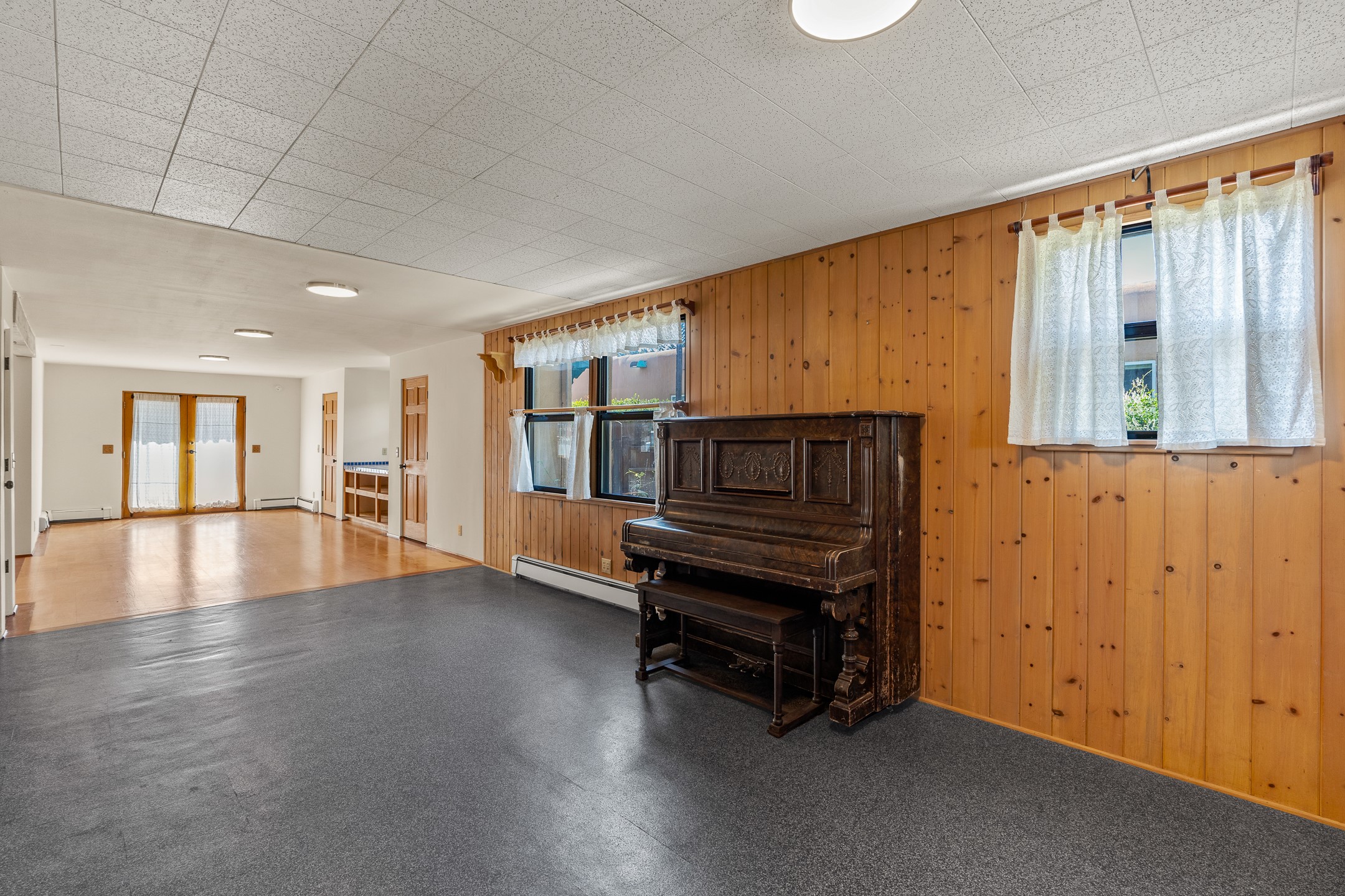 Charming and versatile single-level home nestled in the highly sought-after Casa Alegre neighborhood. Back on the market with significantly improved price. This property stands out as a unique opportunity, featuring multiple living areas and exceptional flexibility for the modern homeowner. This generous residence offers three bedrooms and two bathrooms, complemented by a massive 10.5 x 27 foot bonus room. The interior includes dedicated family, living, and dining rooms, all boasting beautiful hardwood flooring throughout the main living areas. he oversized bonus space features direct access, presenting enormous possibilities. It's perfectly suited for a private art studio, home occupancy business, large gym, or a dedicated multi-generational living suite. Santa Fe Lifestyle at Your Doorstep. Enjoy true convenience with easy access to local shopping and dining. Best of all, the home is ideally situated near the Santa Fe River Trail and the Acequia Trail, providing direct, car-free routes straight to the vibrant Railyard District and historic downtown. The property features a spacious, fenced backyard and a covered portal, creating an ideal setting for outdoor entertaining and relaxation. Enjoy year-round comfort with reliable hot water baseboard heating and evaporative cooling.This motivated seller opportunity won't last long--schedule your showing today!