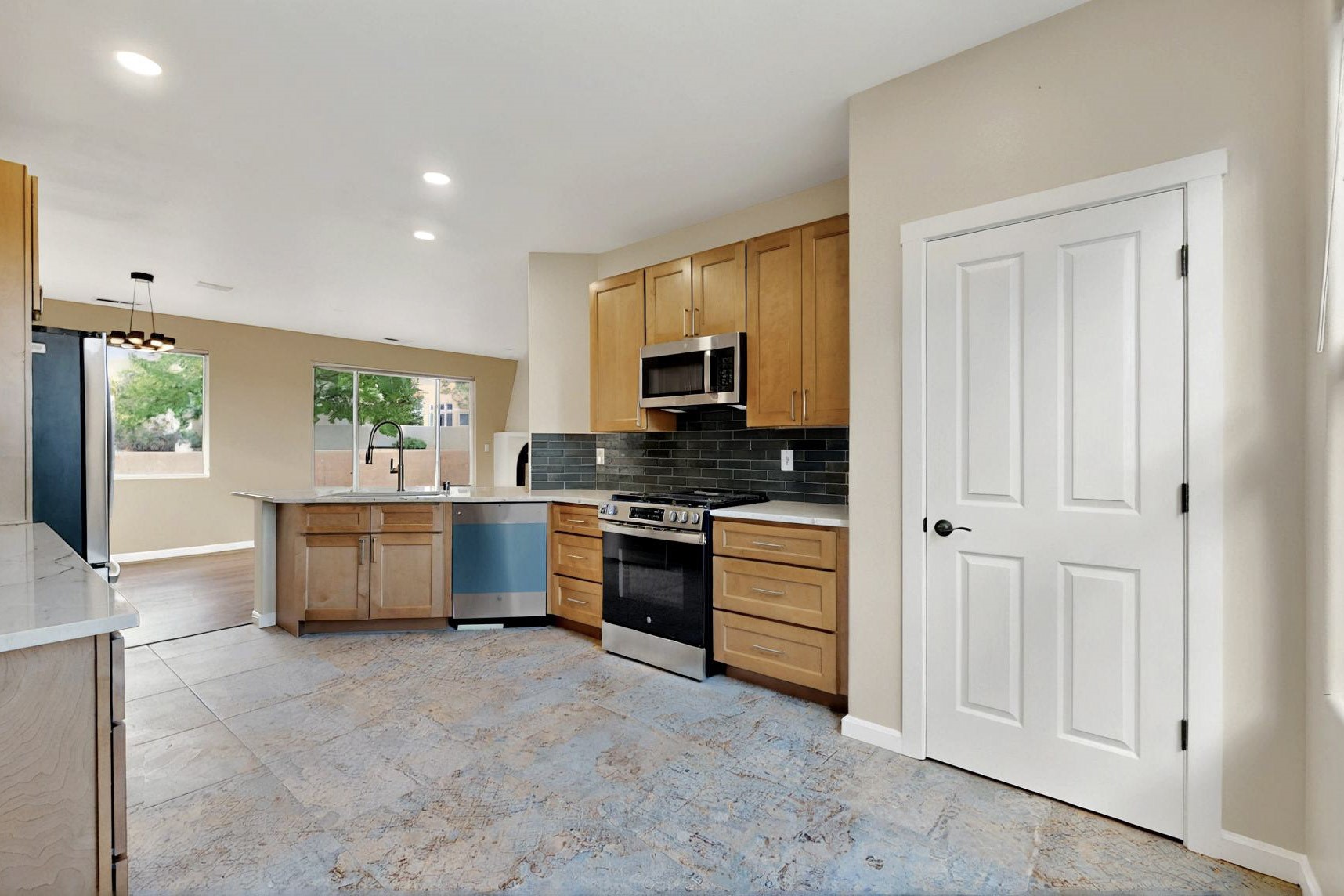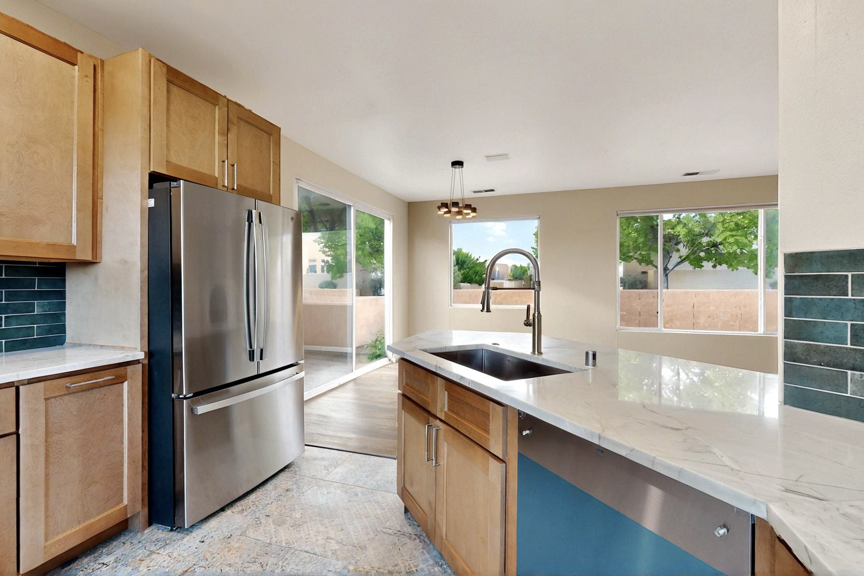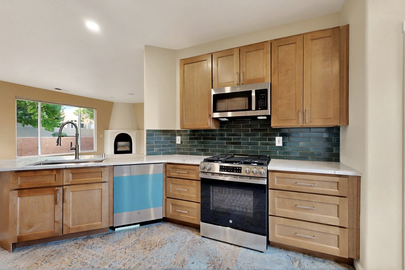 Discover this newly listed gem in Santa Fe featuring three bedrooms and two bathrooms, thoughtfully renovated for modern living. The home boasts elegant hard flooring throughout main areas and fresh paint that creates a bright, welcoming atmosphere. The kitchen shines with granite countertops, new cabinetry, convenient pantry, and sleek stainless steel appliances--perfect for culinary enthusiasts. Both bathrooms showcase stylish blue cabinetry complemented by contemporary tiled showers. A traditional kiva-style fireplace adds authentic Southwestern character while providing cozy warmth during cool evenings.Conveniently located near amenities, this move-in ready home offers the perfect blend of comfort and style for your next chapter.