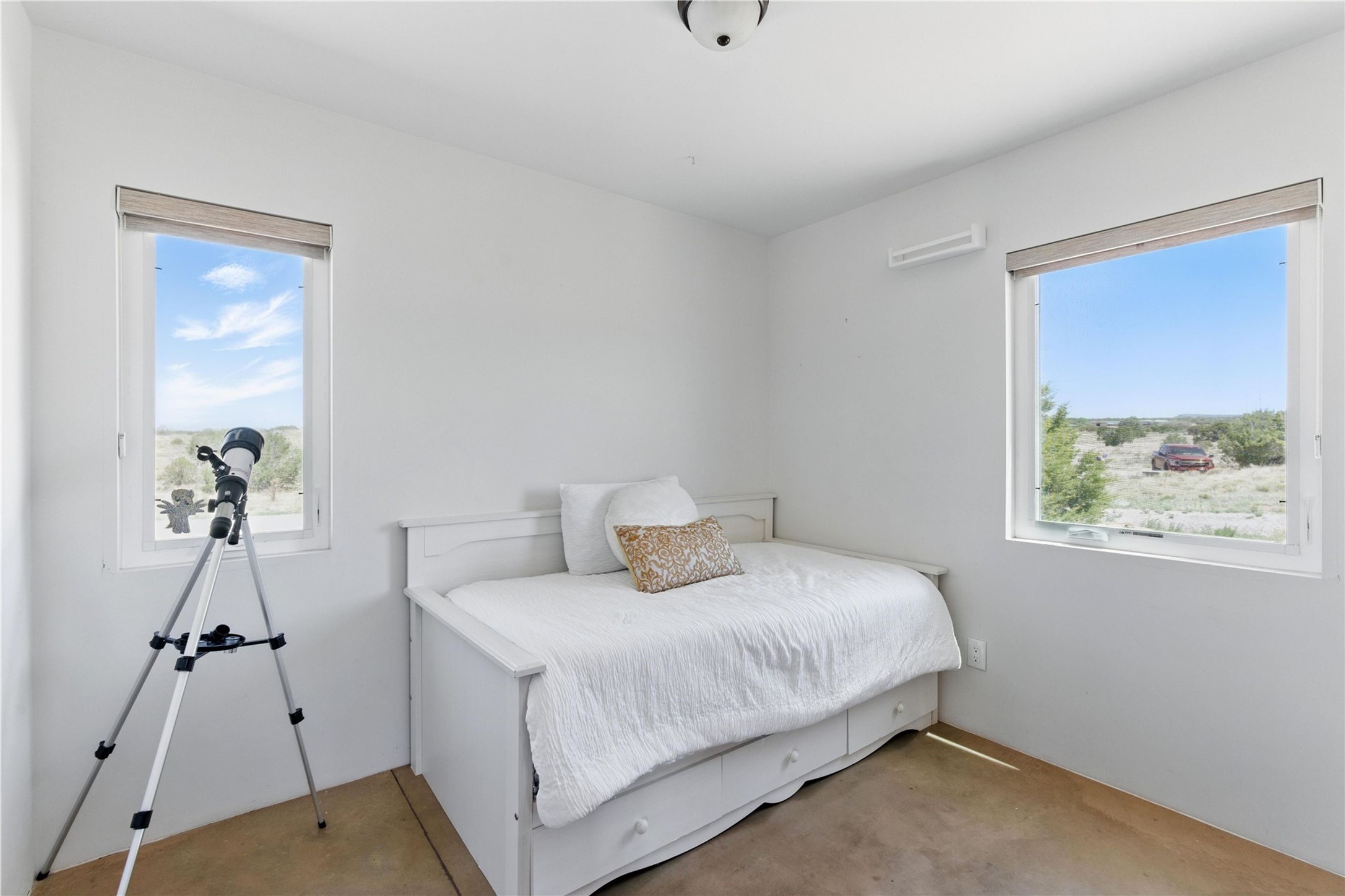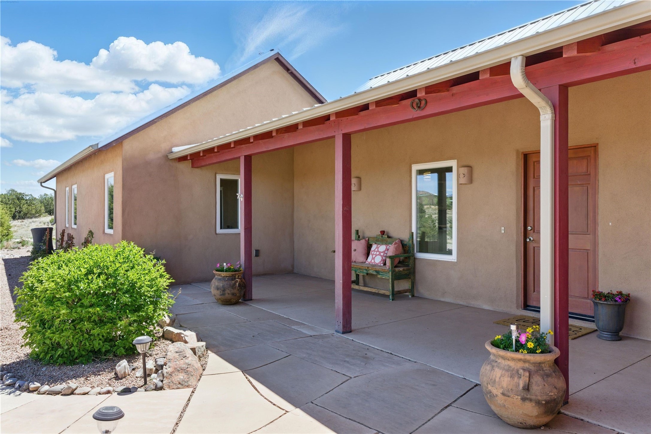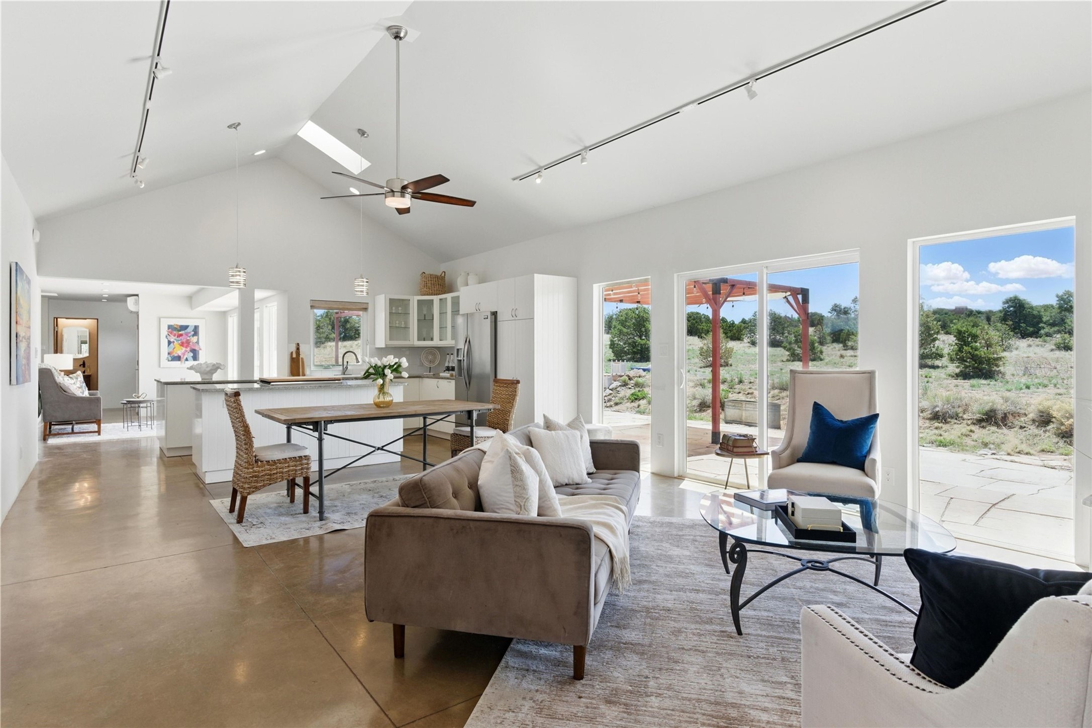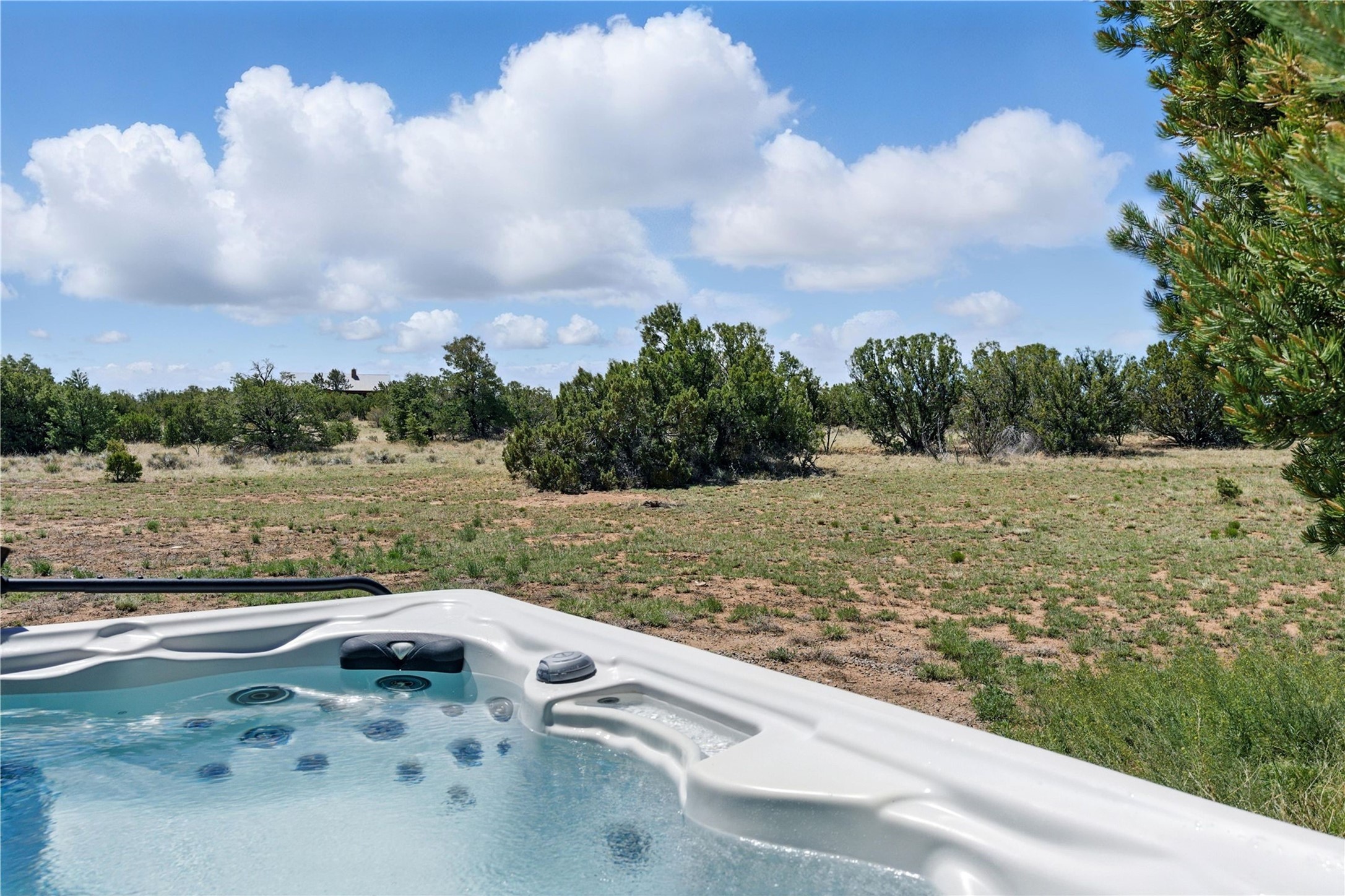 Priced at $589,000, this pitched-roof, four-bedroom, two-bath, Northern-New-Mexico style home on 4.85 acres represents an absolute bargain value to any sophisticated buyer who has researched Santa Fe home prices (for a virtual tour, visit 34RanchRoad.com). Designed by architect Bruce Davis, this single-story contemporary home in Lamy offers ample separation between the primary suite on the west side and the guest bedrooms on the east. As you enter, you'll walk into the open-concept living room, with the contemporary kitchen (with bright granite countertops, stainless appliances, and an island stove) on the left. The home is defined by the quality of the natural light in virtually every room. Davis designed the home to take advantage of the north/south facing layout in its passive-solar design. Radiant heat runs through stained concrete floors and mini splits provide heating and cooling. A hidden door in the primary bedroom opens into a heated studio, which also has access to the exterior. There is a 220-volt outlet near the parking area for RV use or to convert to EV charging use (it's also set up on the other side for the hot tub). Outside covered pergola and barbeque hut add to your enjoyment. Two horses are allowed. One of the sellers is a New Mexico real estate licensee. There are two additional lots available on the north side, each at $169,500. Please see MLS 202402587 and 202402586 (24 and 30 Ranch Road). Please note that the property is being sold in its current condition. The seller will make no repairs or concessions. An open house will be held Sunday November 23 from 1:00 to 4:00 pm.