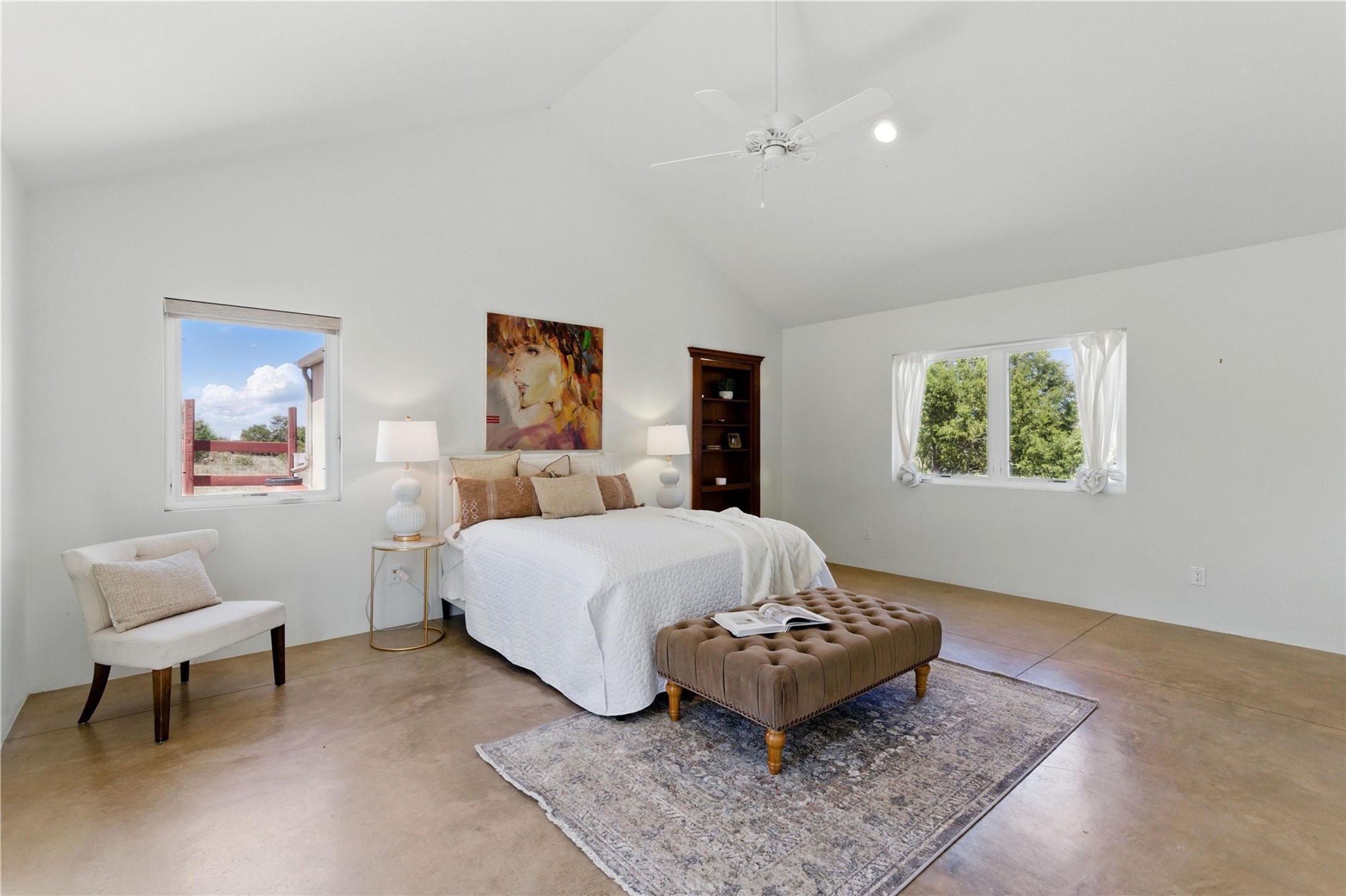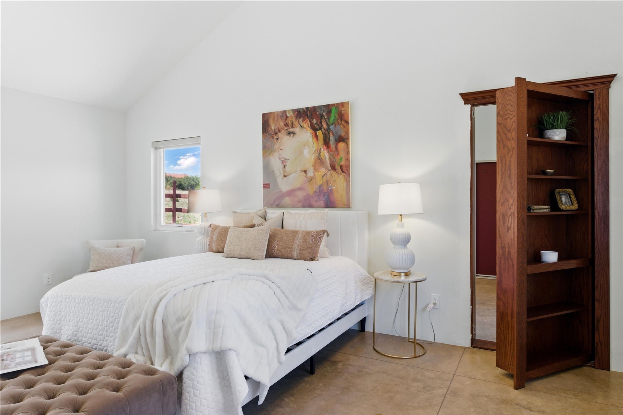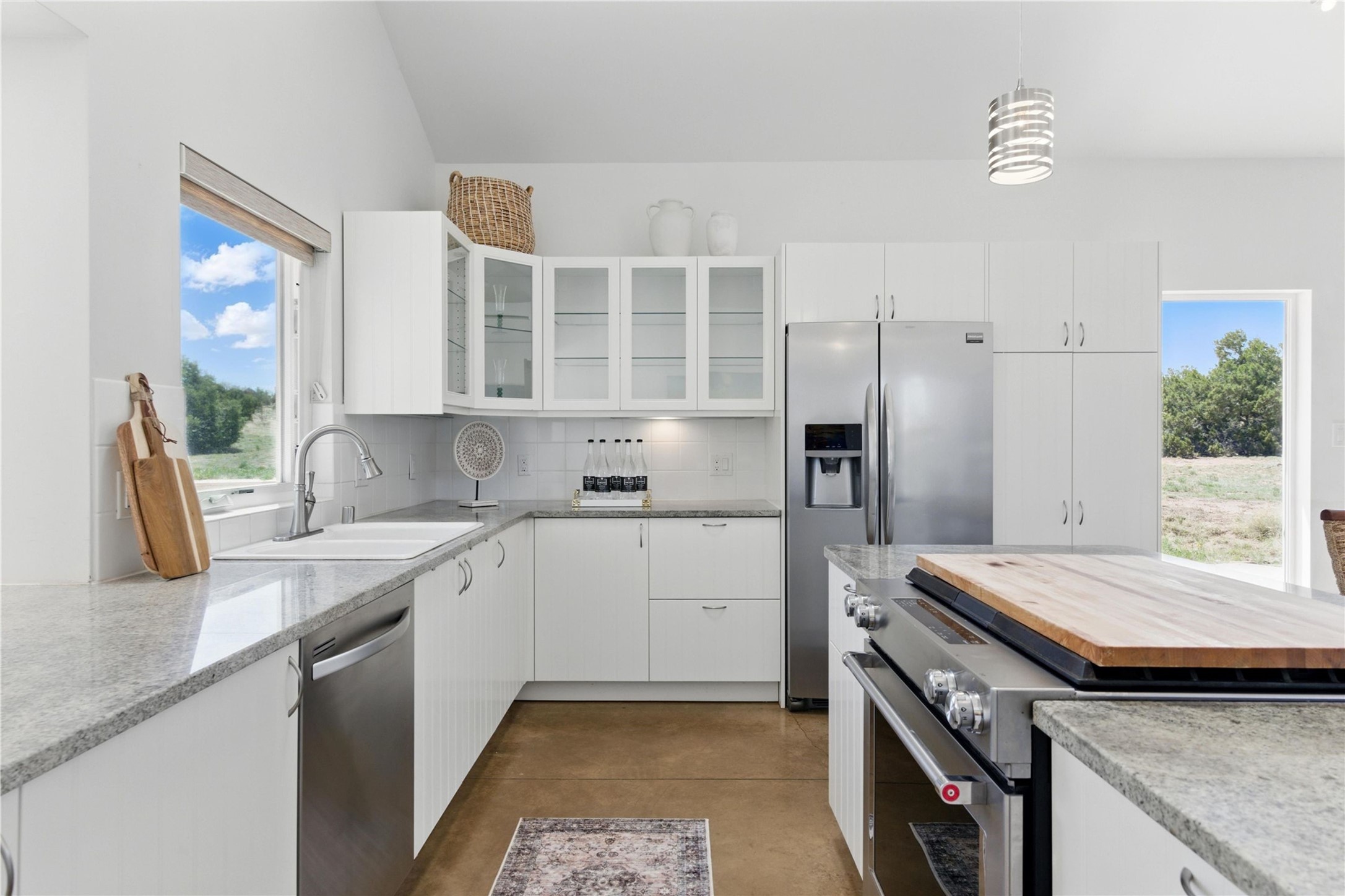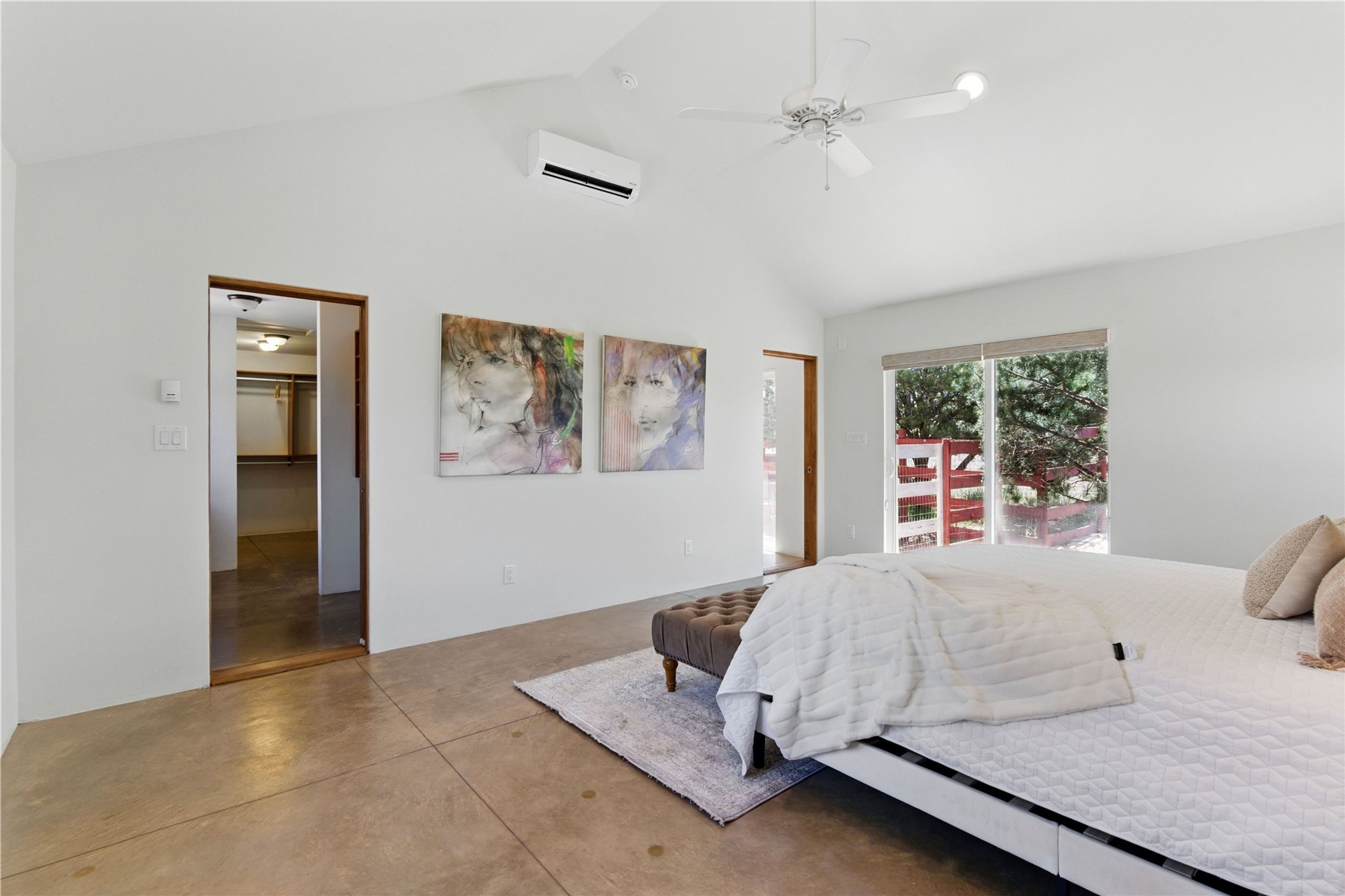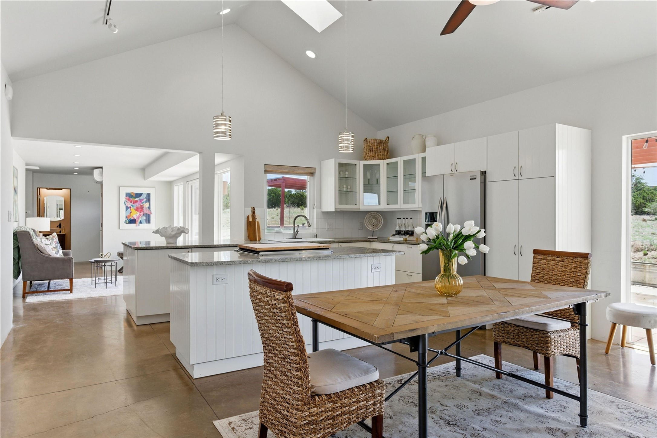 Priced at $589,000, this pitched-roof, four-bedroom, two-bath, Northern-New-Mexico style home on 4.85 acres represents an absolute bargain value to any sophisticated buyer who has researched Santa Fe home prices (for a virtual tour, visit 34RanchRoad.com). Designed by architect Bruce Davis, this single-story contemporary home in Lamy offers ample separation between the primary suite on the west side and the guest bedrooms on the east. As you enter, you'll walk into the open-concept living room, with the contemporary kitchen (with bright granite countertops, stainless appliances, and an island stove) on the left. The home is defined by the quality of the natural light in virtually every room. Davis designed the home to take advantage of the north/south facing layout in its passive-solar design. Radiant heat runs through stained concrete floors and mini splits provide heating and cooling. A hidden door in the primary bedroom opens into a heated studio, which also has access to the exterior. There is a 220-volt outlet near the parking area for RV use or to convert to EV charging use (it's also set up on the other side for the hot tub). Outside covered pergola and barbeque hut add to your enjoyment. Two horses are allowed. One of the sellers is a New Mexico real estate licensee. There are two additional lots available on the north side, each at $169,500. Please see MLS 202402587 and 202402586 (24 and 30 Ranch Road). Please note that the property is being sold in its current condition. The seller will make no repairs or concessions. An open house will be held Sunday November 23 from 1:00 to 4:00 pm.