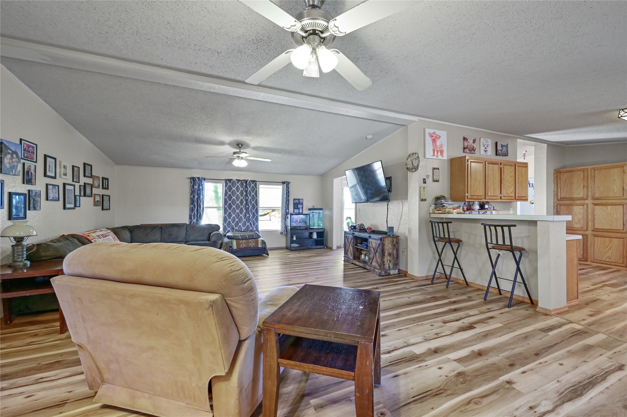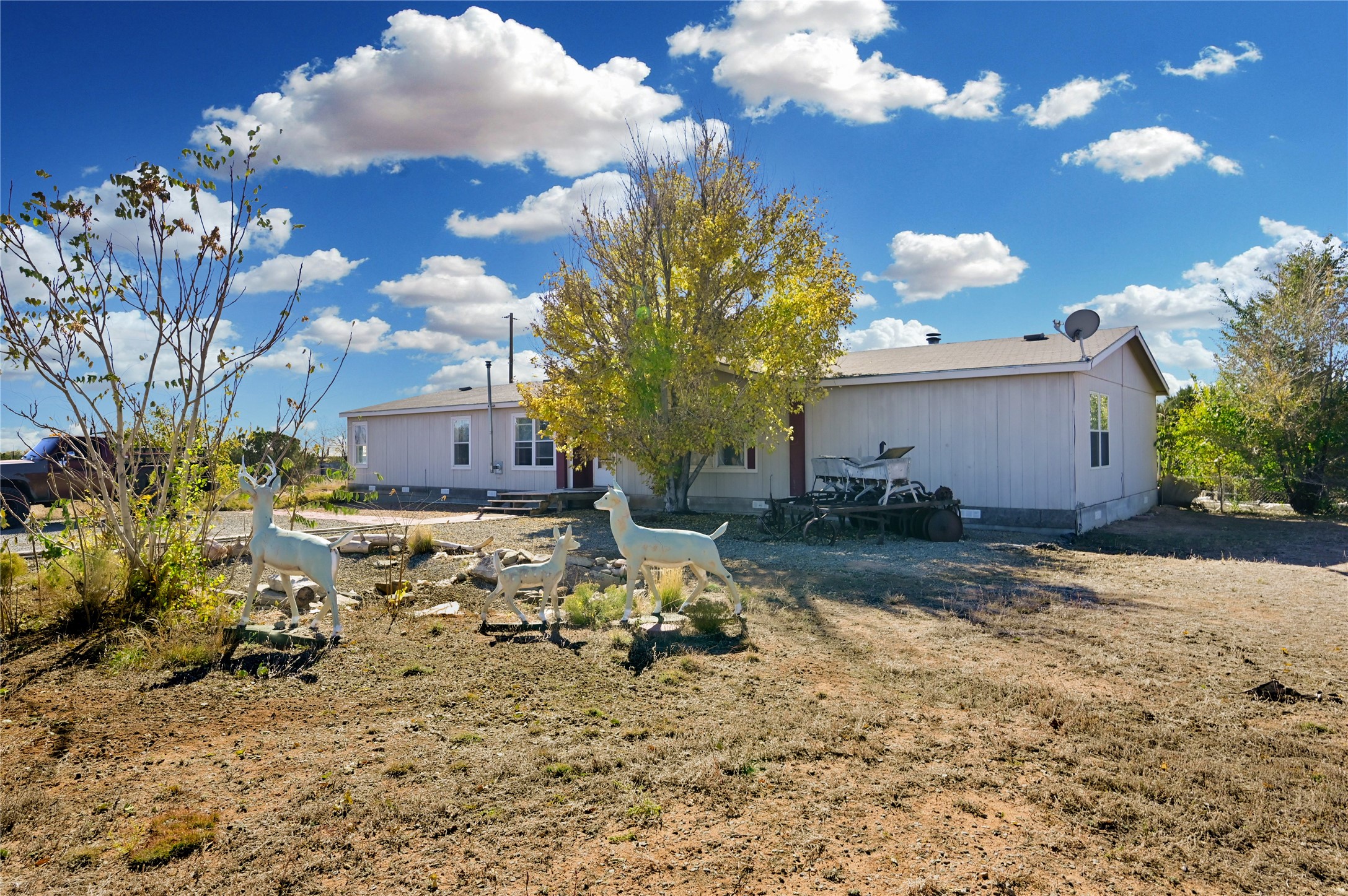 This is a great place to call home. 4 bedrooms with 2.5 bathrooms in approx. 1900 sqft and sited on approx. 1.25 acres. Out far enough to feel like your living a country life, but close in enough to get to anywhere in Santa fe in minutes. Access to anywhere in Santa Fe that you need to be by being just off of the 599 bypass route. Down a quiet road you find this home with big trees and a contained backyard that has an large back deck with a portal covering, making for your own private retreat that keeps pets in or allows for little ones to be able to roam enough while being kept close enough. The home has an open feeling with ceiling fans in every bedroom with 2 more in the common areas. A pellet stove and wood burning fireplace will keep the place more than warm enough on those cold days and nights. Great laminate wood flooring make for easy cleanup or is good for those that have allergies that come with carpet. The primary suite is private and has a separate bath tub and shower. All of the appliances will remain for a buyer to make for an easy move. In fact, if a buyer would like any of the furniture to remain, that could be a possibility too. Priced so that this home could work as a great place to live or could work or an investor. Don't wait to see this home.