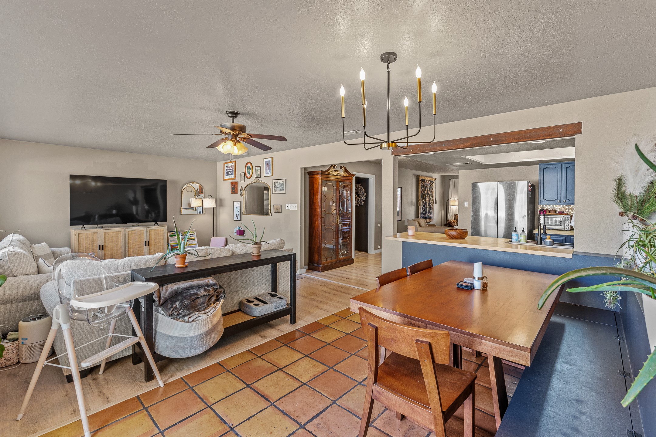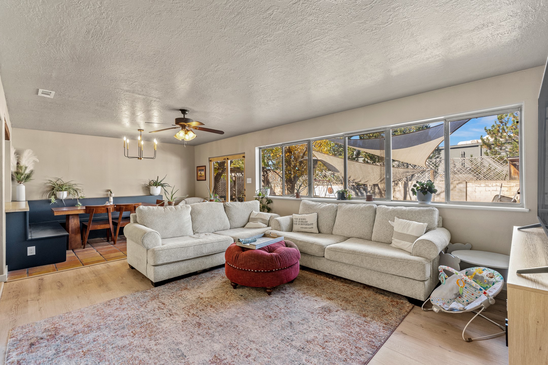 Discover comfort and convenience in this charming 3-bedroom, 2-bath home ideally situated in a central location close to shopping, dining, and major amenities. Featuring a blend of stylish LVP flooring and classic Saltillo tile, the home offers both warmth and durability throughout its spacious layout.The inviting living room flows seamlessly into the updated kitchen, showcasing stainless steel appliances, generous counter space, and an open design that connects easily to the den and dining area. A built-in seating area provides great storage, complemented by two coat closets for added functionality. Just off the kitchen, a large pantry and storage room offer excellent organization and direct access to the one-car garage.Abundant natural light highlights the home's thoughtful design. Two comfortable bedrooms share an oversized bath, while the private primary suite features a spacious walk-in closet, a luxurious oversized bath, and additional closet space.Enjoy easy indoor-outdoor living with backyard access from both the primary bedroom and the den--perfect for entertaining, morning coffee, or quiet evenings outdoors.This home combines modern updates, flexible living spaces, and a prime central location--ready for you to move in and make it your own!