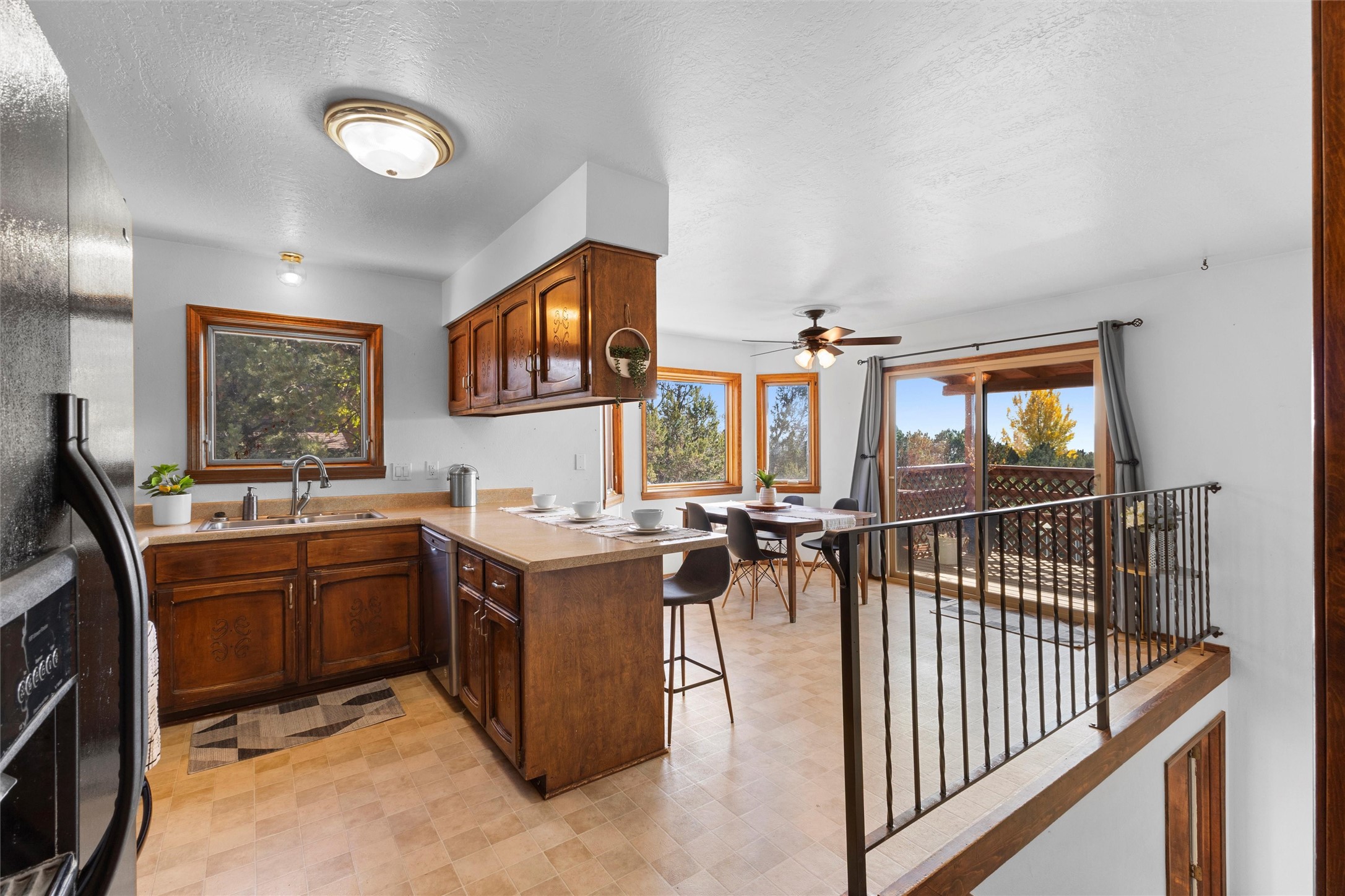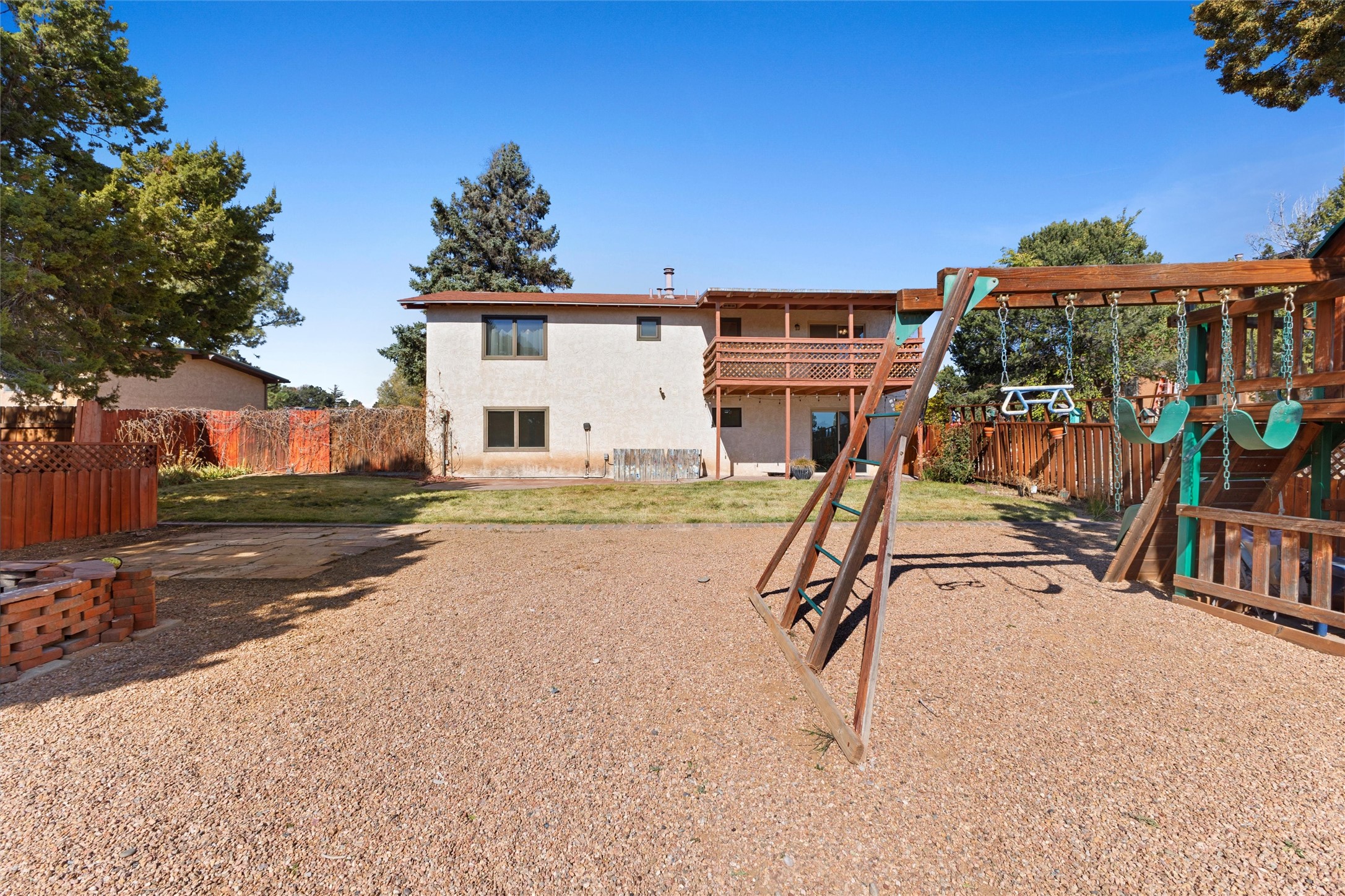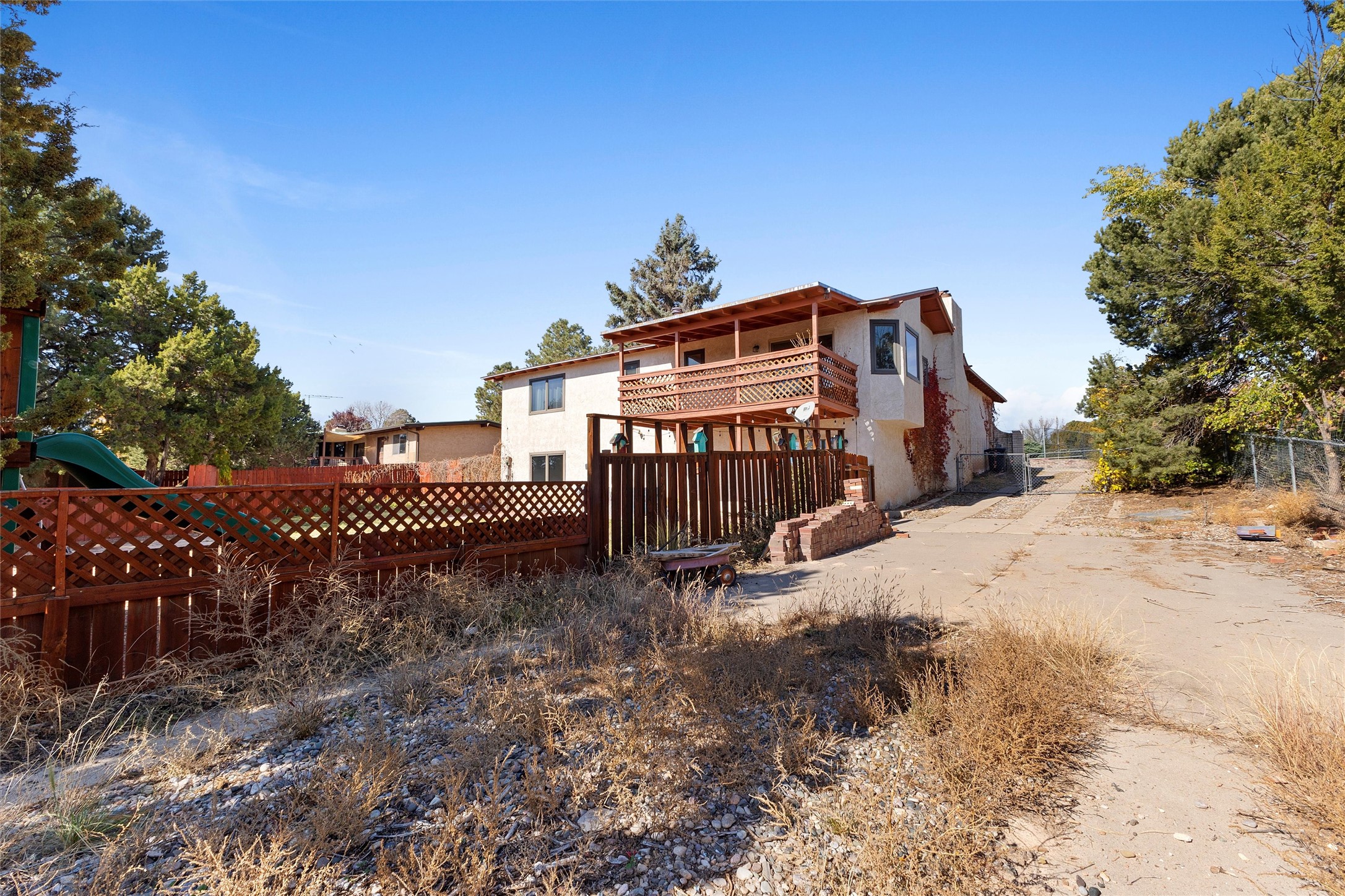 From the moment you pull into the wide, circular driveway, this White Rock home greets you with a sense of steadiness--like a place that's been well-loved and is ready for its next chapter. Sitting in a peaceful spot near Rover Park, it offers room to spread out, settle in, and make it your own.Inside, the upstairs living room welcomes you with a warm, collected feel. The wood-burning fireplace and wood-beamed ceiling bring a comforting, lived-in charm that makes you want to curl up and stay awhile. The kitchen connects easily to a cozy dining area with views out toward the mountains, and a balcony just off this space gives you a quiet place to breathe in the fresh air or take in the wide-open view of the expansive backyard.The primary bedroom continues that calming feeling, with views of the yard and an en suite featuring its own separate vanity area. Two guest rooms, a full bath, and a conveniently placed laundry space finish out the upper level.Downstairs, the fully finished walkout basement is truly the heart of the home. With warm laminate flooring, another fireplace, a big rec room, an oversized living area, a dedicated office space, a guest bedroom with backyard views, and an updated full bath, this lower level offers so much room to grow--whether you need space for gatherings, creative projects, or a quiet retreat at the end of the day.Step outside and you'll find a backyard designed for simple joys and everyday living. There's lush grass, a stone paver patio, and more than enough room for gardening, gatherings, or relaxing under the open sky. Beyond the main fenced yard is even more to appreciate: RV parking, an additional fenced area perfect for pets, and a chicken coop--ideal for anyone dreaming of a little homestead charm.With refrigerated A/C for warm summer days and plenty of space to truly settle in, this home offers comfort, character, and the kind of possibilities that make life feel fuller.Don't miss the chance to make it yours.