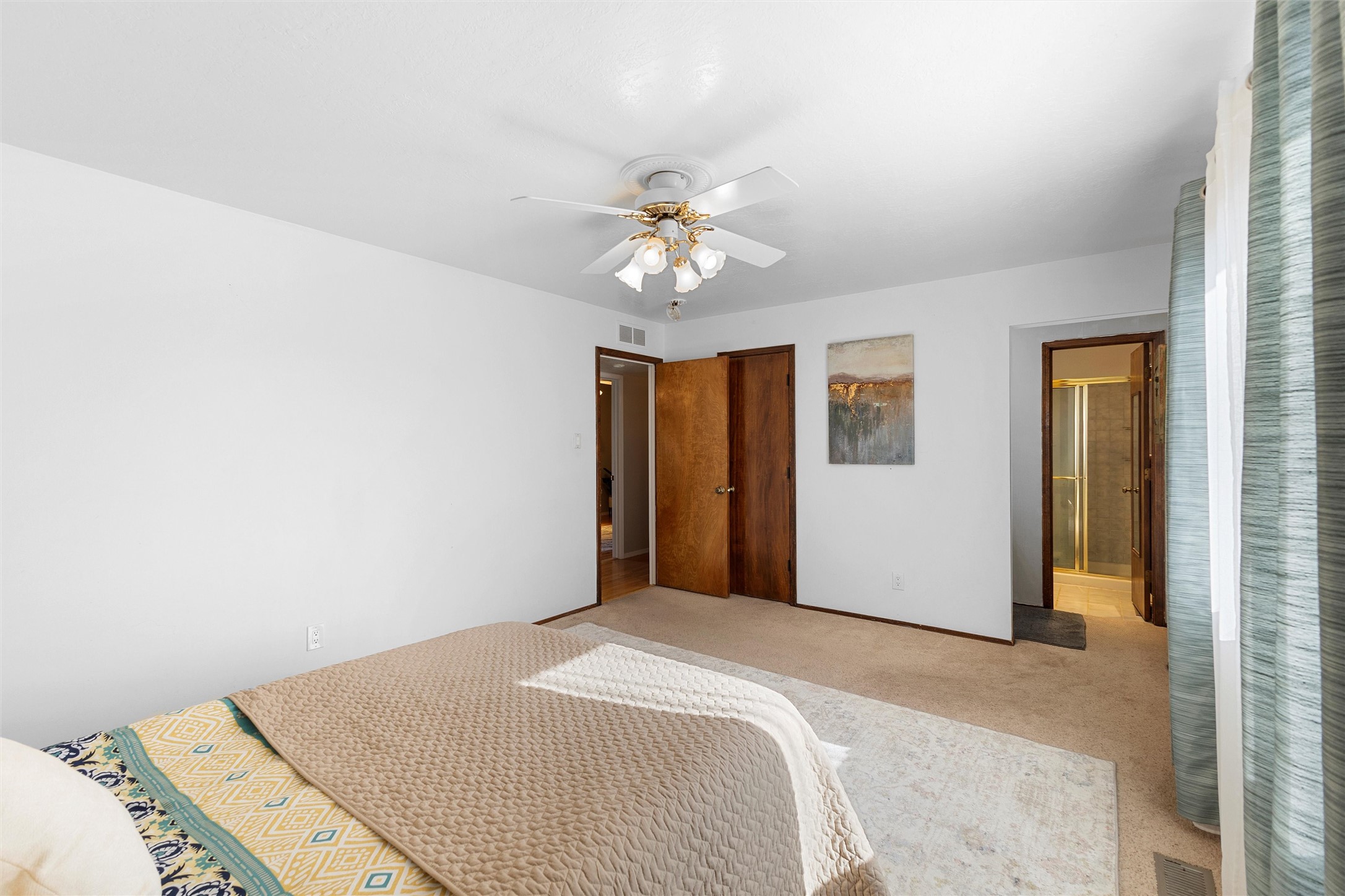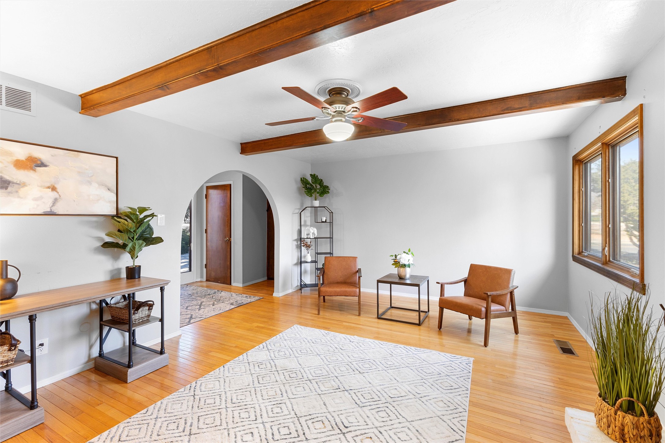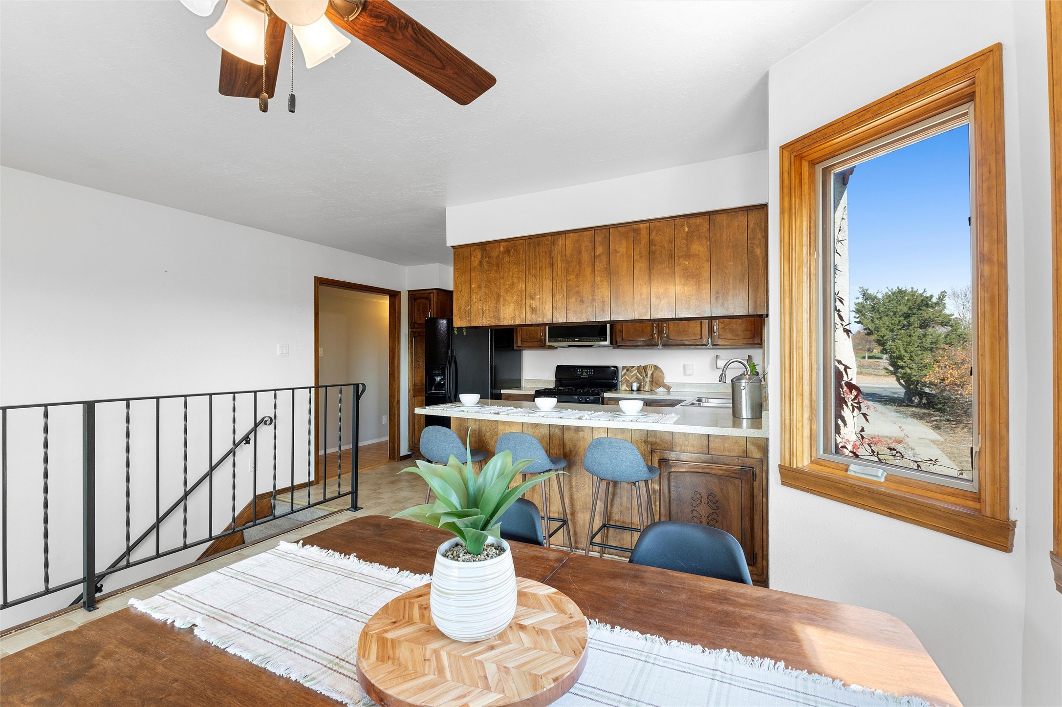From the moment you pull into the wide, circular driveway, this White Rock home greets you with a sense of steadiness--like a place that's been well-loved and is ready for its next chapter. Sitting in a peaceful spot near Rover Park, it offers room to spread out, settle in, and make it your own.Inside, the upstairs living room welcomes you with a warm, collected feel. The wood-burning fireplace and wood-beamed ceiling bring a comforting, lived-in charm that makes you want to curl up and stay awhile. The kitchen connects easily to a cozy dining area with views out toward the mountains, and a balcony just off this space gives you a quiet place to breathe in the fresh air or take in the wide-open view of the expansive backyard.The primary bedroom continues that calming feeling, with views of the yard and an en suite featuring its own separate vanity area. Two guest rooms, a full bath, and a conveniently placed laundry space finish out the upper level.Downstairs, the fully finished walkout basement is truly the heart of the home. With warm laminate flooring, another fireplace, a big rec room, an oversized living area, a dedicated office space, a guest bedroom with backyard views, and an updated full bath, this lower level offers so much room to grow--whether you need space for gatherings, creative projects, or a quiet retreat at the end of the day.Step outside and you'll find a backyard designed for simple joys and everyday living. There's lush grass, a stone paver patio, and more than enough room for gardening, gatherings, or relaxing under the open sky. Beyond the main fenced yard is even more to appreciate: RV parking, an additional fenced area perfect for pets, and a chicken coop--ideal for anyone dreaming of a little homestead charm.With refrigerated A/C for warm summer days and plenty of space to truly settle in, this home offers comfort, character, and the kind of possibilities that make life feel fuller.Don't miss the chance to make it yours.