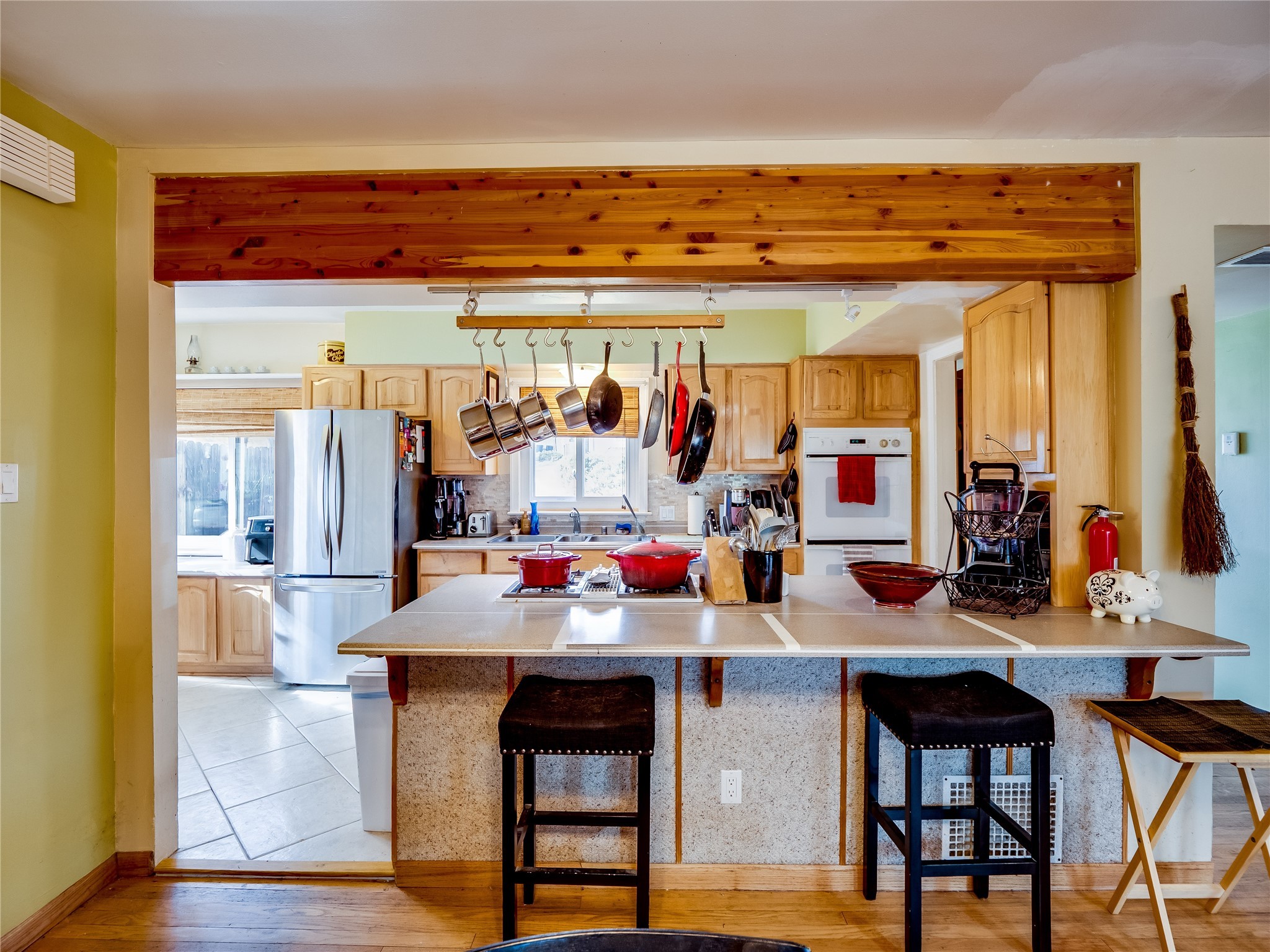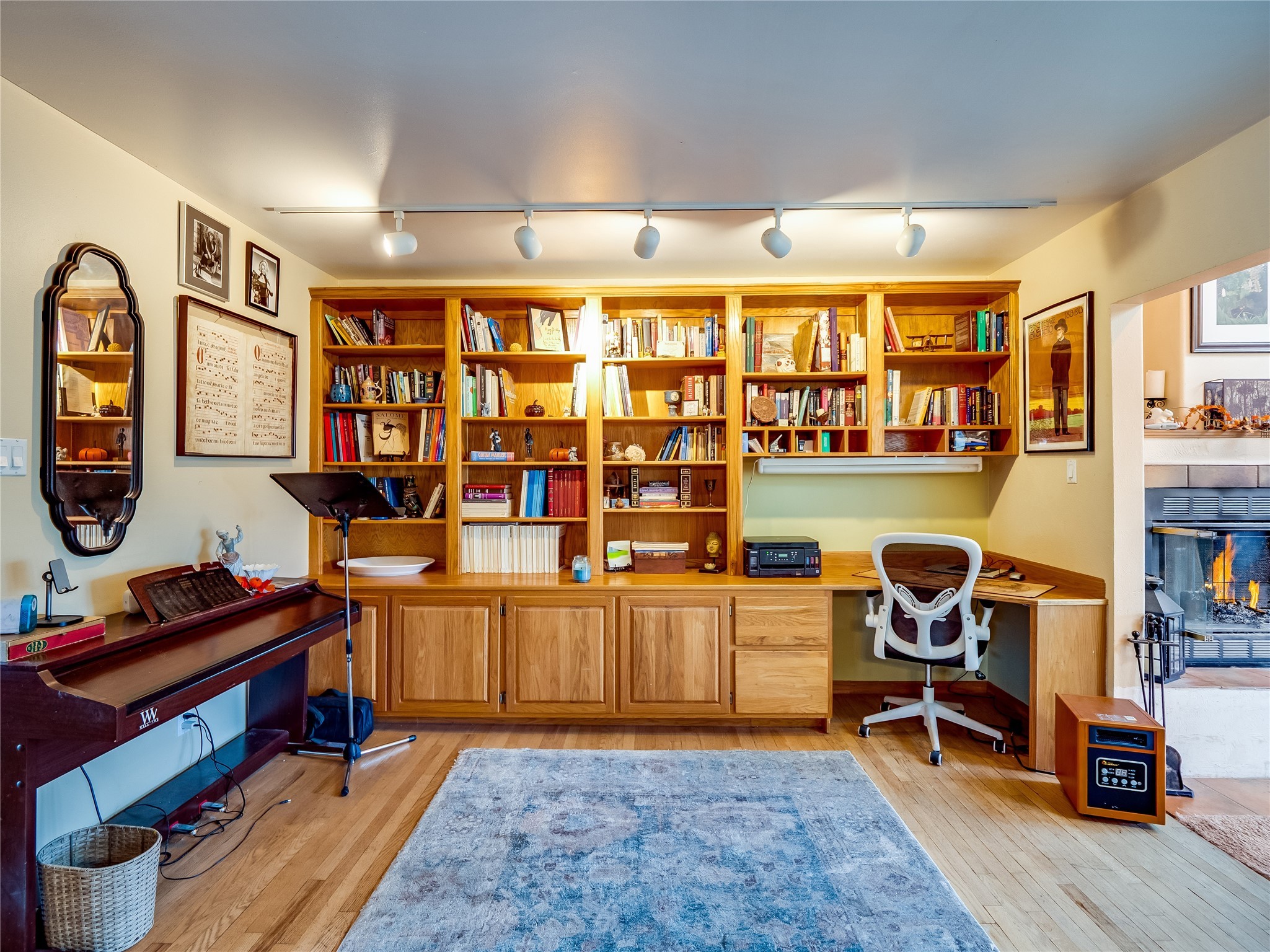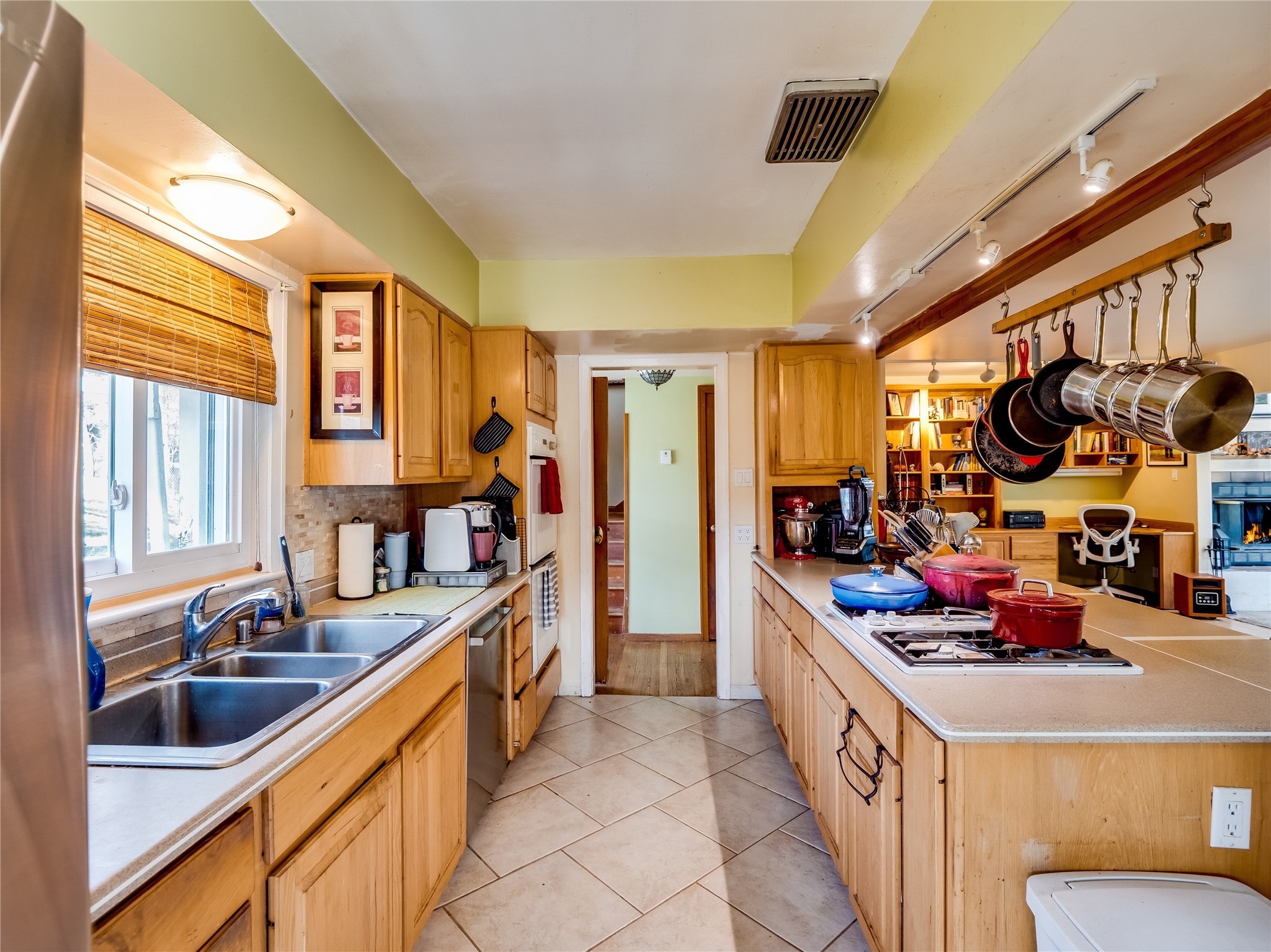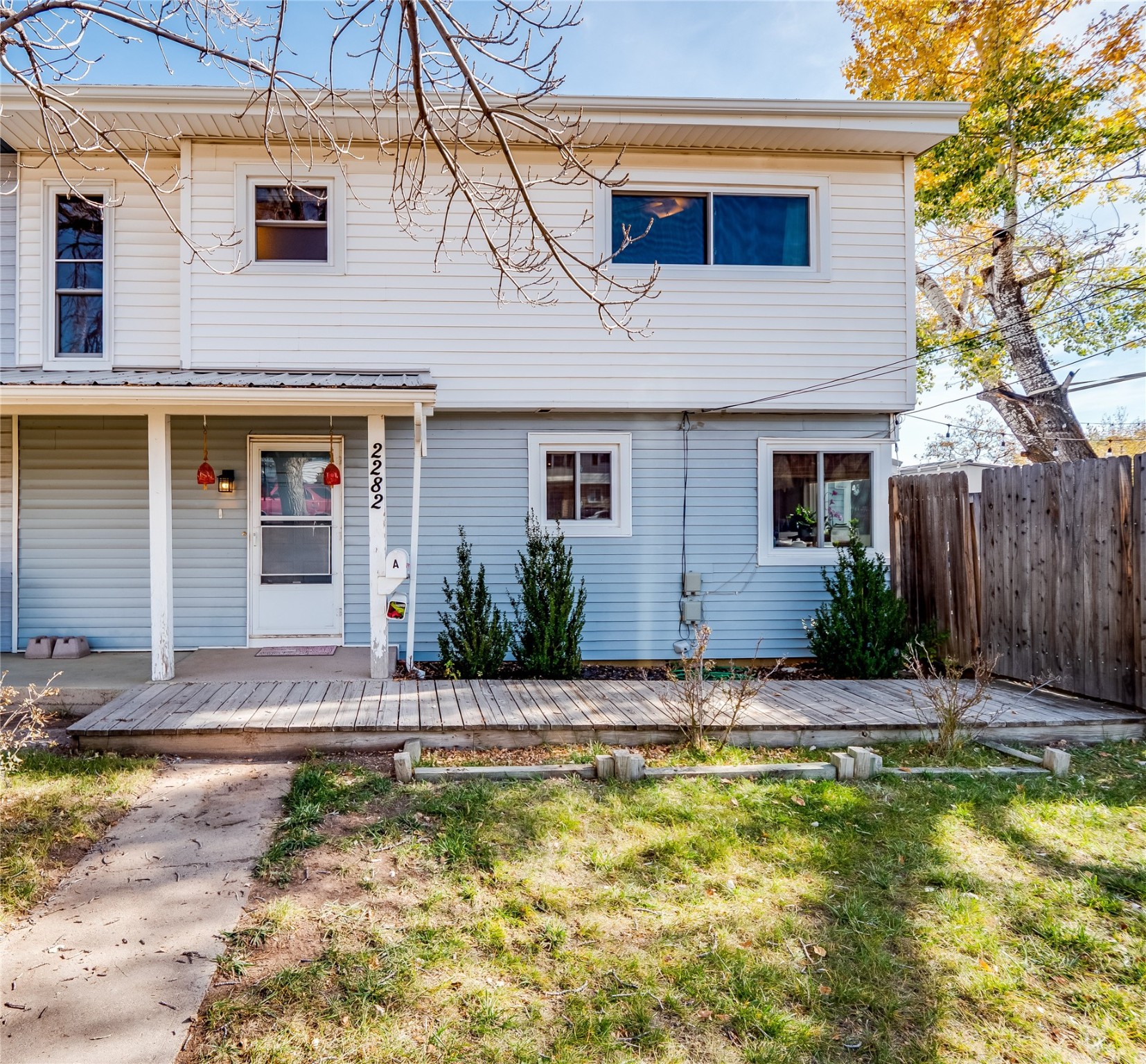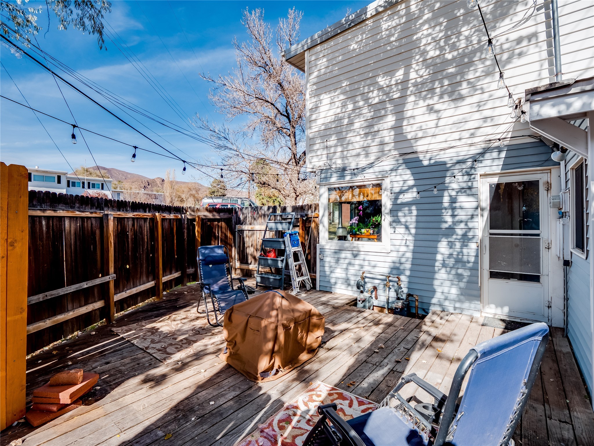 Discover this charming and spacious two-story condo in the desirable N Community neighborhood, perfectly situated near schools, trails, the golf course, and endless outdoor activities. From street level, stairs descend into a lush front yard with grass, creating a welcoming first impression. A designated two-car driveway provides convenient parking and leads to a fenced in patio deck with side entrance access, an ideal retreat for stargazing around a firepit or enjoying a peaceful morning coffee. Step inside through the front entrance and you're immediately guided by warm wood flooring that flows throughout the home. The first space you encounter is the open dining room, thoughtfully designed with built-in shelves, and a desk, perfect for displaying dcor, storing essentials, or working from home. Just beyond, the bright living room welcomes you with its vaulted ceiling, skylights, carpet flooring, and a wood-burning fireplace. Sliding glass doors open to the fenced-in backyard and deck, offering a great layout for BBQs and gatherings with family and friends. The galley style kitchen is both functional and stylish, featuring an open peninsula island with a gas cooktop and room for bar-top seating. A plethora of warm wood cabinets, hard surface counters, stone backsplash, tile floors, stainless steel appliances, and a pantry complete this well-appointed space. A nearby hallway provides storage closets and access to the side deck. Also on the main level is the inviting primary en-suite. This comfortable bedroom features brick flooring, a walk-in closet and sliding doors to the backyard. The bath includes a single sink vanity with extra cabinets, a tiled walk-in shower, and a convenient washer and dryer hookup. Upstairs, you'll find three generous guest bedrooms with walk-in closets. A full guest bathroom completes the upper level. Offering comfort, character, and convenience this wonderful condo is ready to welcome its next owner. Book your tour today!