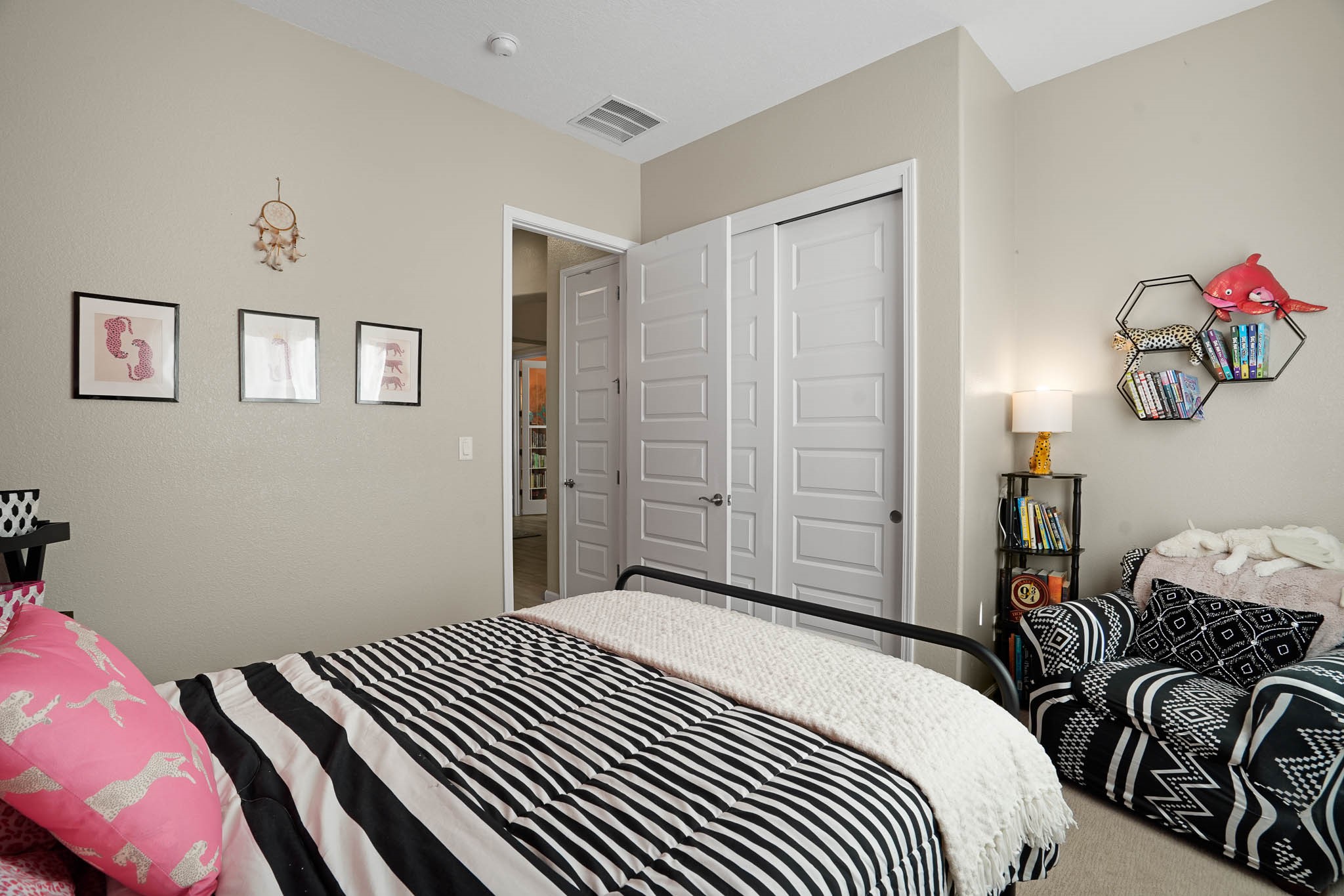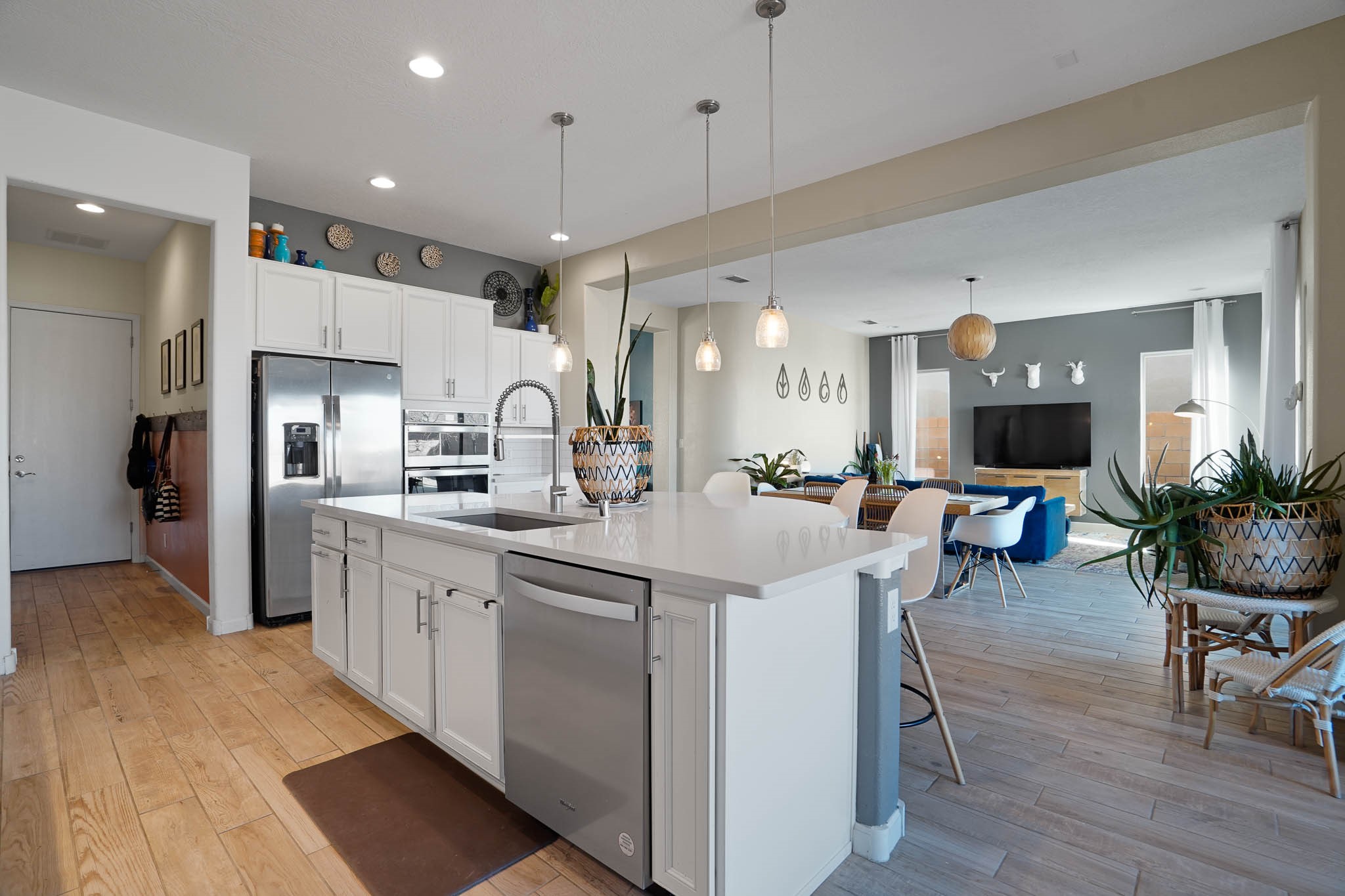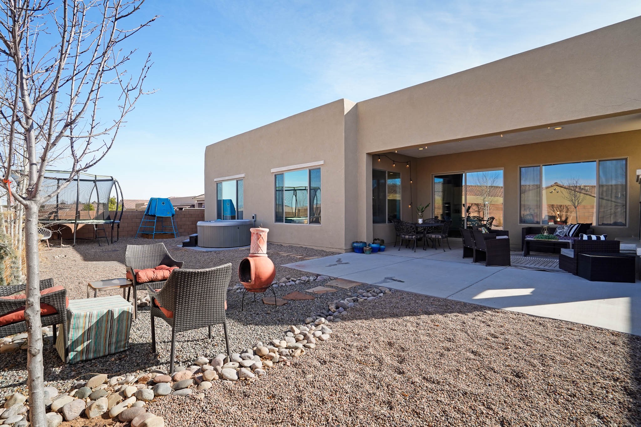 Move-In Ready & Priced to Sell! Don't miss this 5-year-young gem designed for comfort and easy living. This home offers wood look tile flooring throughout the main living areas with carpet in just two bedrooms for a cozy touch. Owned solar panels make electric bills manageable. Added features include: Deep bathtub for soaking, California Closet designed owner's closet, French Doors for bonus office/studio & more. The open layout is perfect for entertaining, & the easy-care yard means more time to relax & enjoy your private hot tub! This home has been lovingly maintained & is priced to sell quickly! Schedule your showing today before it's gone!
