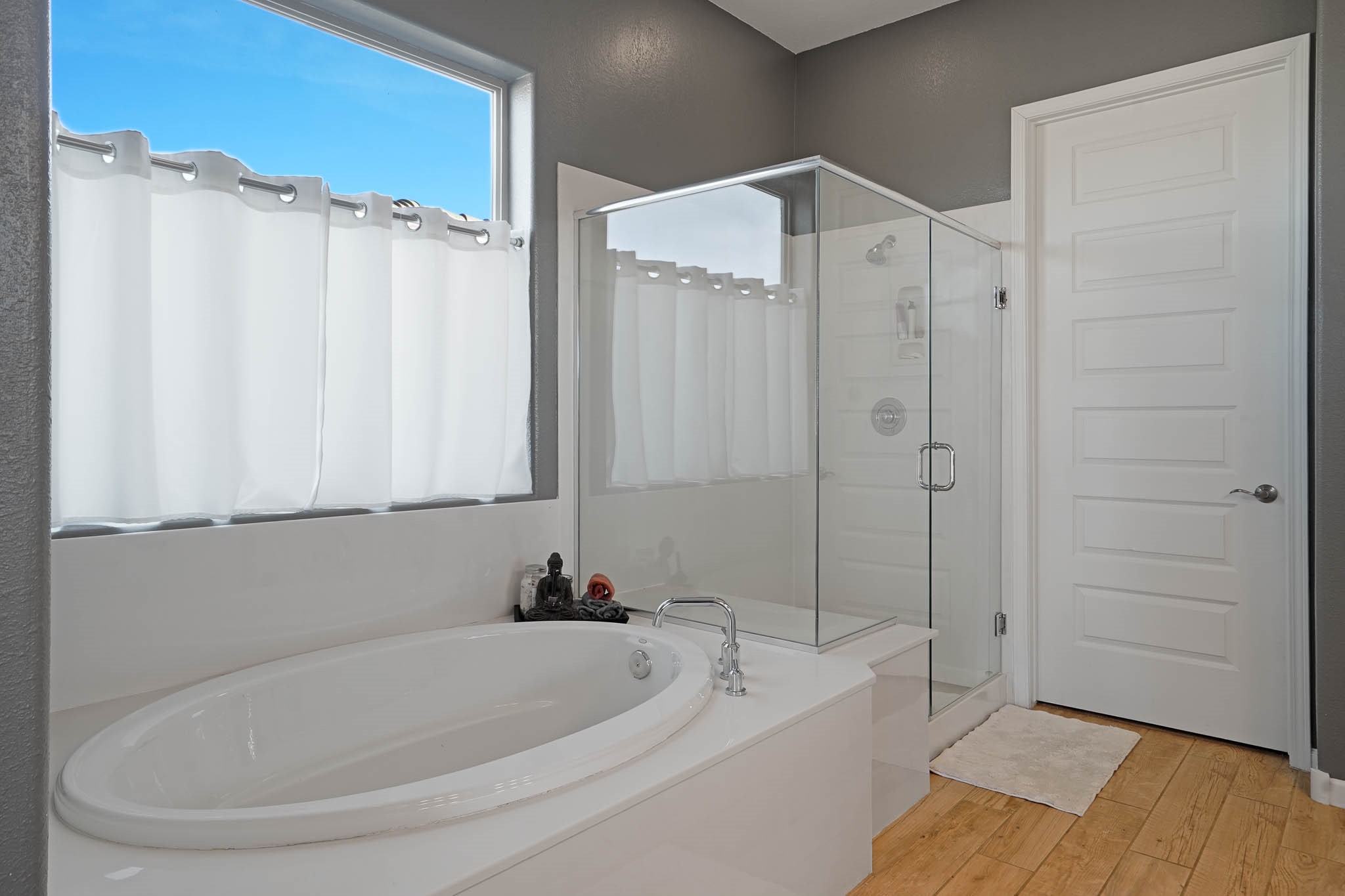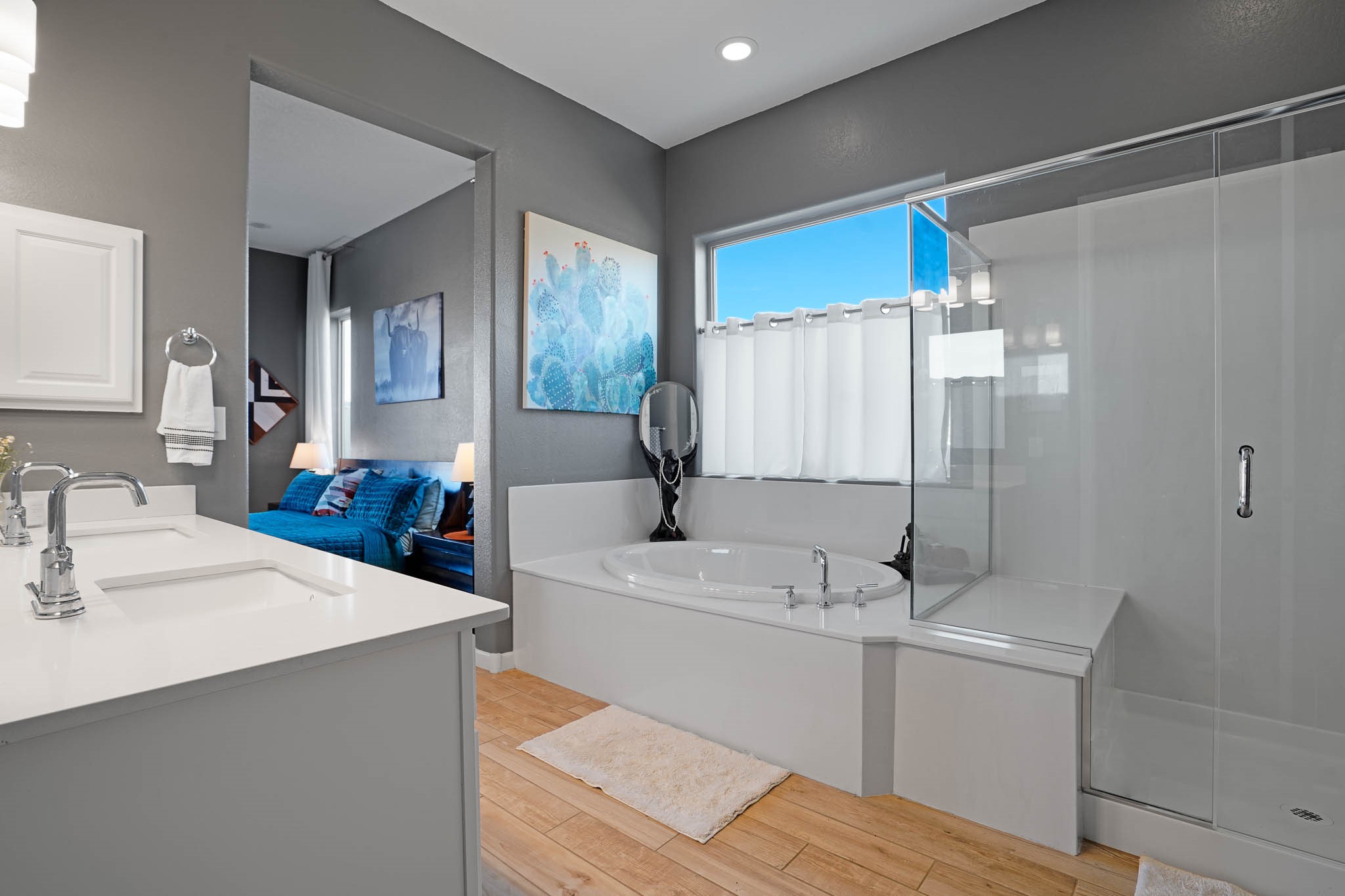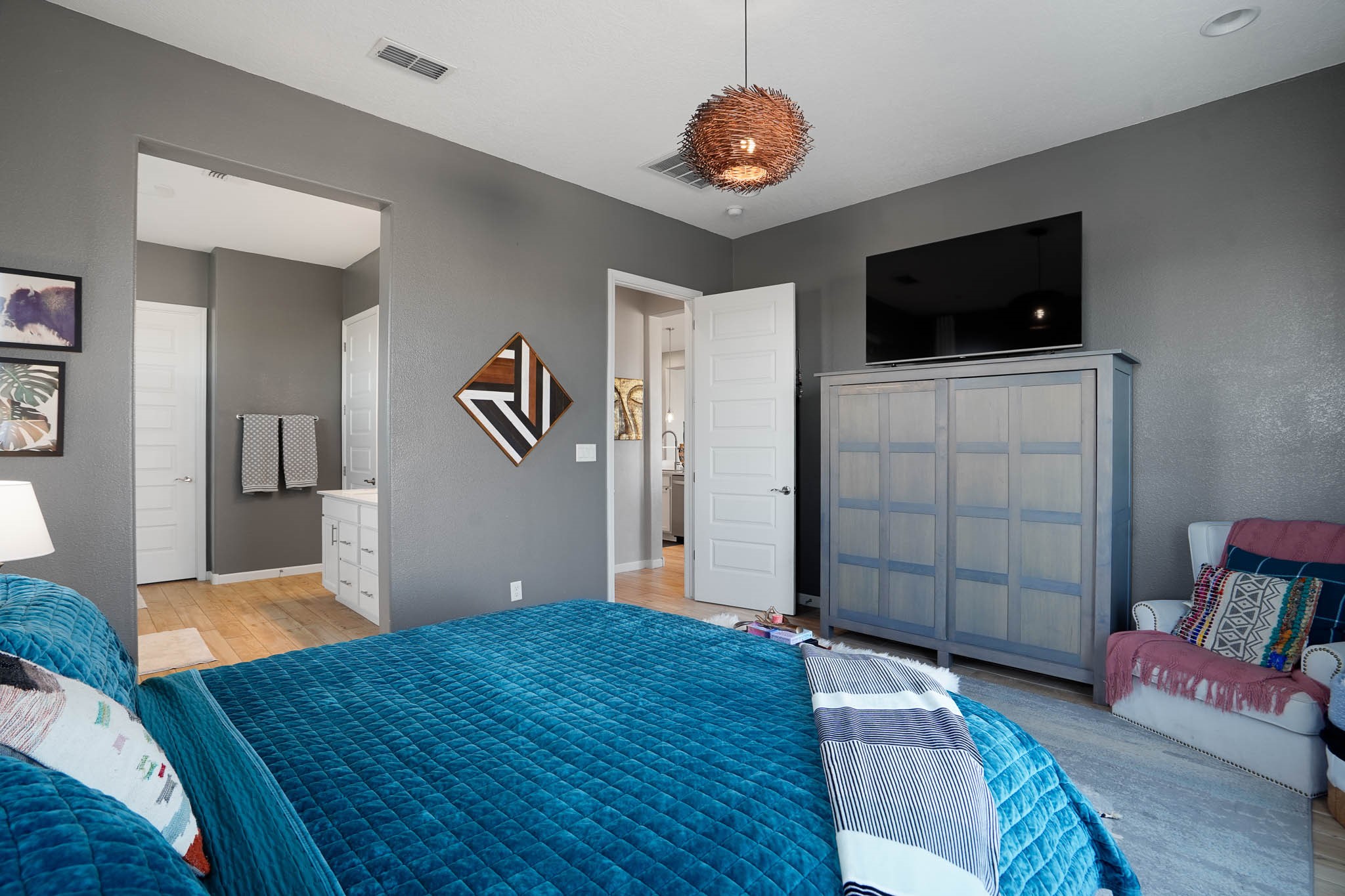 Move-In Ready & Priced to Sell! Don't miss this 5-year-young gem designed for comfort and easy living. This home offers wood look tile flooring throughout the main living areas with carpet in just two bedrooms for a cozy touch. Owned solar panels make electric bills manageable. Added features include: Deep bathtub for soaking, California Closet designed owner's closet, French Doors for bonus office/studio & more. The open layout is perfect for entertaining, & the easy-care yard means more time to relax & enjoy your private hot tub! This home has been lovingly maintained & is priced to sell quickly! Schedule your showing today before it's gone!