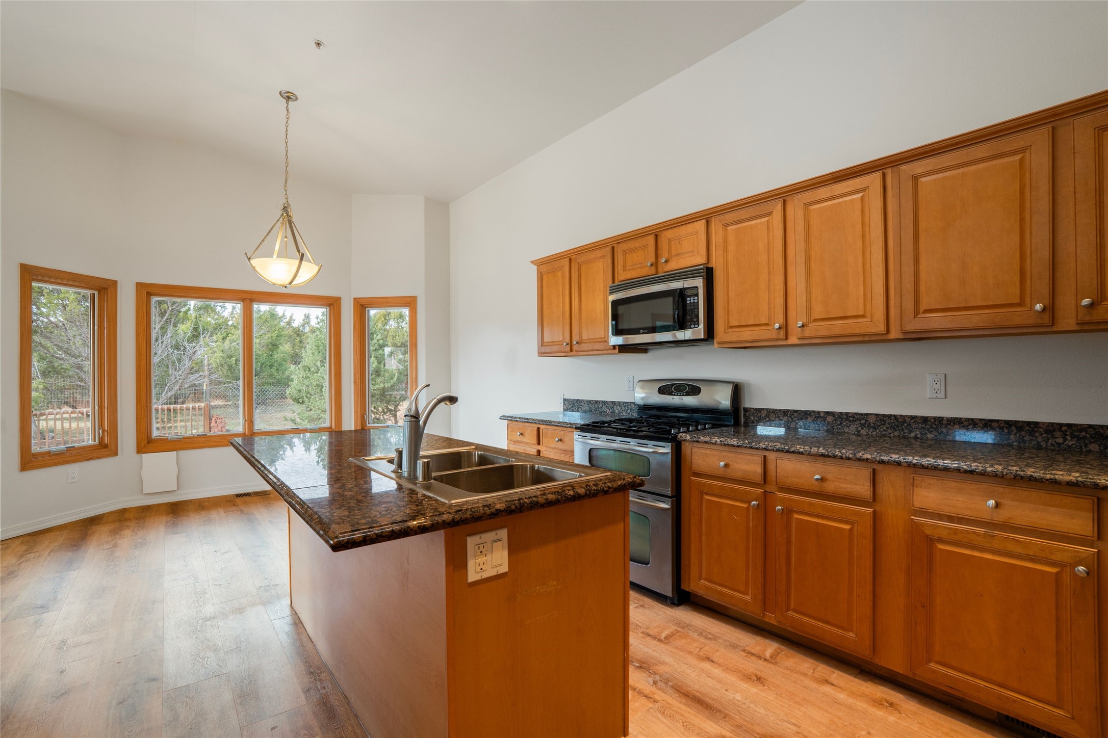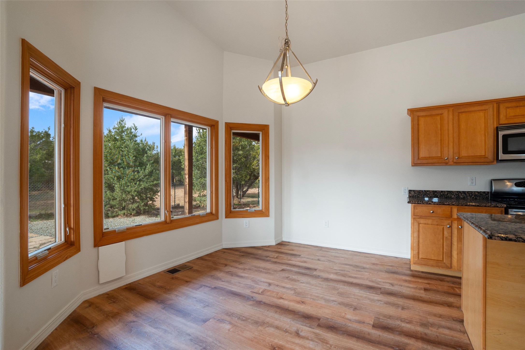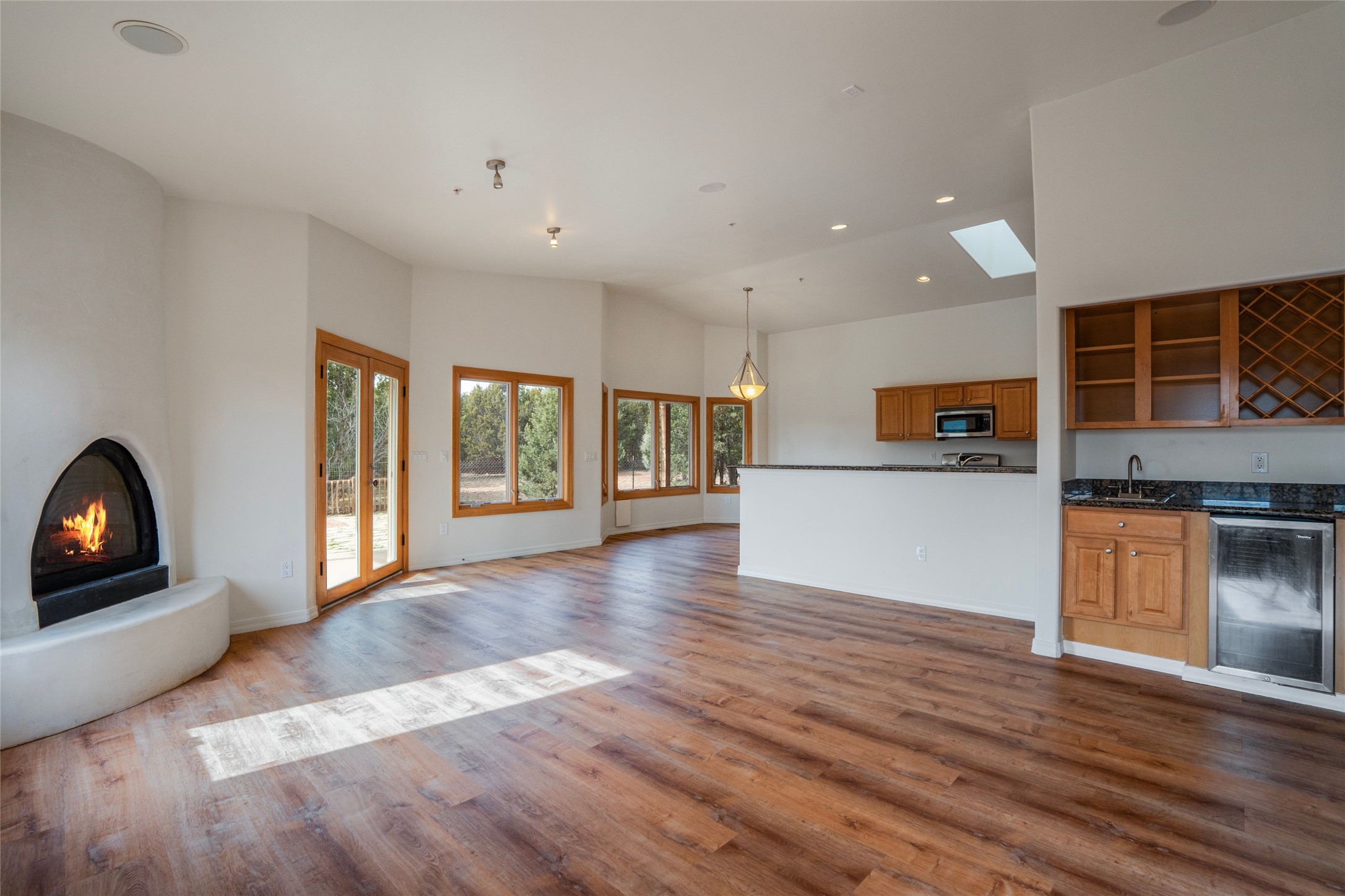 Discover the perfect blend of mountain tranquility and convenient living in this beautifully updated 4-bed, 2-bath home set on 1.3 acres with sweeping views of the Pecos Mountains. Located just 32 minutes from the historic Santa Fe Plaza, this property offers both privacy and an easy commute.Step inside to an inviting open concept living, dining, and kitchen area, anchored by a charming gas kiva fireplace in the great room, that adds warmth and Southwestern character. The smart floor plan provides excellent bedroom separation, with the primary suite privately situated away from the additional bedrooms.Enjoy the confidence of recent upgrades, including new paint and flooring in 2025 and a new pro-panel roof installed in 2020. The home also features a two-car garage and a covered back patio, the perfect spot to relax and enjoy our wonderful outdoor lifestyle.With its generous acreage, thoughtful layout, and fresh updates, this property offers comfort, beauty, and true New Mexico living.