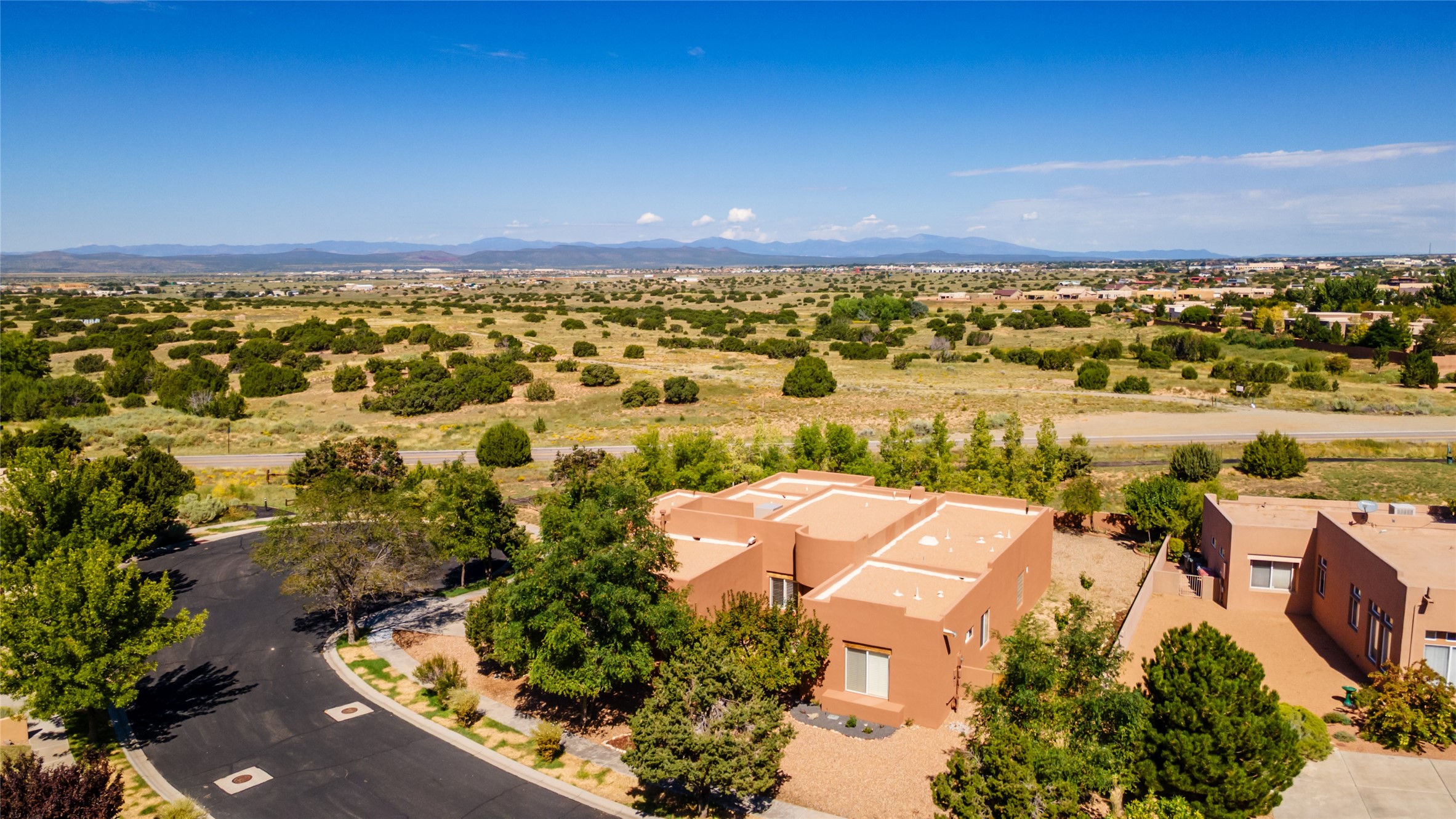 Welcome to this exceptional home, perfectly sited on a spacious lot at the end of a quiet cul-de-sac, with open space on two sides and gorgeous sunset views. Enjoy evenings by the outdoor fireplace as the sky puts on its nightly show. Thoughtfully updated by its current owners, this property offers tremendous value in today's market. With three bedrooms, four full baths, including an ensuite office, and a studio (easily used as a fourth or even fifth bedroom), the home provides remarkable flexibility for every lifestyle. The heart of the home is the magnificently remodeled chef's kitchen--an absolute showstopper. Bosch appliances, beautiful two-tone cabinetry, subway tile with mosaic accents, hand-punched tin details, brick-set tile flooring, and a mix of granite and quartz countertops come together in a space any cook will adore. The dining room is inviting and generous, designed to host family gatherings and memorable evenings with friends. The living area offers vigas overhead, a wood-burning fireplace, and warm natural light--a perfect space for cozy winter days. The primary suite is a private retreat: spacious, serene, and complete with a beautifully updated bath with customized walk-in shower, dual hammered nickel sinks and lighting, and an excellent walk-in closet. It's a haven for mornings that start slow and evenings that wind down in comfort. Additional upgrades made during this owner's tenure include a new boiler and evaporative cooler, new carpeting, fresh interior paint, new ceiling fans and custom lighting, plus plantation shutters throughout--both beautiful and energy-efficient. Exterior wise, the stucco was also recently replaced and refreshed and the rear yard has been enhanced with new rock landscaping, pathways, and fruit trees, creating a peaceful outdoor escape. The slightly oversized garage is another welcome bonus with additional storage shelves. Located in the desirable Village at Rancho Viejo, this community offers miles of paved walking trails, multiple parks, sensible covenants, friendly neighbors, and convenient access to shopping and restaurants. Roughly 12 miles to the Santa Fe Plaza, this fantastic home delivers!