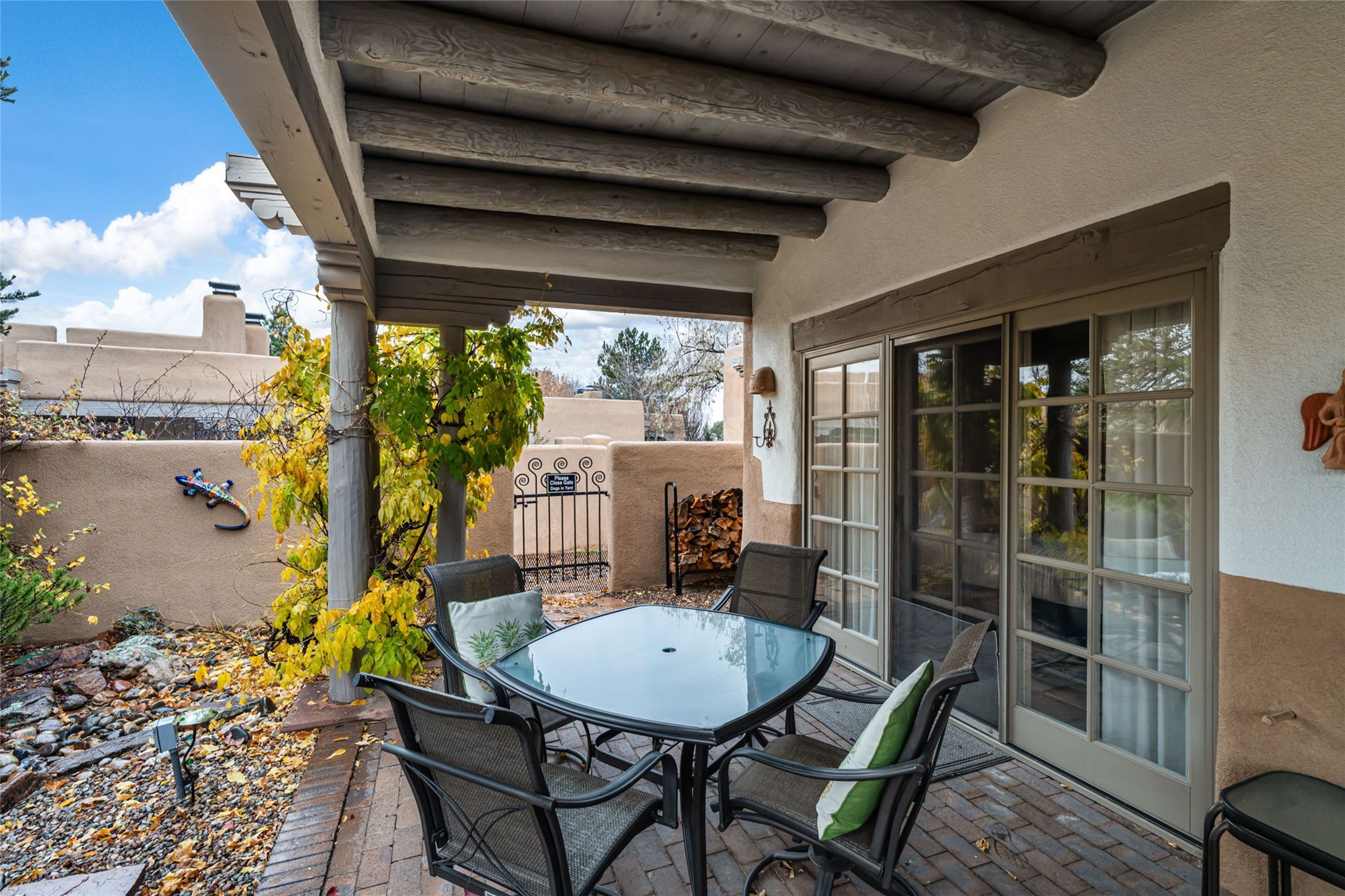 Experience timeless Santa Fe Style and classic charm in this beautifully maintained lock-and-leave condo located within one of the Santa Fe's premier golf resort communities. This inviting residence offers a functional, well-designed layout enhanced by authentic architectural details. Enjoy serene mornings in the lovely front courtyard, and unwind in the evenings on the inviting rear portal, perfect for outdoor dining or quiet relaxation. Set within a resort known for its impeccably kept grounds, residents have access to an array of top-tier amenities, including a state-of the-art pool and fitness areas, pickleball and tennis courts, 24 hour hosted security for peace of mind and much more. Whether you're seeking a full-time residence or the ideal low-maintenance get away, this exceptional property captures the essence of Santa Fe living with comfort, convenience and style. Home ownership at Quail Run includes all of its fabulous amenities.