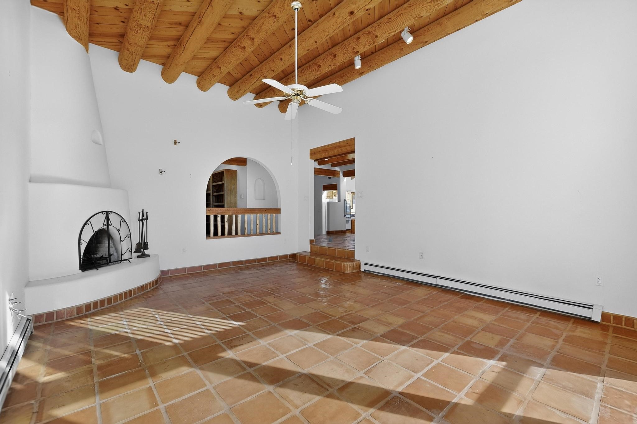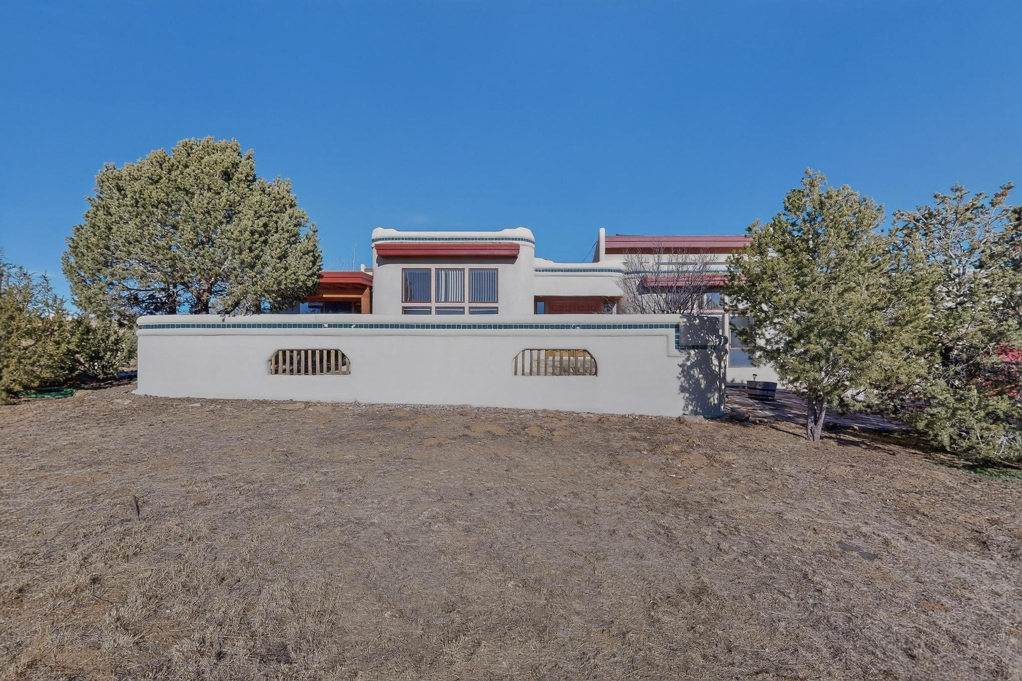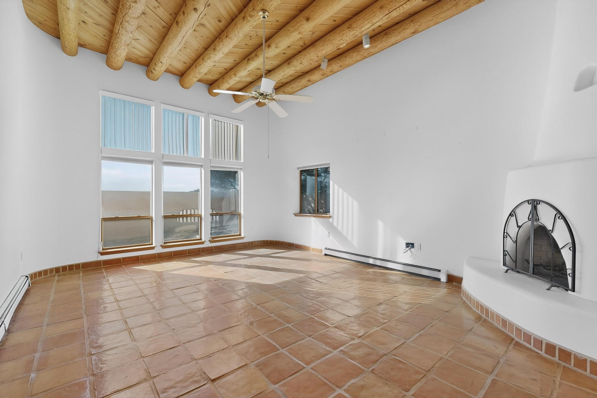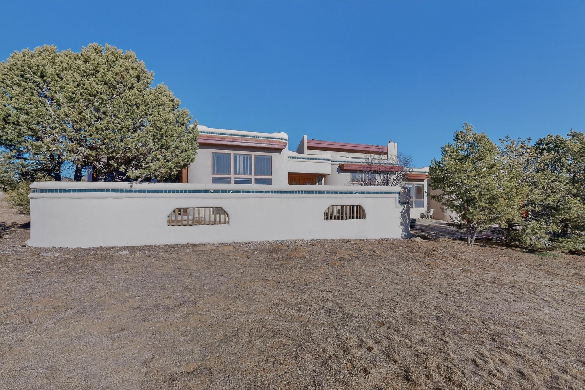 Remarkable opportunity to obtain a 3963sf multi generational 4 bedroom home in Eldorado. Born with a passive solar design and high ceilings with deep southern glazing this home is full of sunlight. Saltillo tile floors, beam and viga ceilings, high clerestories, nichos and 2 kiva fireplaces this contemporary pueblo home is amazing. A spacious country style kitchen with large breakfast bar and breakfast nook will accommodate plenty of family entertainment. There is an adjoining family room, sunken living room and a formal dining room/den off the kitchen. the owners suite features a spacious bathroom and walk in closet, plus there are 3 guest bedrooms with a 3/4 and full bath. The laundry includes a tub and plenty of extra storage. On going through the 3 bay garage you can enter the studio/guest wing which includes a 2 large rooms, bath and a separate 4th garage. A walled private flagstoned courtyard and portal in front and to the rear offer plenty of outside enjoyment. The paved driveway also includes plenty of guest parking. This home is within easy reach of the Eldorado Community Center amenities, local shopping, school, library and senior center, and only minutes into Santa Fe.