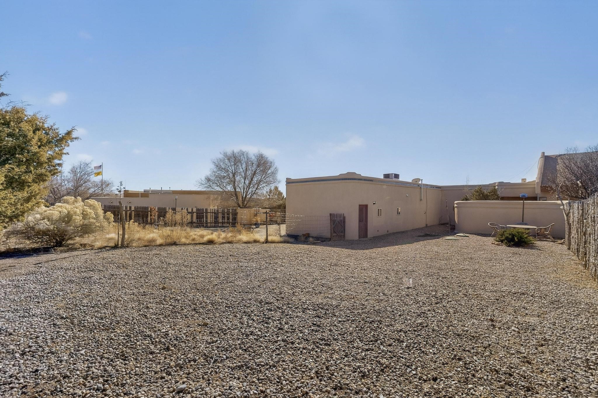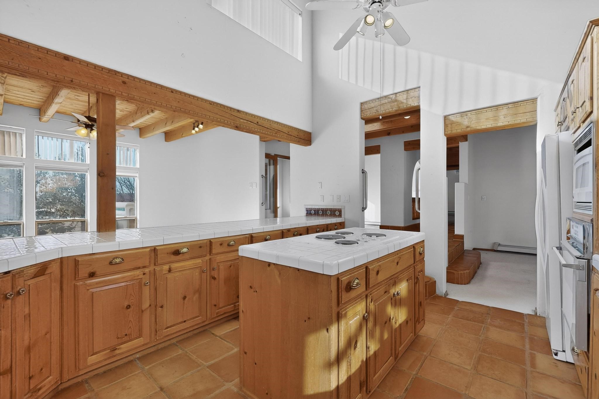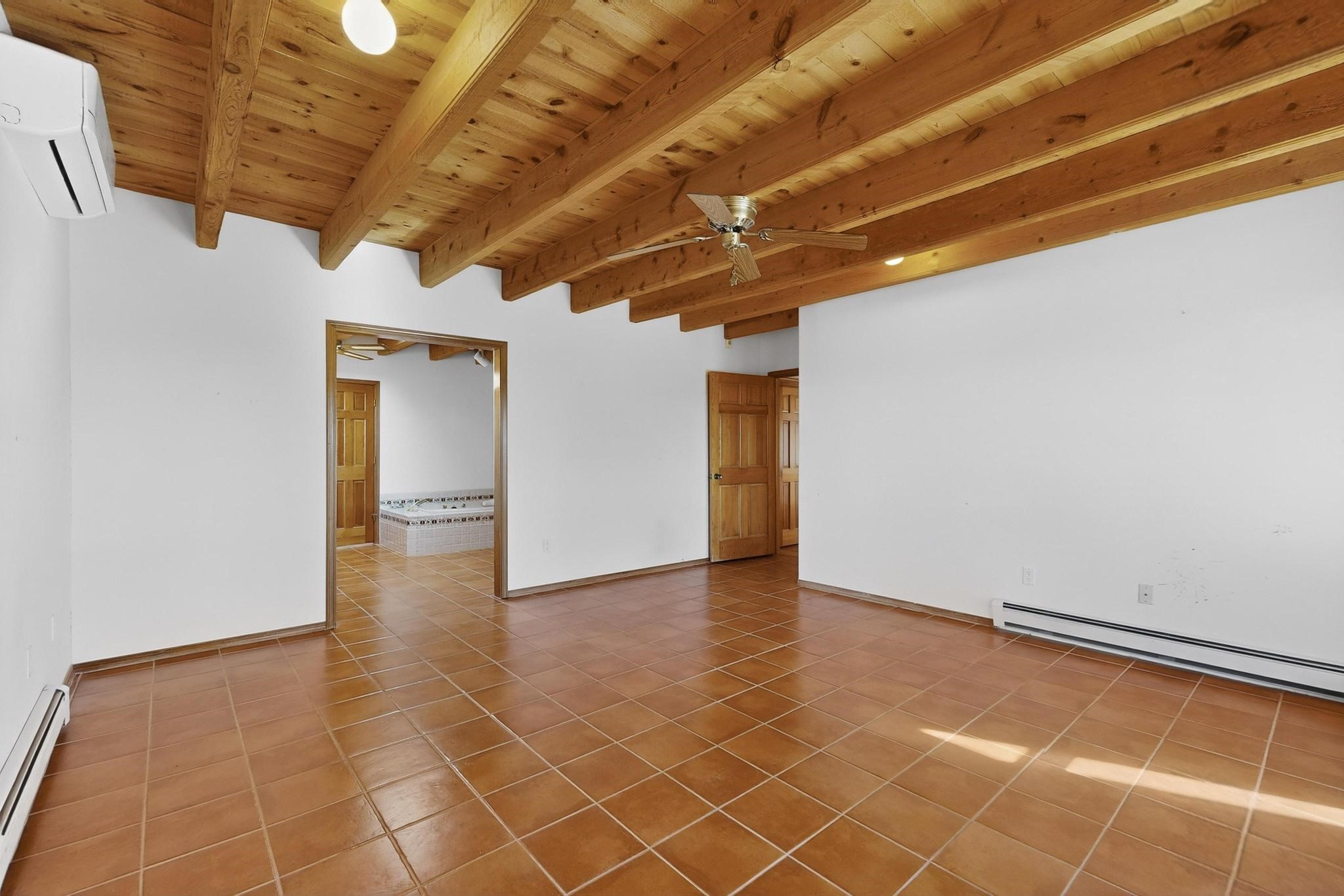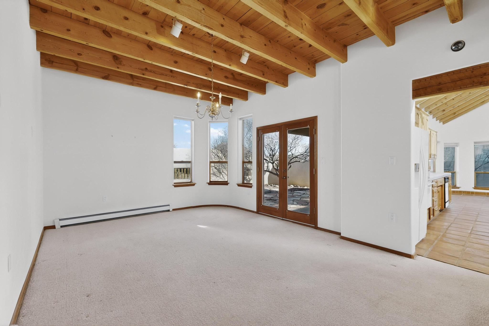 Remarkable opportunity to obtain a 3963sf multi generational 4 bedroom home in Eldorado. Born with a passive solar design and high ceilings with deep southern glazing this home is full of sunlight. Saltillo tile floors, beam and viga ceilings, high clerestories, nichos and 2 kiva fireplaces this contemporary pueblo home is amazing. A spacious country style kitchen with large breakfast bar and breakfast nook will accommodate plenty of family entertainment. There is an adjoining family room, sunken living room and a formal dining room/den off the kitchen. the owners suite features a spacious bathroom and walk in closet, plus there are 3 guest bedrooms with a 3/4 and full bath. The laundry includes a tub and plenty of extra storage. On going through the 3 bay garage you can enter the studio/guest wing which includes a 2 large rooms, bath and a separate 4th garage. A walled private flagstoned courtyard and portal in front and to the rear offer plenty of outside enjoyment. The paved driveway also includes plenty of guest parking. This home is within easy reach of the Eldorado Community Center amenities, local shopping, school, library and senior center, and only minutes into Santa Fe.