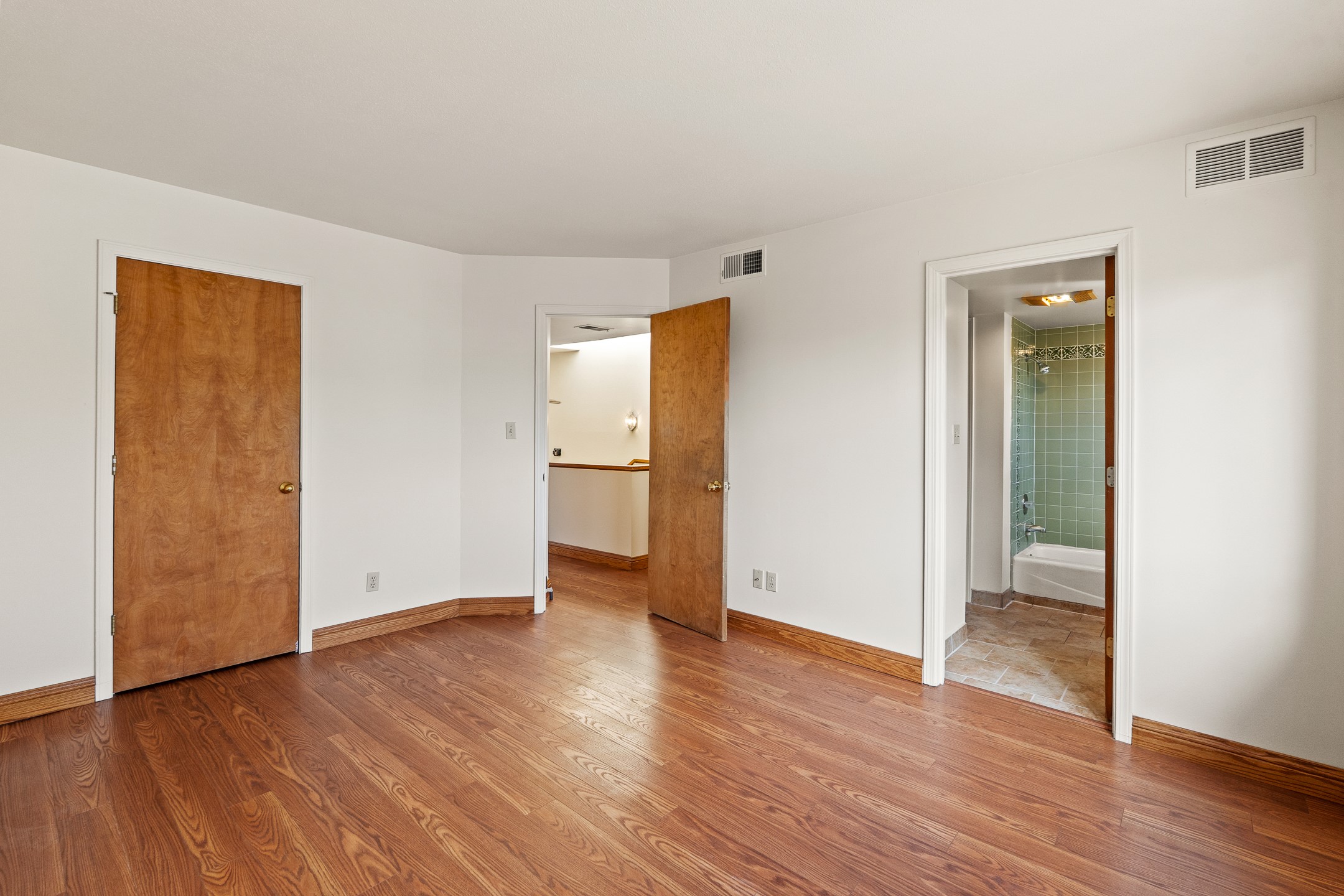 Just steps from the historic Plaza, this charming 2-bedroom, 2-bath condo embodies the true spirit of Santa Fe living. Classic brick floors, vigas and high beamed ceilings, and a traditional wood-burning kiva fireplace create an authentic Southwestern ambiance from the moment you enter. The main living and dining areas feel warm and inviting, complemented by a cozy bar nook and a convenient three-quarter bath on the first level.The kitchen offers generous counter space, a large window over the sink that frames the changing New Mexico light, and a traditional pass-through to the dining area--perfect for casual gatherings. An elegant oak stairway, crowned by a soaring skylight, leads to the upper-level bedrooms. Sunlight fills the space, enhancing the natural textures and warm tones throughout.Both bedrooms feature ample closets and share a full bath, while expansive windows and the upper skylight welcome bright desert light and capture distant mountain views. With no carpeting, the home maintains its clean, easy-care, Southwestern aesthetic.A rare detached one-car garage provides valuable storage and convenience in this prized downtown location. With its blend of regional character, natural materials, and unbeatable proximity to Santa Fe's galleries, restaurants, and historic streets, this property offers the quintessential Southwestern retreat.