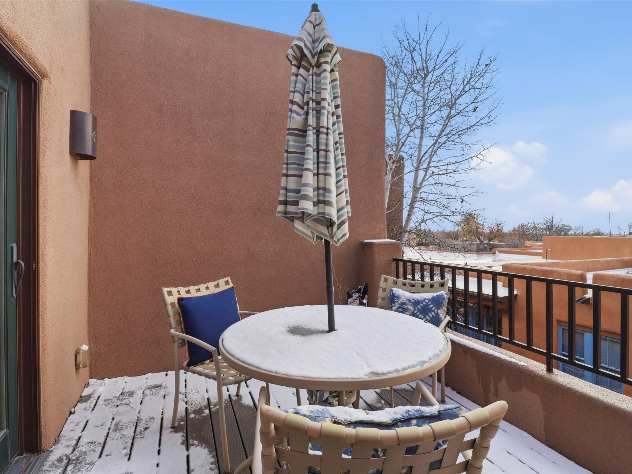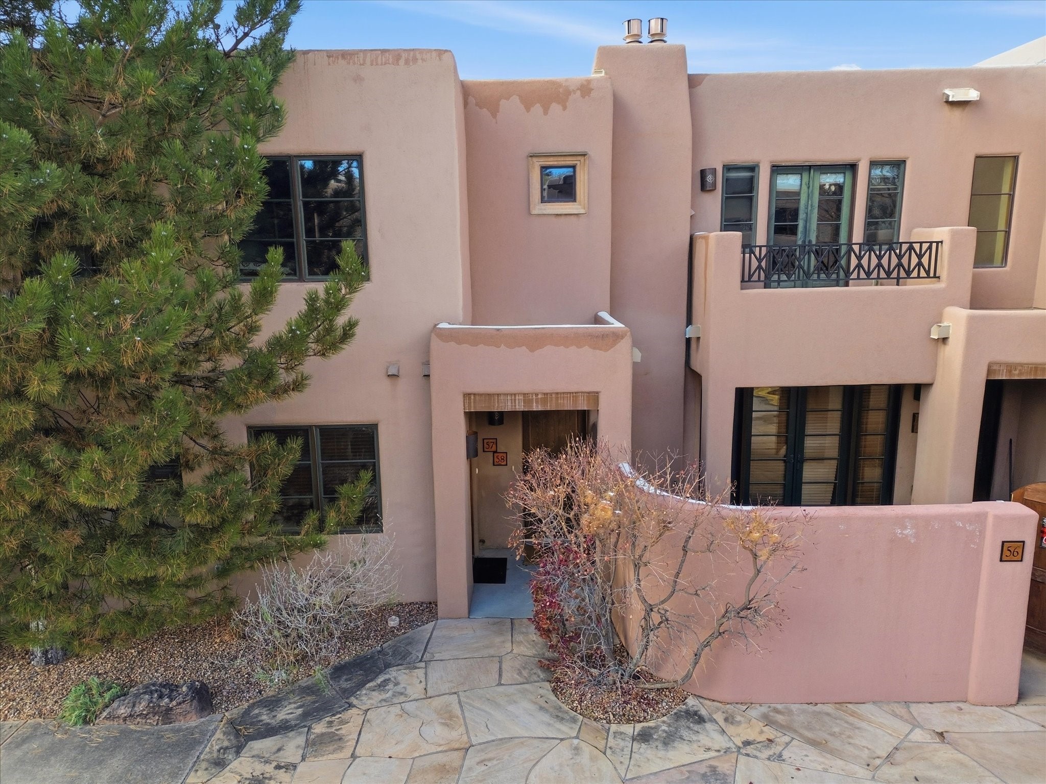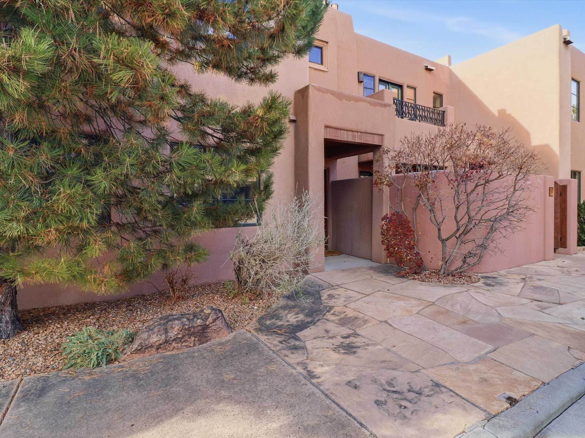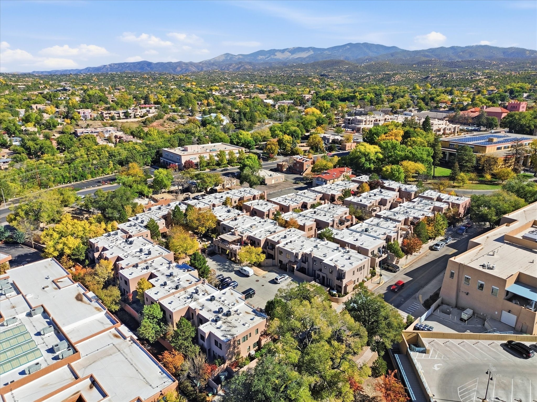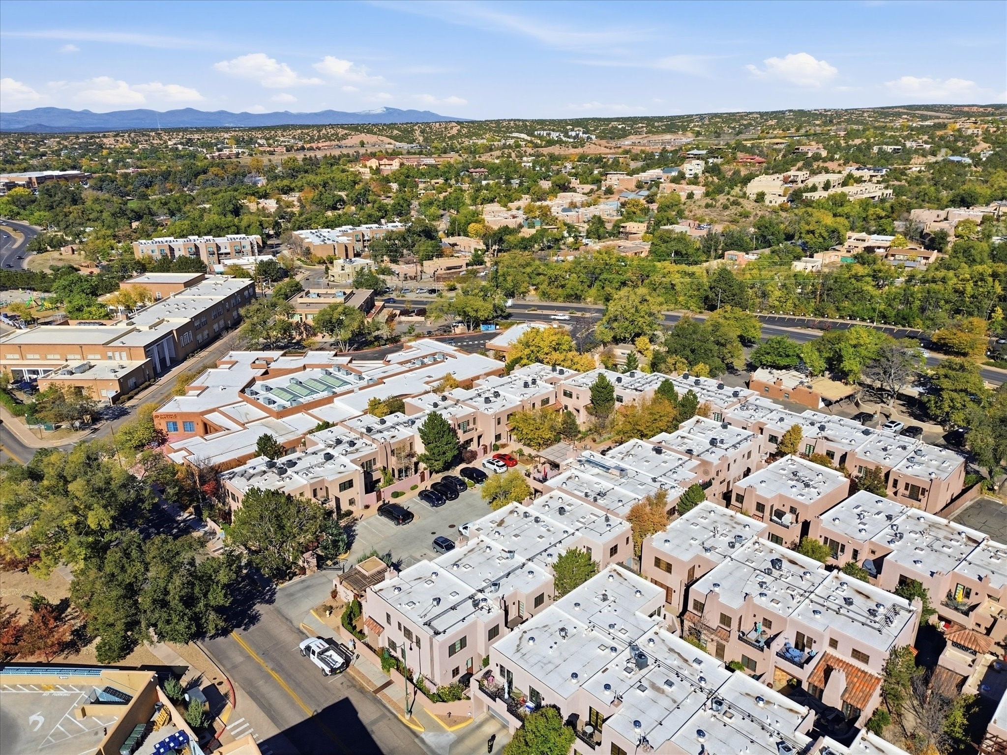 Welcome to El Corazn de Santa Fe, a gated community perfectly situated in downtown Santa Fe -- just minutes from the Plaza, local music, restaurants, and shopping. This two-bedroom, one-bath upper unit offers a seamless blend of style, comfort, and practicality for modern living. Step inside to an open concept living and dining area, perfect for relaxing or entertaining, with easy access to a private balcony where you can enjoy your morning coffee or Santa Fe sunsets. The kitchen is thoughtfully designed with ample built-in cabinets and appliances ready for daily use, plus a conveniently located laundry space for seamless movement. The unit features two bedrooms, including a primary bedroom with a built-in closet, and a remodeled full bathroom. The layout ensures comfort and privacy, while the second-story location provides quiet and scenic views from inside the unit. Residents of El Corazn enjoy an array of community amenities, including a rooftop open space at the clubhouse, a gym, and a barbecue area -- ideal for staying active, socializing, or simply relaxing outdoors.With downtown dining, shopping, and entertainment just moments away, this home perfectly balances city access with everyday comfort. Whether you're looking for a stylish downtown condo or a convenient retreat in Santa Fe, this unit is a must-see.
