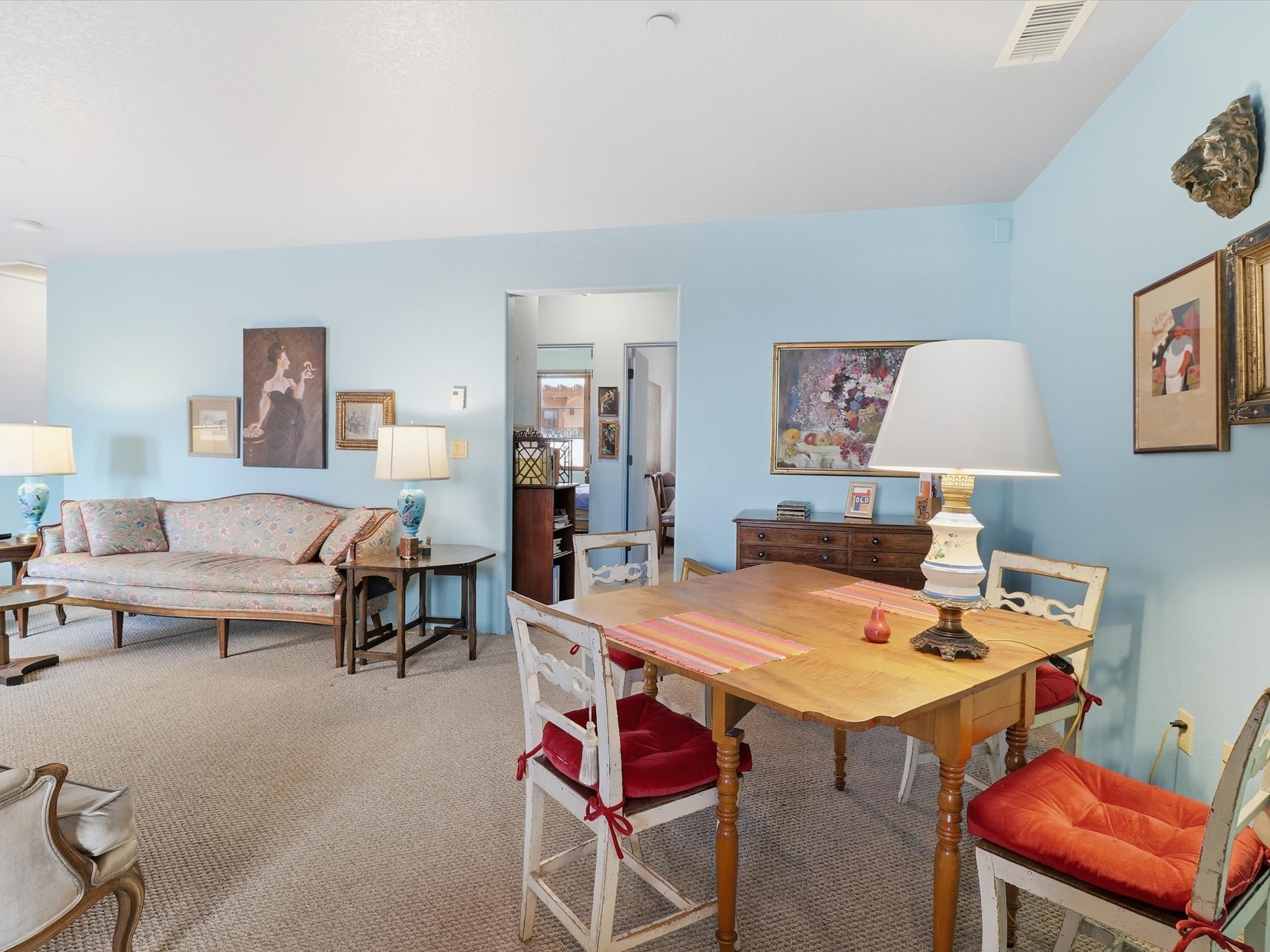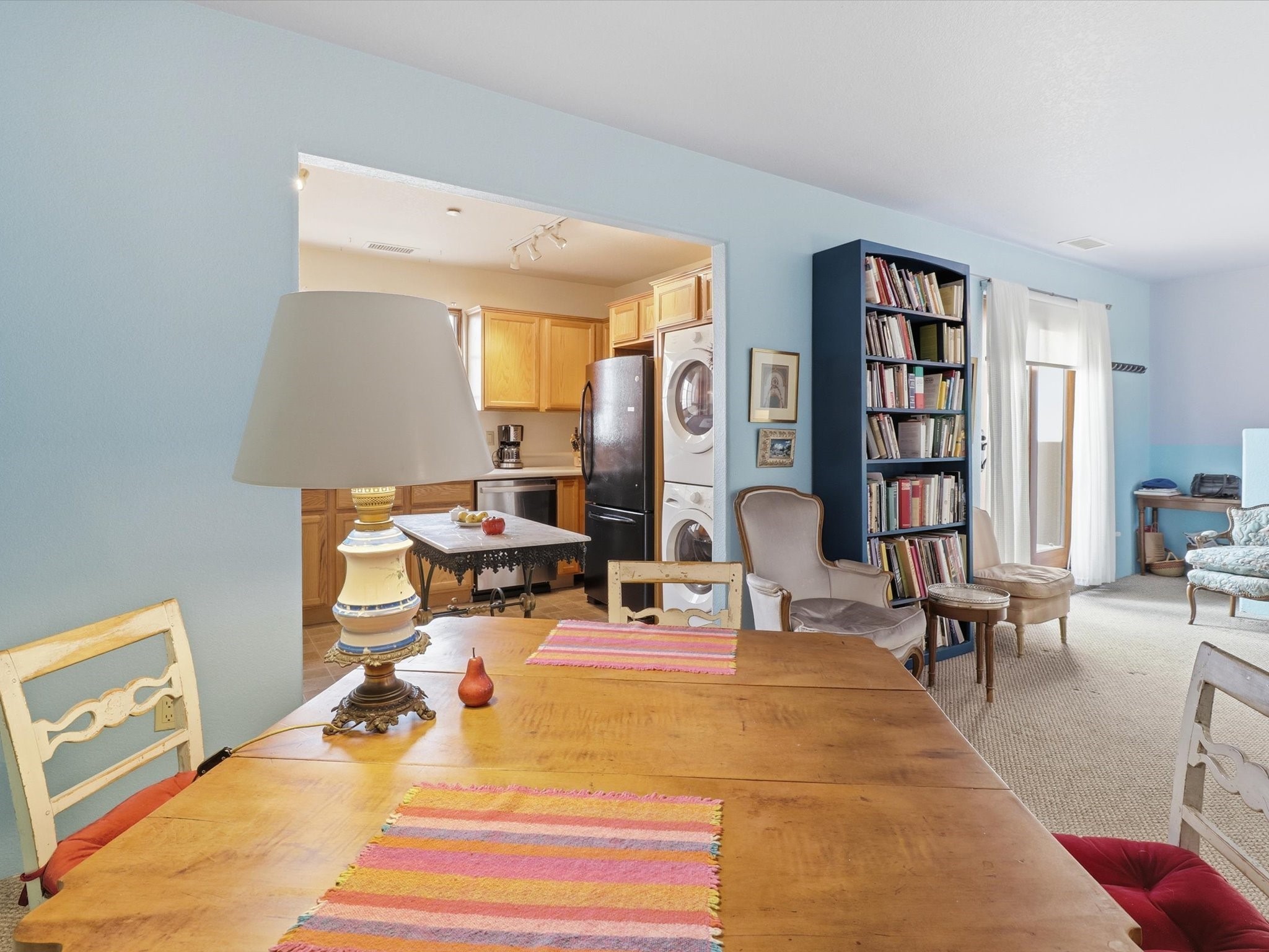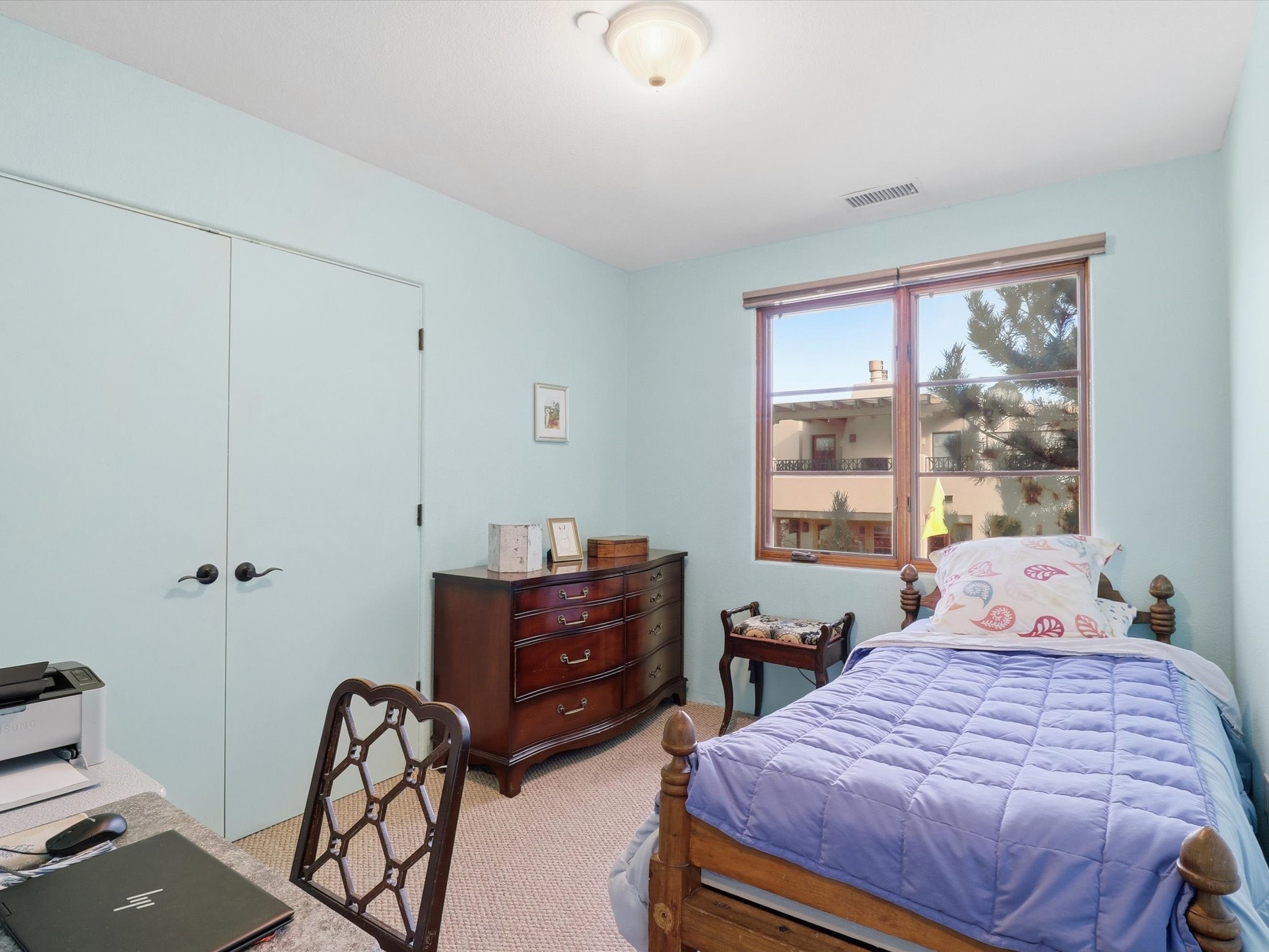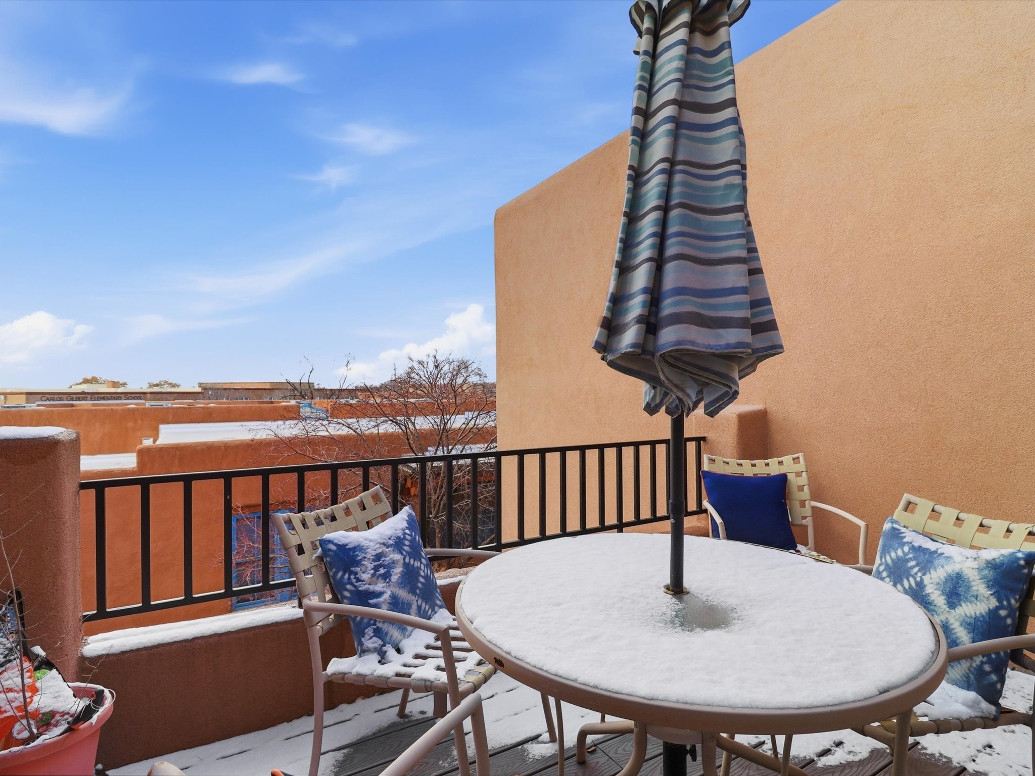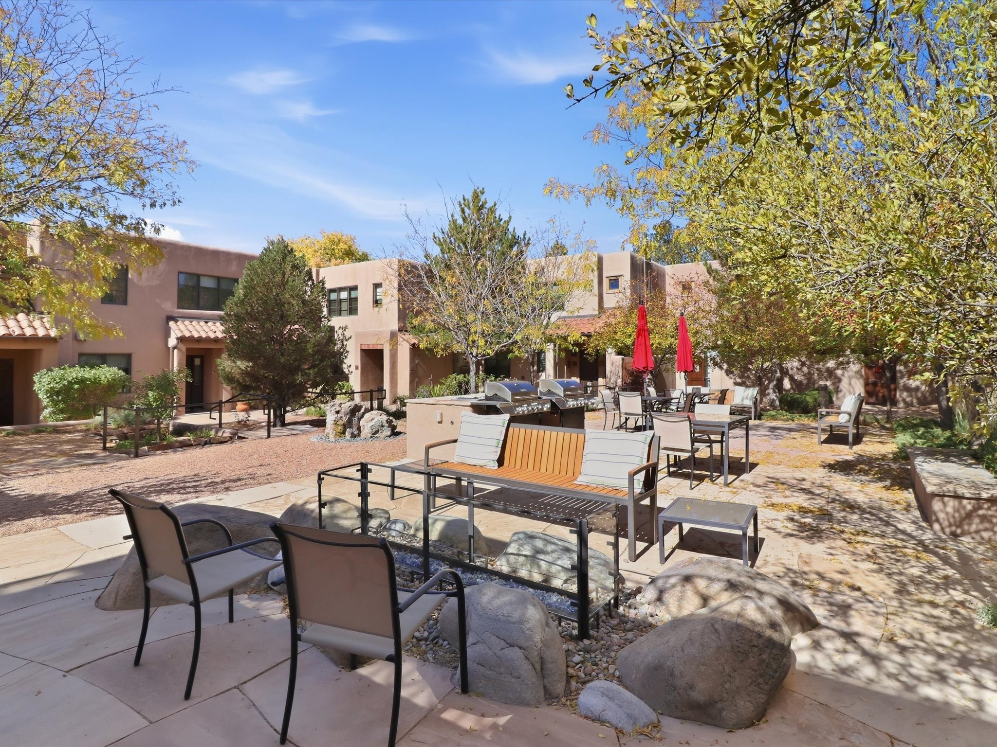 Welcome to El Corazn de Santa Fe, a gated community perfectly situated in downtown Santa Fe -- just minutes from the Plaza, local music, restaurants, and shopping. This two-bedroom, one-bath upper unit offers a seamless blend of style, comfort, and practicality for modern living. Step inside to an open concept living and dining area, perfect for relaxing or entertaining, with easy access to a private balcony where you can enjoy your morning coffee or Santa Fe sunsets. The kitchen is thoughtfully designed with ample built-in cabinets and appliances ready for daily use, plus a conveniently located laundry space for seamless movement. The unit features two bedrooms, including a primary bedroom with a built-in closet, and a remodeled full bathroom. The layout ensures comfort and privacy, while the second-story location provides quiet and scenic views from inside the unit. Residents of El Corazn enjoy an array of community amenities, including a rooftop open space at the clubhouse, a gym, and a barbecue area -- ideal for staying active, socializing, or simply relaxing outdoors.With downtown dining, shopping, and entertainment just moments away, this home perfectly balances city access with everyday comfort. Whether you're looking for a stylish downtown condo or a convenient retreat in Santa Fe, this unit is a must-see.