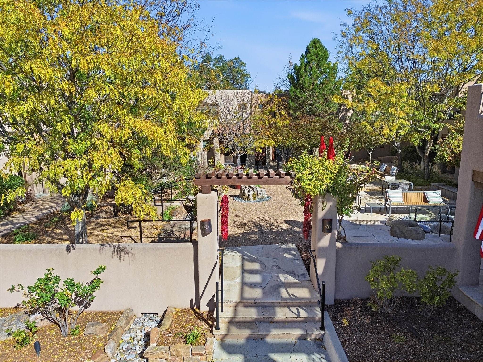The Northeast of Santa Fe, within city limits, combines the pleasures of quiet living with the conveniences of location. On every tree-lined street are examples of newer, award-winning architecture and well-established, older adobes. In addition to the famous Plaza, this area includes all the land reaching up to the Jemez and the Sandias.