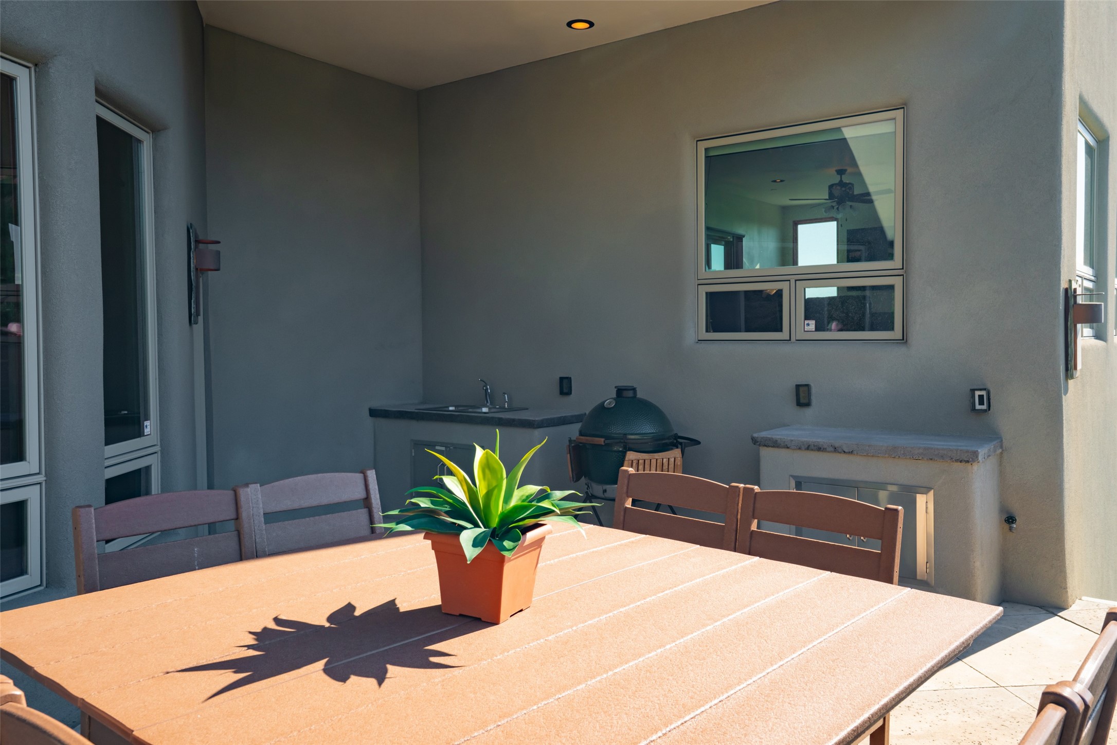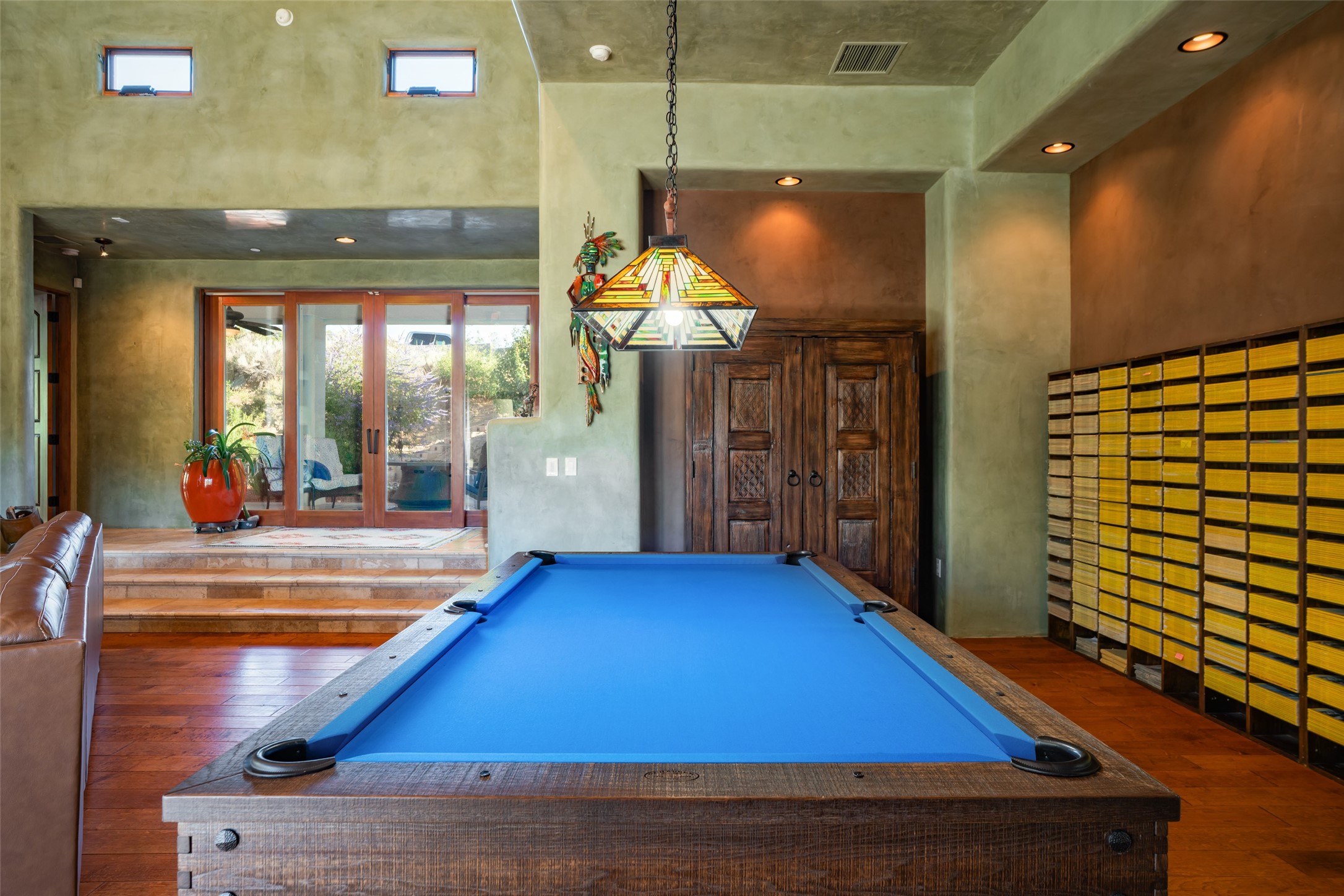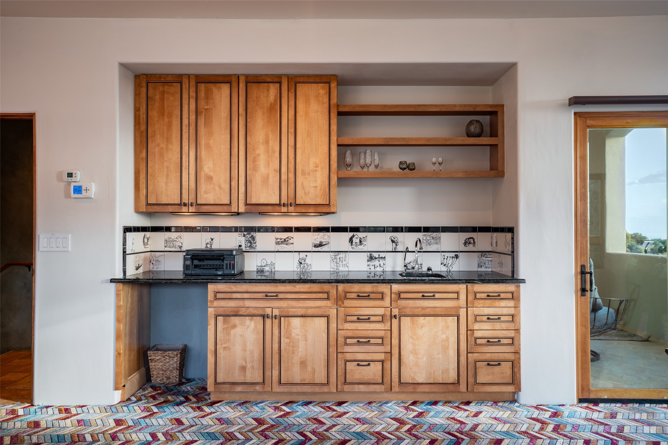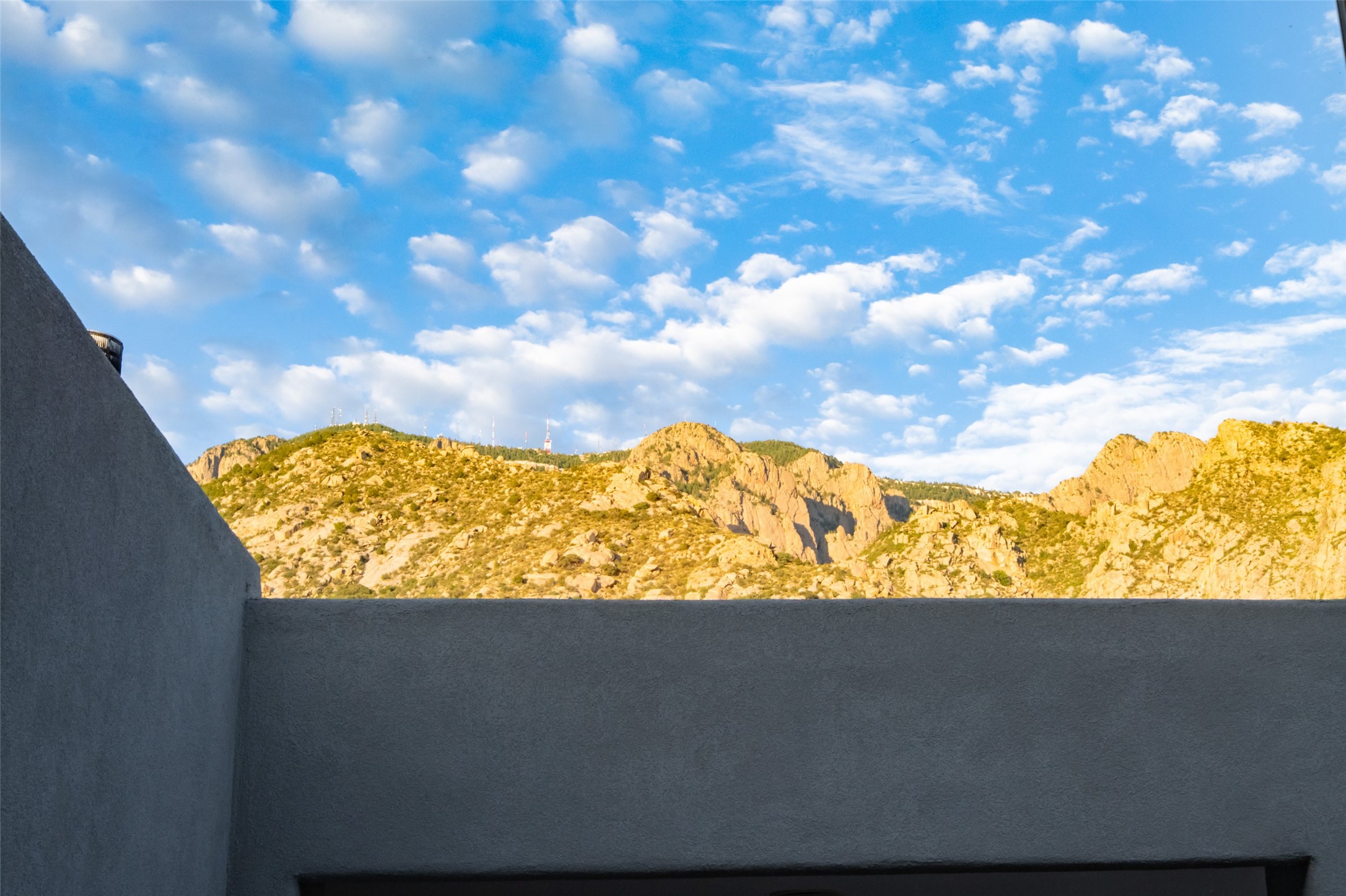 Fronting to National Forest land with forever views of the sunsets, twinkling city light like a jewel box below and endless mesa tops beyond, the special retreat awaits. Custom built with special, quality materials, this home is special. Enter to a view of Sandia Peak and a private Zen garden. To your right, you will find a tremendous guest suite with a large sitting room or fun flex space with windows to enjoy the city lights, a bedroom with private bath with a no step walk-in shower and patio access. To your left from the entry, follow the travertine floors to a spacious kitchen with huge island, gas cooktop, double ovens, warming drawer, walk-in pantry w/dumb waiter to garage level, and generous dining area overlooking the mountains. In the southwest, our weather is so beautiful that the patios become some of our favorite rooms of the house! From the great room, access two patios, one with a fireplace and mounain views and one protected, private patio with garden view. This room includes a wood burning fireplace, scraped wood floors, soaring ceiling and plaster walls. In private wings you will find a luxurious primary suite with gas fireplace, sitting room or workout space, HUGE closet, patio access, and spa like bath with soaking tub, multi head shower, separate steam shower and access to outdoor hot tub to enjoy the starry night skies. In the opposite wing, find bedroom, bath, and second living area with endless vistas. Each bedroom wing includes a sitting rm beside which is great for multi-generational living. Oversized 3 car garage with storage. Owned solar panels. Geothermal heating and cooling. 1.19 acre lot with community water. Truly remarkable home.