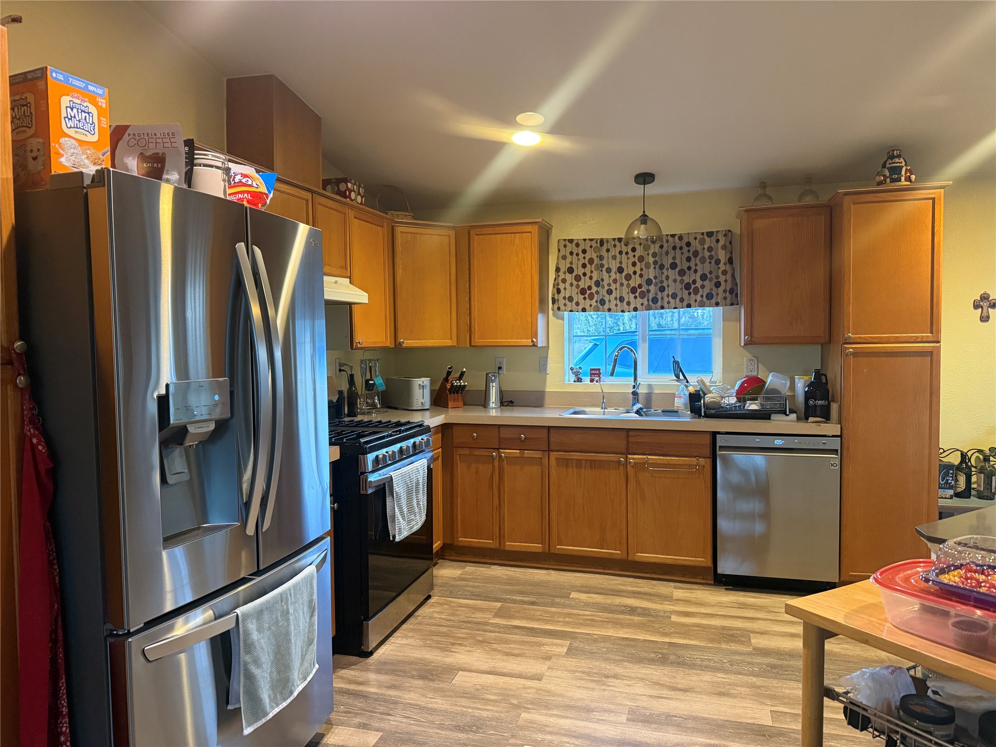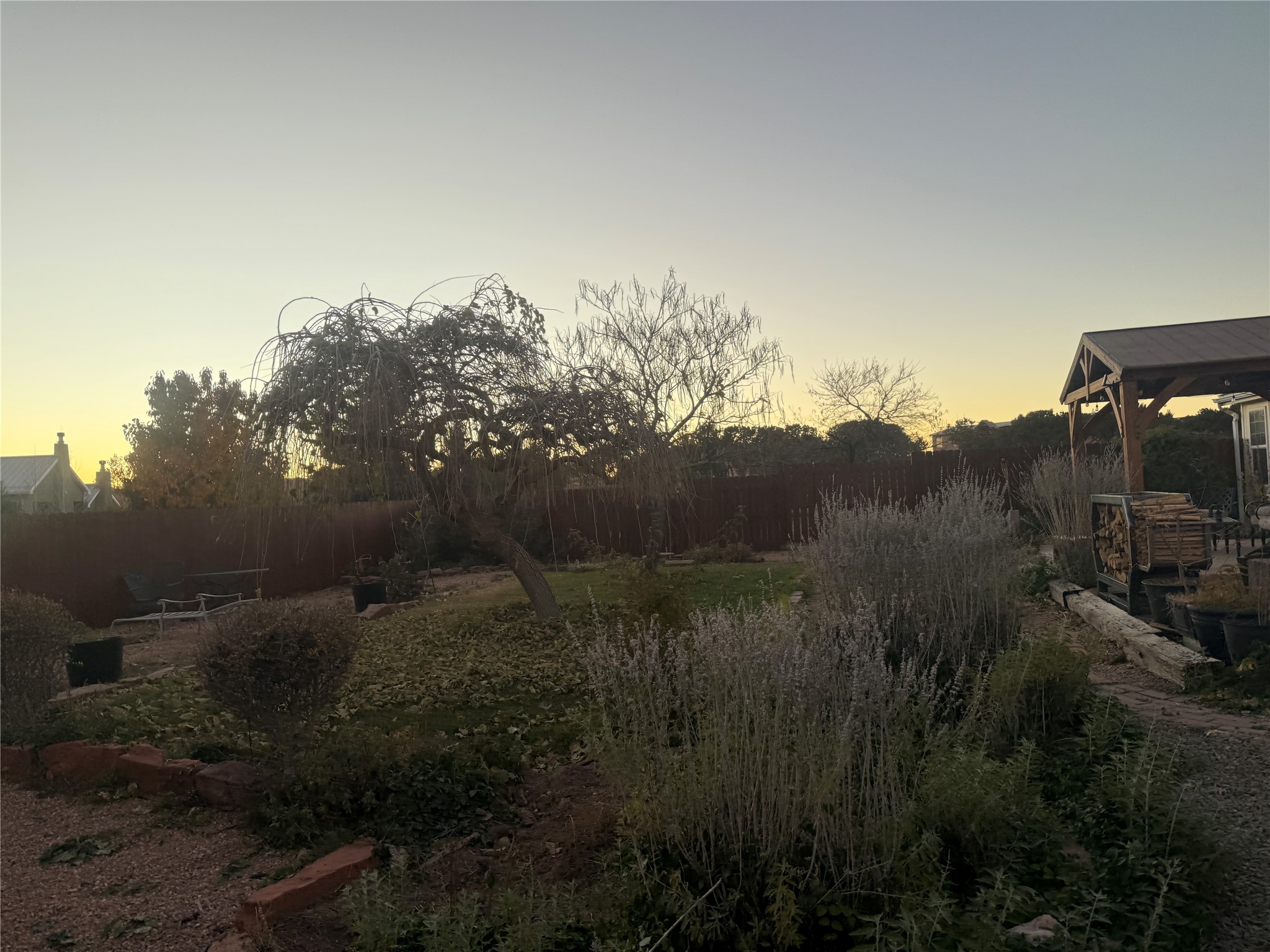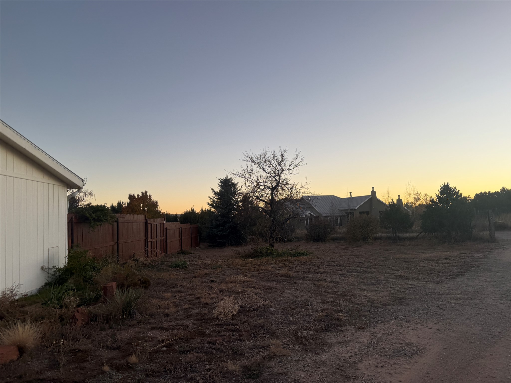 Peaceful private home in a rural setting with easy access to amenities and downtown Santa Fe. Enclosed front yard, metal roofing, refrigerated ac. Large new shop building for all your creative activities and storage. Large lot is fully fenced for your privacy and enjoyment.