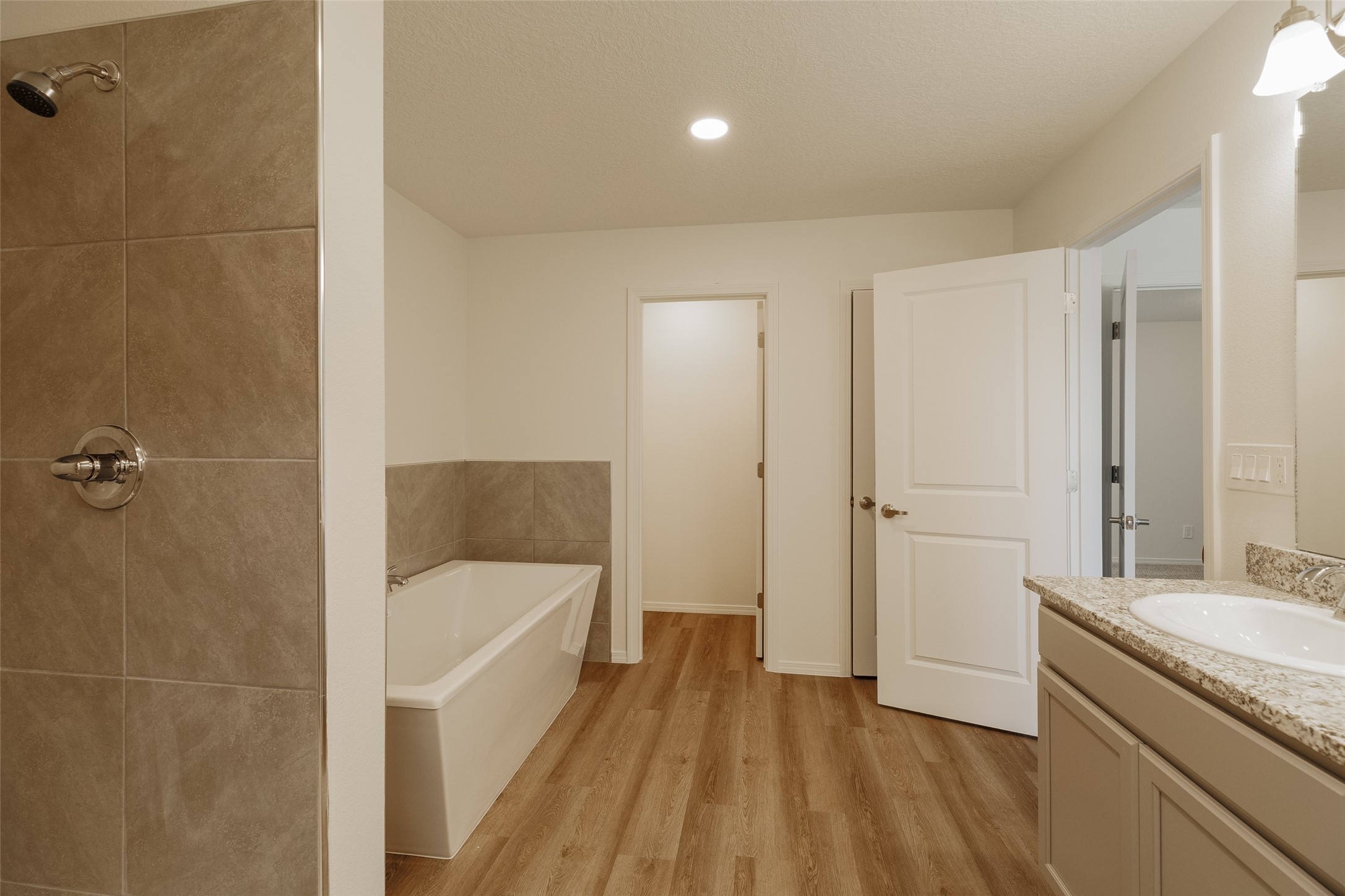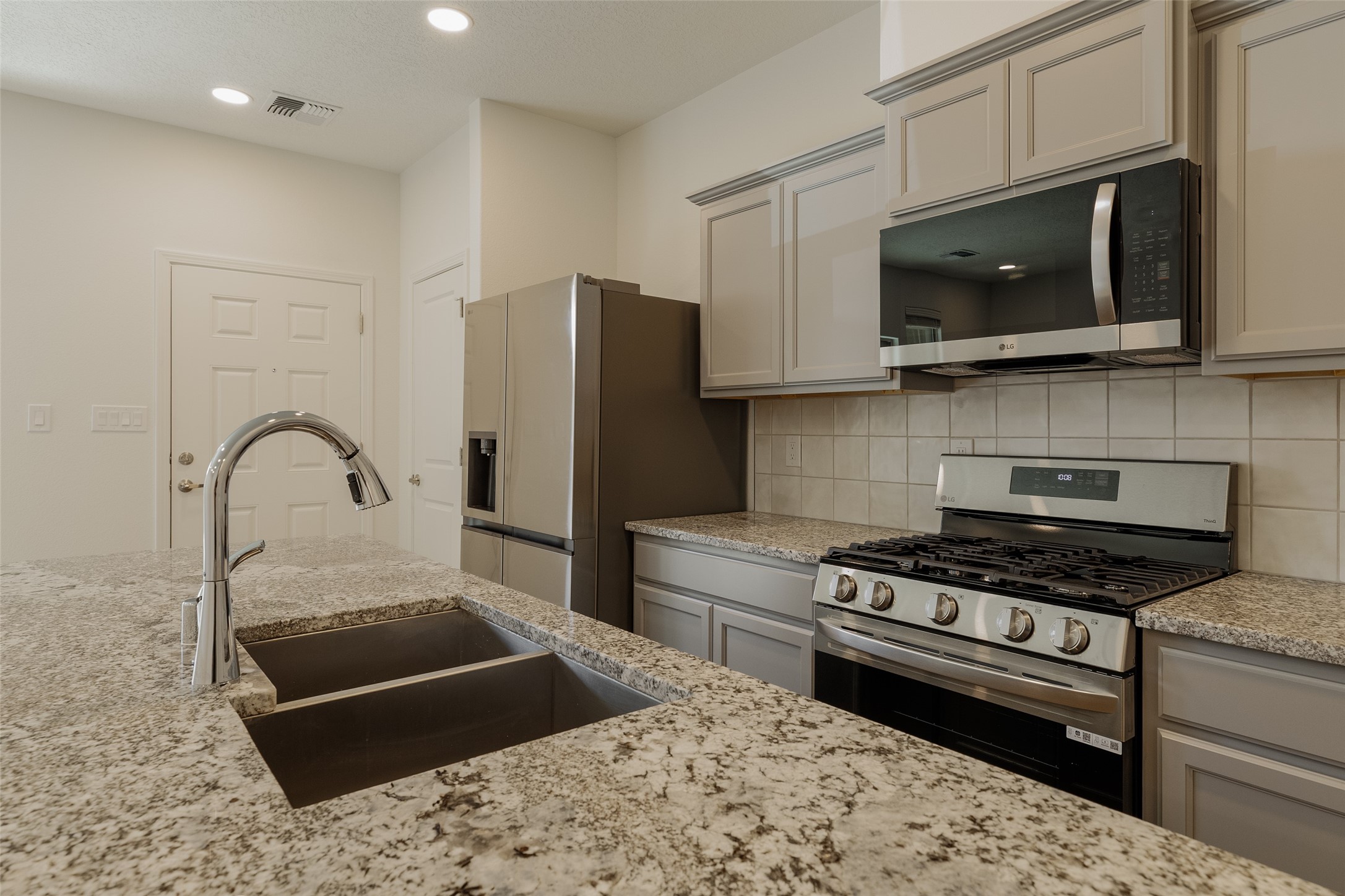 Beautiful new townhome in new community! The First floor is an open floorplan with kitchen, dining area, powder bath and living area. Living area features glass sliders opening to a spacious back patio. The second floor features all three bedrooms and the laundry room. The Primary bath features dual sinks, shower and separate commode area. Second upstairs bath features tub/shower. Large closets throughout. Primary bedroom has walk-in closet. Solid granite countertops in Kitchen and baths w/4" granite backsplash. Luxury vinyl tile on entire first floor, bathrooms and laundry room. 2-10 Ltd 10yr Warranty + Exclusive Builder 1 yr warranty. Front and rear landscaping. Recessed LED lighting. Tankless water heater, programmable thermostat and much more. Many energy efficient features.
