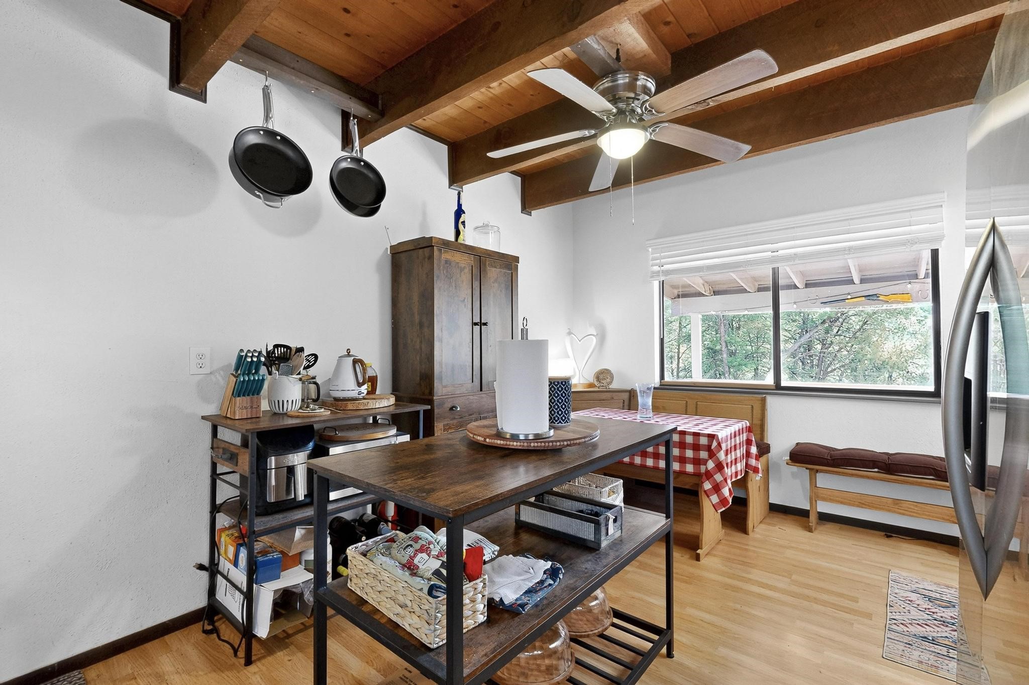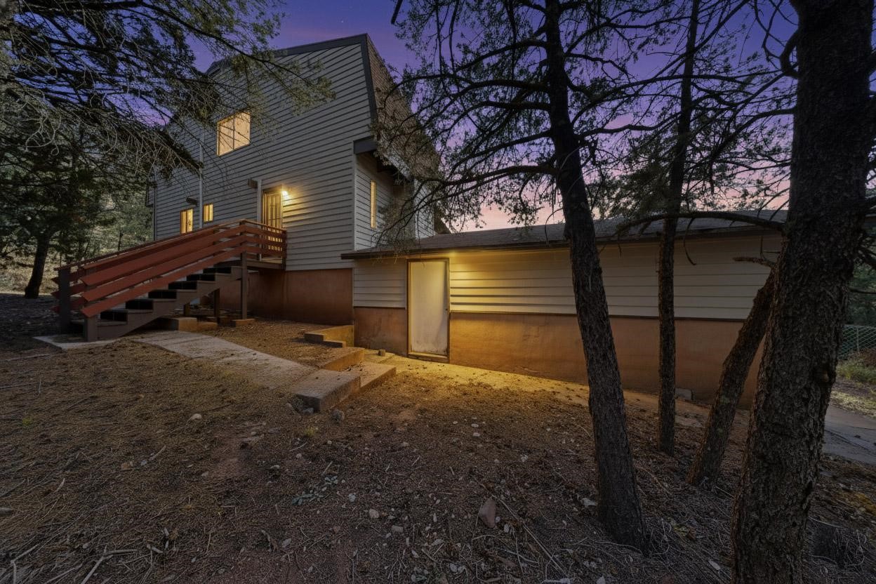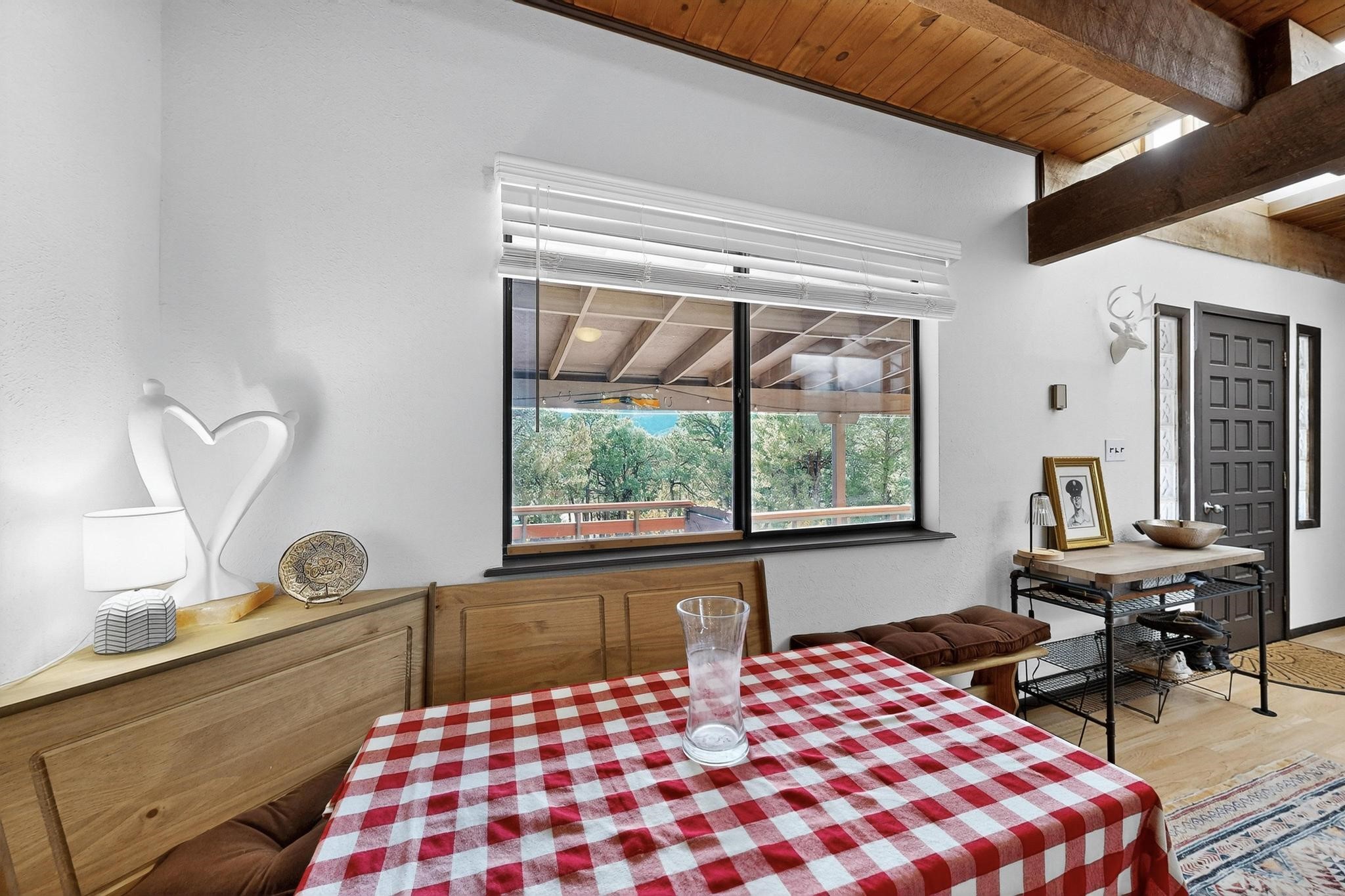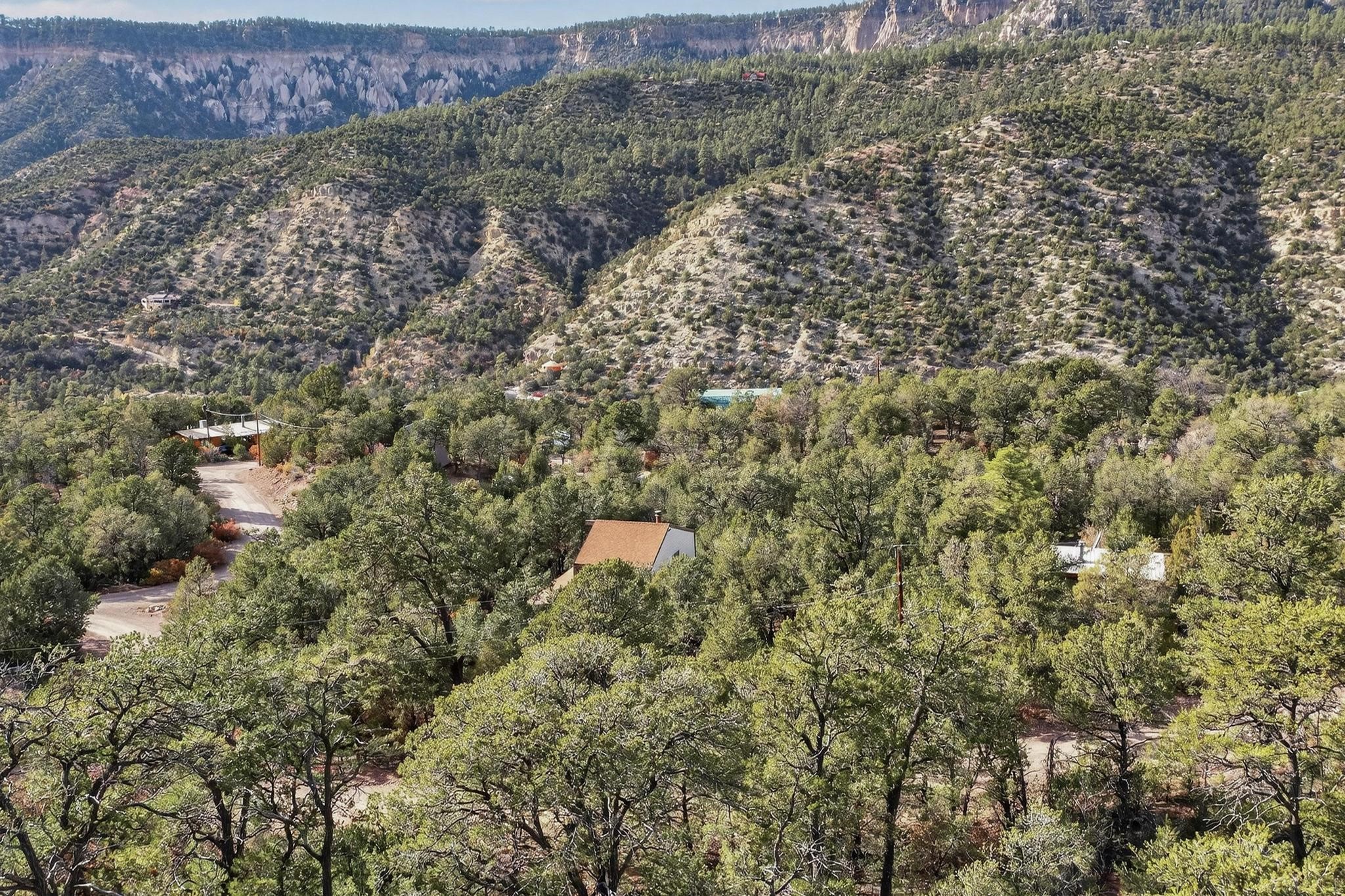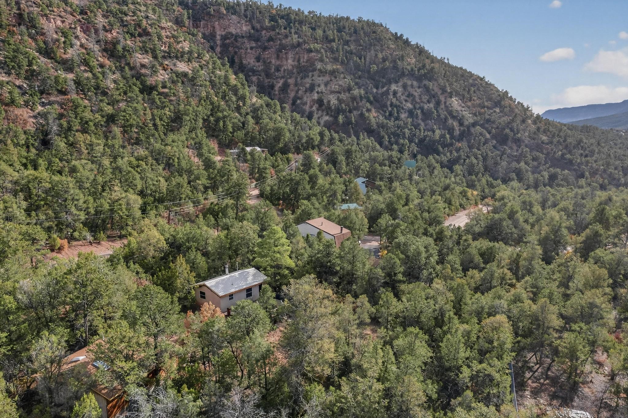 Nature lovers' dream home alert! Escape from the hustle and bustle in this clean, cozy mountain retreat with spectacular unobstructed views of the majestic Jemez Valley. Nestled in the pines, this hard-to-find gem of a home offers modern comforts with the mini-split system, or warm up next to the wood-burning stove, relish the abundant natural light throughout, and sip your morning coffee in the country kitchen or entertain guests in the tucked-away bar/recreation area in the basement. Upstairs you'll find two generously sized bedrooms with perfectly positioned viewing windows. You'll be seeing yourself right on home, soaking up the fresh air on your oversized covered deck, staying busy in your attached 2-car garage/workshop, or taking the short walk to the river! A MUST SEE!