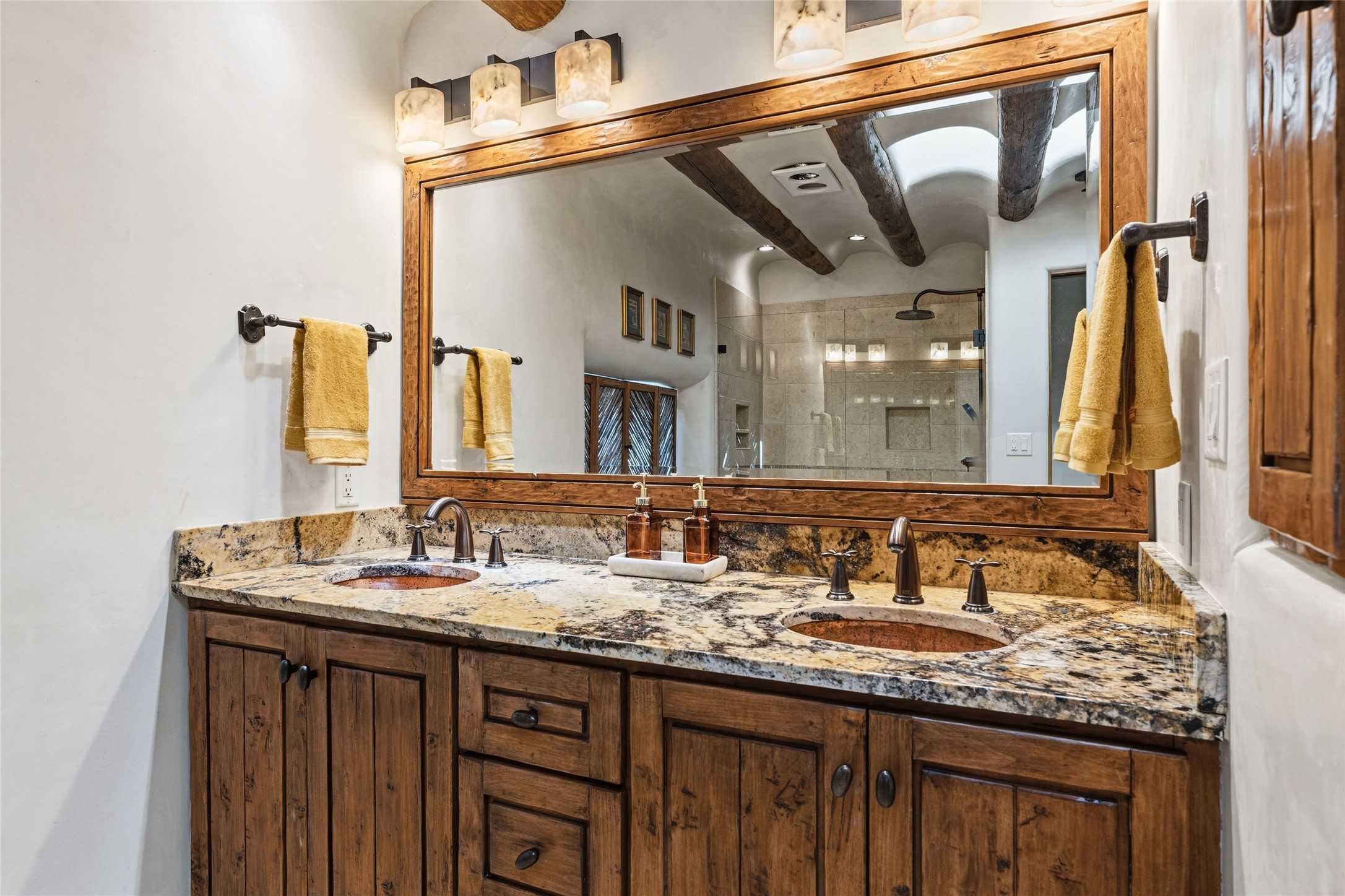 Where History Meets the River. In the heart of the Tesuque foothills, where the river still runs and cottonwoods shade the valley floor, stands a home unlike any other in Santa Fe. At its center: a circular Kiva with three-foot-thick adobe walls, built as a silo by the Tewa people in the 1750s--a full century before the tax assessor's official 1867 date. These massive walls have witnessed the entire arc of New Mexico's history, from Spanish colonial times through statehood and into the present day. The intimate, contemplative space of the Kiva--one of seven fireplaces in this gracious home--contrasts magnificently with the adjacent living room's soaring twenty-foot ceilings. This is architecture as conversation: between old and new, between earth and sky, between the quiet of thick adobe and the drama of light and volume. The Tesuque River runs alongside the property. Multiple portals and outdoor living spaces--carefully designed for four-season use--frame views of the Sangre de Cristo Mountains. The primary suite occupies its own level with expansive living room, dressing room, and bath, opening onto a private outdoor terrace. A fully renovated guest suite (circa 2007) offers its own entrance for visiting family or creative collaborators. A third guest area completes the flexible floor plan. Since 2024, the property has undergone comprehensive renovation: new boiler system, updated plumbing and electrical, complete perimeter adobe wall replacing the original coyote fence, restored and newly constructed portals, custom ironwork throughout, and fresh exterior paint. Modern infrastructure--updated security system, new internet, central air supplemented by mini-splits--supports contemporary life within these historic walls. Ten minutes from the Plaza. A mile from Bishop's Lodge. Adjacent to the river. Rooted in three centuries of history and ready for its next chapter. Tesuque foothills, 10 minutes from Santa Fe Plaza. Adjacent to Tesuque River. Bishop's Lodge approximate