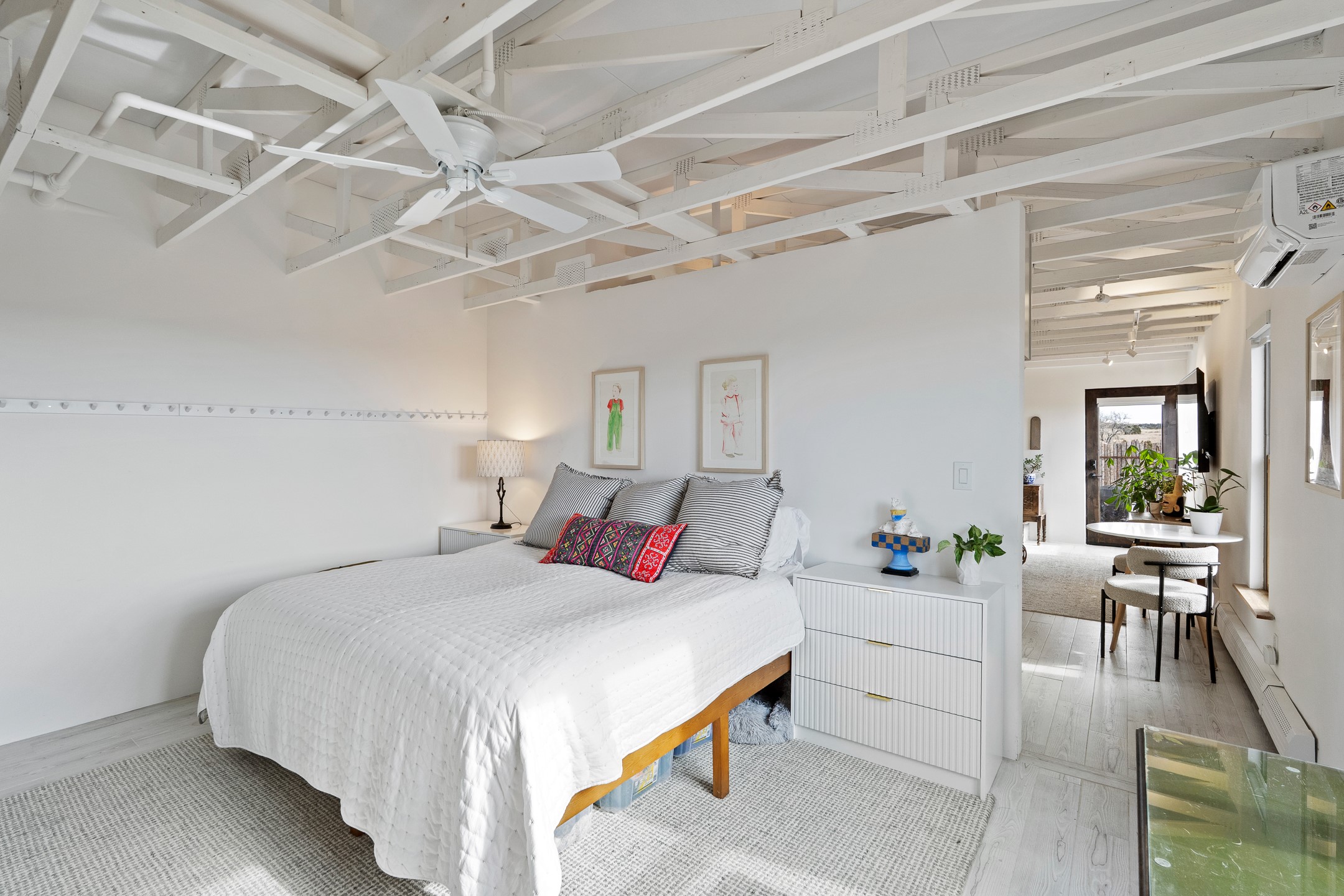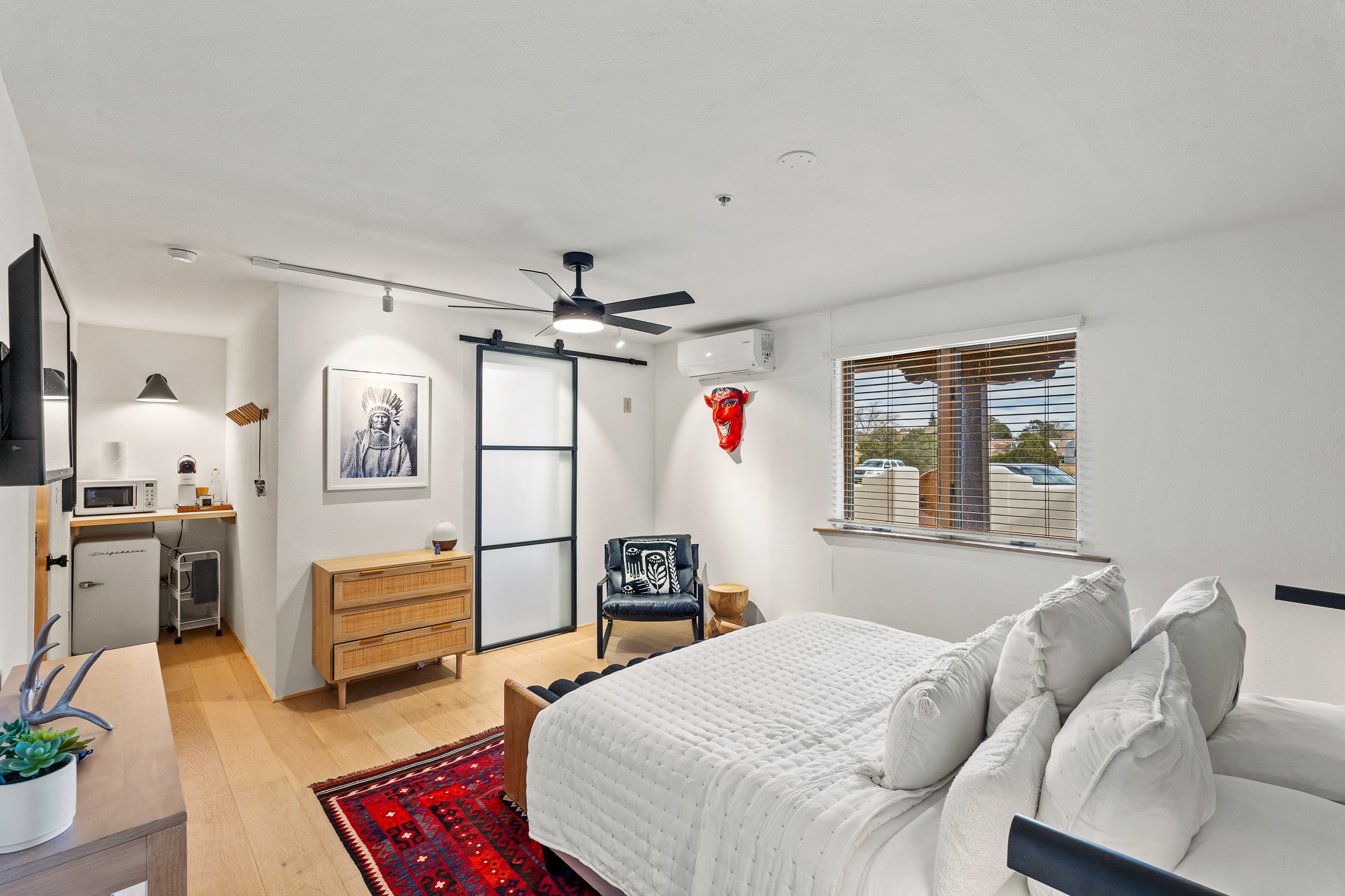 Turnkey Arts + Residential Investment Opportunity in Eldorado. Offered at $1,750,000 with a current 5.5% CAP rate and projected 7.7% CAP rate for 2026, this extensively renovated 4,815 SF mixed-use property sits on 2.09 acres with direct access and high visibility along U.S. Highway 285, a major corridor carrying an estimated 30,000-55,000 vehicles daily. The building is currently home to the Jen Tough Gallery and includes five contemporary short-term rental apartments and four private art studios, all designed for visiting artists seeking one-week to one-month residencies.This turnkey creative campus has generated approximately $8,000 per month in actual income, with nearly 80% of 2026 already booked and a projected 2026 income of approximately $14,000 per month. The property offers multiple revenue streams through short-term lodging, studio rentals, and gallery events.The 2.09-acre site provides exceptional parking, signage exposure, and future expansion potential for additional studios, casitas, or outdoor sculpture gardens. Seller financing is available to a qualified buyer, adding flexibility and attractive entry into Santa Fe's thriving arts, hospitality, short-term rental market, boutique hotel, and potential restaurant space.