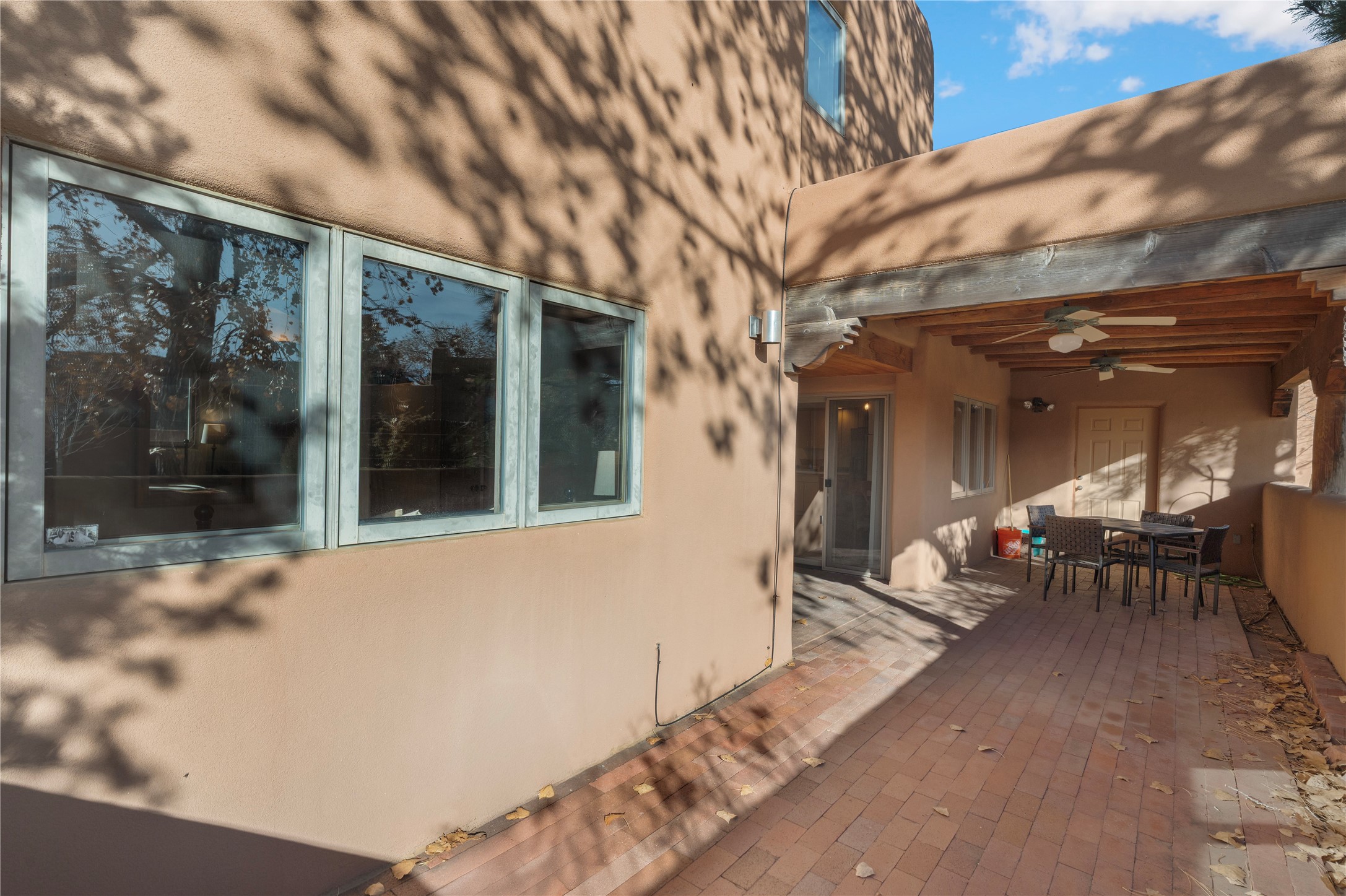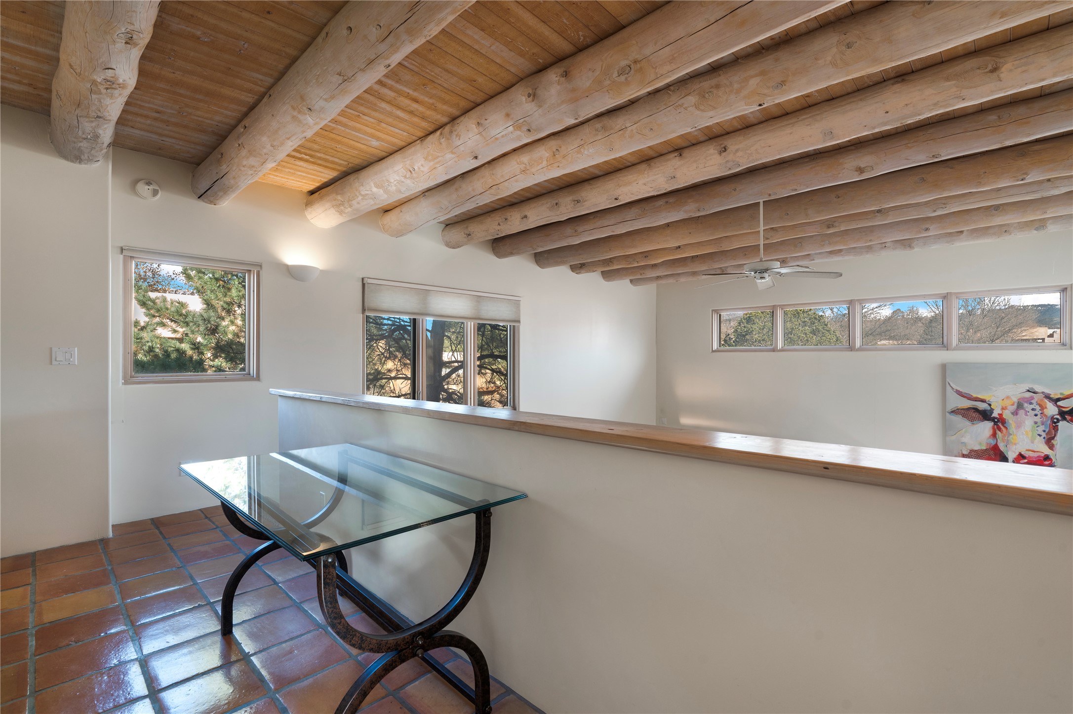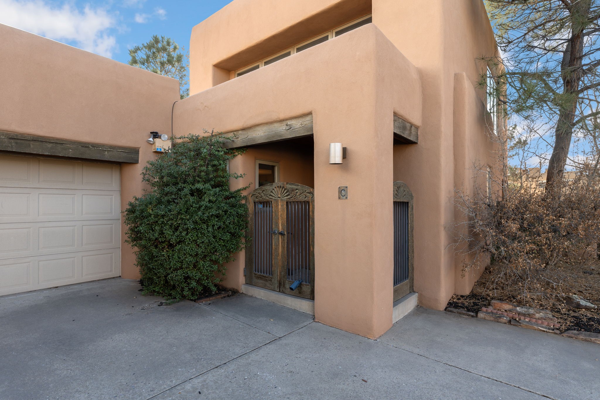 Experience an enchantingSouthwestern retreat in one of Santa Fe's most exclusive neighborhoods.This stunning 3 bed, 3 bath home has soaring ceilings with exposed vigas and exquisite Saltillo tile floors, set within an open, light-filled space enhanced by expansive windows.The inviting living area centers around a kiva fireplace and flows into a chic dining area and state-of-the-art kitchen outfitted with stainless steel appliances. Perfect for rental opportunities with all furniture, household items, artwork, and dcor ensures a truly turnkey move-in experience. Adding to its appeal are a private gated entrance, lush mature landscaping, 2 car garage, all ideally located just minutes from shopping, dining, and downtown Santa Fe.