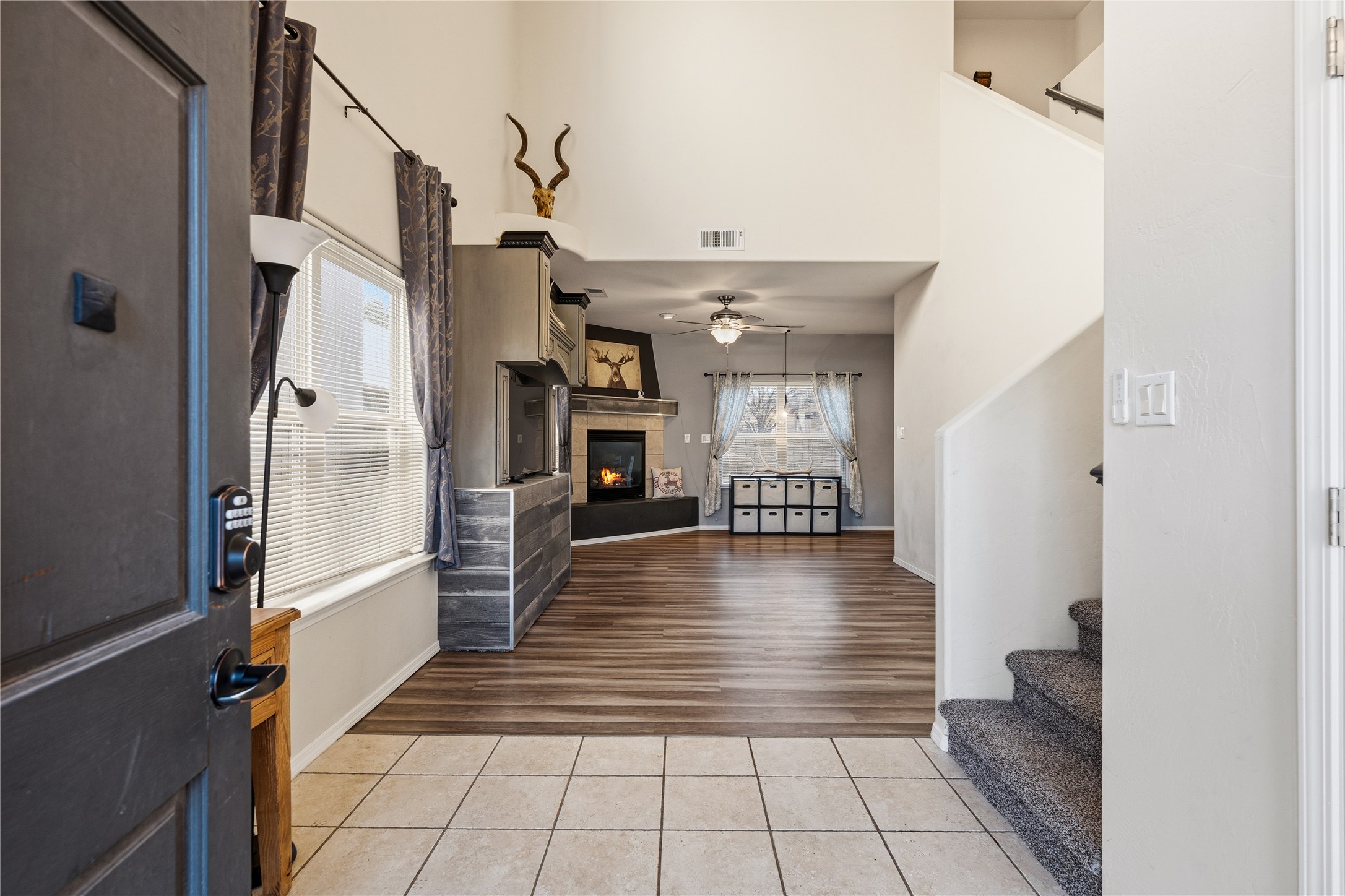 Light-filled home with soaring high ceilings, a bright kitchen with a convenient half bath off the kitchen and dining area, and an open layout made for easy living. Enjoy a private backyard, a built-in bunkbed in one of the guest bedrooms, a balcony off the master suite, and a spacious two-car garage. Minutes from trails, shops, and schools; this home combines charm, function, and comfort in every corner. Schedule your showing today!