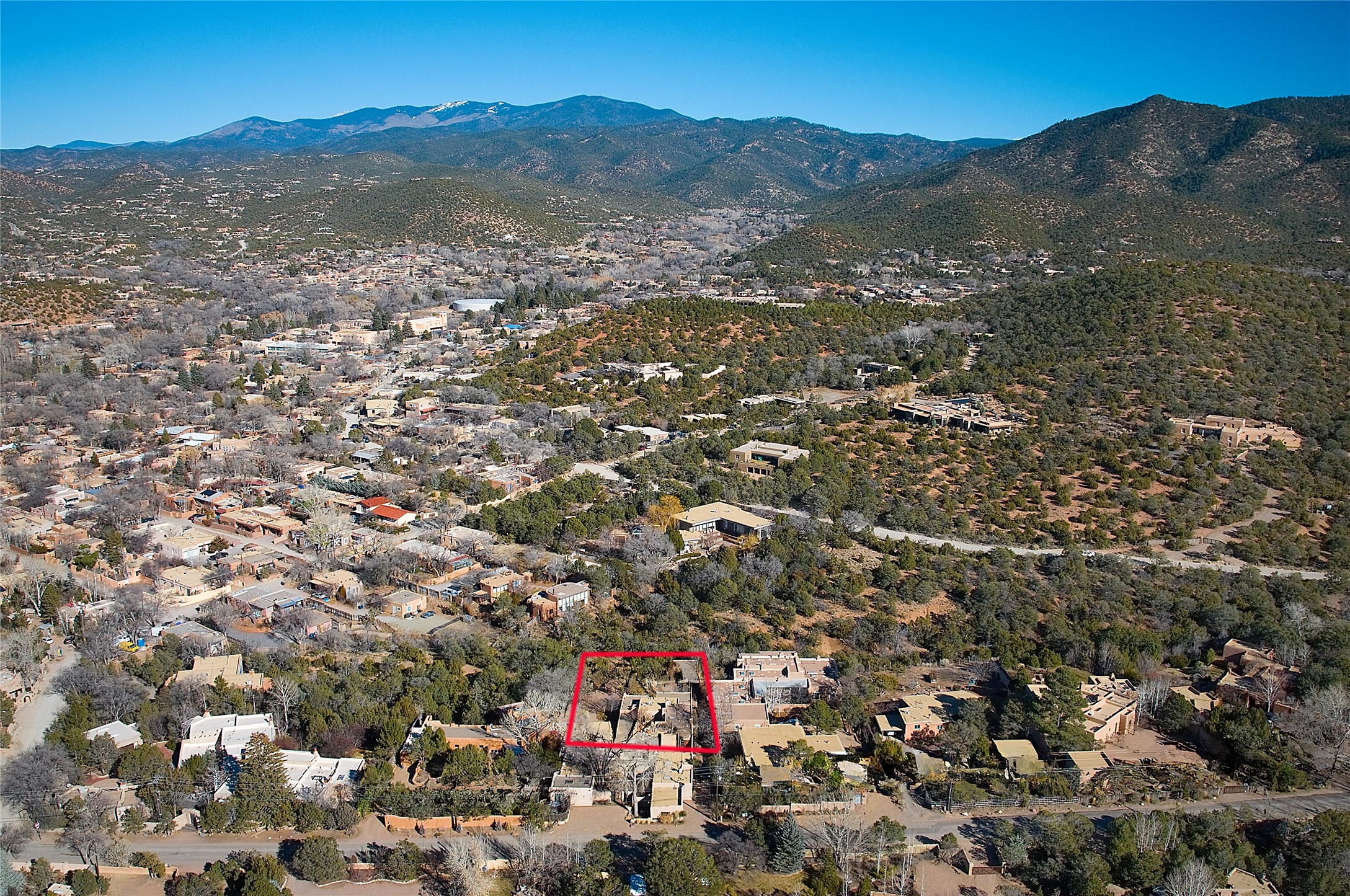 A gated driveway leads to wide pastoral views, with a open Sangre de Cristo mountain backdrop. The french doors and widow banks intake outside''s grandeur within quiet adobe walls. It's a pleasant, short stroll on "The Camino" to Canyon Road, plus all that downtown Santa Fe has to offer. Prime location with authentic Santa Fe style.