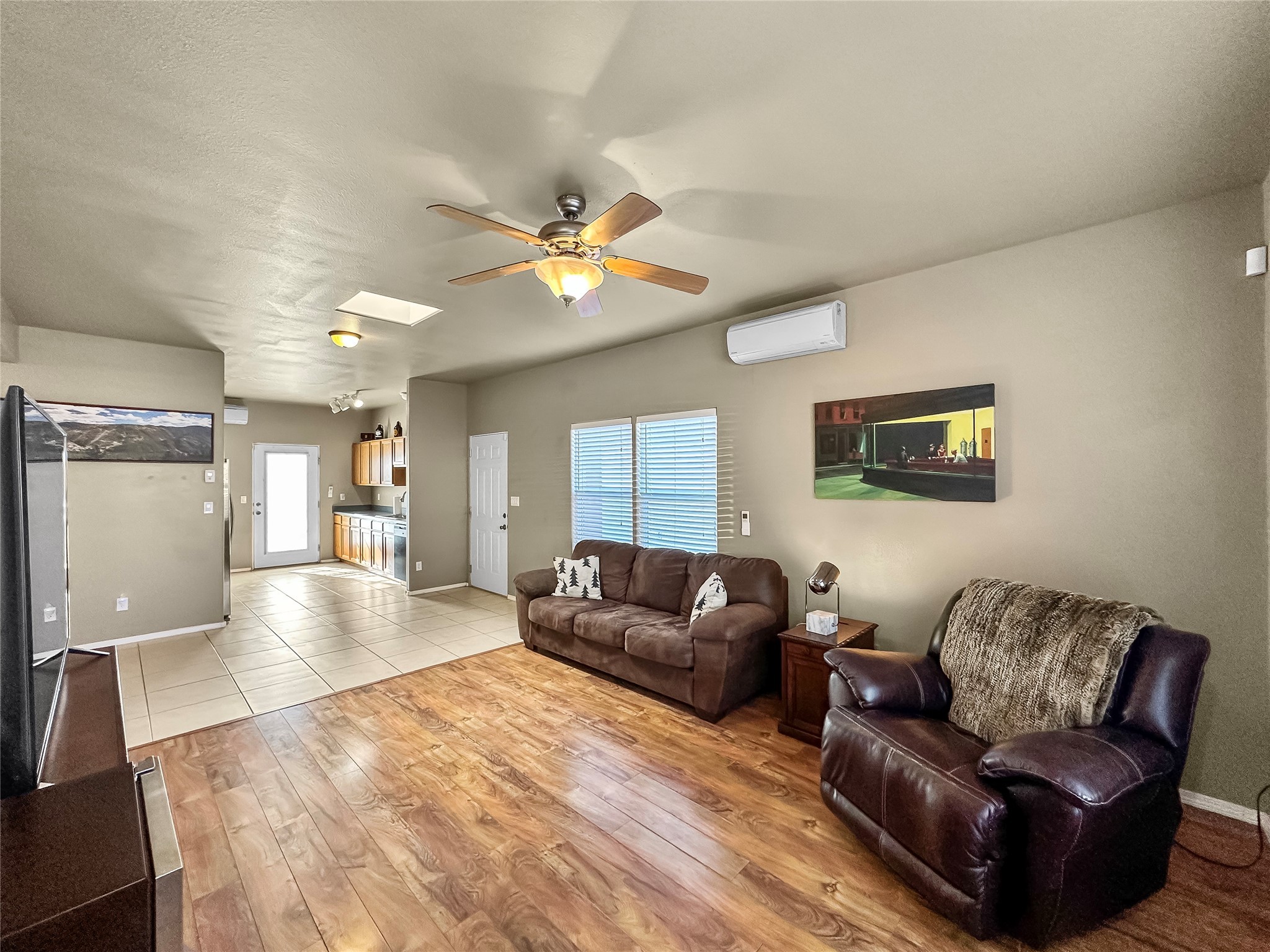 This 3-bedroom, 2-bath home is comfortable, fantastically maintained, and easy to settle into. The primary suite is the the only upstairs space, adding extra privacy for the new owners and features a beautifully upgraded shower. Mini-split systems have been added for efficient heating and cooling, and the 1-car garage is perfect for extra storage or parking. Out back, you'll find a fenced patio with large planters to relax in privacy. Natural and open landscaping in the community provides a serene outdoor atmosphere to explore and enjoy. This home is part of the Santa Fe Homes Program and has Santa Fe County assistance that is transferable to a qualified buyer. Buyer must be income qualified through Homewise, Inc. or The Housing Trust.