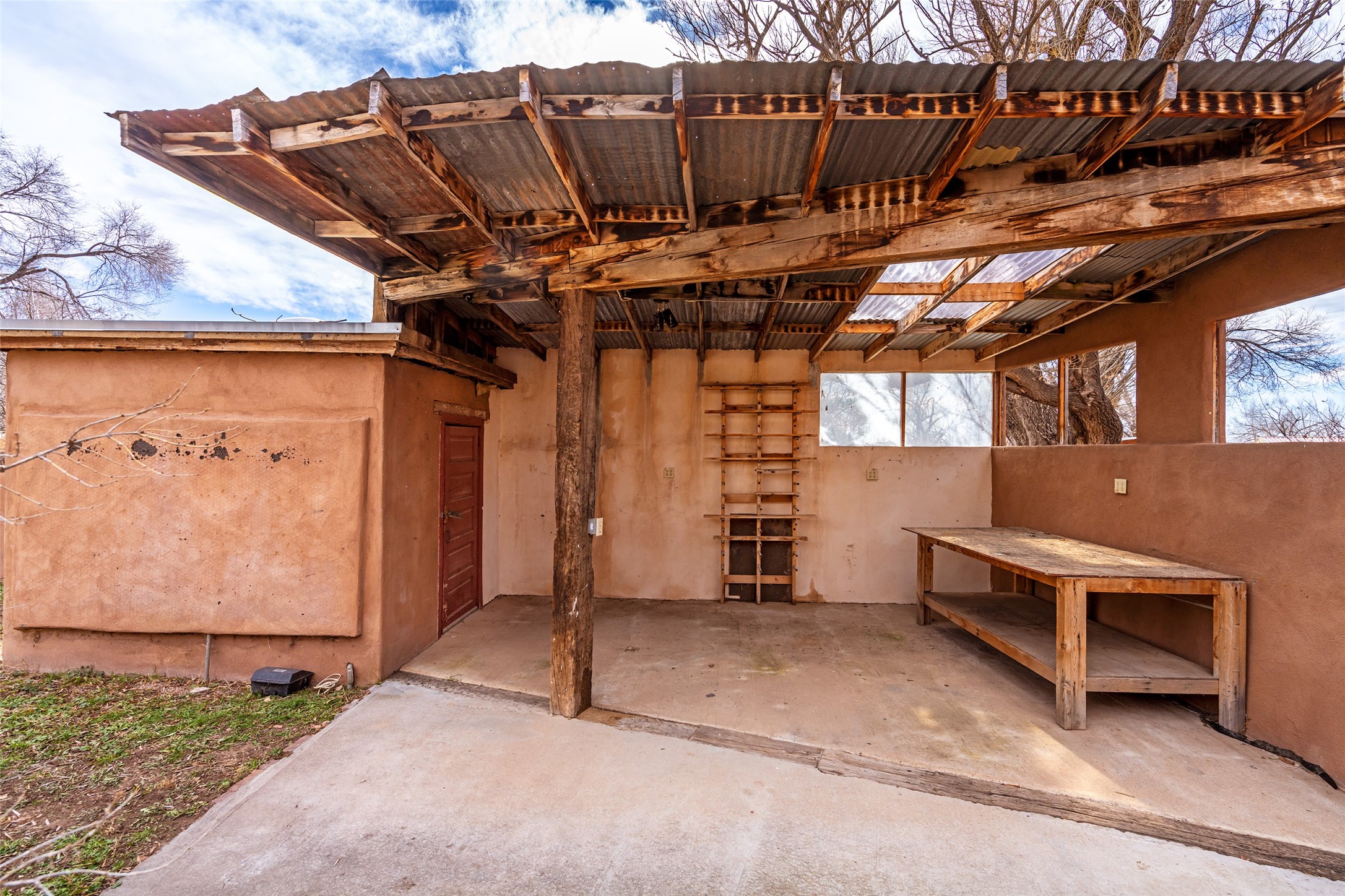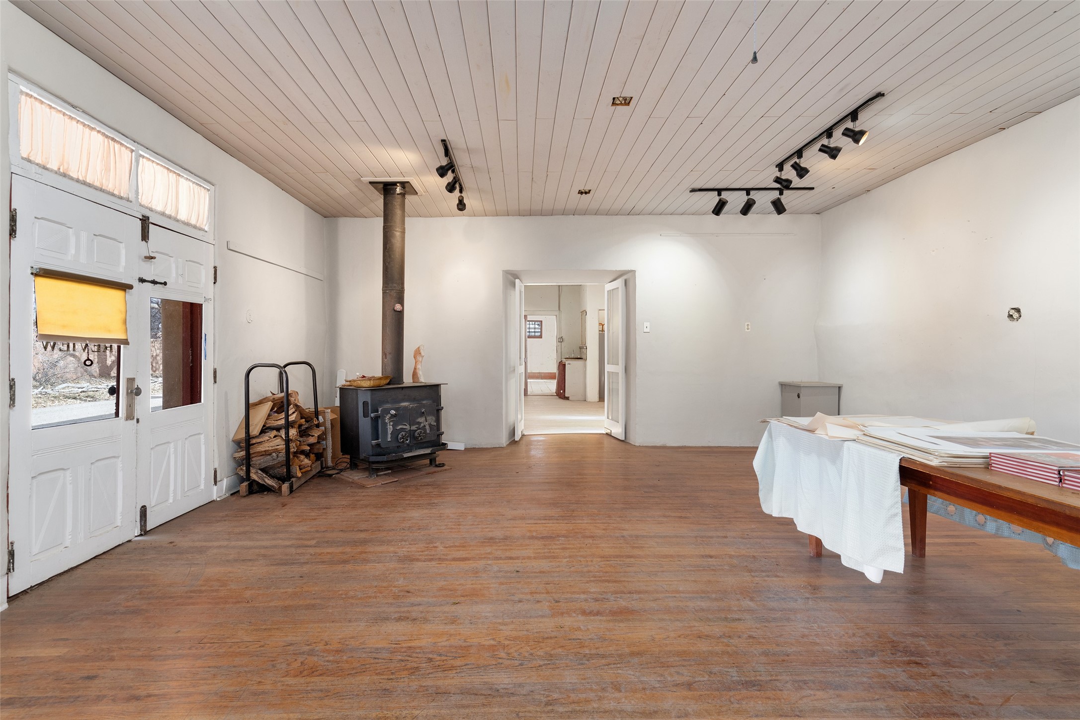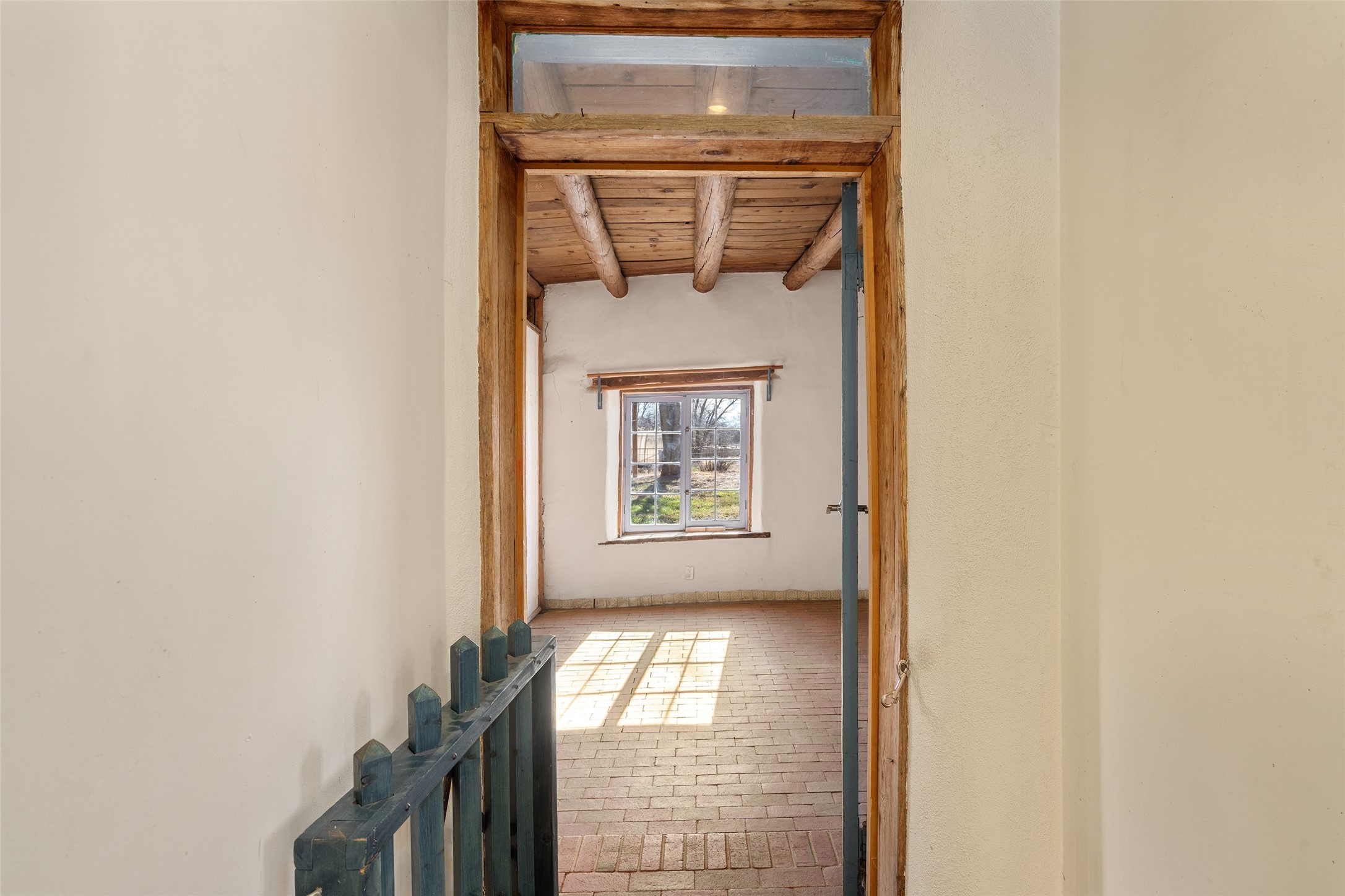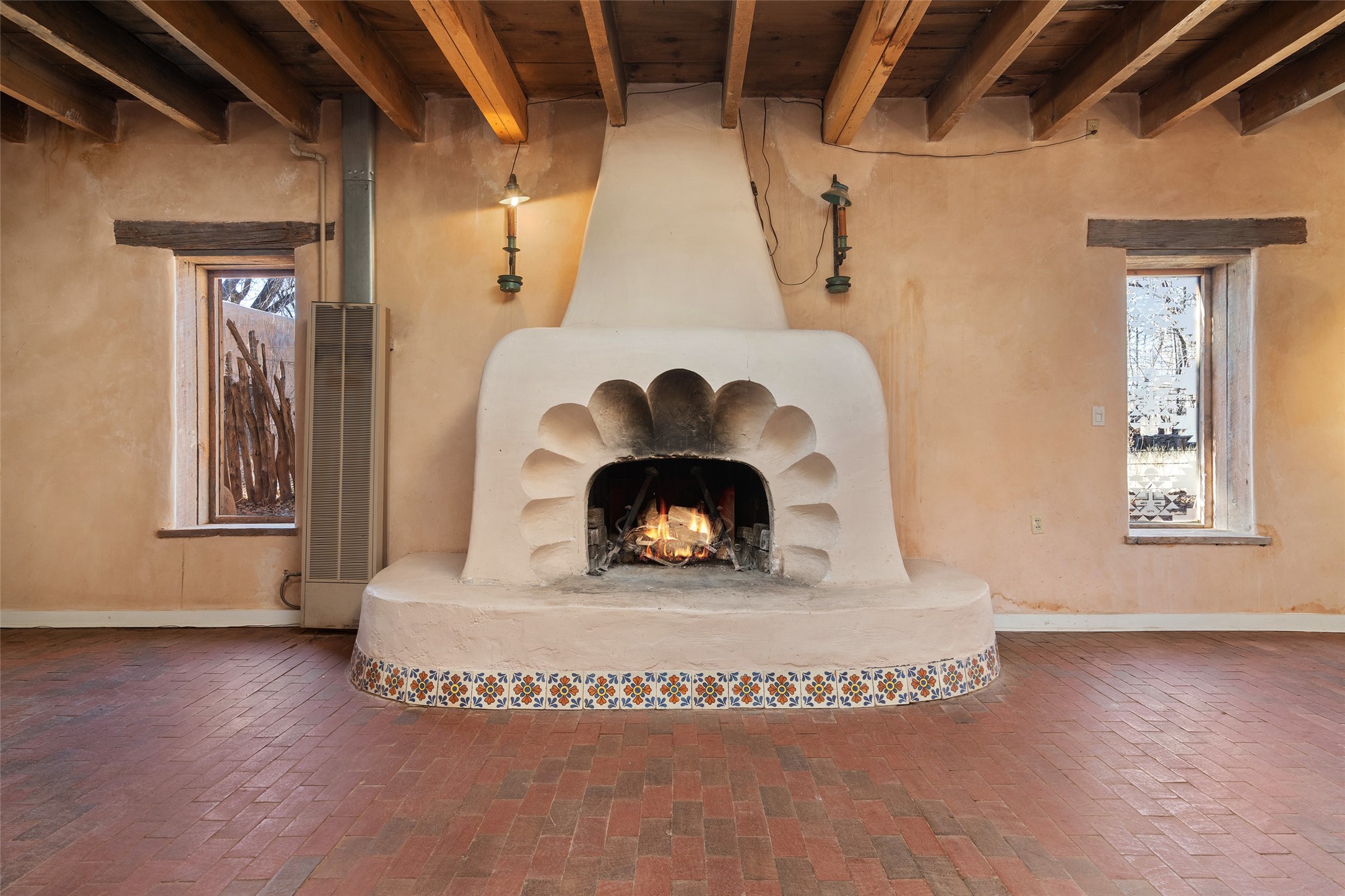 This historic Hacienda embodies the essence of old-world New Mexico charm and the deep, layered history of Galisteo, with the spirit of this venerable adobe reflecting the lore, legend, and mystery of the Galisteo Basin. Dating back to the 1800s, the property served as the headquarters of Don Jos Ortiz y Pino's sheep empire--a gathering place and general store--and later, beginning in the late 1970s, as the iconic Quartermill Farm - home, studio, and gallery of acclaimed potter and visual artist Priscilla Hoback, offering decades of creative nourishment to the local arts community.Nestled in the heart of Galisteo Village, still celebrated for its vibrant artistic culture, the long portal of the former gallery lines a central village road, while behind it sits the substantial adobe main house, rich with both intimate and grand spaces that speak to another era.The hacienda is composed of two wings--one with a single bedroom and bath, the other with three bedrooms and two baths--along with a large library, grand living room, formal dining room, several distinctive fireplaces, and an abundance of authentic architectural details. The generous inner courtyard is a place of quiet beauty with an ancient willow shading the koi pond. Together with the central kitchen and spacious living room, the layout suggests a home once designed for gatherings, celebrations, and meaningful connection. The grounds feature mature trees, fruit trees, flower gardens, and multiple outbuildings. This is a rare and significant property now ready for its next chapter. The home requires restoration and thoughtful renovation, offering a discerning buyer the opportunity to reimagine and revive an important piece of Galisteo history. For those with vision and appreciation for heritage, the potential is extraordinary--an invitation to become the next steward of this remarkable estate and to make your own mark on Galisteo's enduring story.