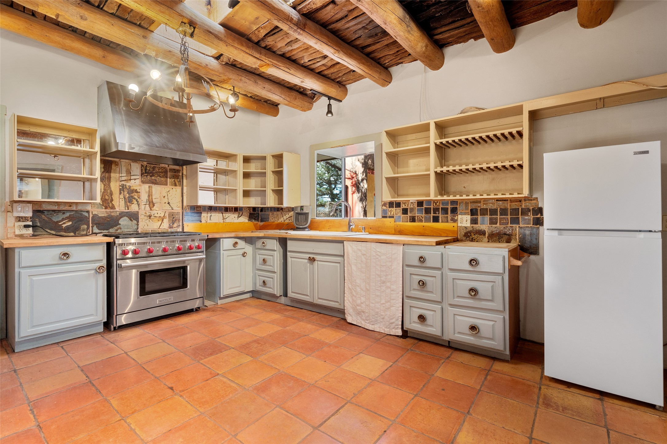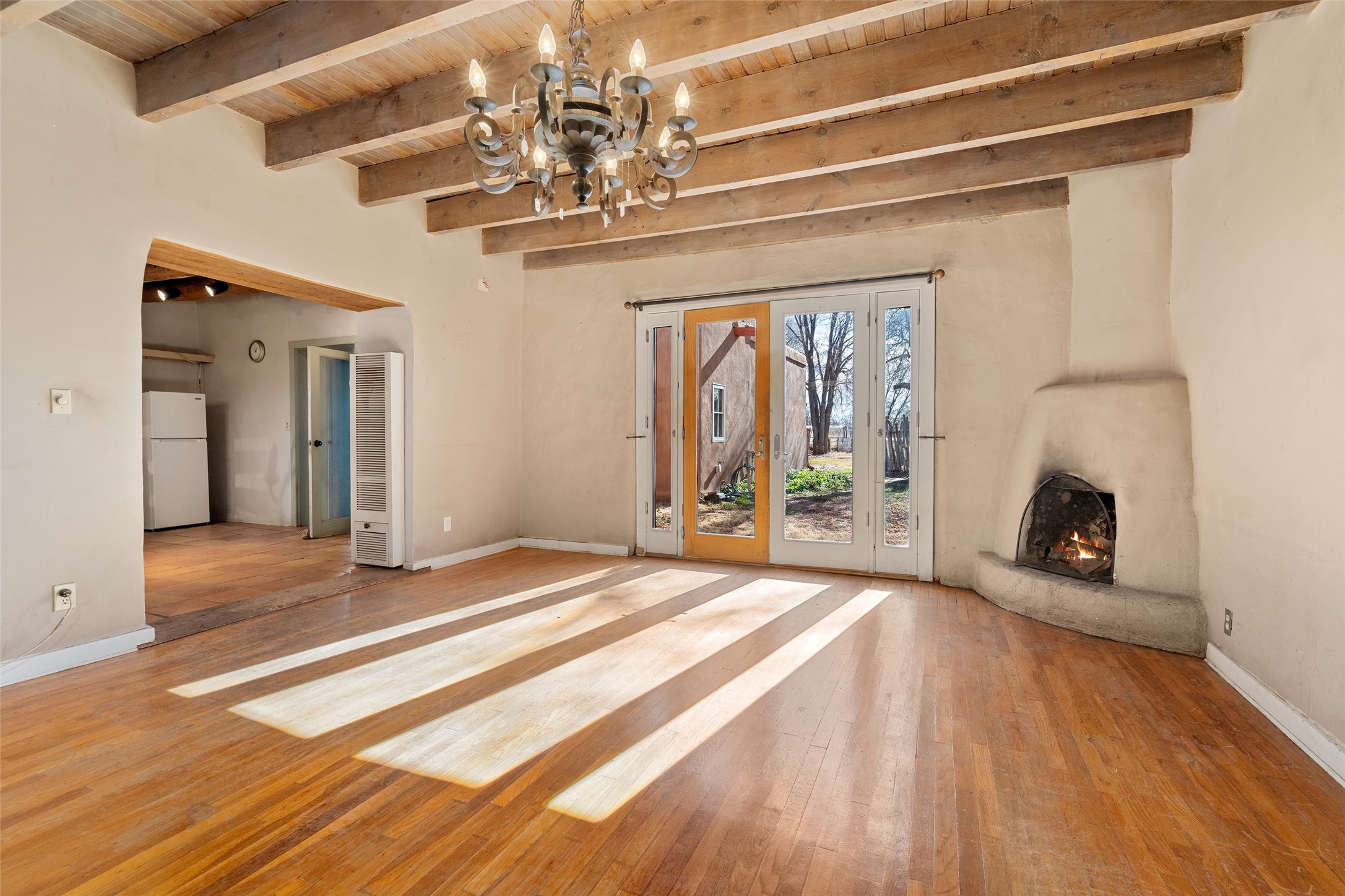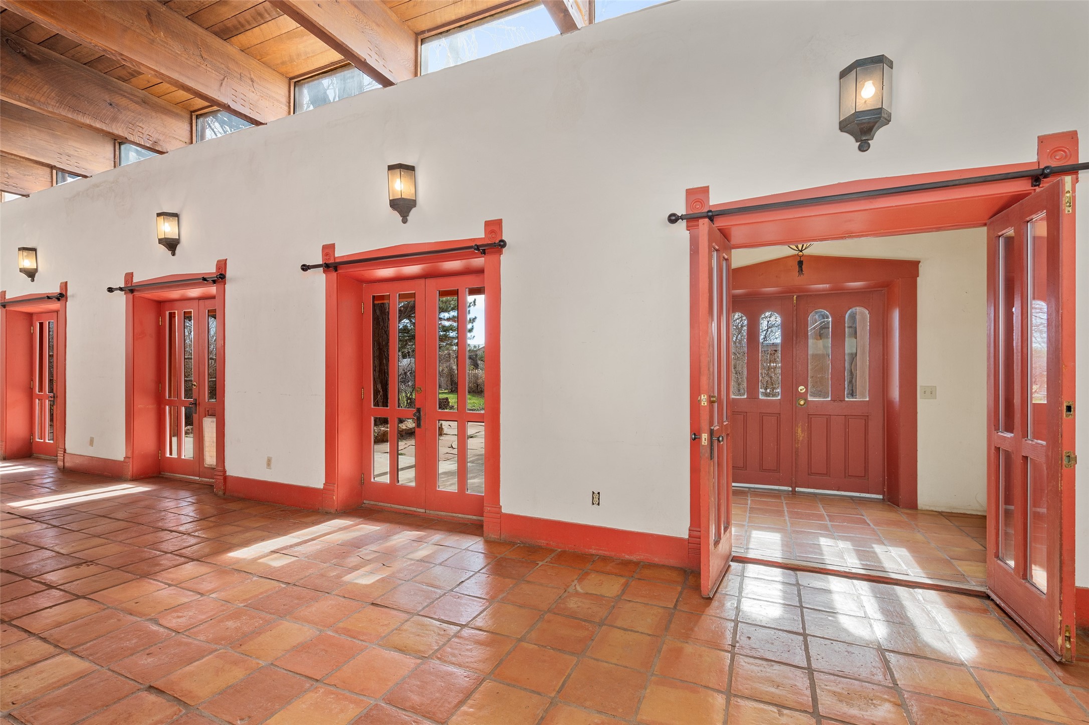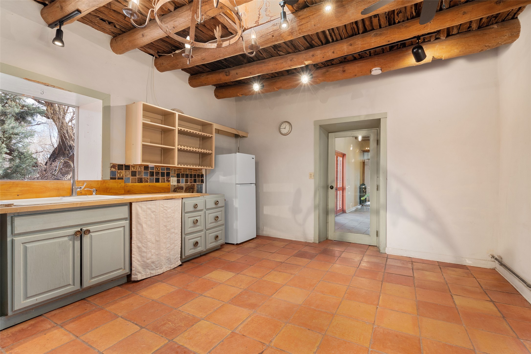 This historic Hacienda embodies the essence of old-world New Mexico charm and the deep, layered history of Galisteo, with the spirit of this venerable adobe reflecting the lore, legend, and mystery of the Galisteo Basin. Dating back to the 1800s, the property served as the headquarters of Don Jos Ortiz y Pino's sheep empire--a gathering place and general store--and later, beginning in the late 1970s, as the iconic Quartermill Farm - home, studio, and gallery of acclaimed potter and visual artist Priscilla Hoback, offering decades of creative nourishment to the local arts community.Nestled in the heart of Galisteo Village, still celebrated for its vibrant artistic culture, the long portal of the former gallery lines a central village road, while behind it sits the substantial adobe main house, rich with both intimate and grand spaces that speak to another era.The hacienda is composed of two wings--one with a single bedroom and bath, the other with three bedrooms and two baths--along with a large library, grand living room, formal dining room, several distinctive fireplaces, and an abundance of authentic architectural details. The generous inner courtyard is a place of quiet beauty with an ancient willow shading the koi pond. Together with the central kitchen and spacious living room, the layout suggests a home once designed for gatherings, celebrations, and meaningful connection. The grounds feature mature trees, fruit trees, flower gardens, and multiple outbuildings. This is a rare and significant property now ready for its next chapter. The home requires restoration and thoughtful renovation, offering a discerning buyer the opportunity to reimagine and revive an important piece of Galisteo history. For those with vision and appreciation for heritage, the potential is extraordinary--an invitation to become the next steward of this remarkable estate and to make your own mark on Galisteo's enduring story.