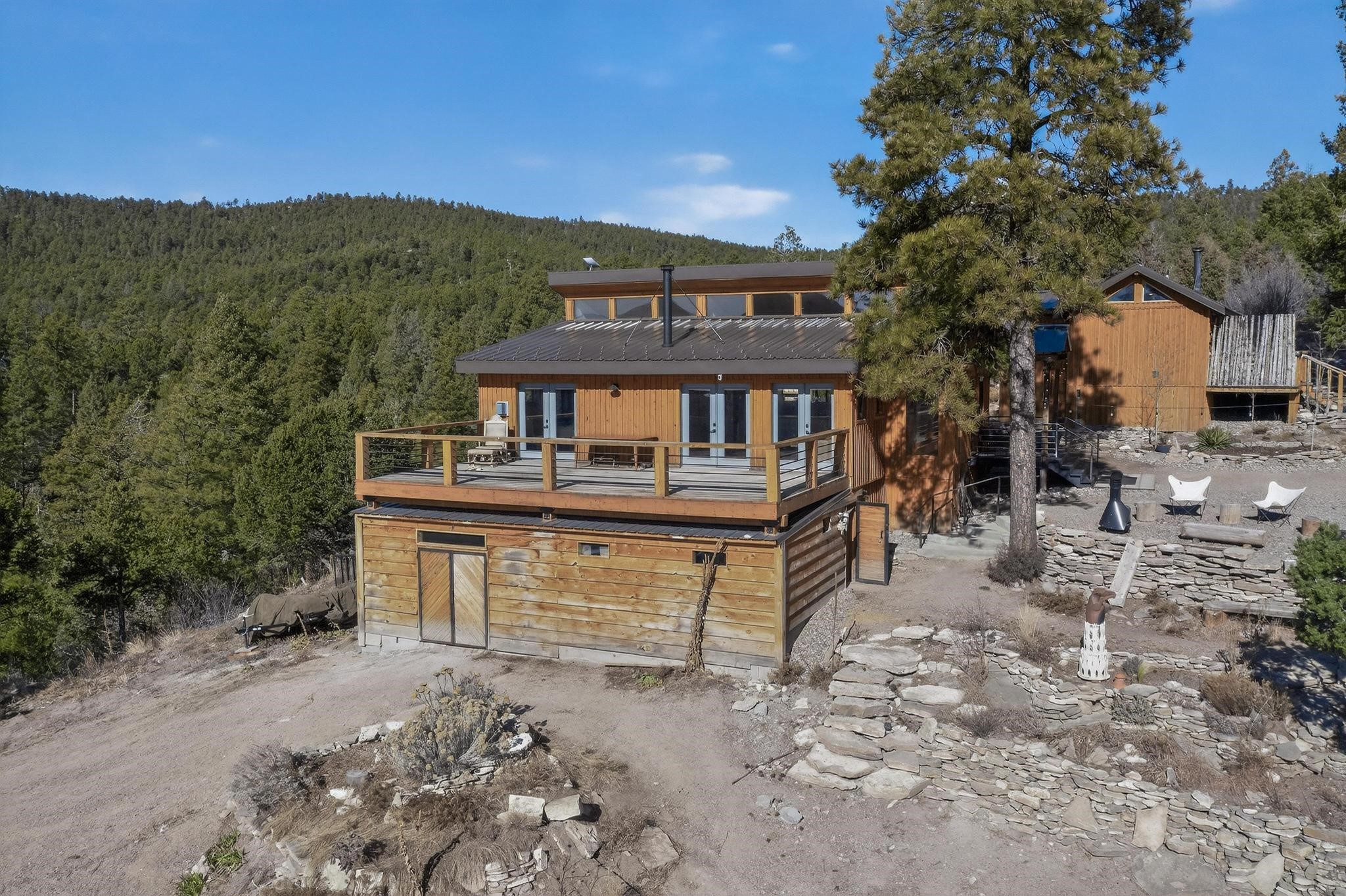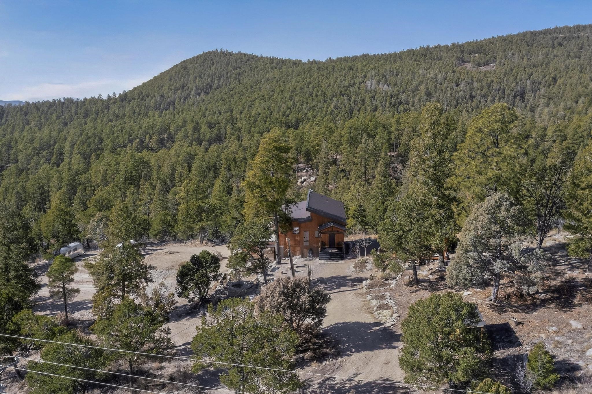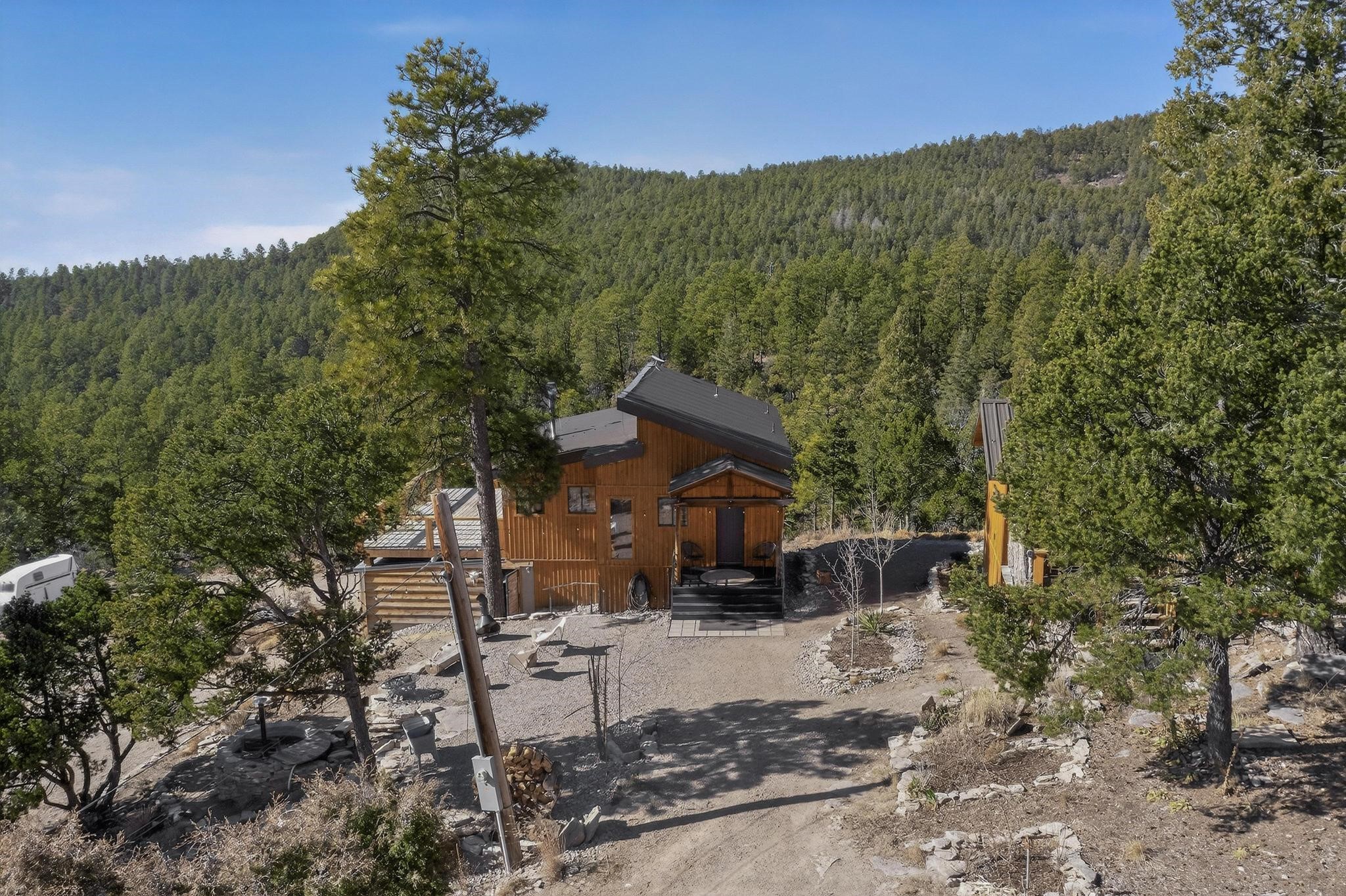 Welcome to a truly exceptional Rare Cow Creek listing-- fully renovated and designed as the ultimate mountain basecamp for outdoor enthusiasts, investors, or those seeking a peaceful full-time escape. Set on 5 private acres and surrounded by vast National Forest lands, this one-of-a-kind property offers unmatched access to adventure, expansive Western views, and unforgettable night skies with the Milky Way visible most evenings. The property includes a beautifully renovated main home, guest house, shop, dedicated artist studio, complete with a charming wood-fired hot tub and a vintage 1967 Airstream. Every structure has been thoughtfully upgraded with high-end appliances, custom fixtures and refined finishes that blend comfort with mountain living. Located just east of Pecos, NM and only 40 minutes from Santa Fe, this property sits in the heart of one of Northern New Mexico's most beloved outdoor recreation areas. Cow Creek is just 2 miles away, the Pecos River is 3 miles from the property, and easy National Forest access walking distance from your land. Enjoy world-class fly fishing, endless hiking and horseback riding, highly sought-after hunting territory, and renowned mountain biking at Glorieta Mountain Bike Park-- all minutes from your door. Pecos Village and Pecos National Historic Park are nearby for dining, culture, and community. The guest house has already proven strong rental appeal, earning 50 five-star Airbnb reviews with excellent part-time income. With the additional home and Airstream, there is significant potential for expanded short-term rental or multi-family use, making this an outstanding investment. Recent comprehensive renovations include a new roof and siding, new driveway and outdoor living spaces, new decks, custom bathrooms and showers, venetian plaster and stucco interior finishes, new flooring, high-end wood and propane stoves, a new electric panel and transformer providing 200 amps of power, a new basement art studio, and a new shop. Every detail reflects craftsmanship, quality and a true sense of place. This is a one of a kind, destination property, by appointment only, no drive bys.