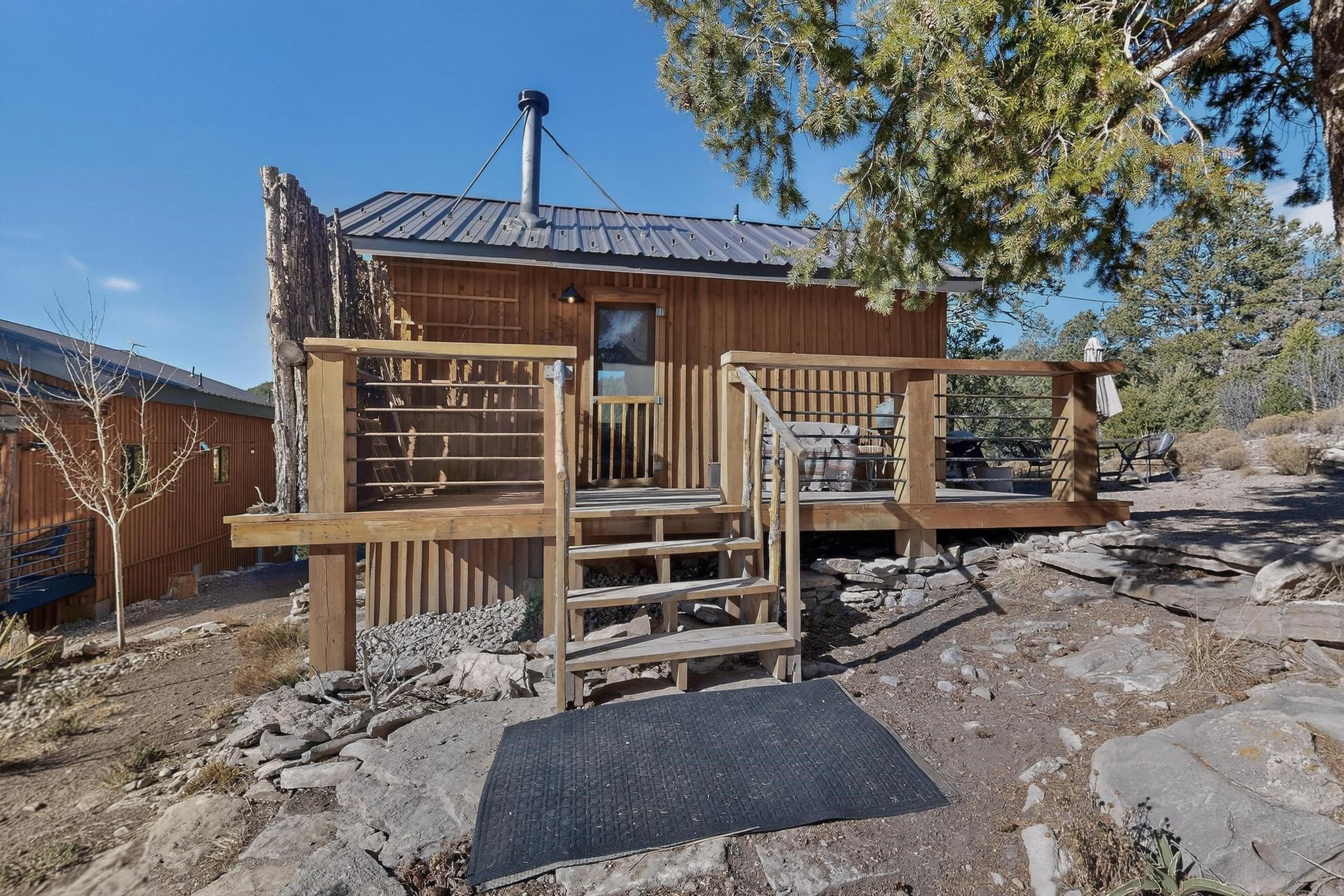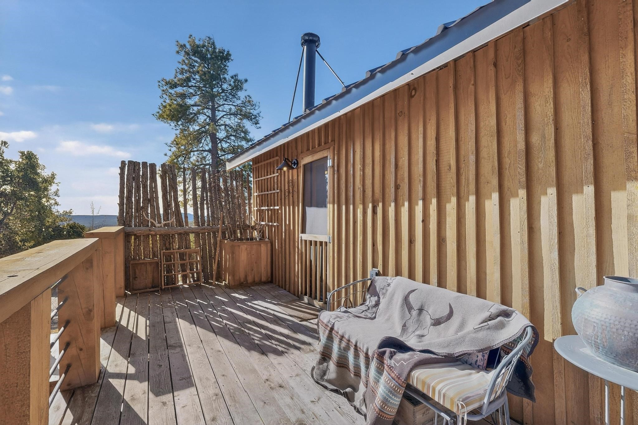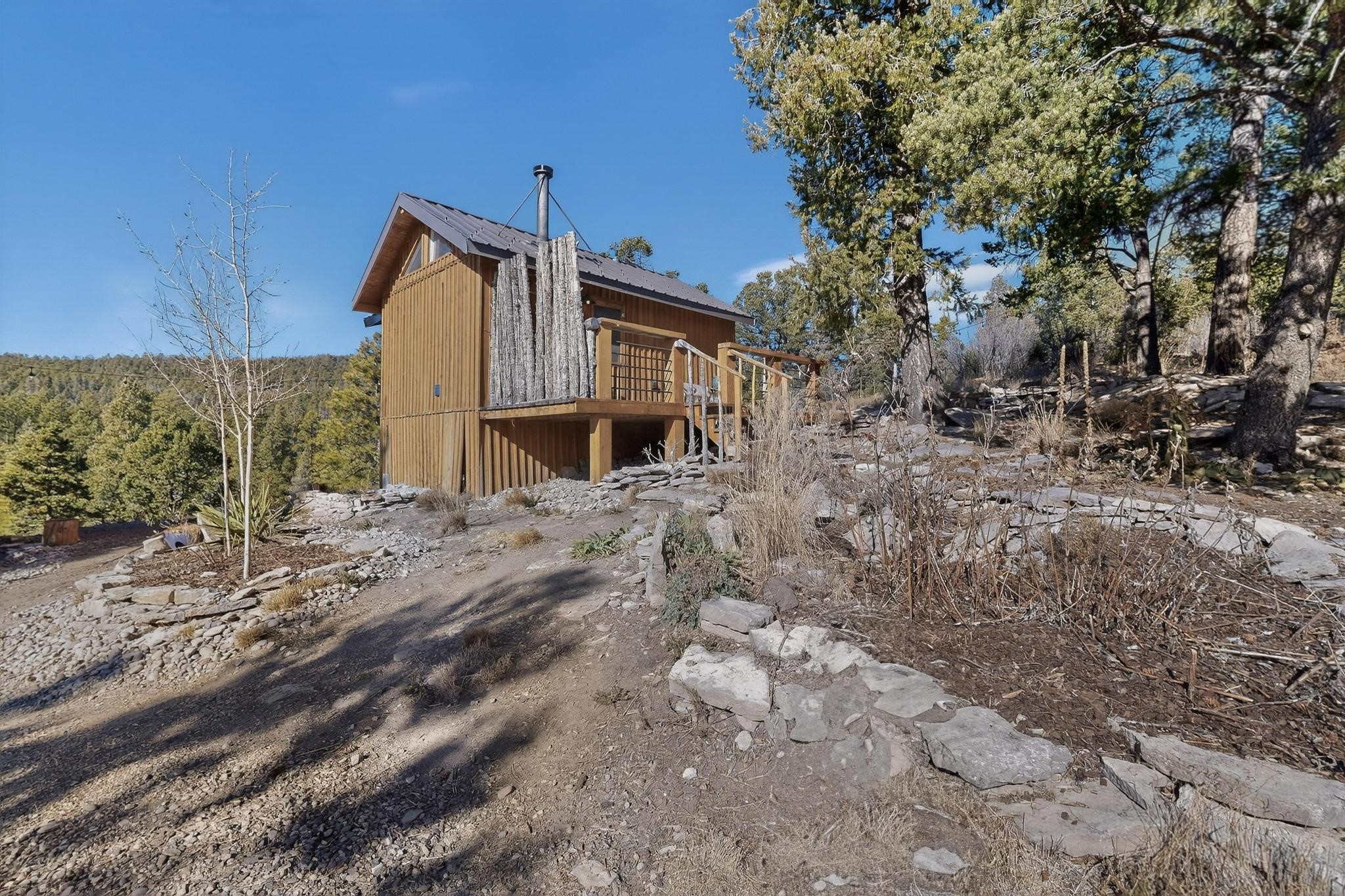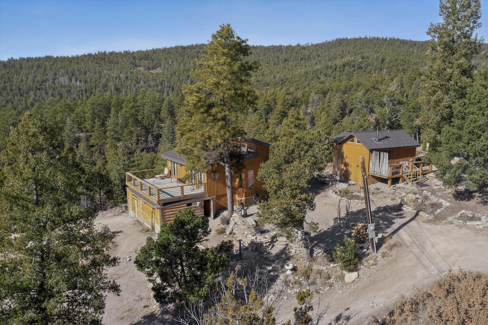 Welcome to a truly exceptional Rare Cow Creek listing-- fully renovated and designed as the ultimate mountain basecamp for outdoor enthusiasts, investors, or those seeking a peaceful full-time escape. Set on 5 private acres and surrounded by vast National Forest lands, this one-of-a-kind property offers unmatched access to adventure, expansive Western views, and unforgettable night skies with the Milky Way visible most evenings. The property includes a beautifully renovated main home, guest house, shop, dedicated artist studio, complete with a charming wood-fired hot tub and a vintage 1967 Airstream. Every structure has been thoughtfully upgraded with high-end appliances, custom fixtures and refined finishes that blend comfort with mountain living. Located just east of Pecos, NM and only 40 minutes from Santa Fe, this property sits in the heart of one of Northern New Mexico's most beloved outdoor recreation areas. Cow Creek is just 2 miles away, the Pecos River is 3 miles from the property, and easy National Forest access walking distance from your land. Enjoy world-class fly fishing, endless hiking and horseback riding, highly sought-after hunting territory, and renowned mountain biking at Glorieta Mountain Bike Park-- all minutes from your door. Pecos Village and Pecos National Historic Park are nearby for dining, culture, and community. The guest house has already proven strong rental appeal, earning 50 five-star Airbnb reviews with excellent part-time income. With the additional home and Airstream, there is significant potential for expanded short-term rental or multi-family use, making this an outstanding investment. Recent comprehensive renovations include a new roof and siding, new driveway and outdoor living spaces, new decks, custom bathrooms and showers, venetian plaster and stucco interior finishes, new flooring, high-end wood and propane stoves, a new electric panel and transformer providing 200 amps of power, a new basement art studio, and a new shop. Every detail reflects craftsmanship, quality and a true sense of place. This is a one of a kind, destination property, by appointment only, no drive bys.