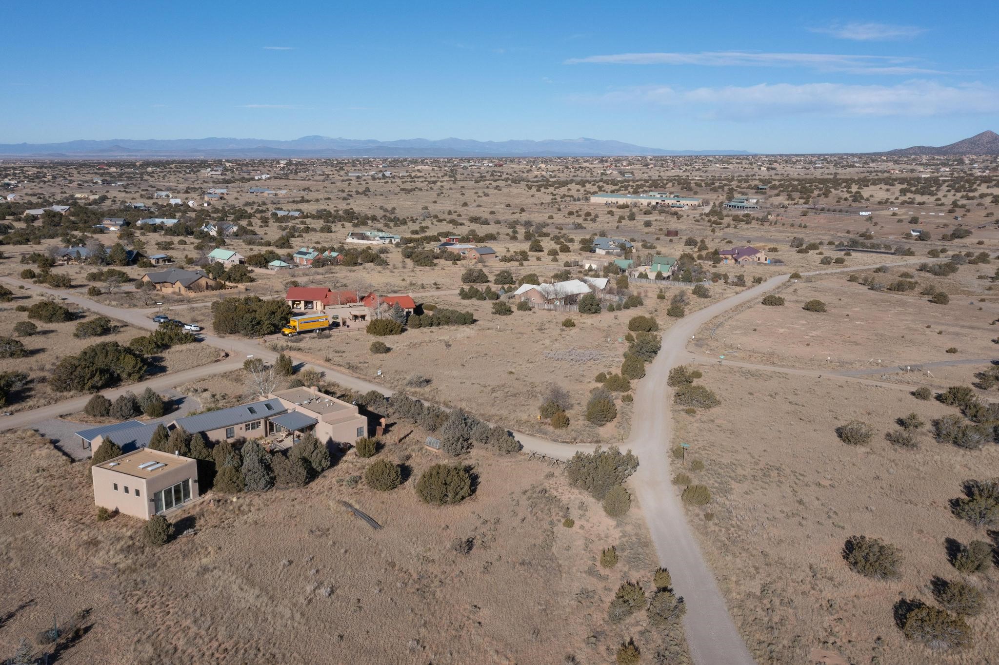Bring your vision to life on this pristine one-acre corner parcel, where build-ready convenience meets an atmosphere of tranquility. Gently contoured terrain offers an effortless foundation for new construction, supported by on-site water and electric with natural gas available in the street for easy connection. Perfectly positioned to embrace sweeping views to the east, west, and north--experience golden morning light, dramatic sunsets, and expansive northern horizons. A rare opportunity to craft a private retreat in an exceptional setting. Just a short drive from downtown Santa Fe, the Eldorado/Lamy corridor is ideally situated close to main thoroughfares with effortless access to all the amenities, culture, and conveniences of Santa Fe.