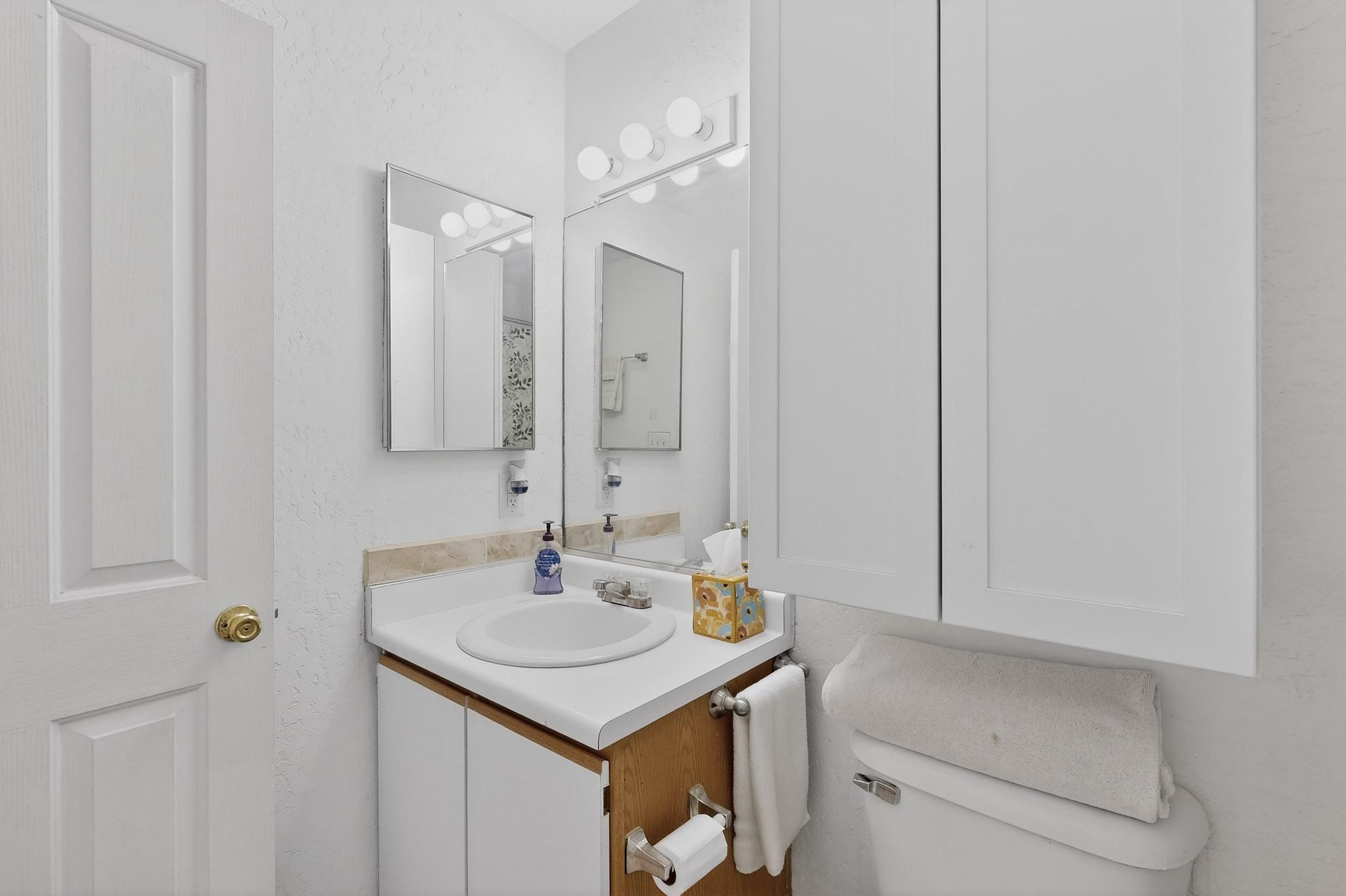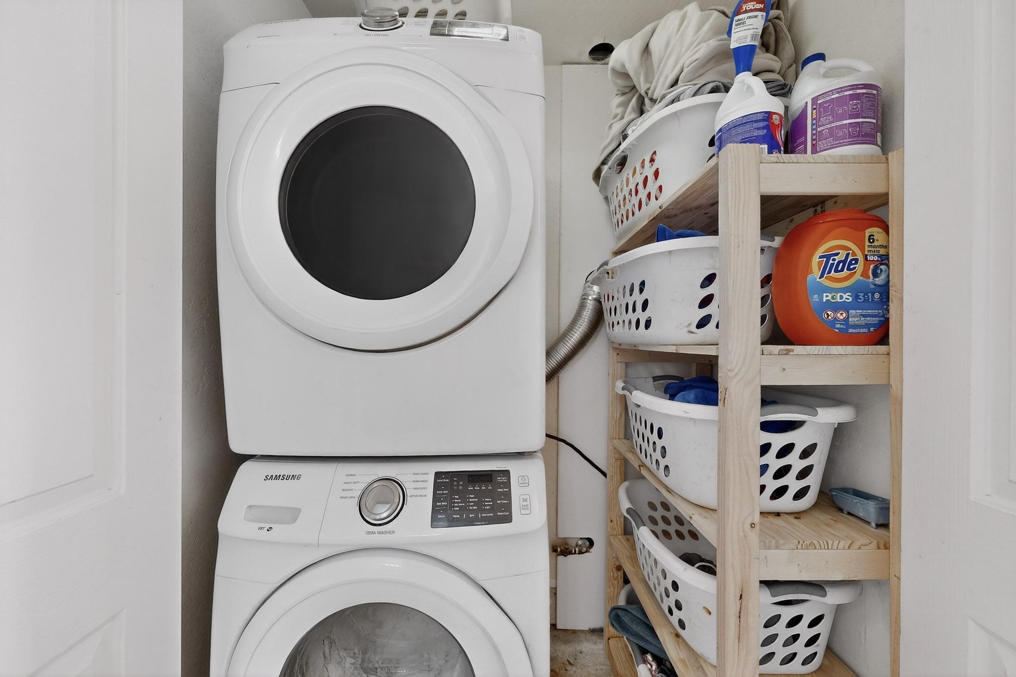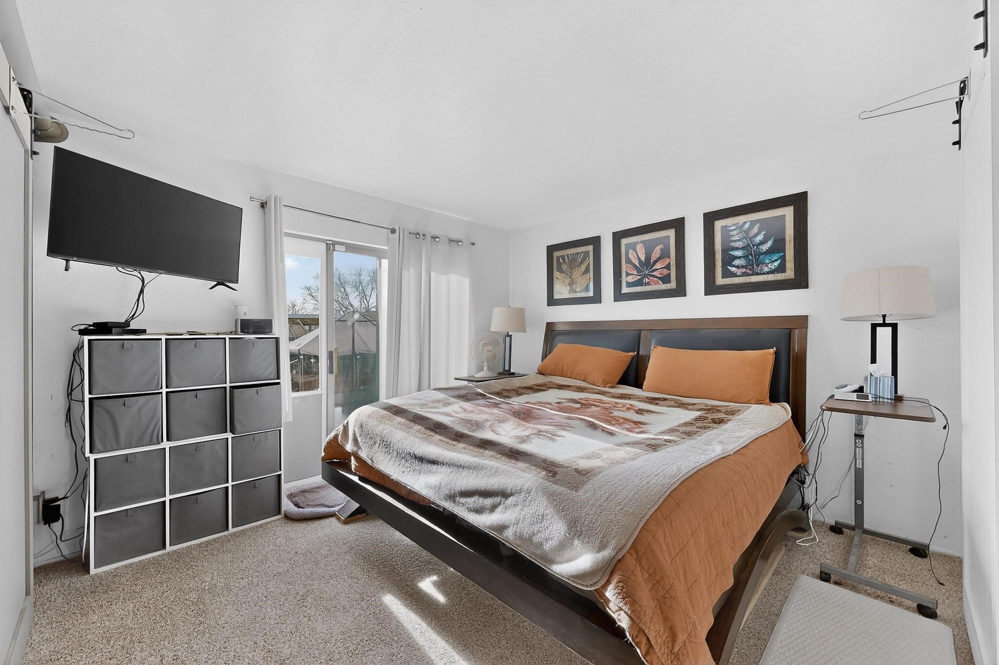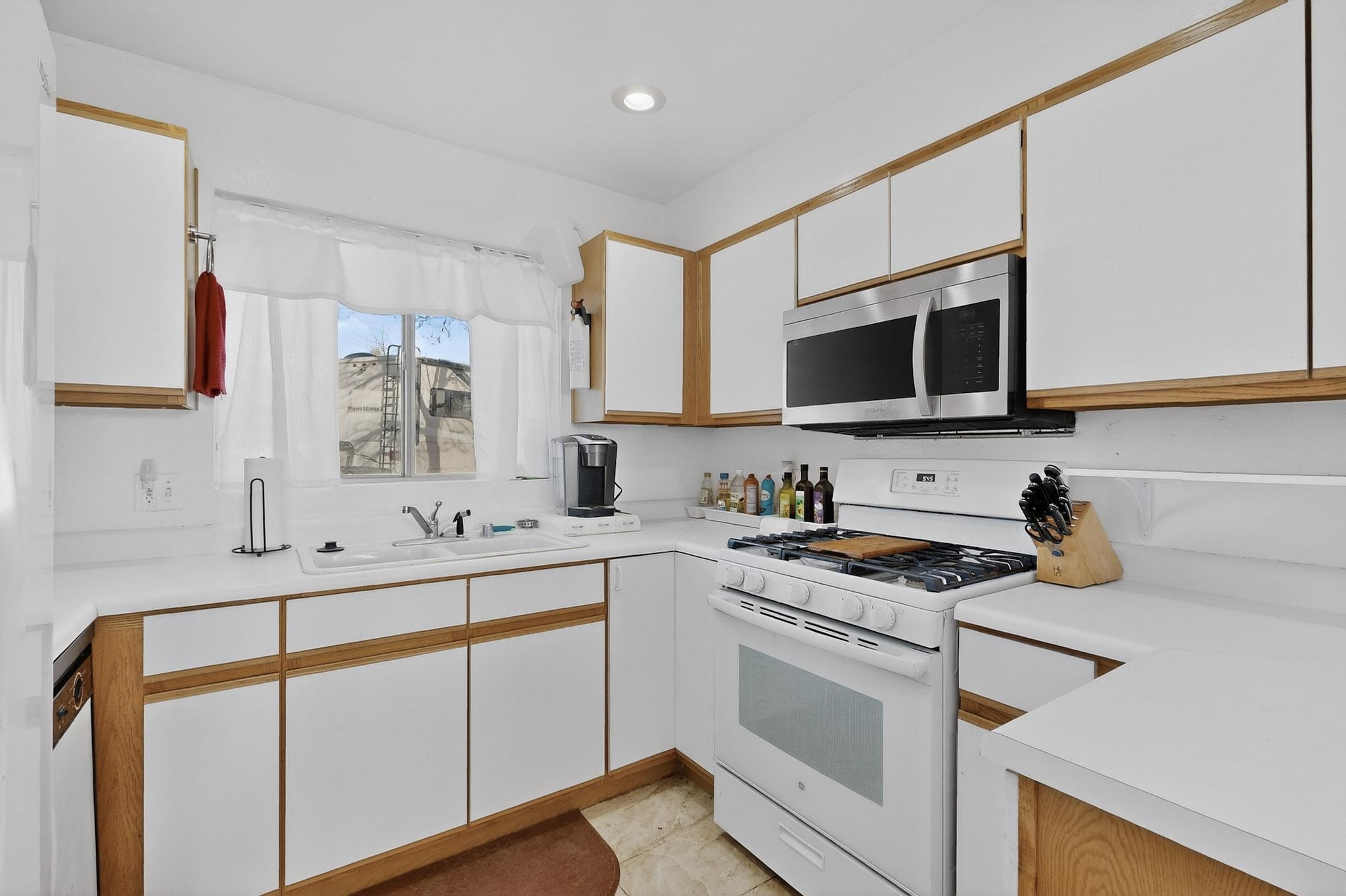 This two bedroom, two bathroom, single level home with a two car detached garage is the Perfect and Best Value in Santa Fe! The open concept living and dining area is flooded with natural light and has easy to care for flooring. The dining area offers patio access to the east yard and a custom trellis awaiting a porch swing. Quick access to a separated backyard allows for pets to enjoy their own space. Lots of great outdoor areas awaiting your ideas. The primary suite has a custom closet with a sliding barn door, private access to the backyard with a deck and a primary bathroom with a sliding barn door as well, to allow for maximum use of the space. Bedroom #2 sits at the entry of the home with a cul-de-sac view and access to the guest's full bathroom. The stackable washer and dryer save space and are tucked away from view. Lots of great perks, including the refrigerated A/C that was added and the storage shed in the backyard that will convey. The Seller is offering a $3,000 credit towards a flooring allowance and a $2,000 paint allowance with a reasonable and accepted offer.