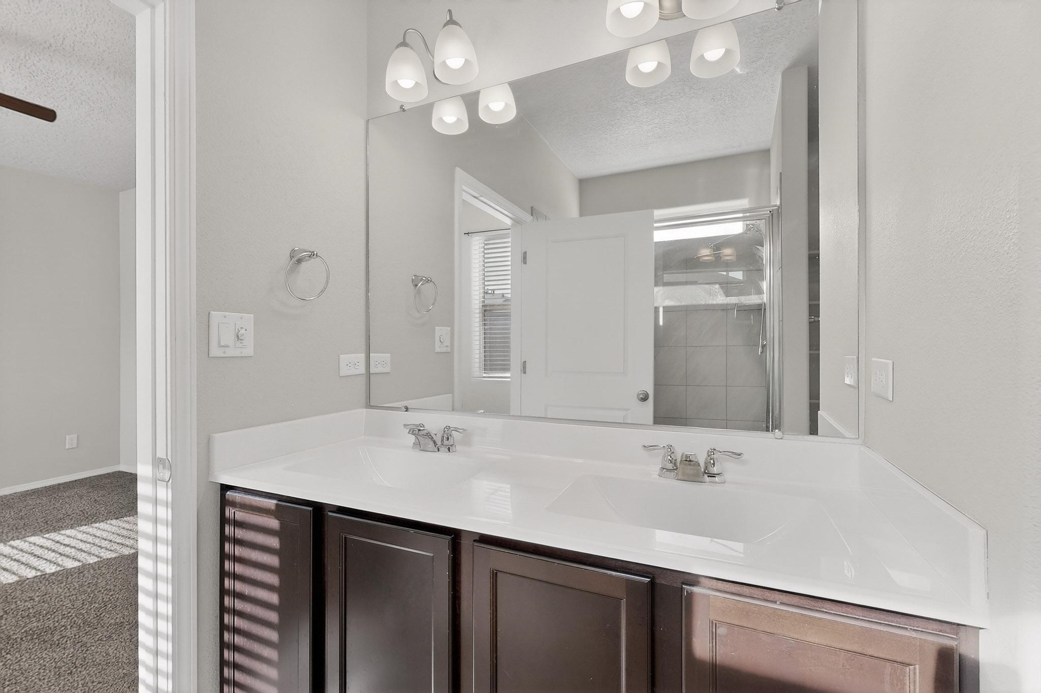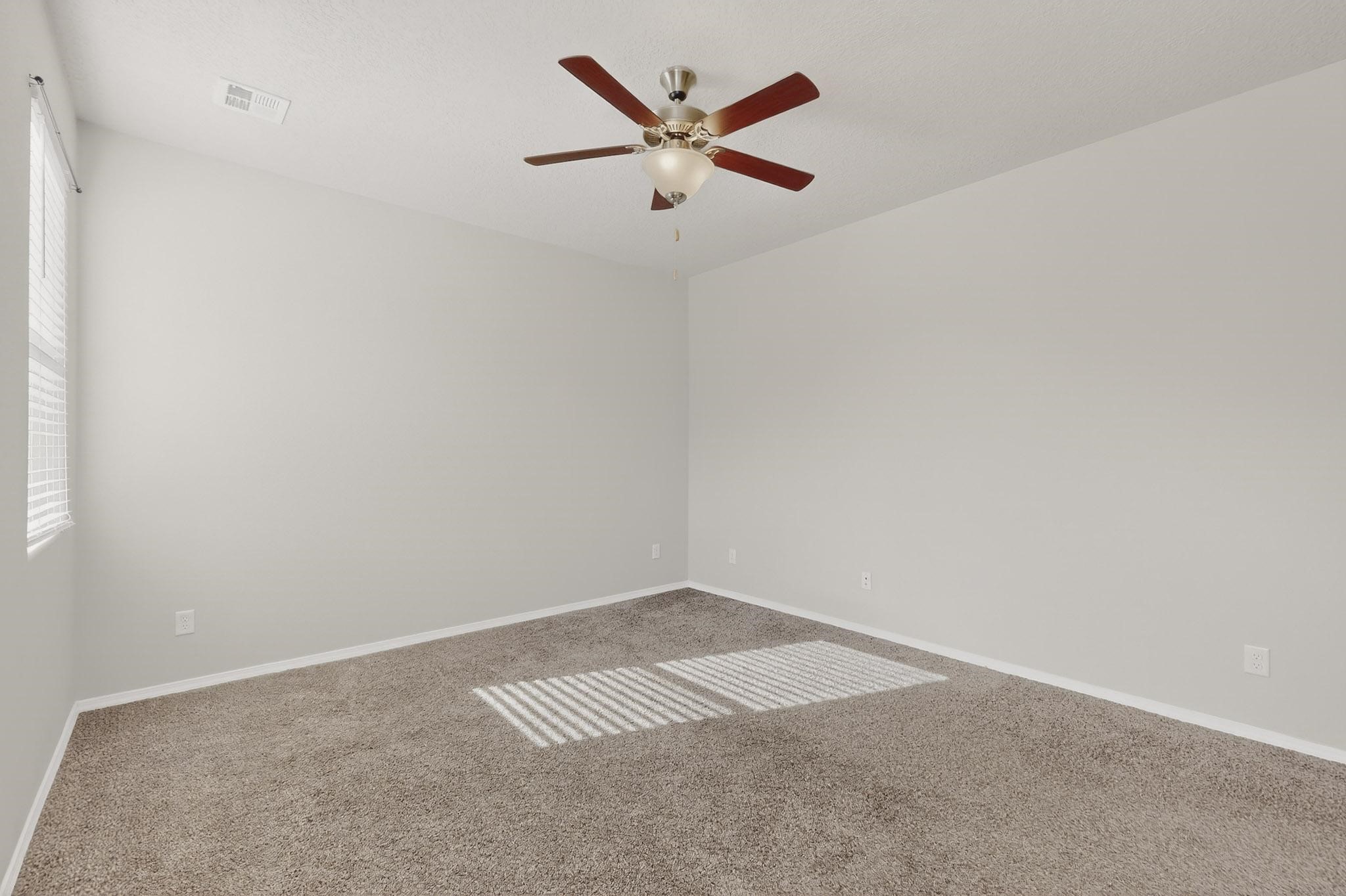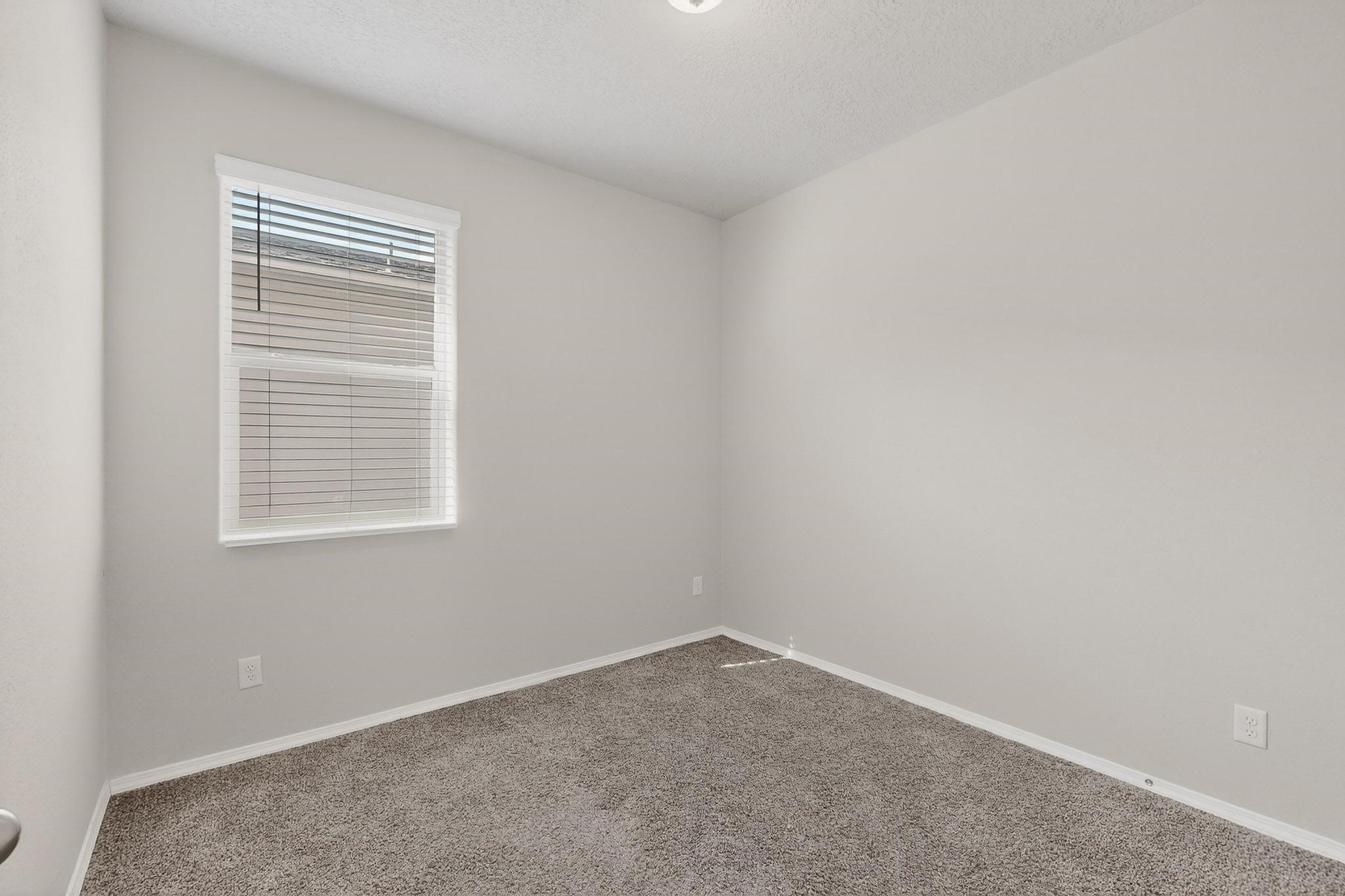 Opportunity is knocking with this 3 bedroom, 2 bathroom single level detached home in the completely sold out Cielo Azul Subdivision. Located across the street from the community open space you will be just steps away from daily walks/strolls, bike rides or walking your 4 legged loved one. Upon entry, the open concept kitchen and living area offer the perfect space to gather. The kitchen is sleek with granite counters, stainless appliances and lots of natural light. Casual eating can be enjoyed at the kitchen island or marvel in the separate dining area with great views of the community park. Wonderful separation of bedrooms allows the primary suite privacy with views to the walled back yard. Move-in ready with a finished garage, tankless water heater, refrigerated A/C, Washer & Dryer and matching stainless appliances. The backyard awaits your landscaping ideas and the location is great with easy access to 599 for both Los Alamos and Albuquerque commuters.